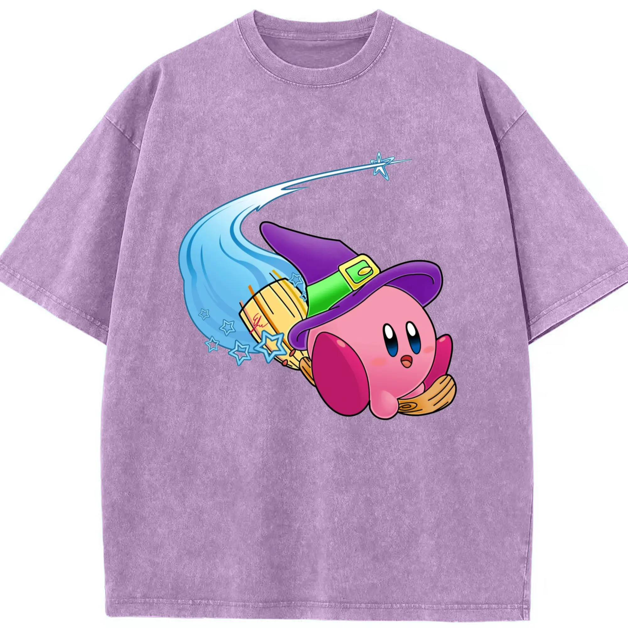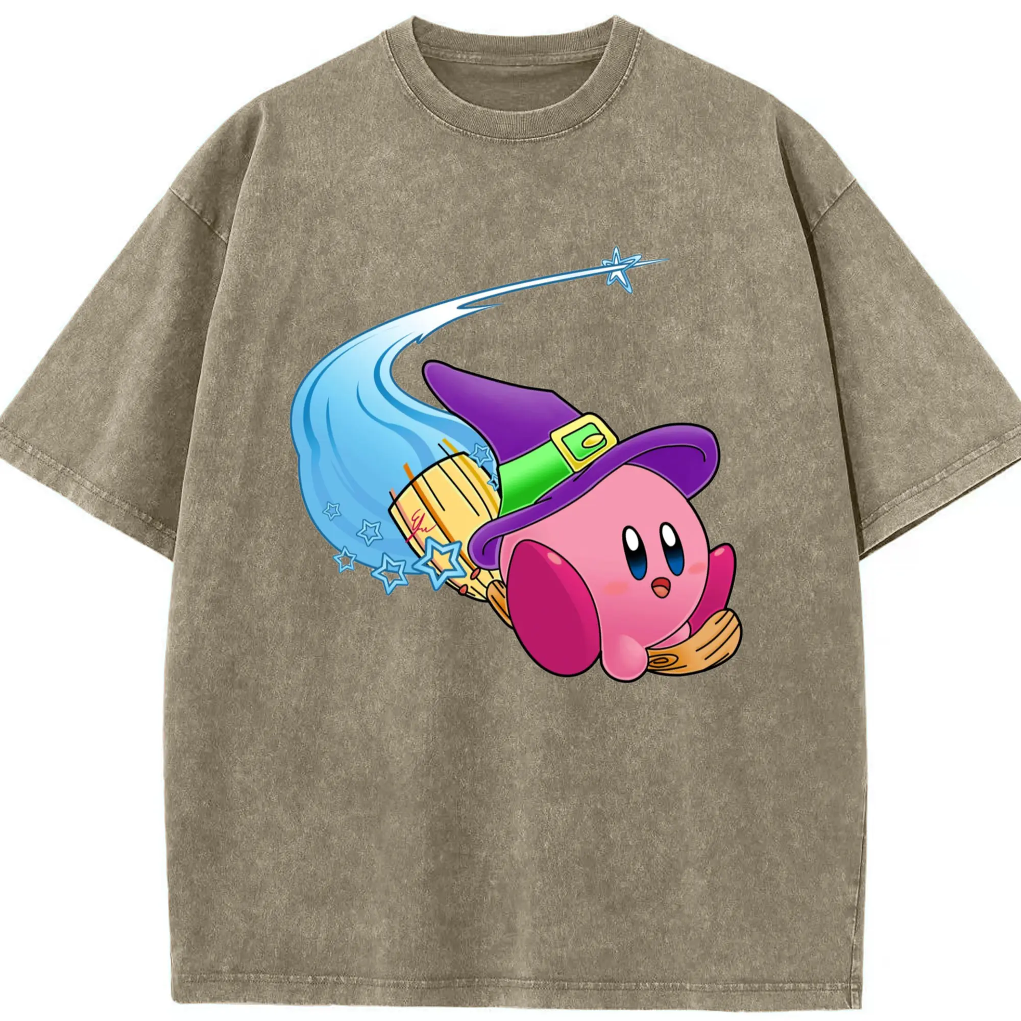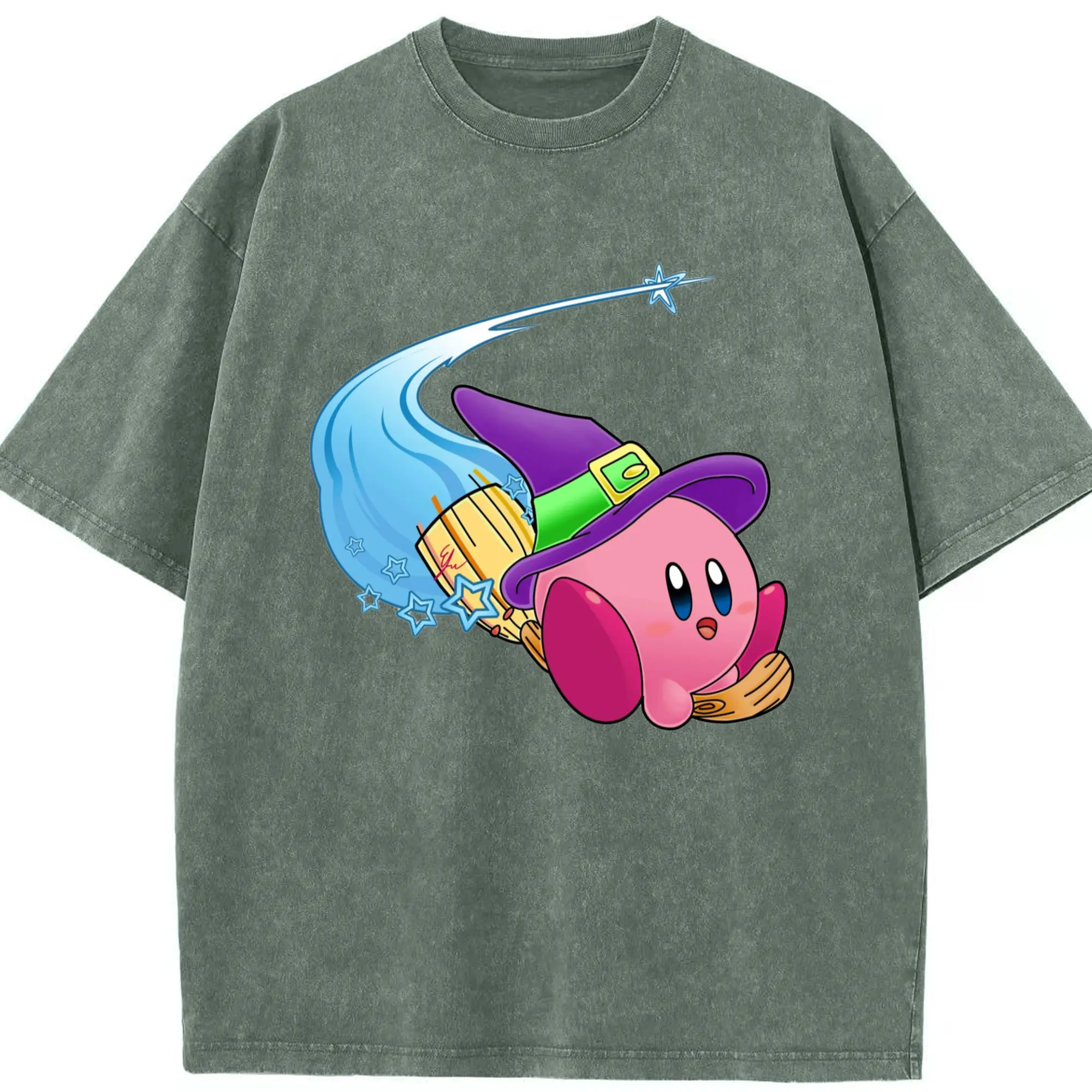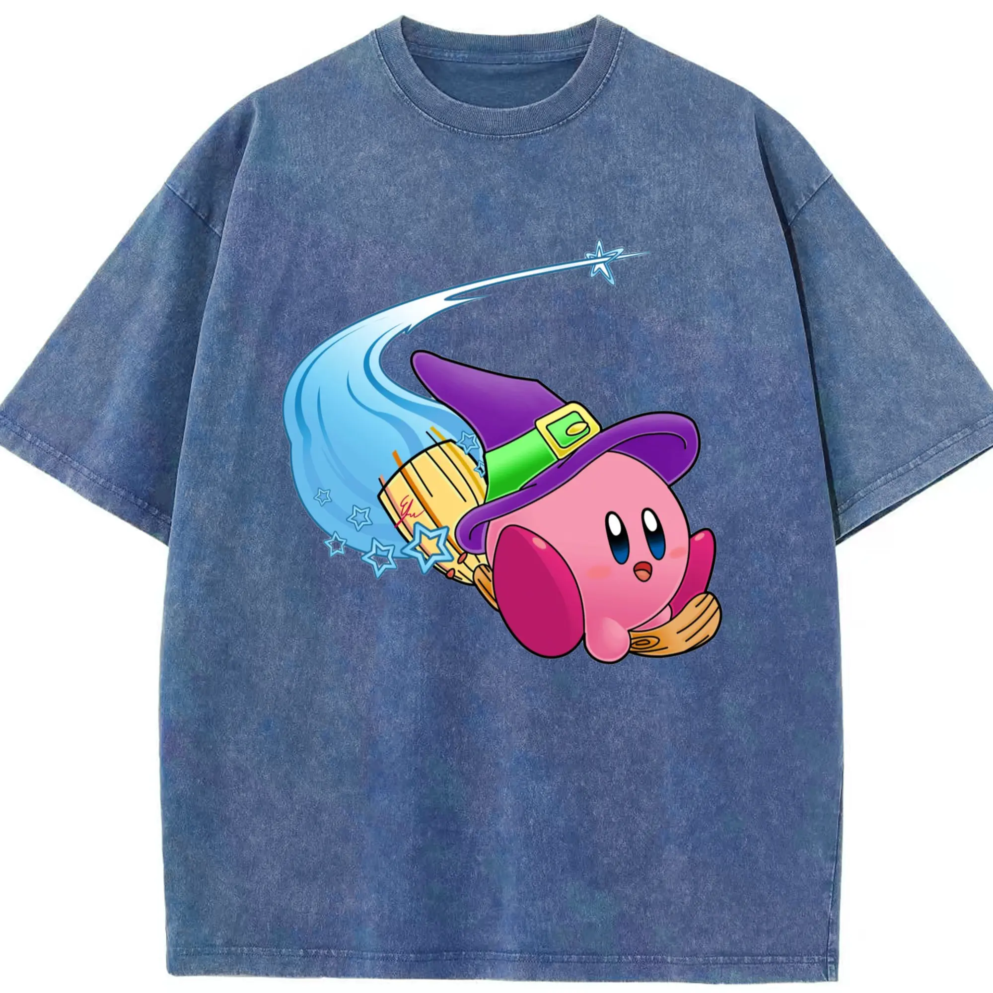 Nintendo kirby graphic t shirt​ - Washed Vintage Look 230g Cotton Oversized T-Shirt With Front Heat Transfer Print – Soft, Lightweight, Stylish Fit – Comfortable Casual Wear For Sports & Everyday Use
