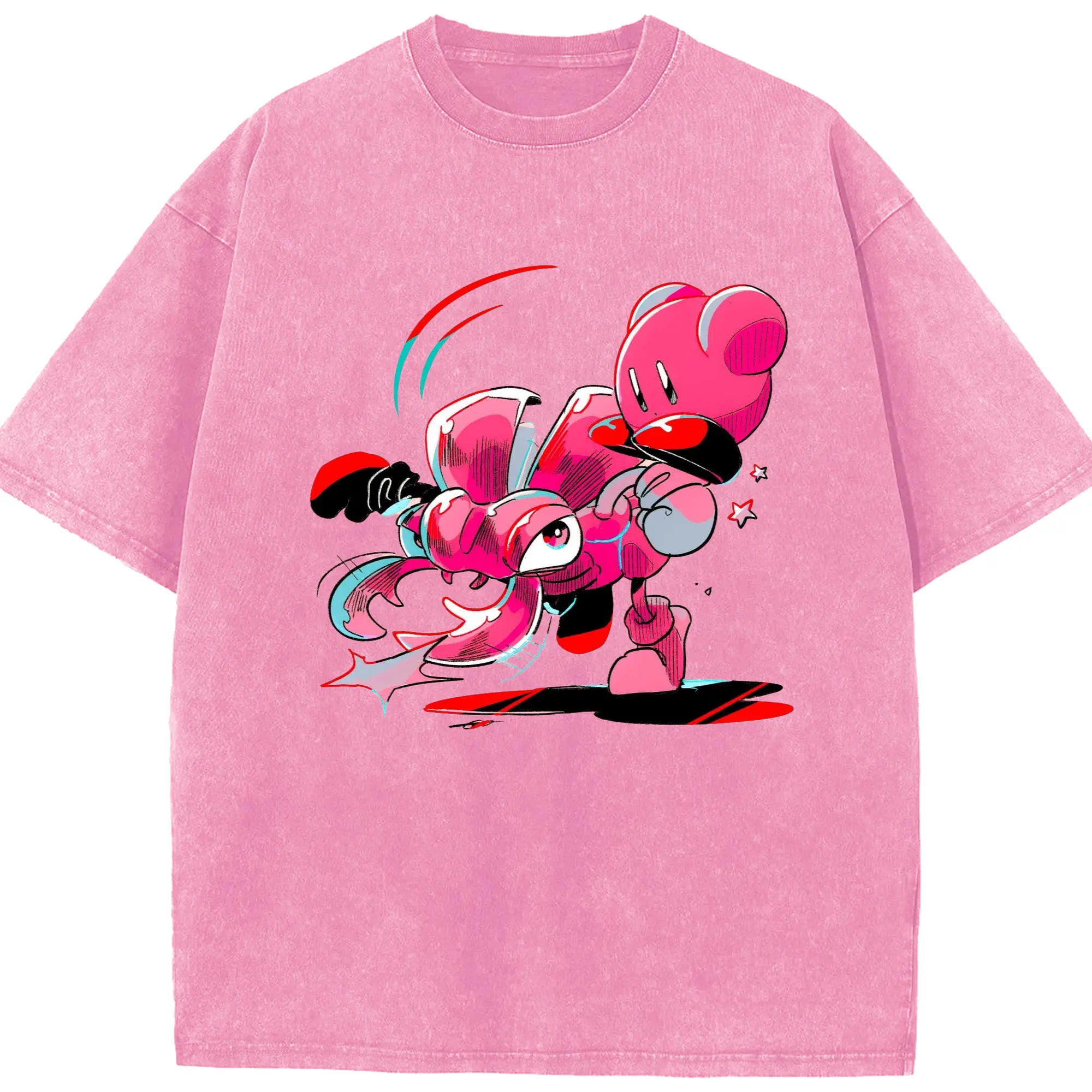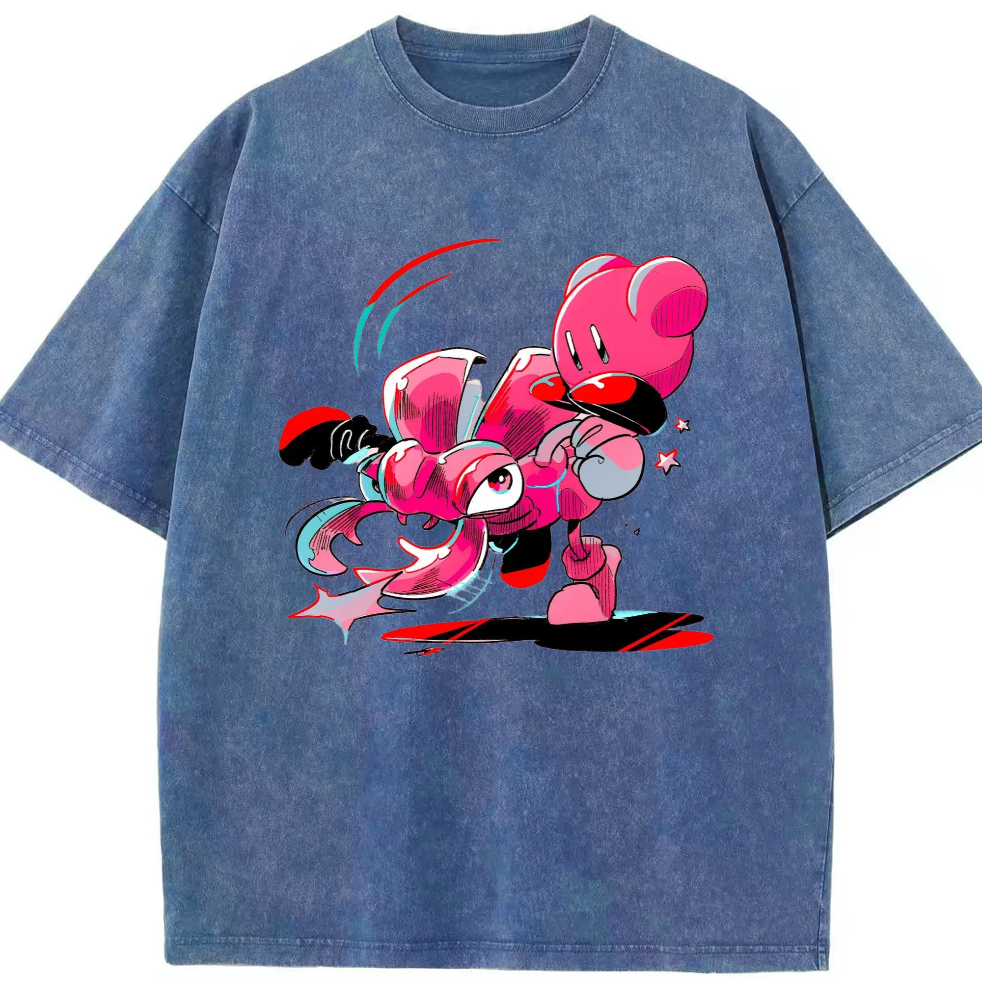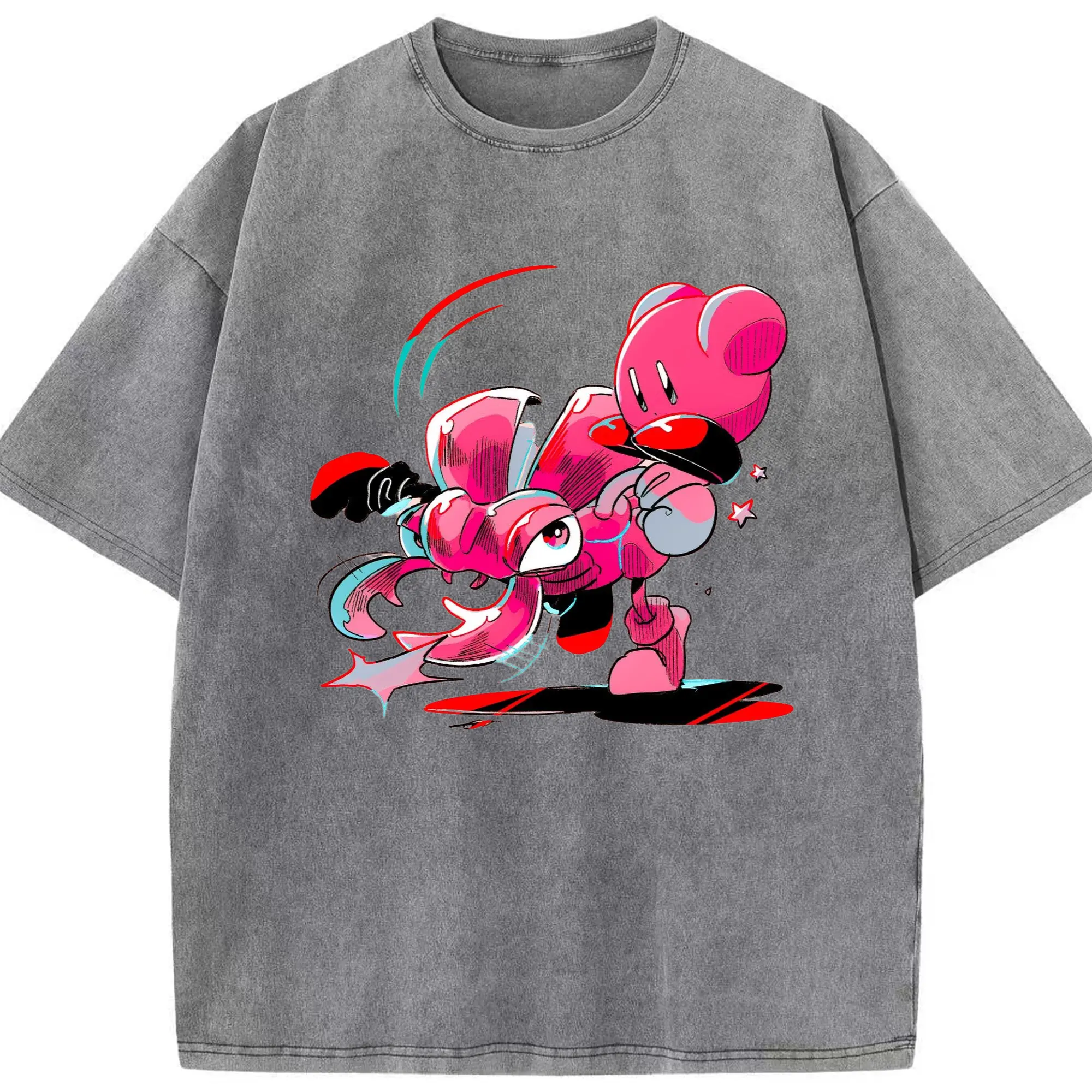 Nintendo kirby graphic tee - Washed Vintage Look 230g Cotton Oversized T-Shirt With Front Heat Transfer Print – Soft, Lightweight, Stylish Fit – Comfortable Casual Wear For Sports & Everyday Use