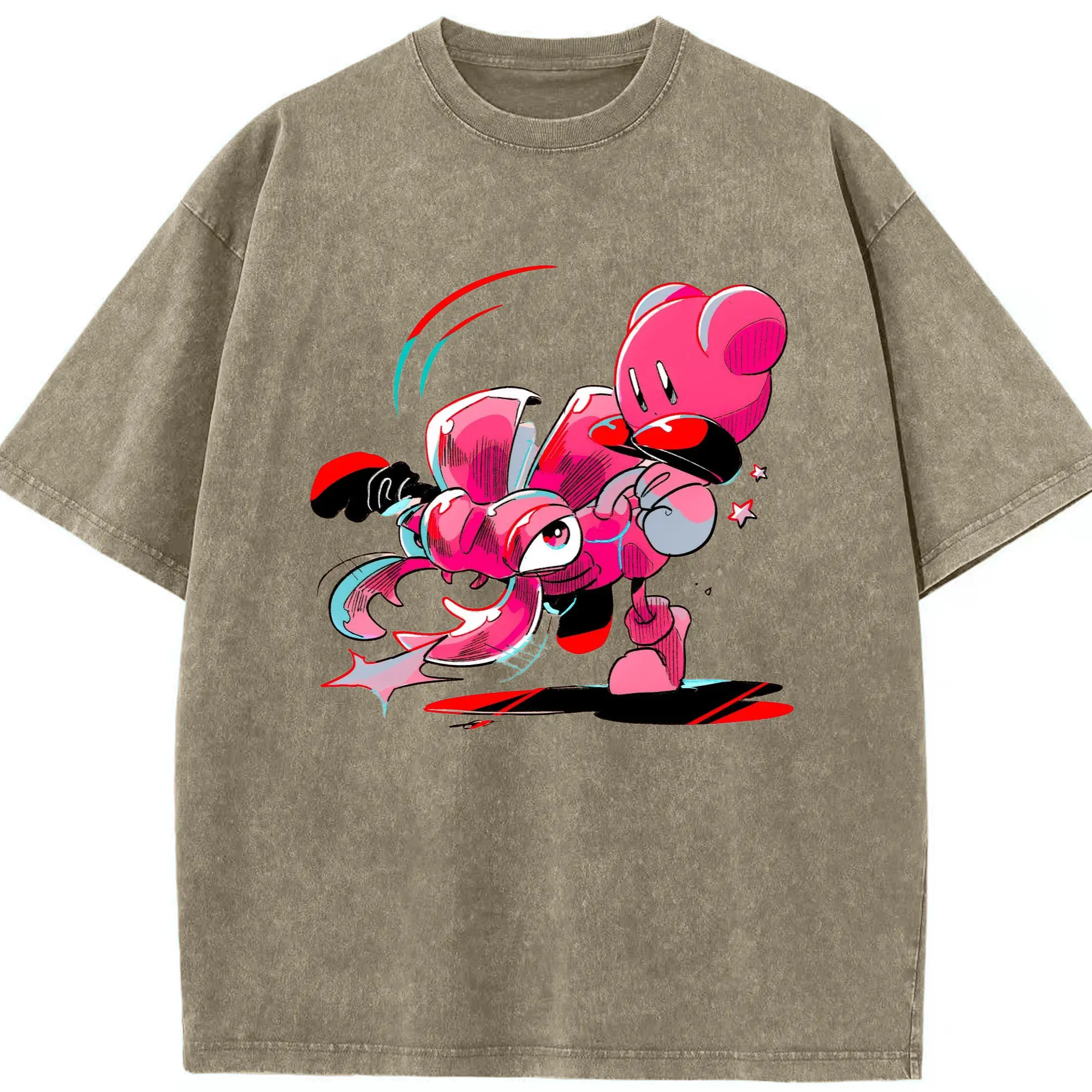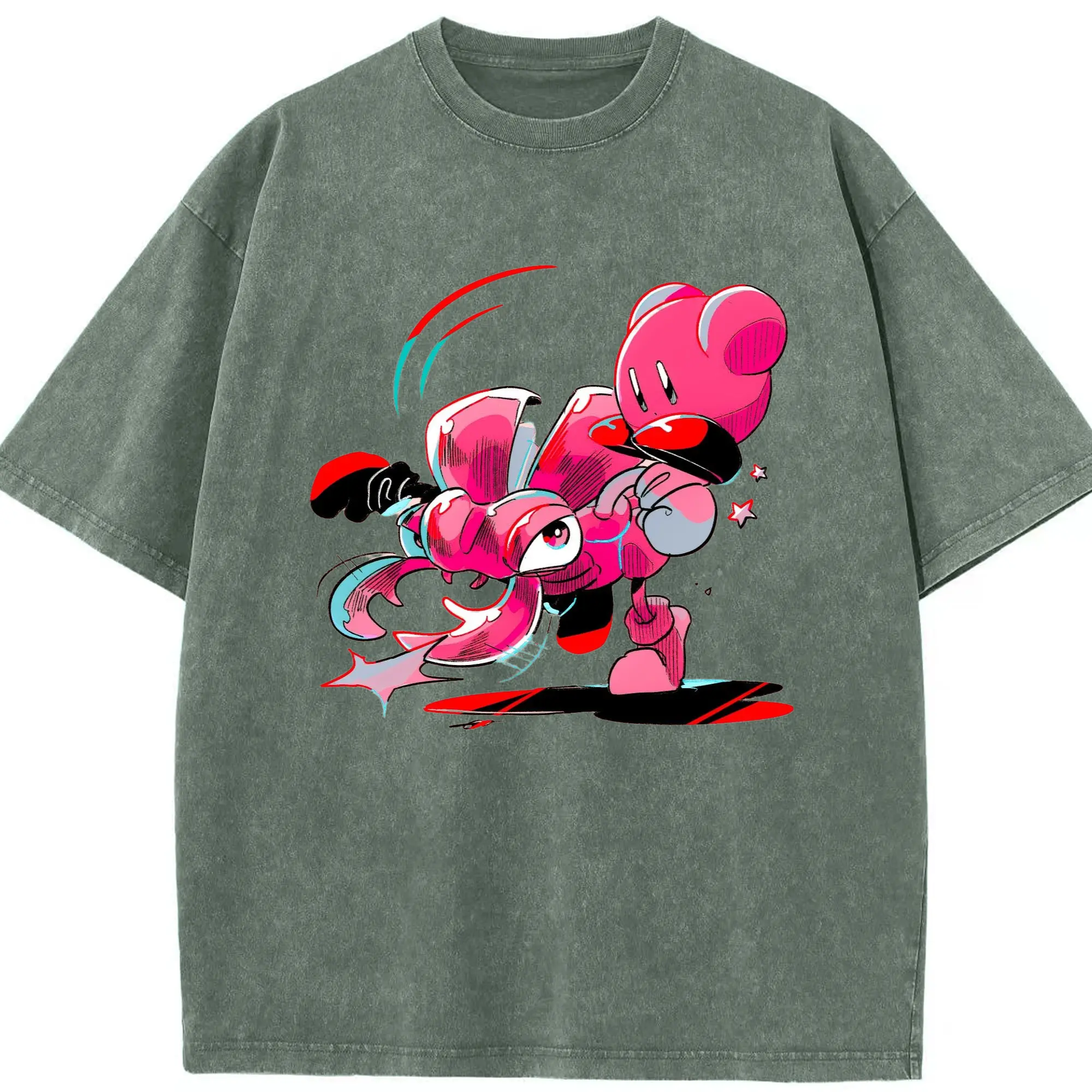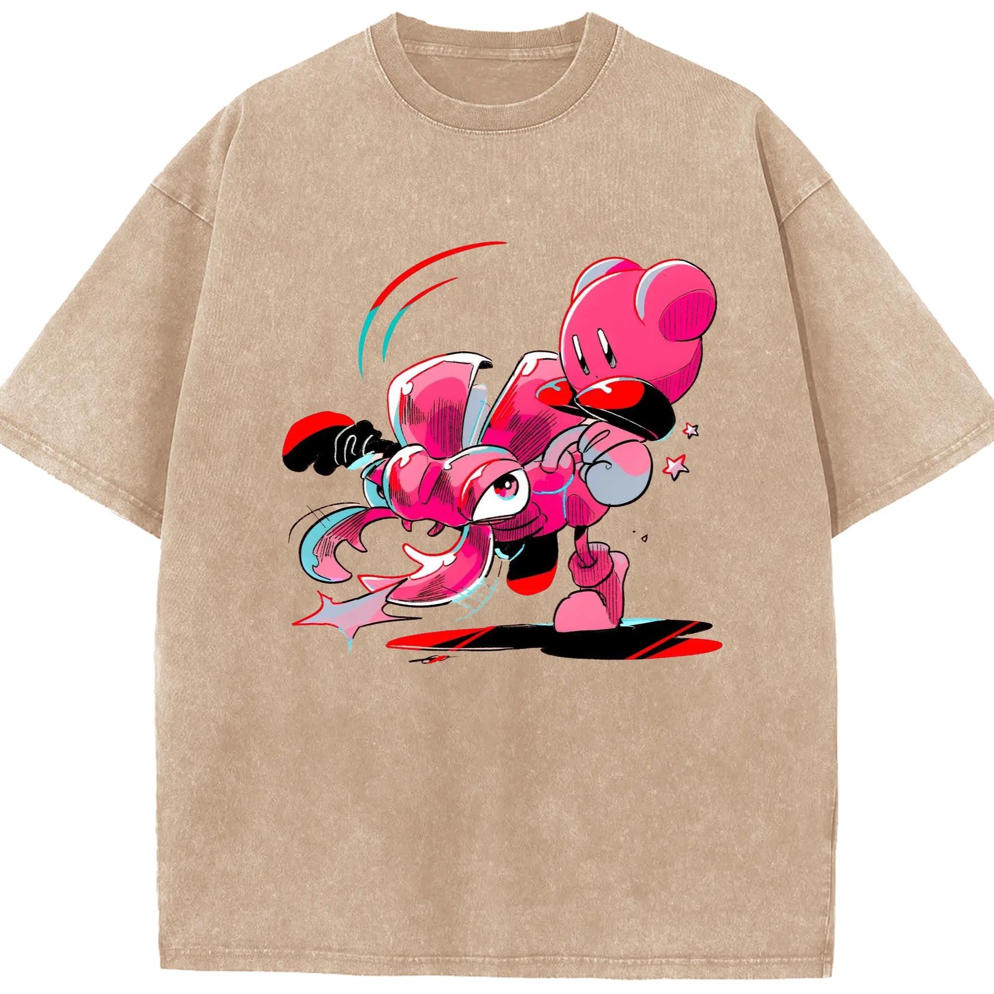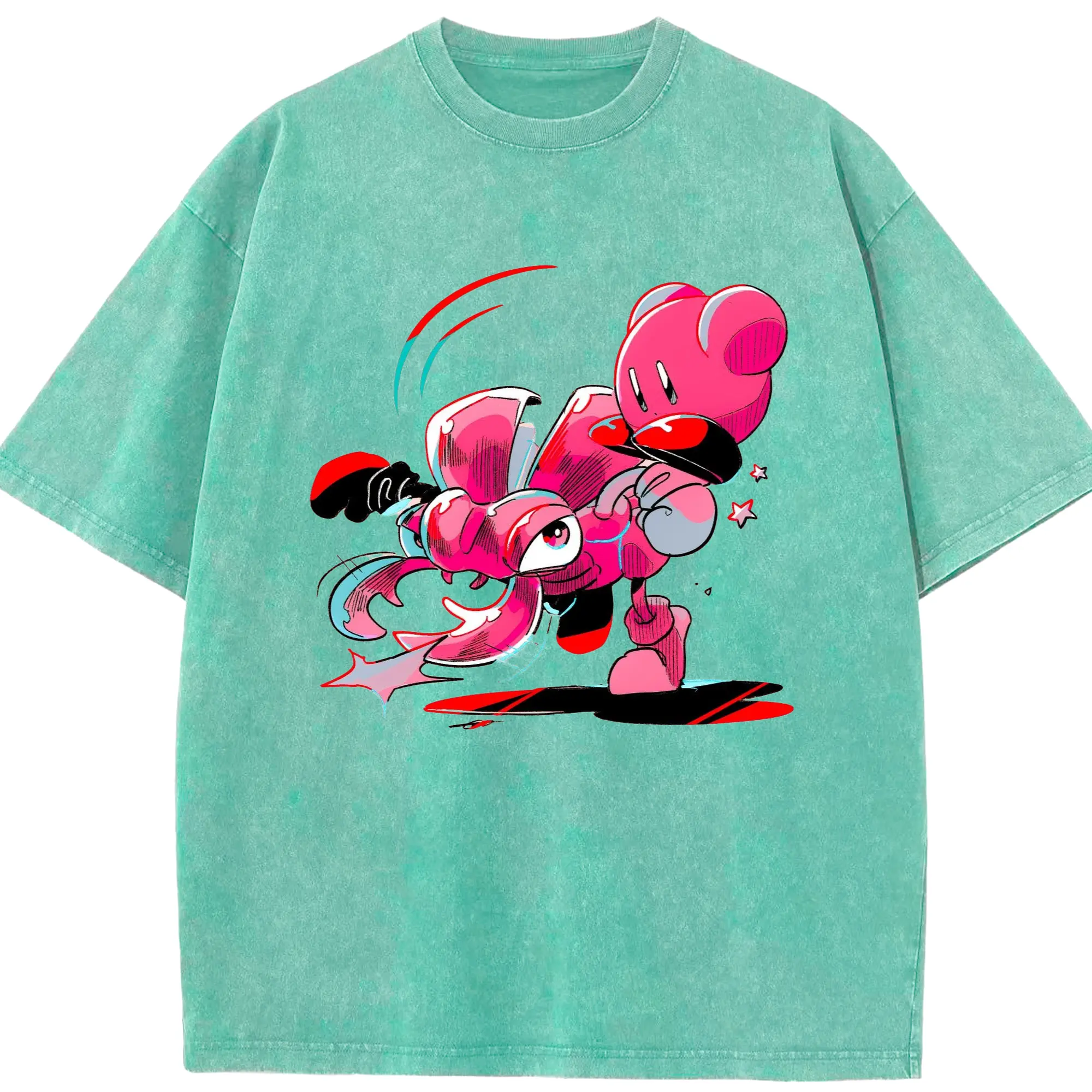 Nintendo kirby graphic tee - Washed Vintage Look 230g Cotton Oversized T-Shirt With Front Heat Transfer Print – Soft, Lightweight, Stylish Fit – Comfortable Casual Wear For Sports & Everyday Use