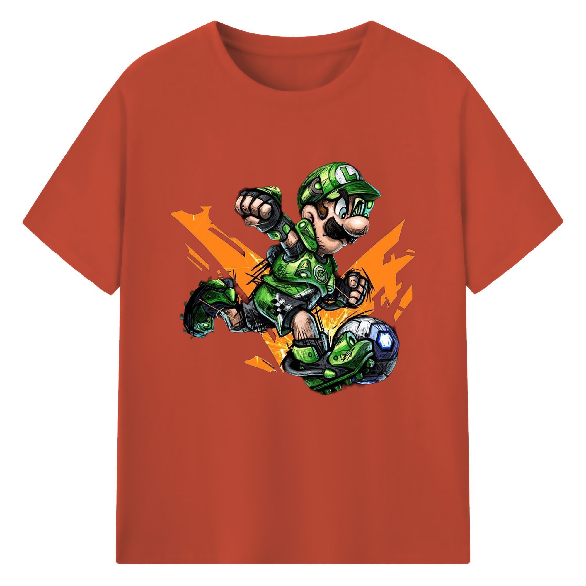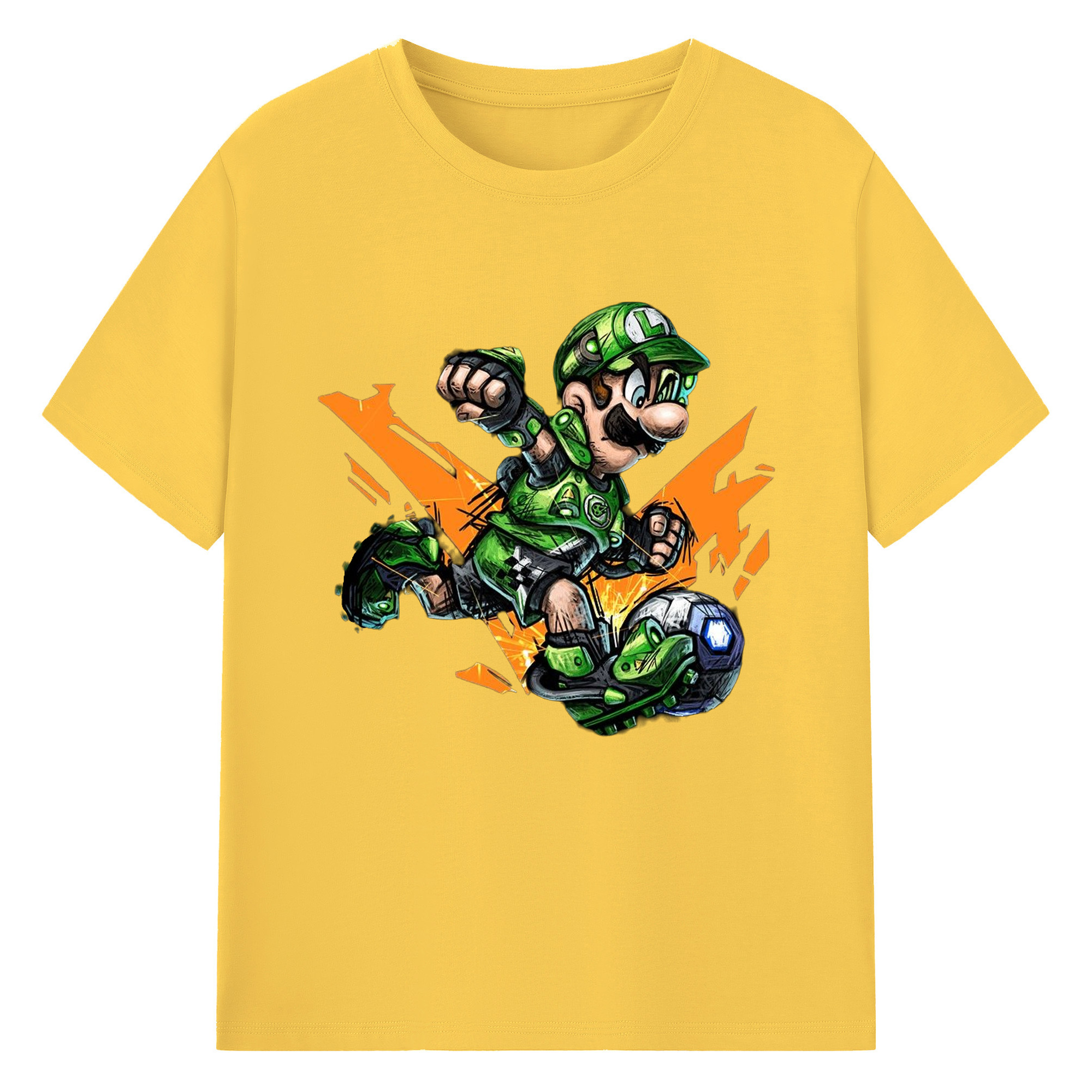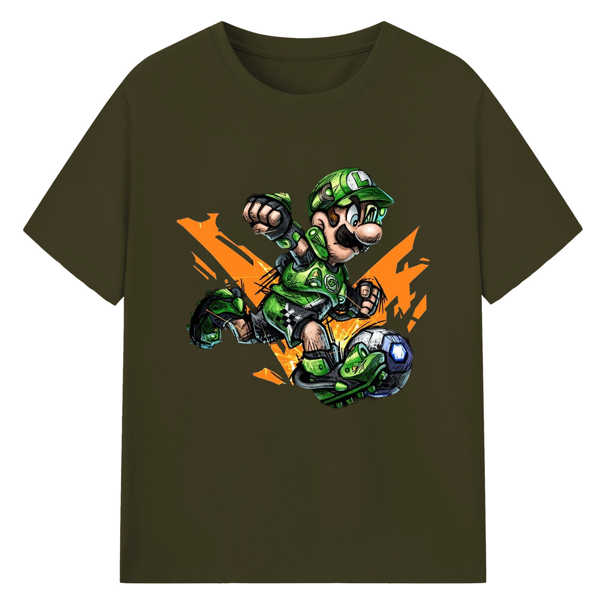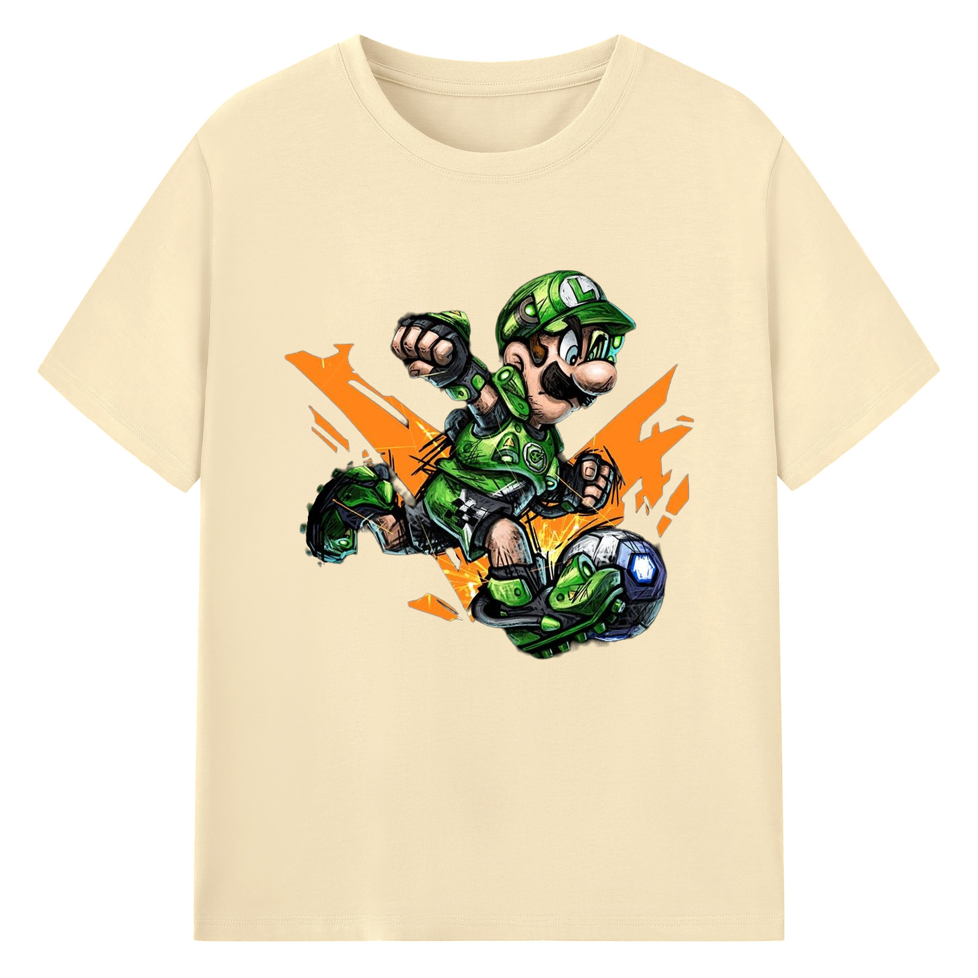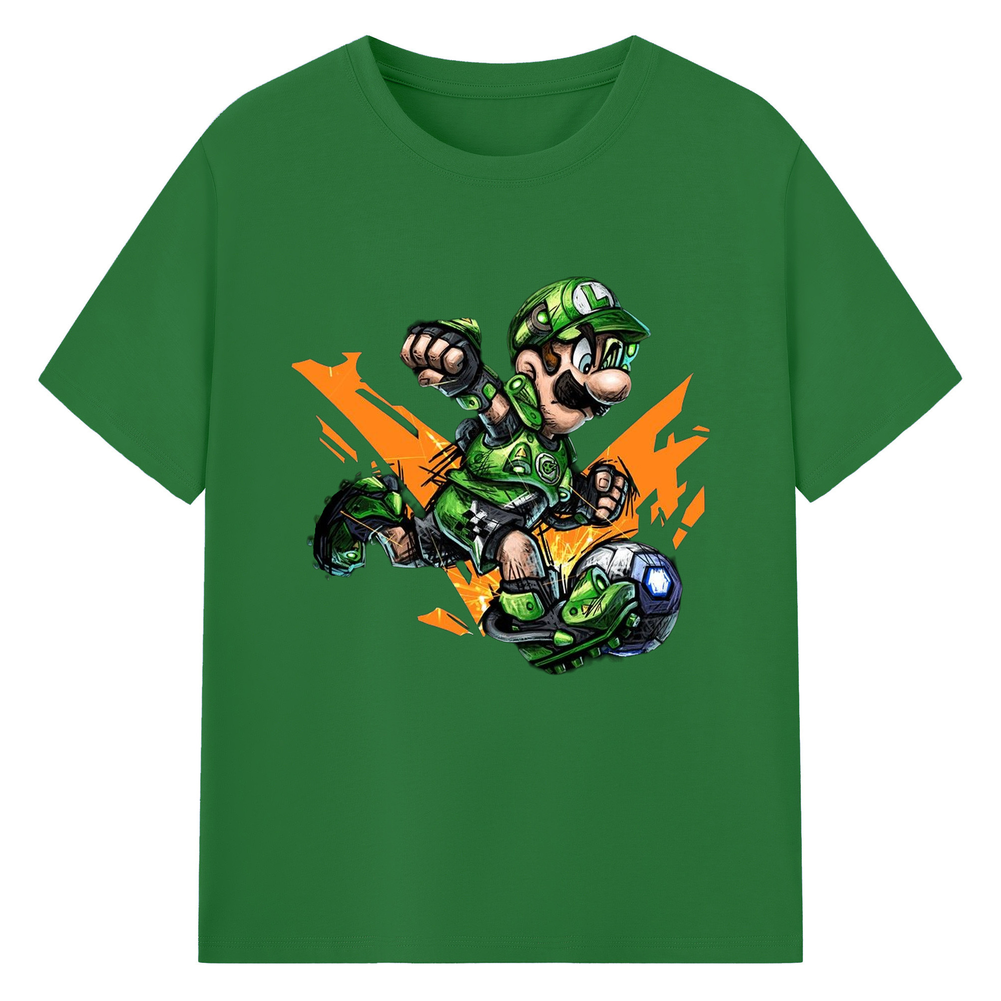 Nintendo Luigi 'shoot'Painted style Tee - 180g Cotton T-Shirt With Front Heat Transfer Print – Soft, Lightweight, Fitted Design – Comfortable Casual Wear For Sports & Everyday Use