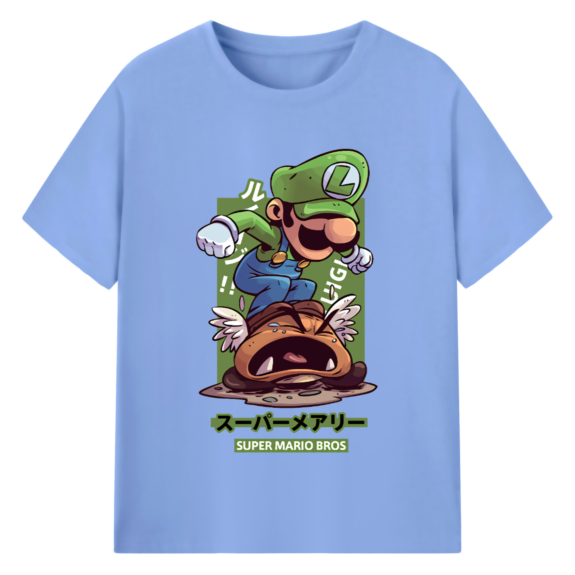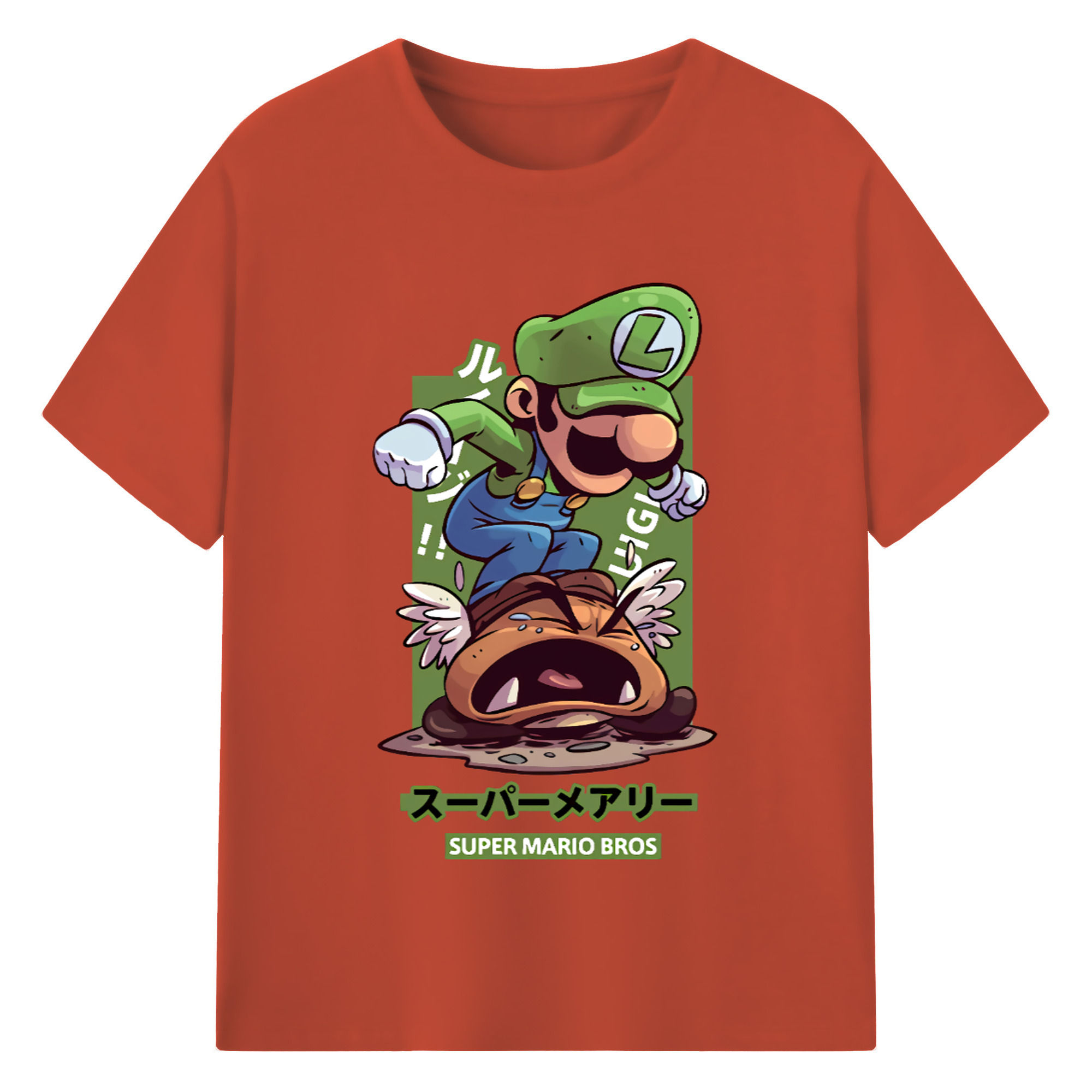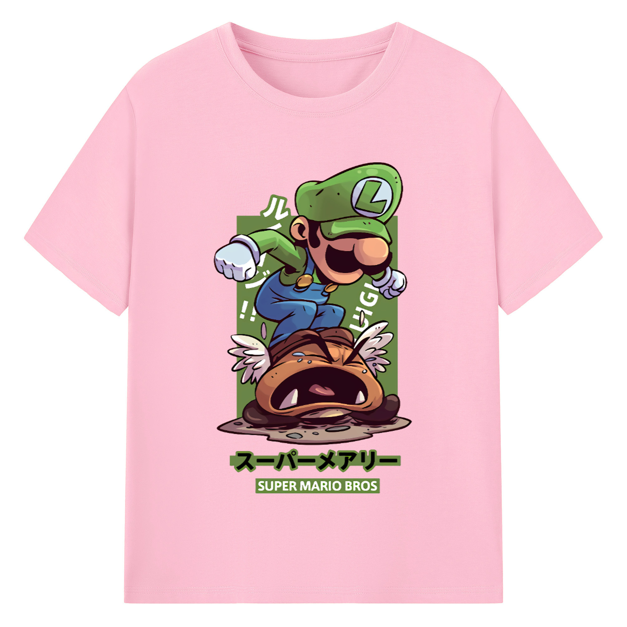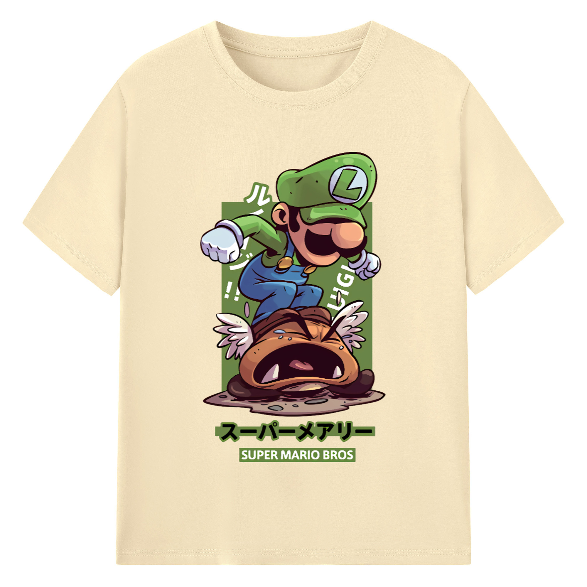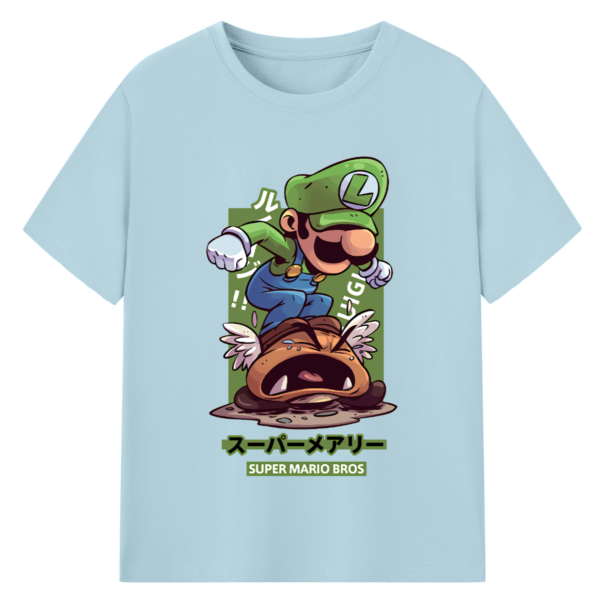 Nintendo Luigi 'Stamp Goomba' Cartoon Art T-shirt - 180g Cotton T-Shirt With Front Heat Transfer Print – Soft, Lightweight, Fitted Design – Comfortable Casual Wear For Sports & Everyday Use