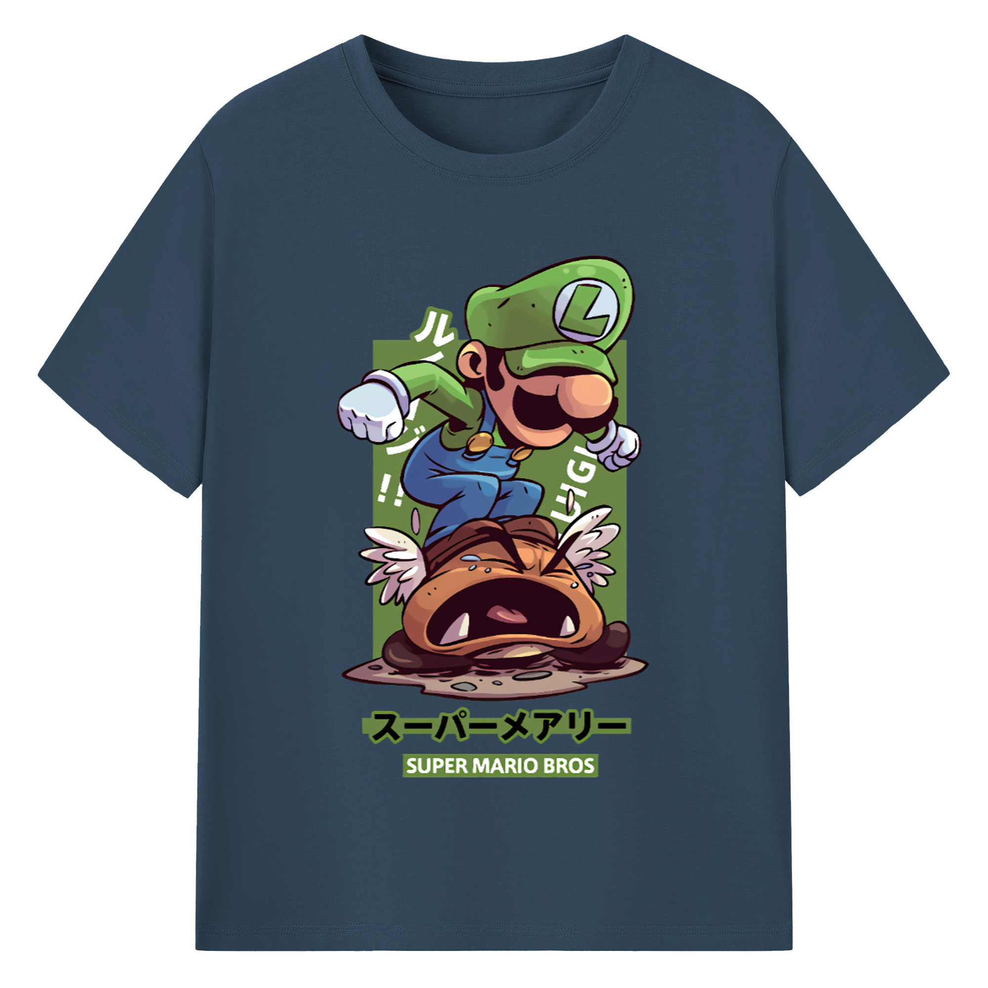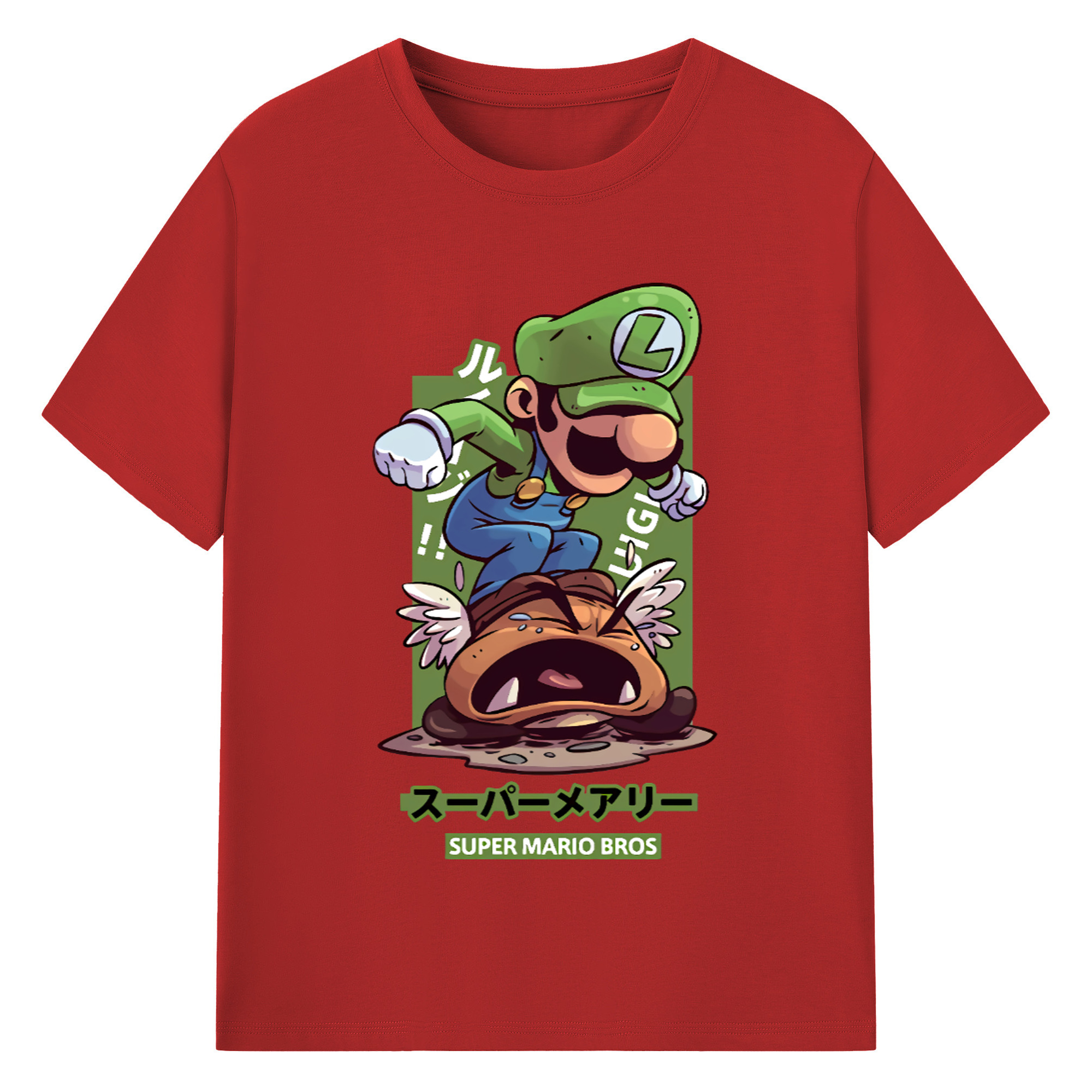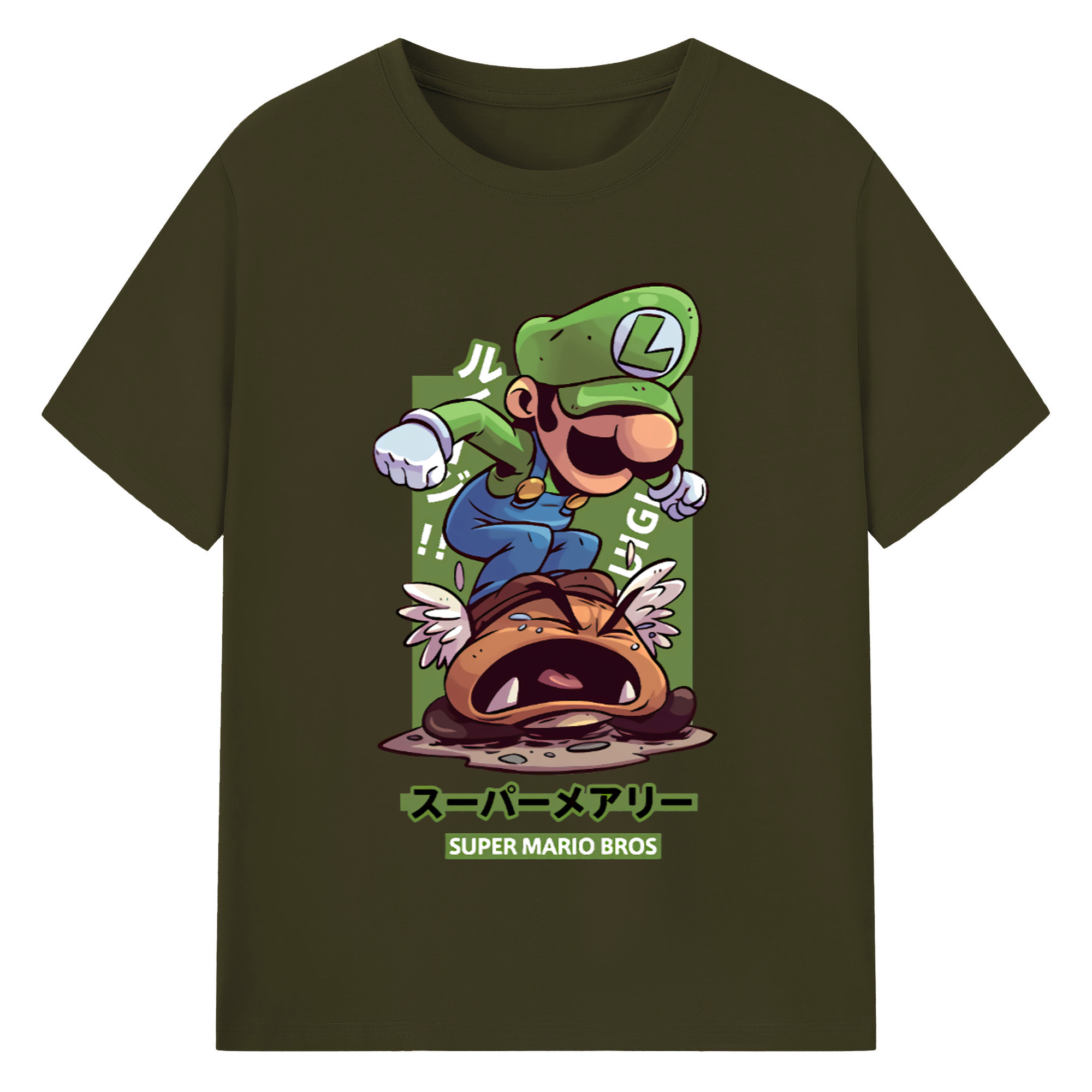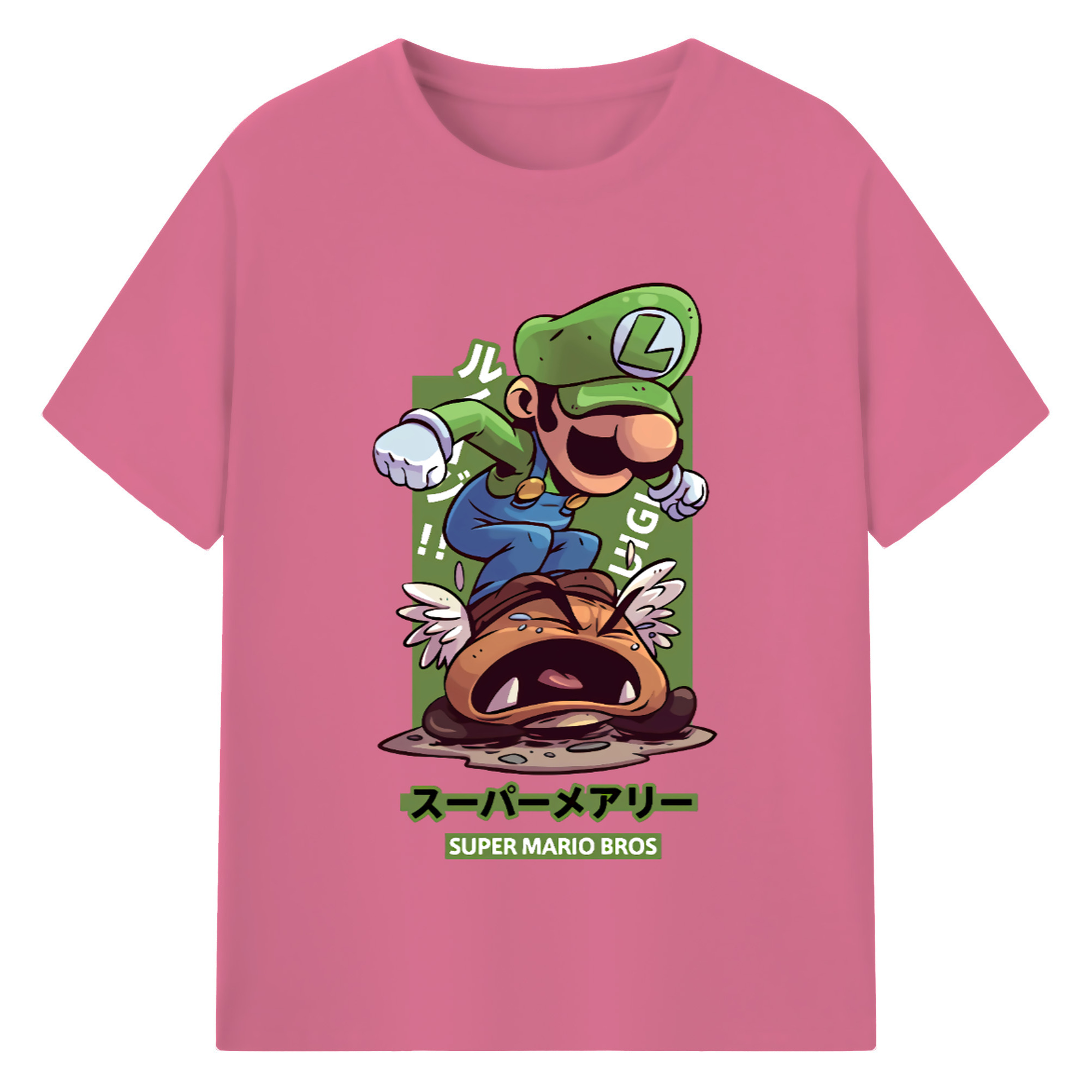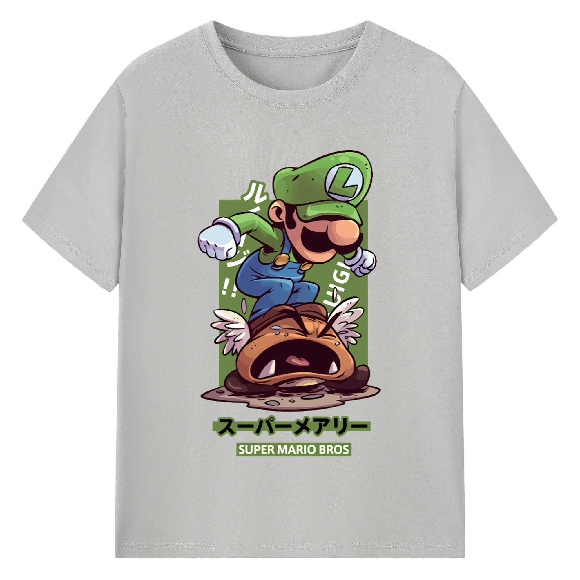 Nintendo Luigi 'Stamp Goomba' Cartoon Art T-shirt - 180g Cotton T-Shirt With Front Heat Transfer Print – Soft, Lightweight, Fitted Design – Comfortable Casual Wear For Sports & Everyday Use