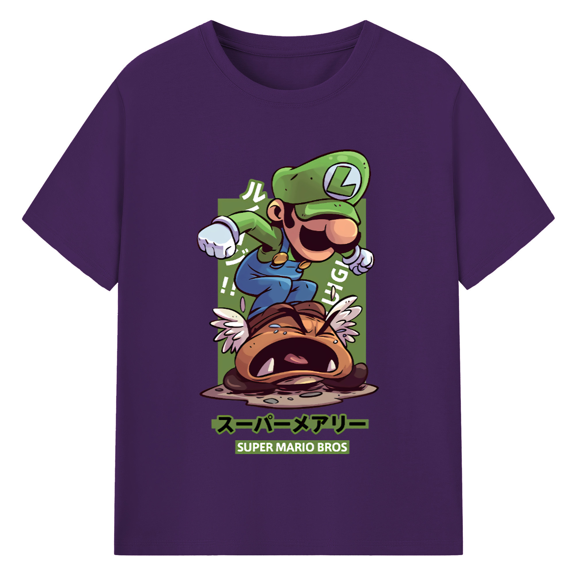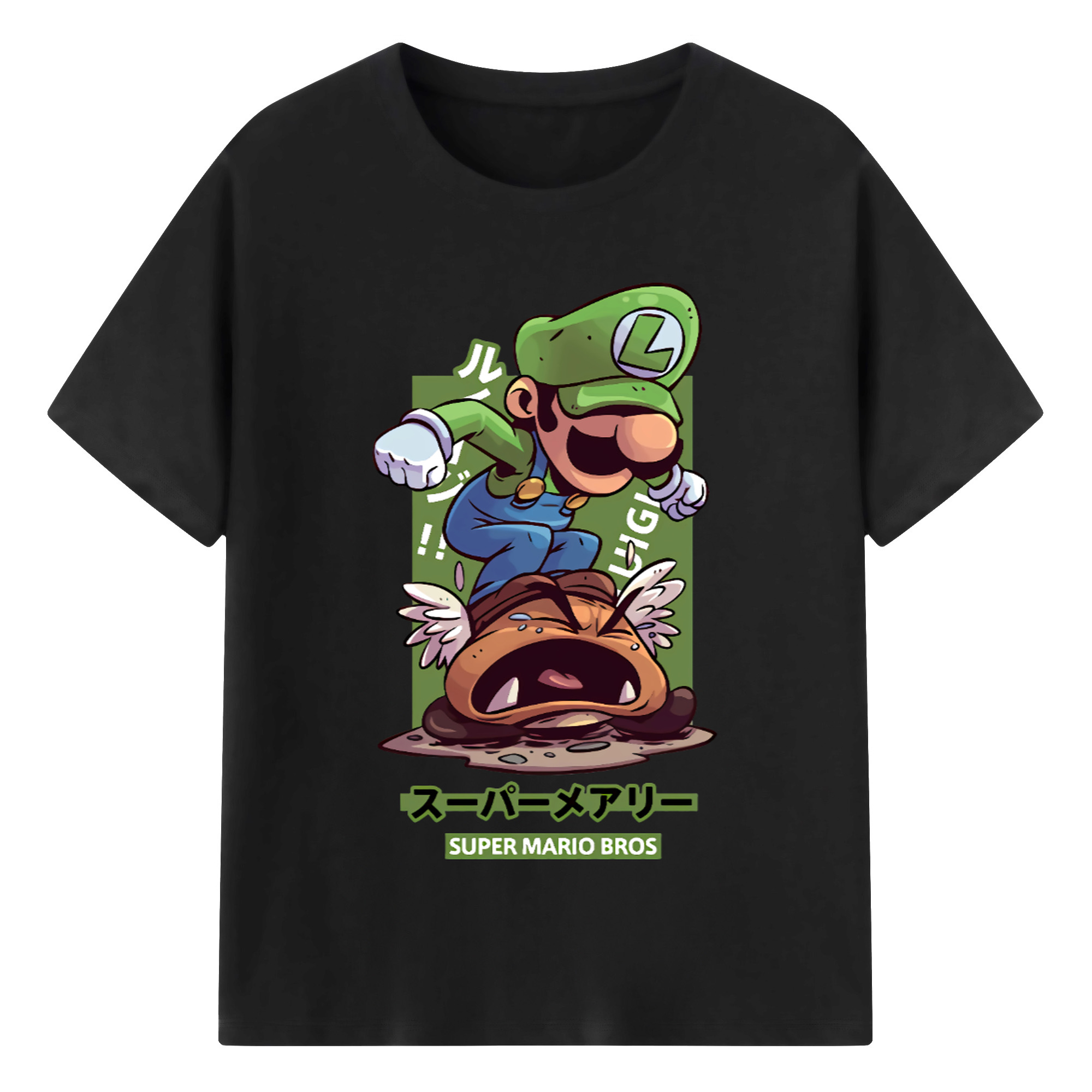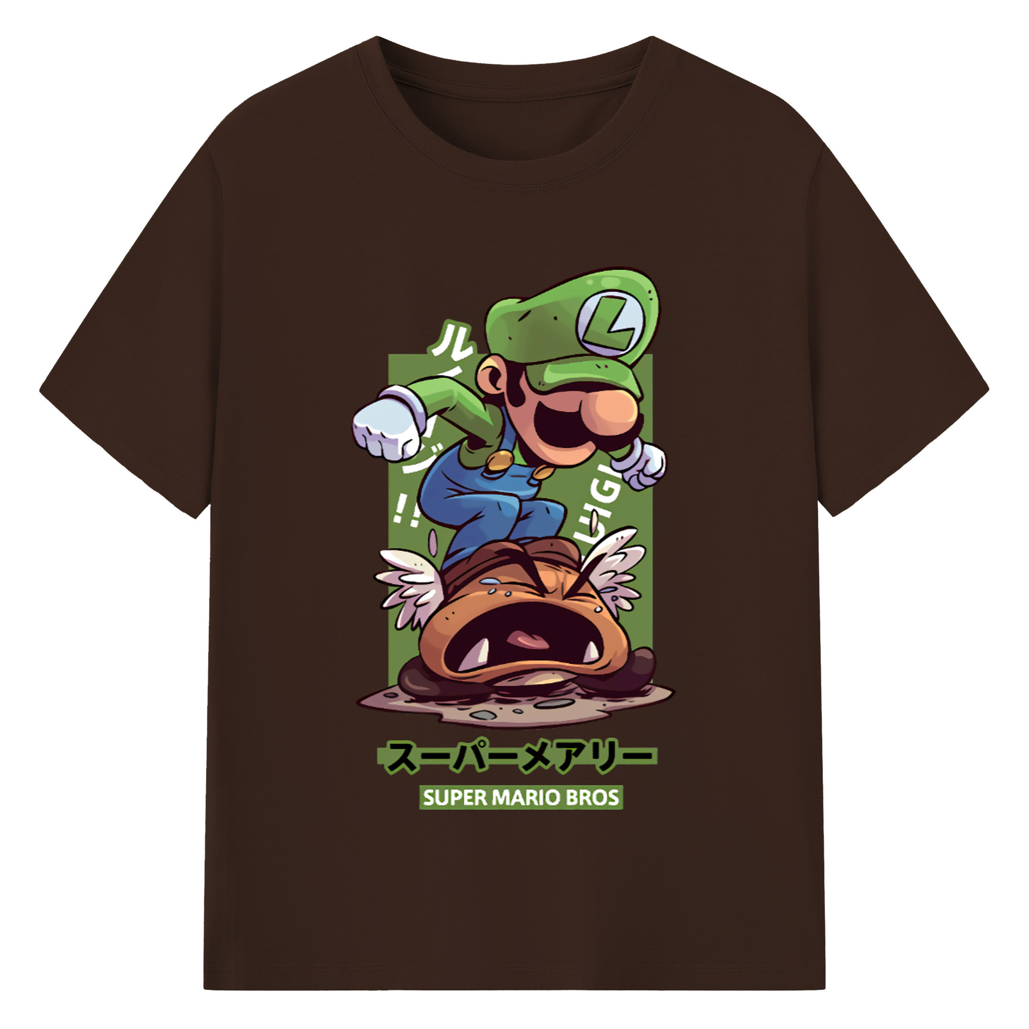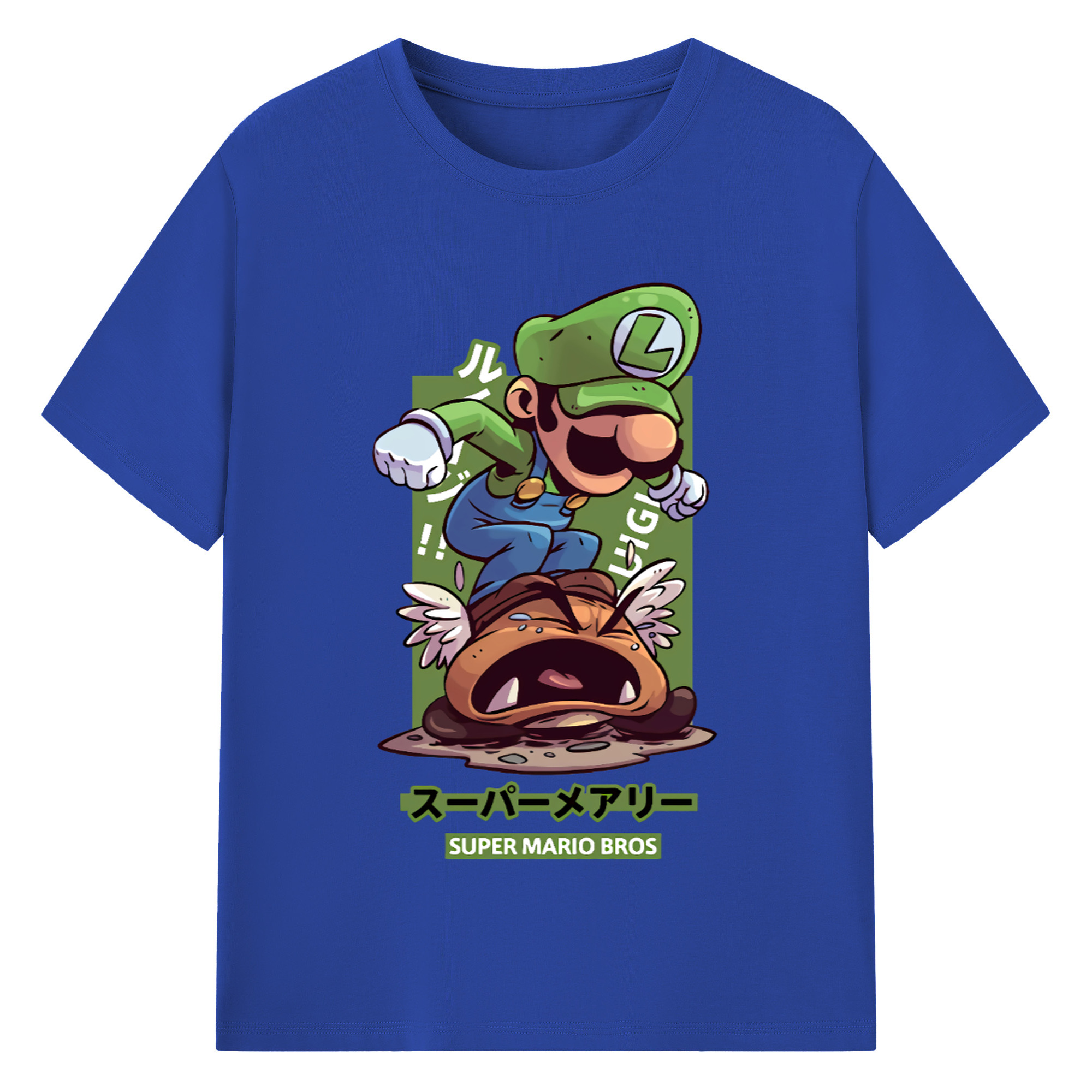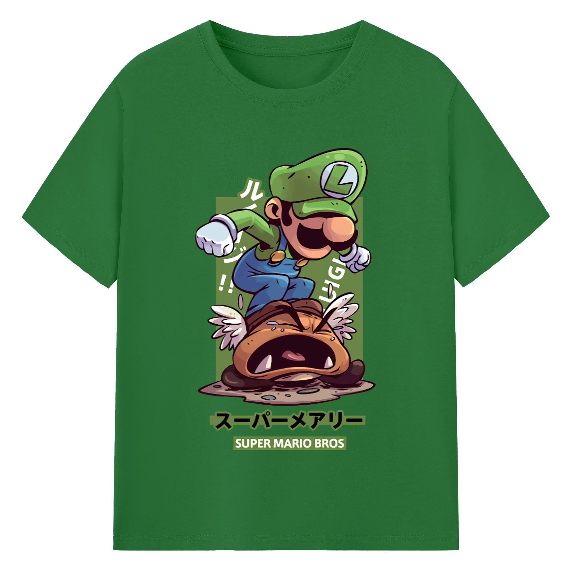 Nintendo Luigi 'Stamp Goomba' Cartoon Art T-shirt - 180g Cotton T-Shirt With Front Heat Transfer Print – Soft, Lightweight, Fitted Design – Comfortable Casual Wear For Sports & Everyday Use
