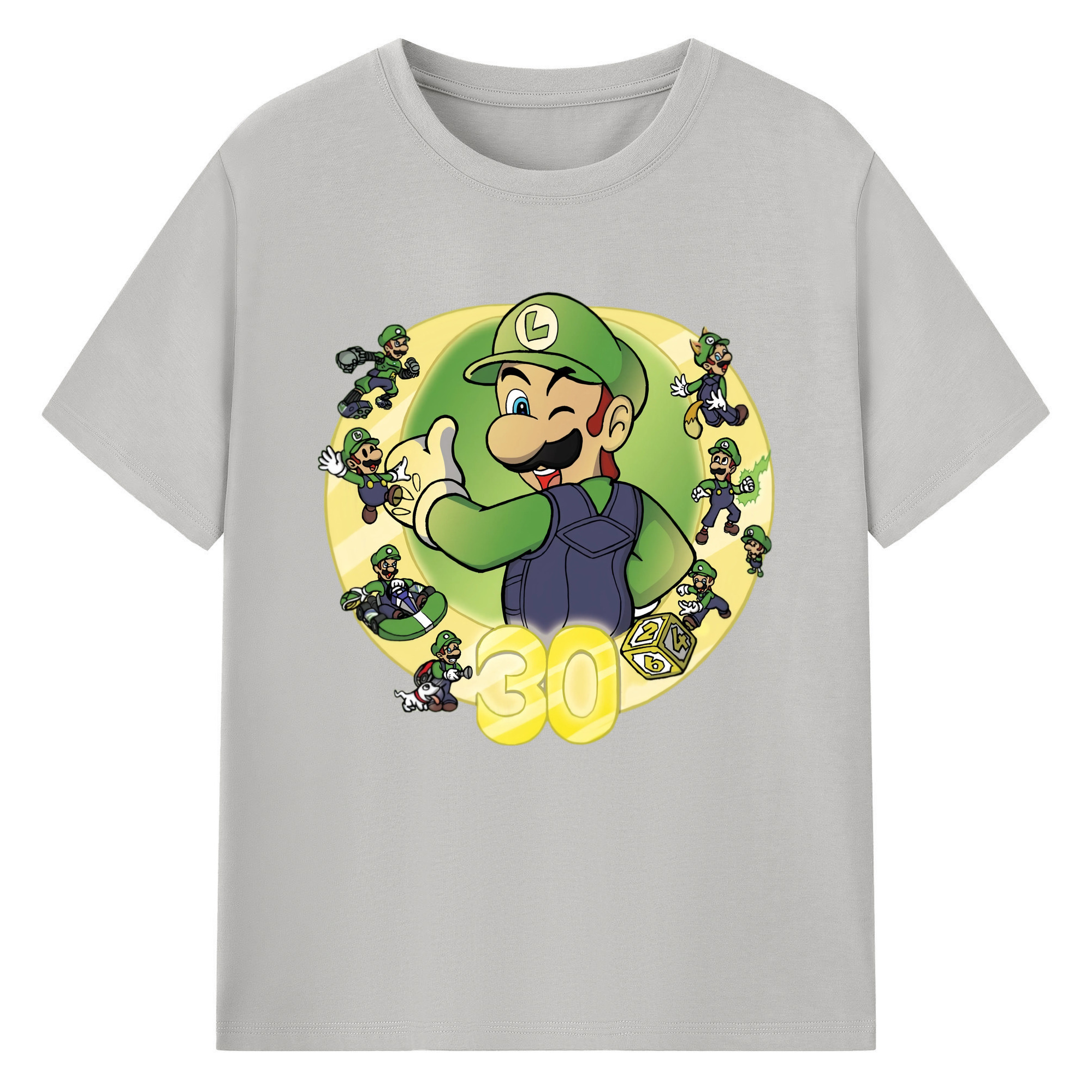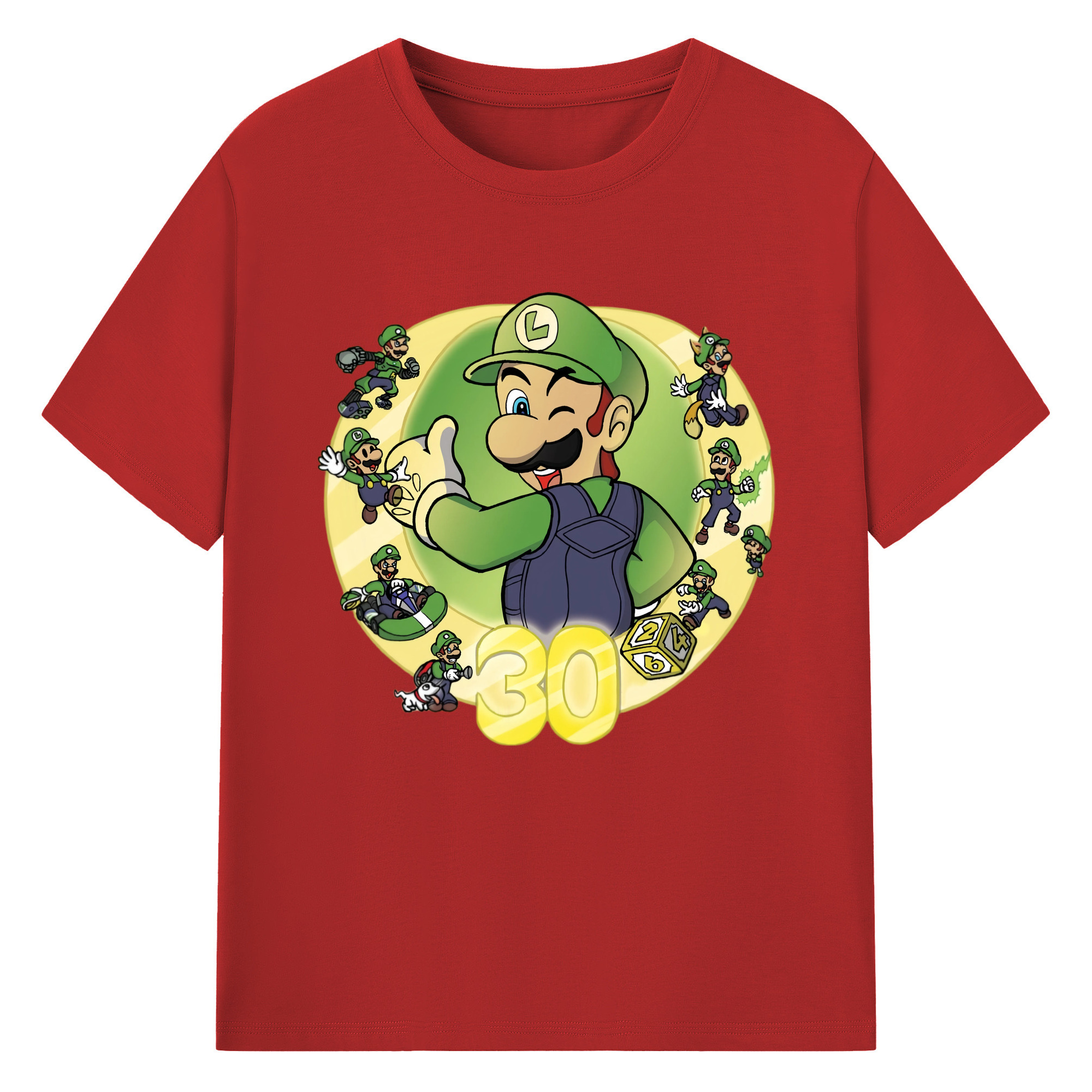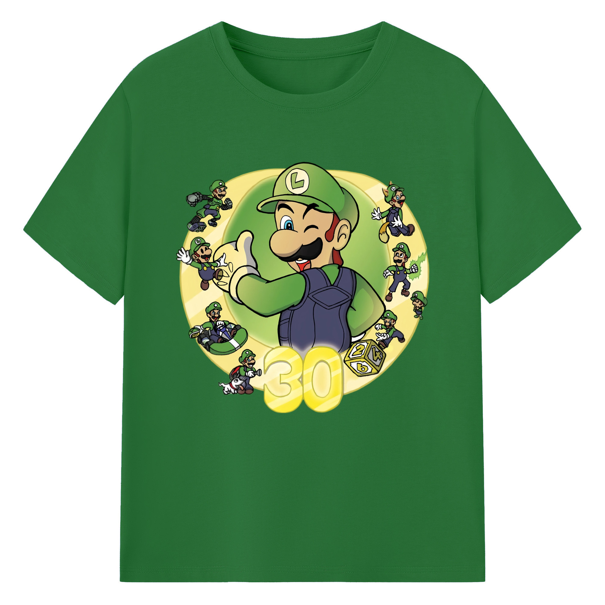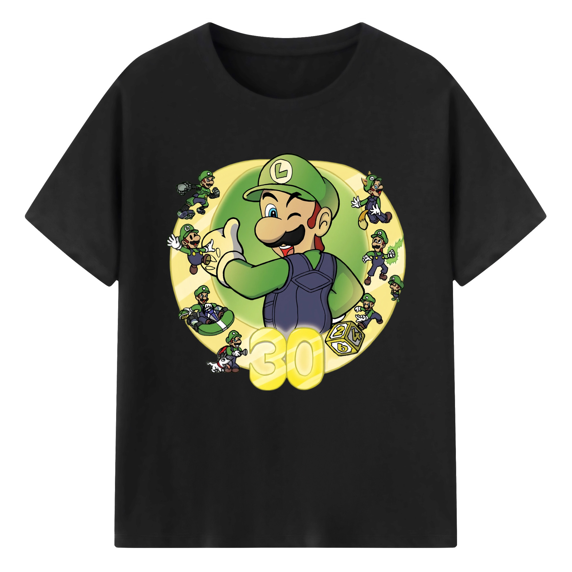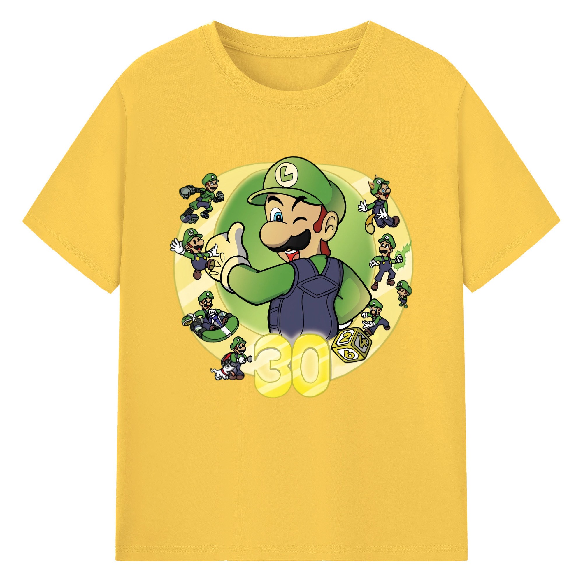 Nintendo Luigi 30th anniversary Graphic Tee - 180g Cotton T-Shirt With Front Heat Transfer Print – Soft, Lightweight, Fitted Design – Comfortable Casual Wear For Sports & Everyday Use