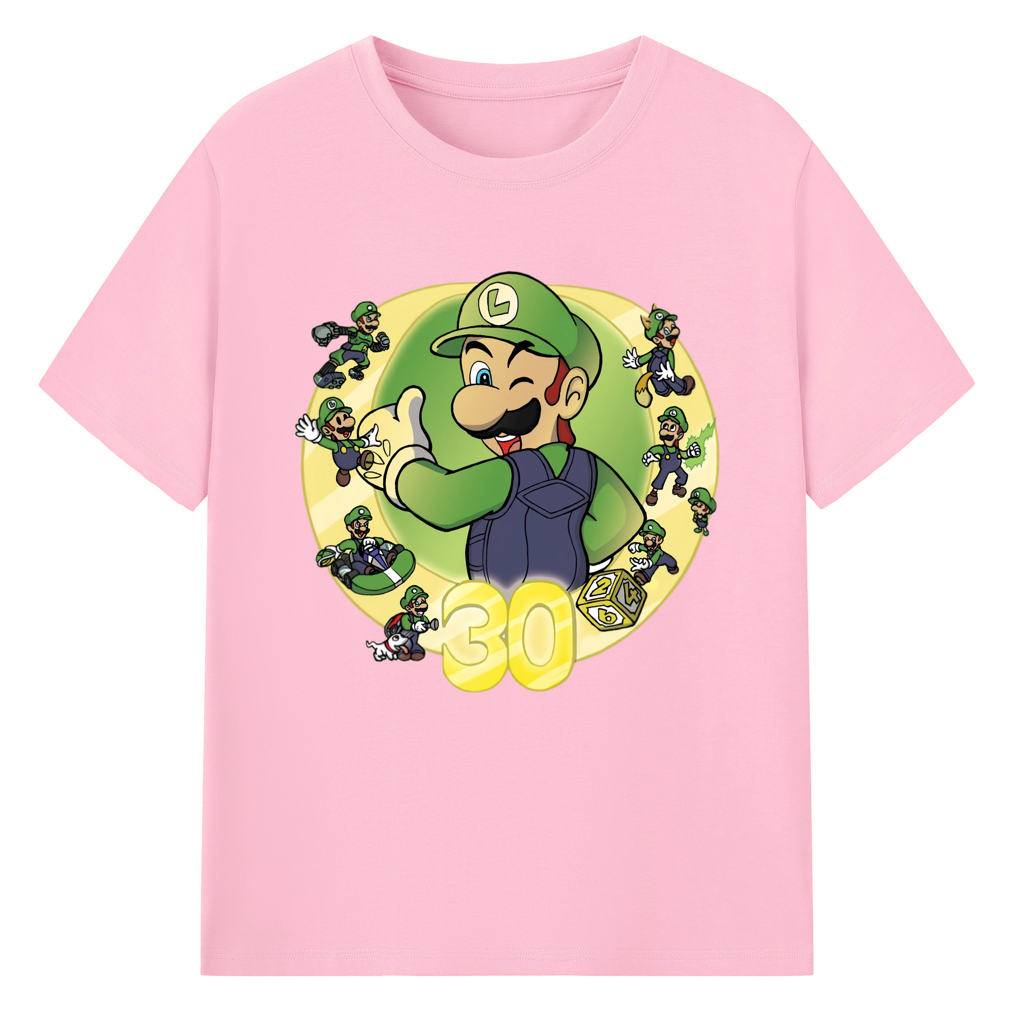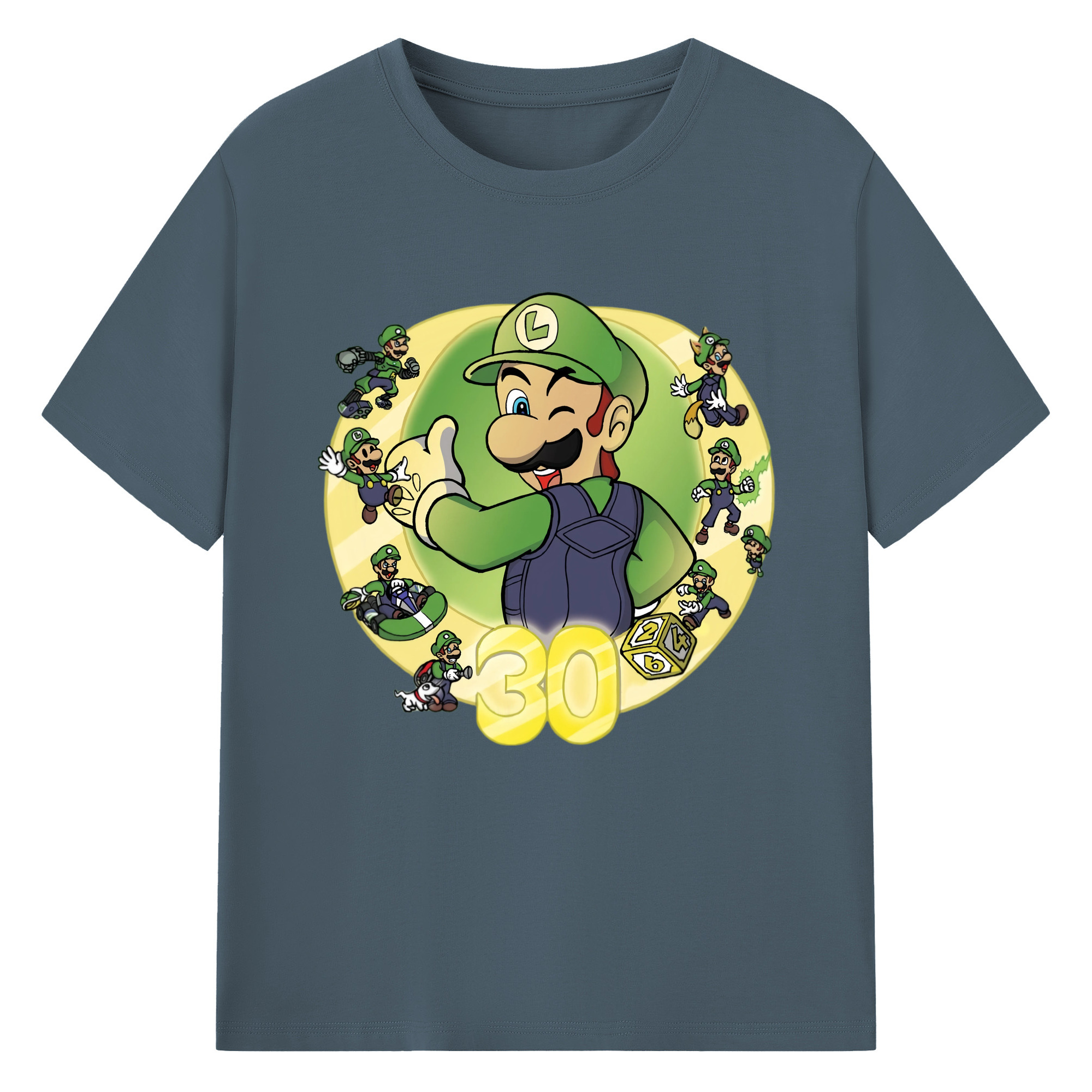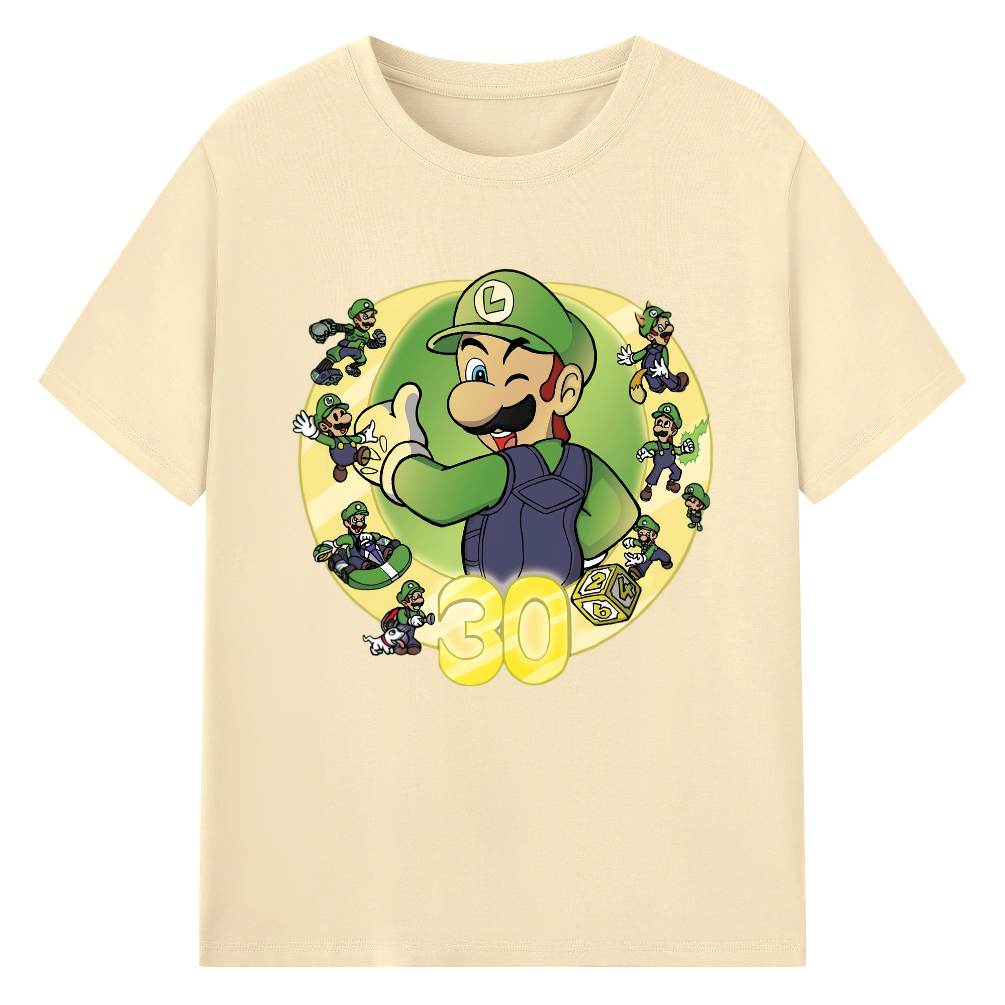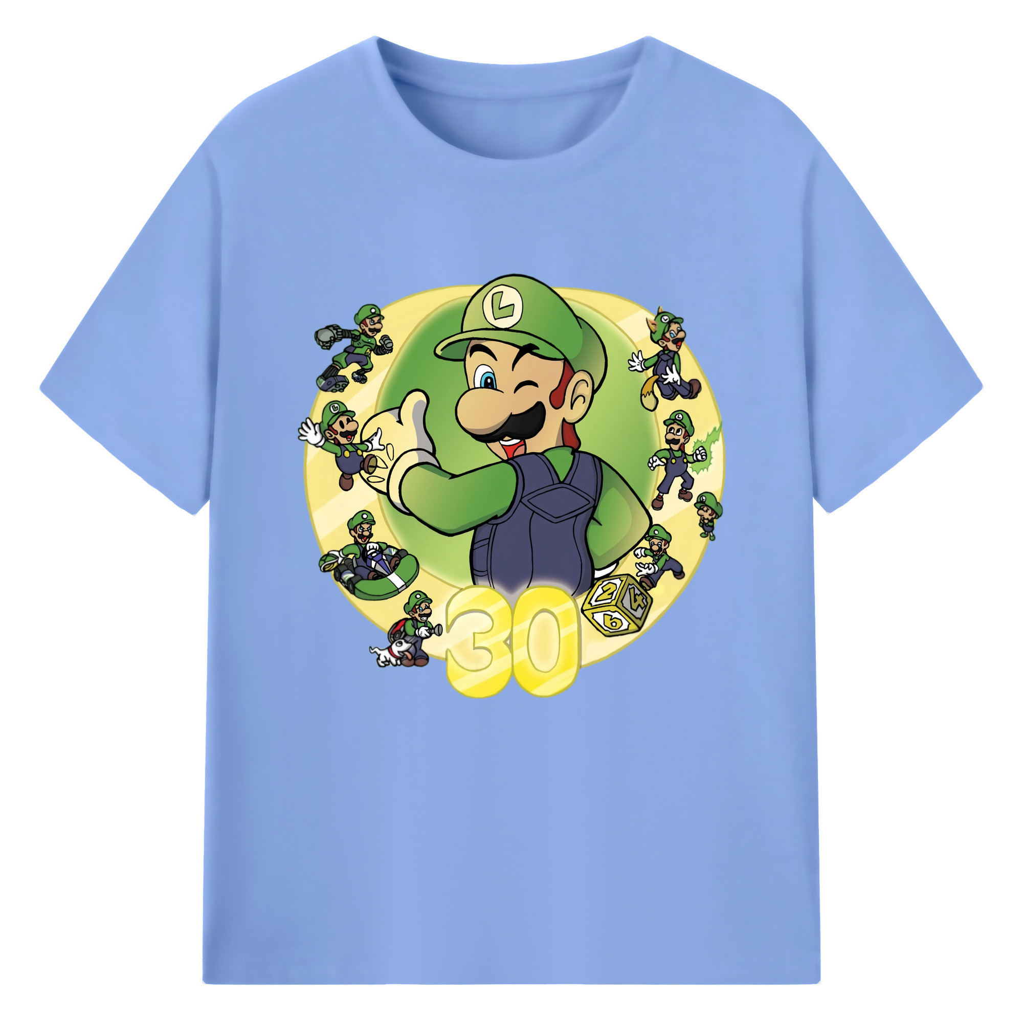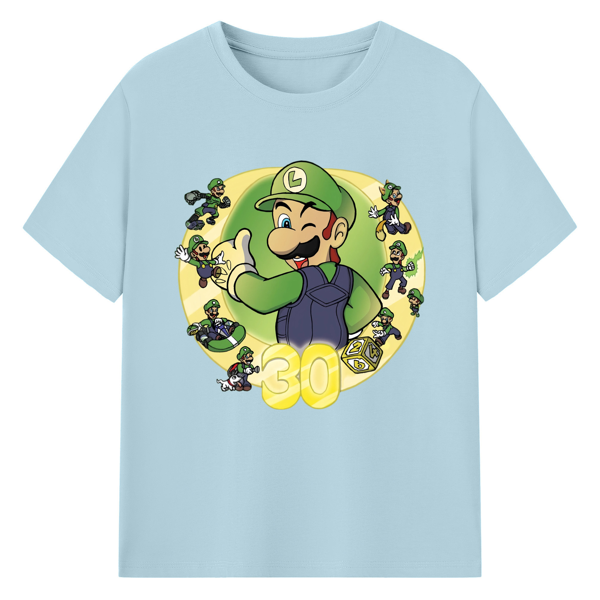 Nintendo Luigi 30th anniversary Graphic Tee - 180g Cotton T-Shirt With Front Heat Transfer Print – Soft, Lightweight, Fitted Design – Comfortable Casual Wear For Sports & Everyday Use