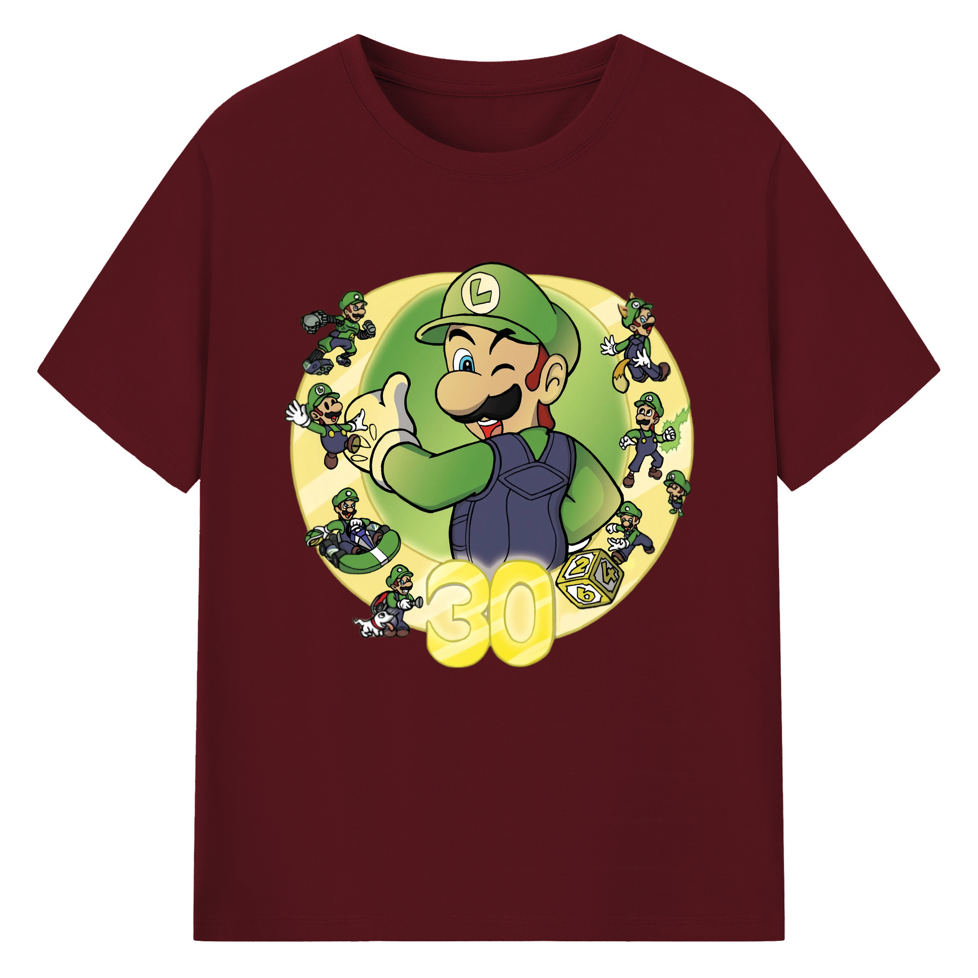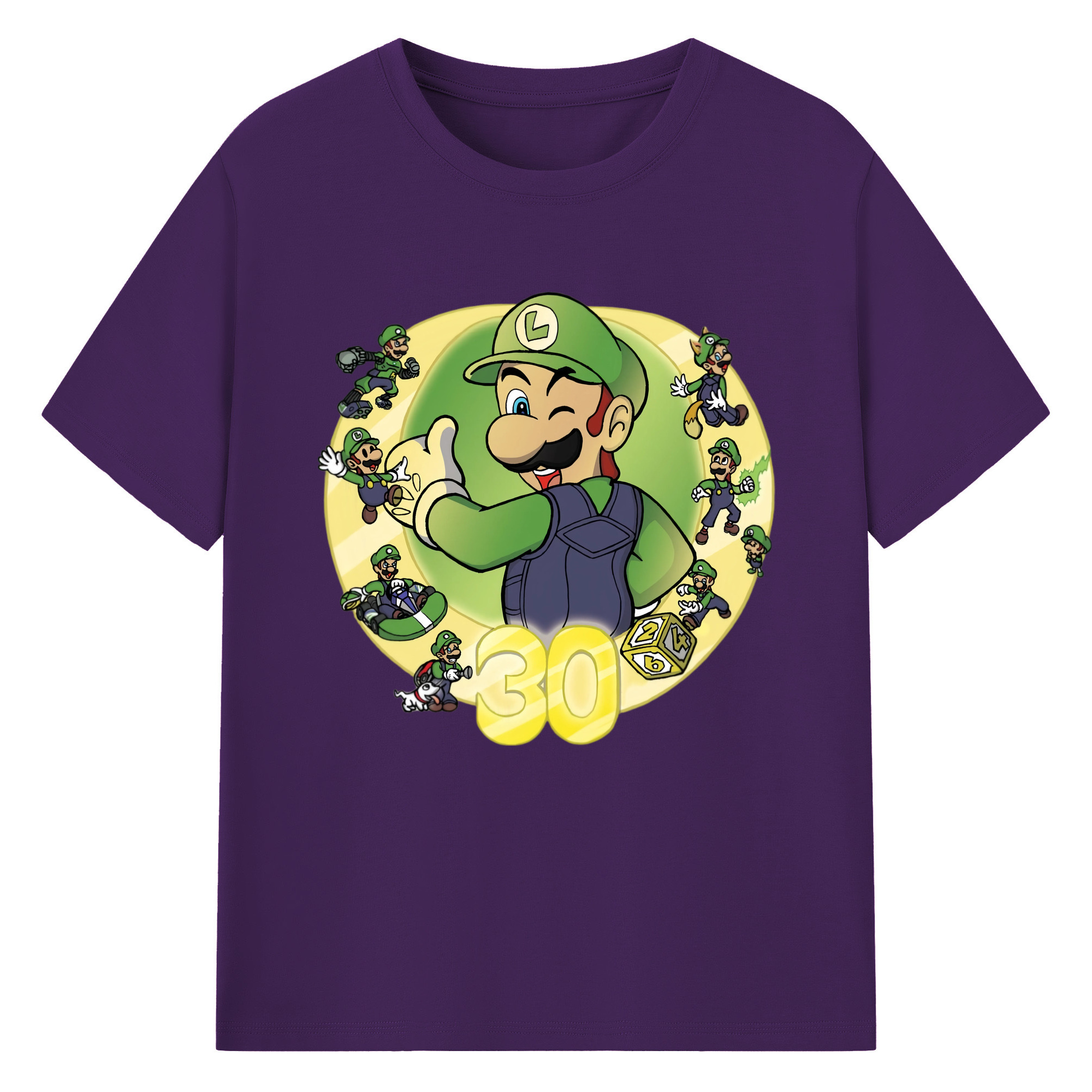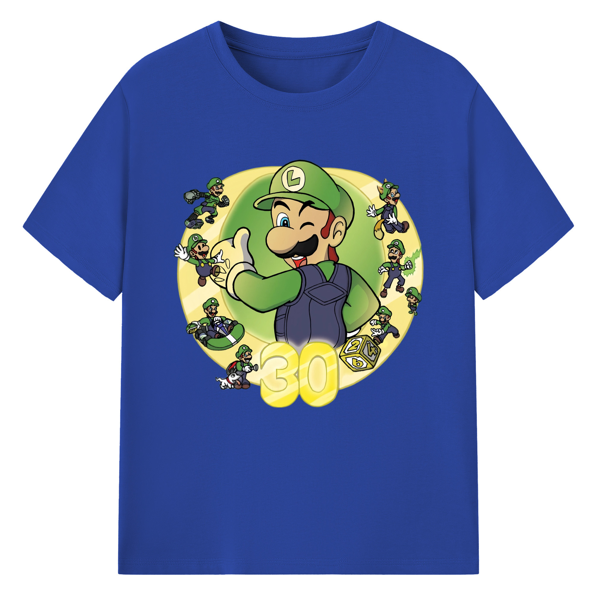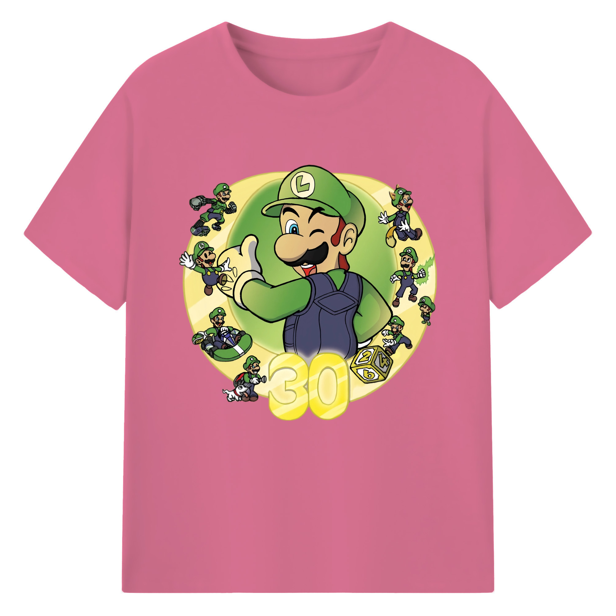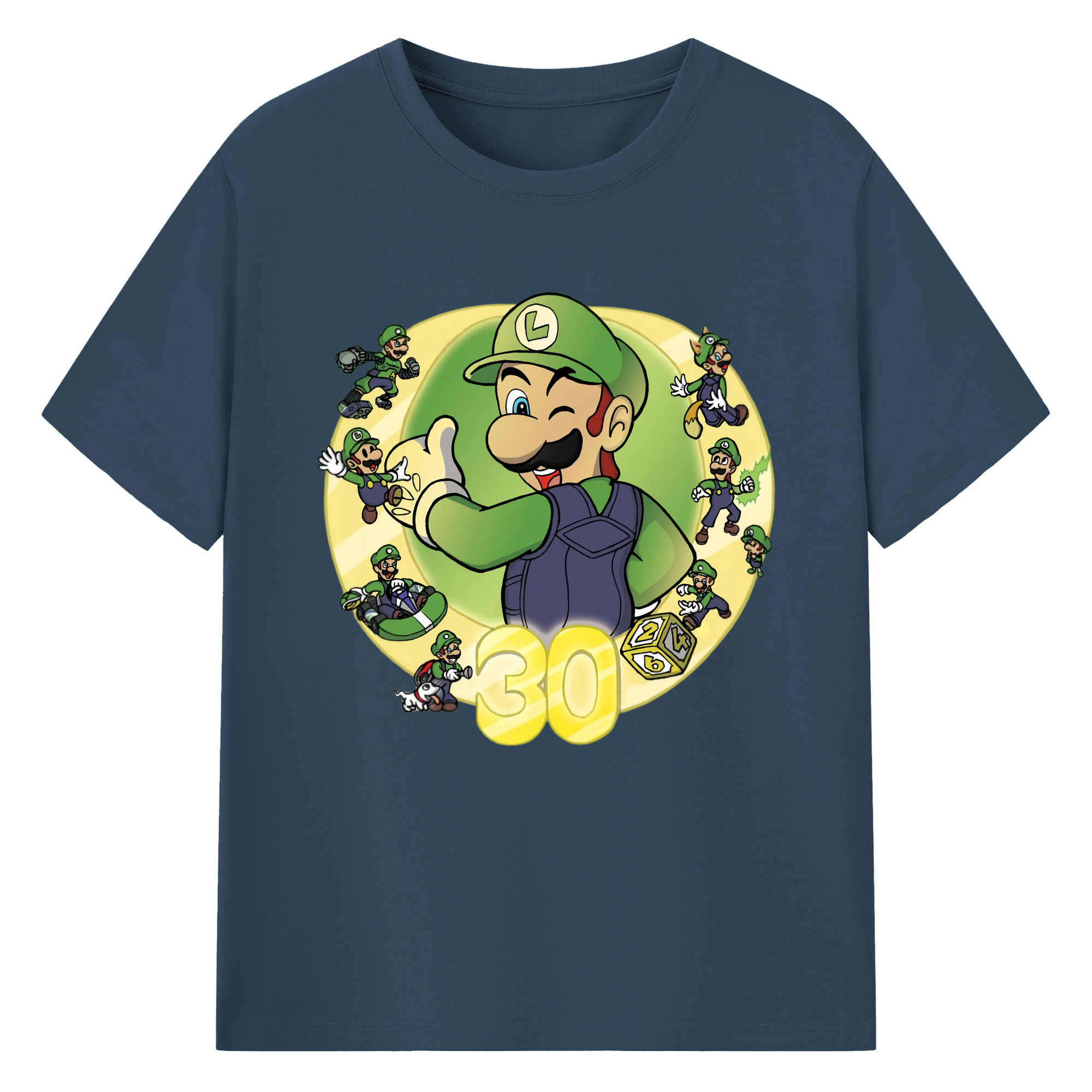 Nintendo Luigi 30th anniversary Graphic Tee - 180g Cotton T-Shirt With Front Heat Transfer Print – Soft, Lightweight, Fitted Design – Comfortable Casual Wear For Sports & Everyday Use