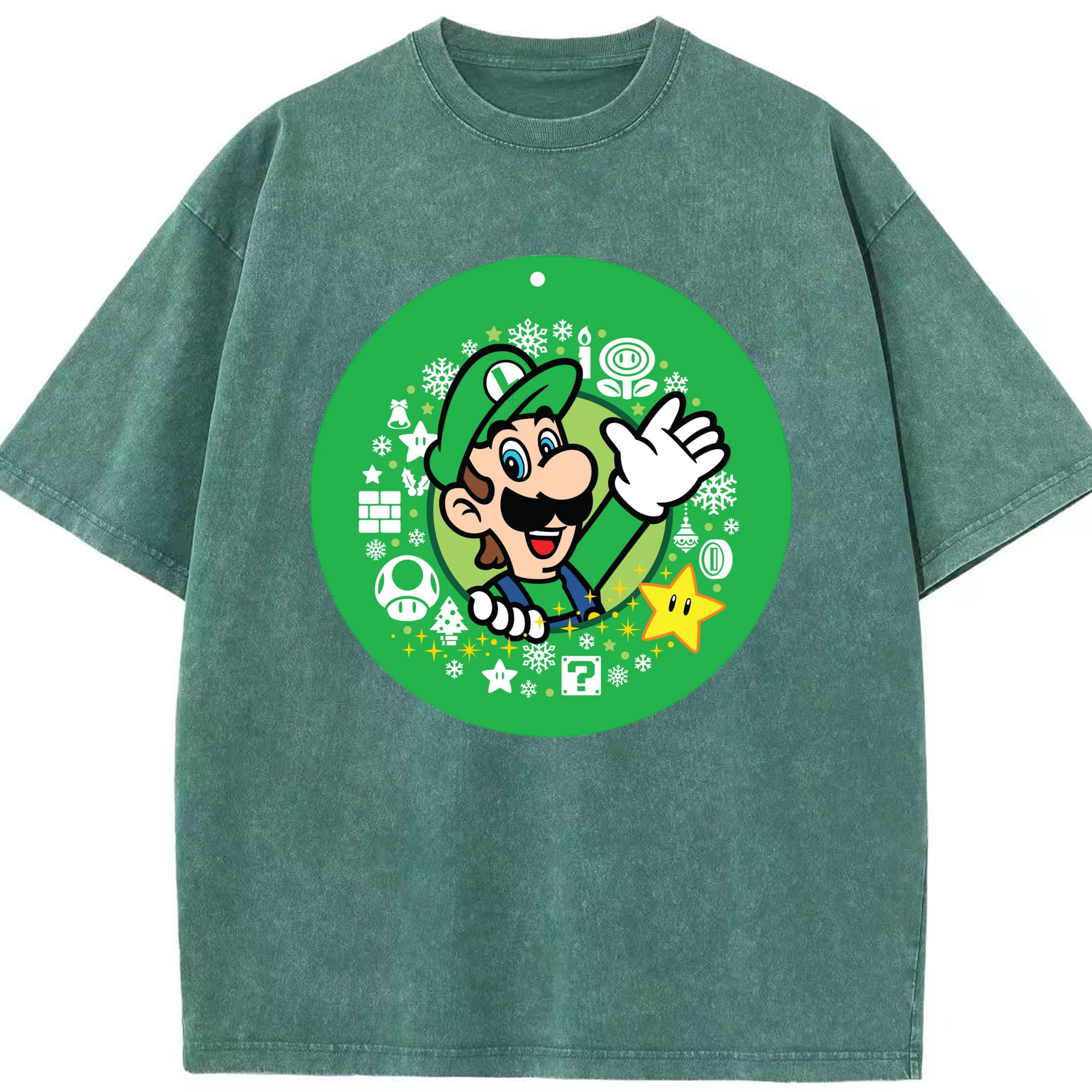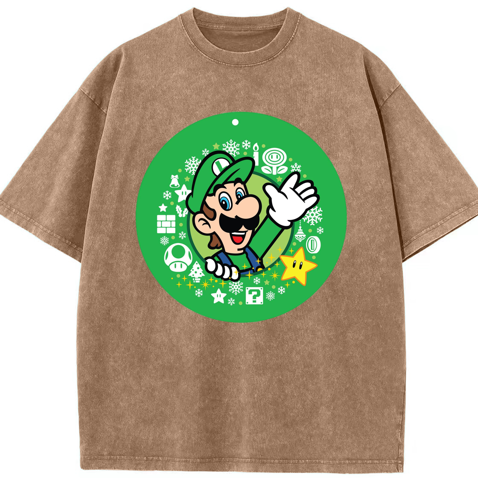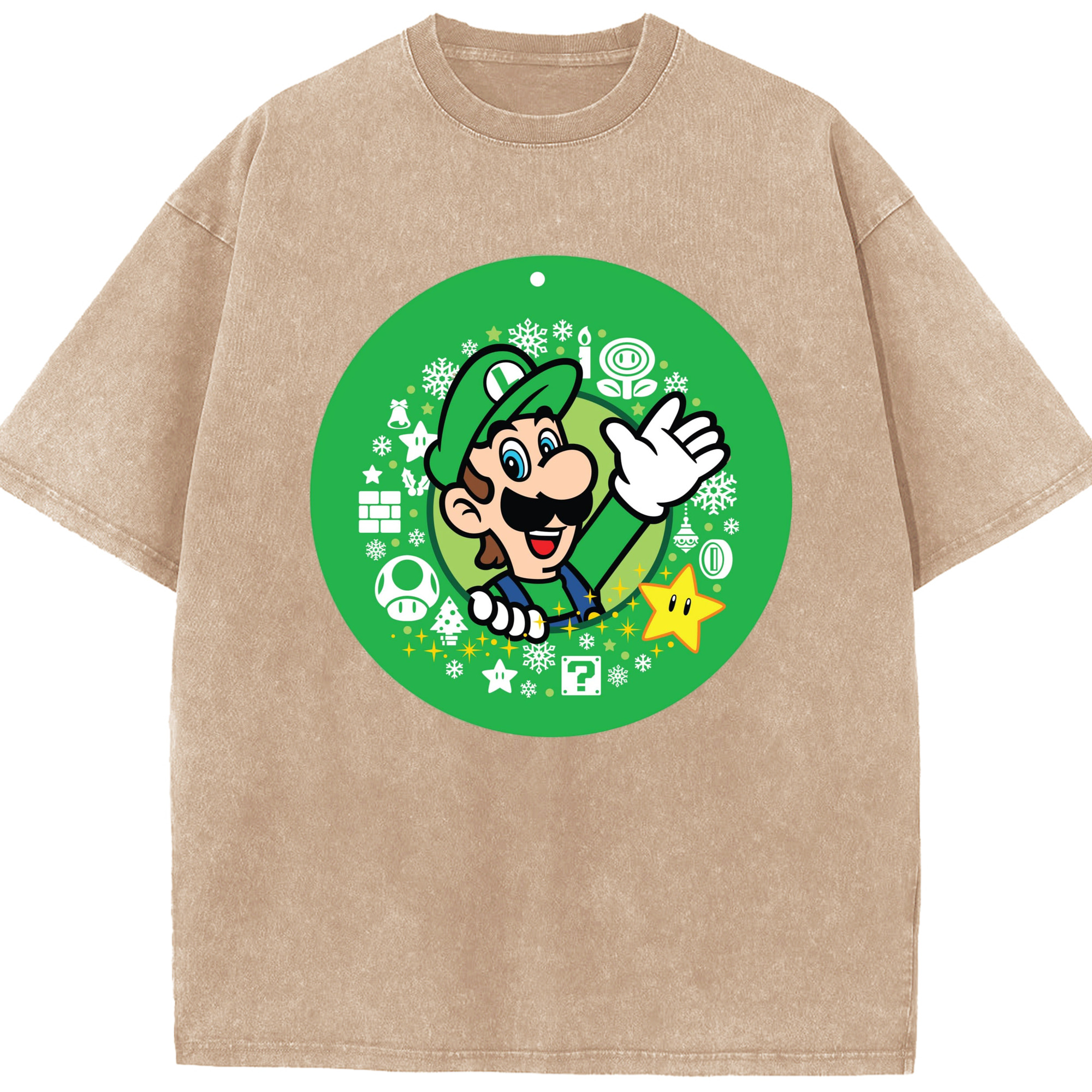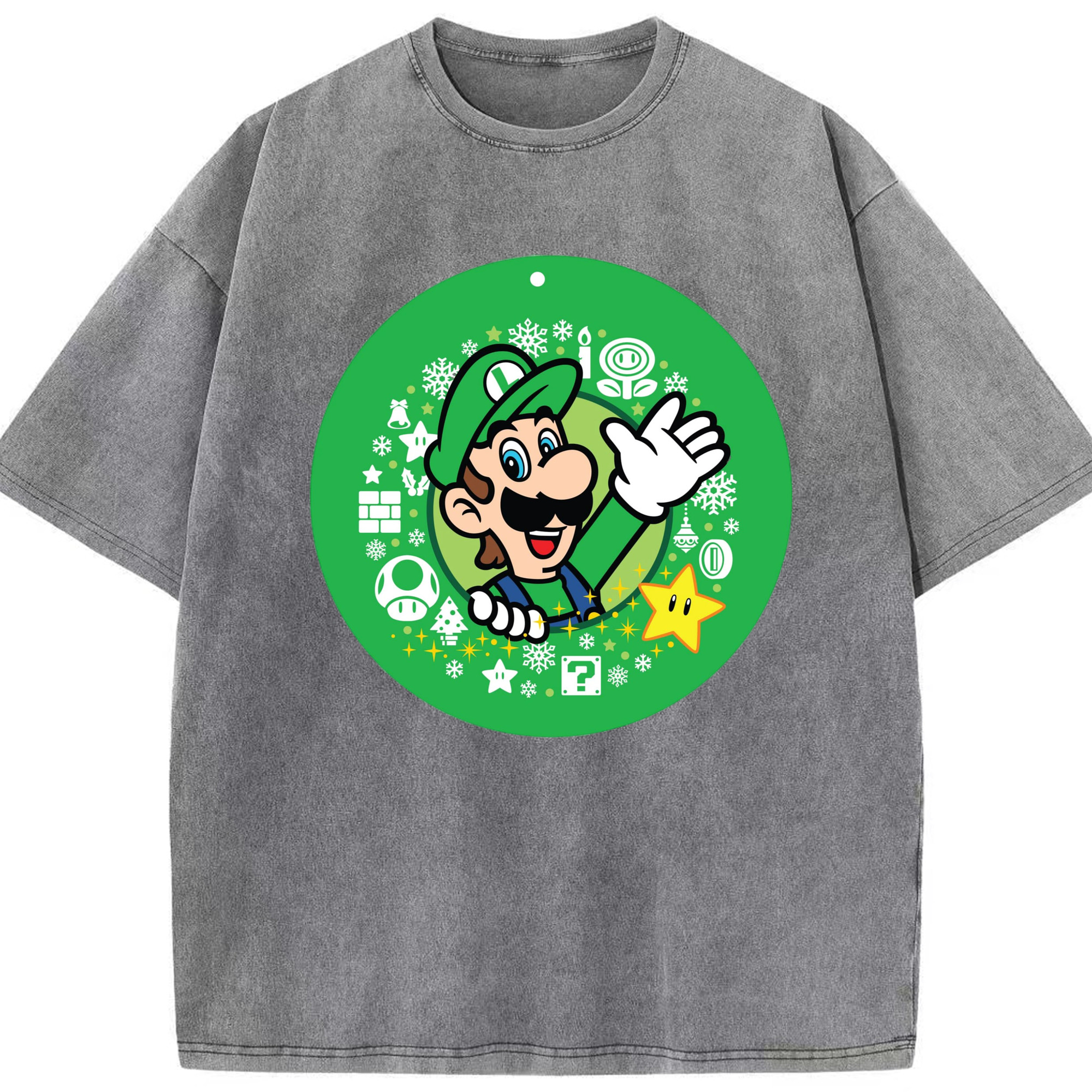 Nintendo Luigi cion Graphic Tee - Washed Vintage Look 230g Cotton Oversized T-Shirt With Front Heat Transfer Print – Soft, Lightweight, Stylish Fit – Comfortable Casual Wear For Sports & Everyday Use