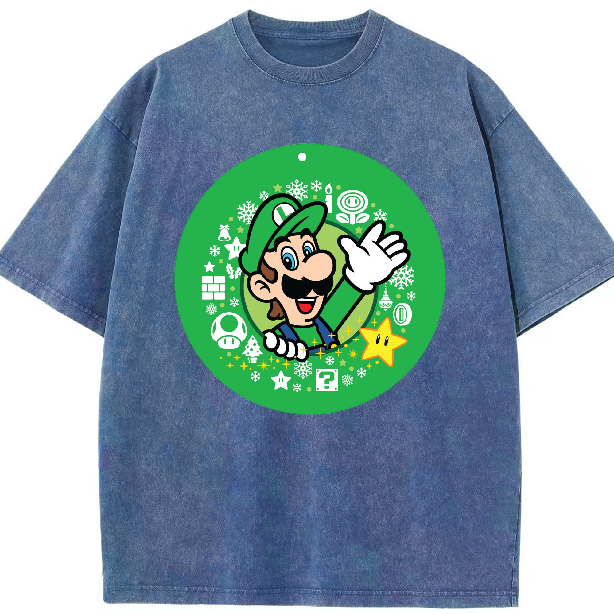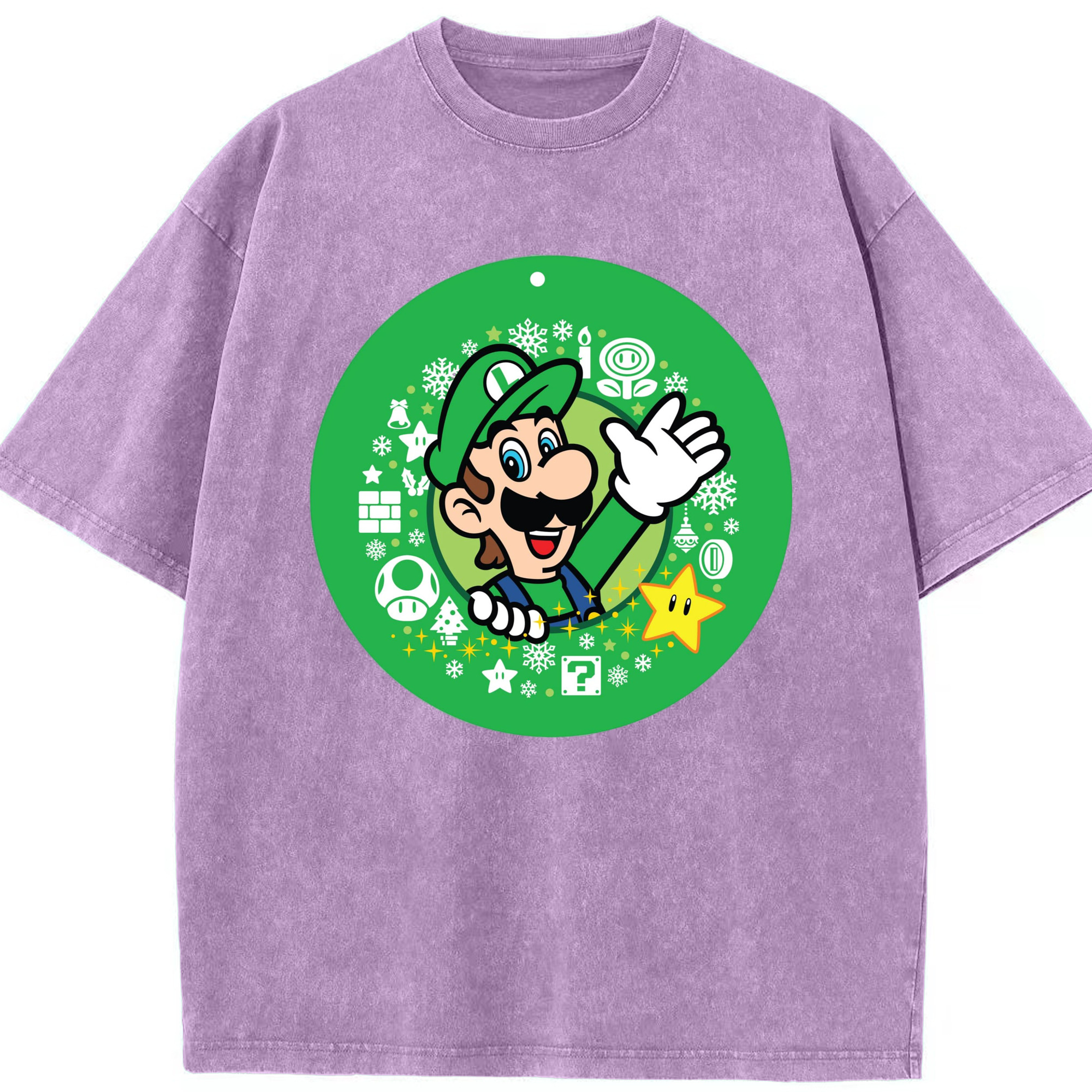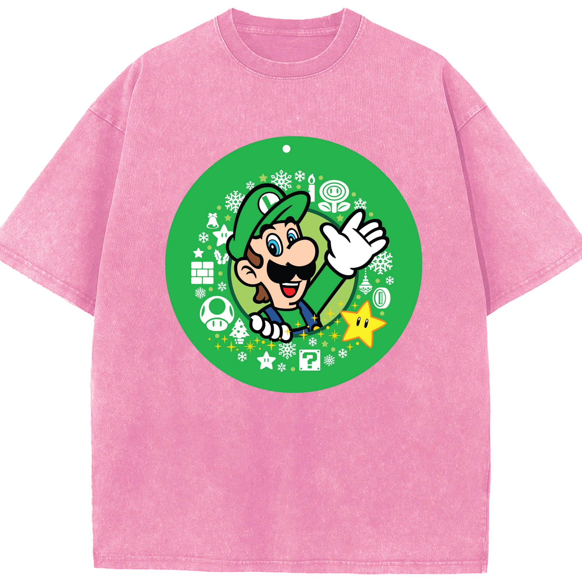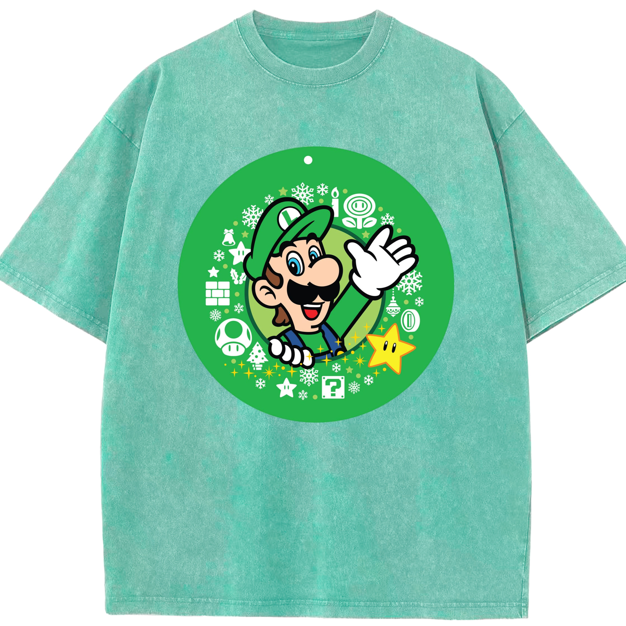 Nintendo Luigi cion Graphic Tee - Washed Vintage Look 230g Cotton Oversized T-Shirt With Front Heat Transfer Print – Soft, Lightweight, Stylish Fit – Comfortable Casual Wear For Sports & Everyday Use