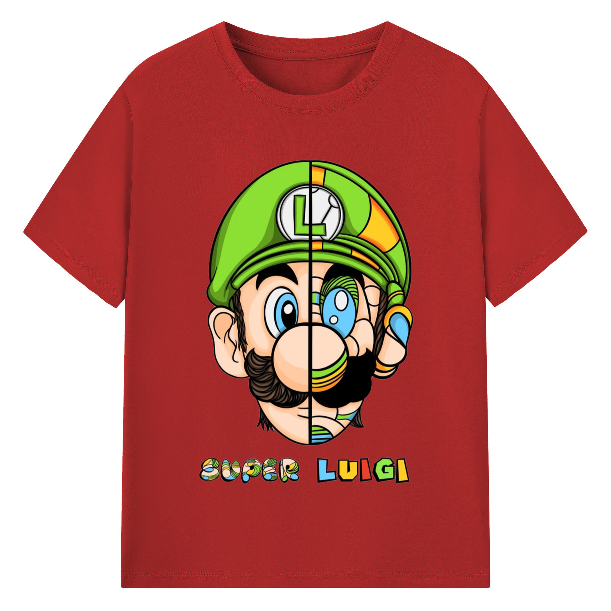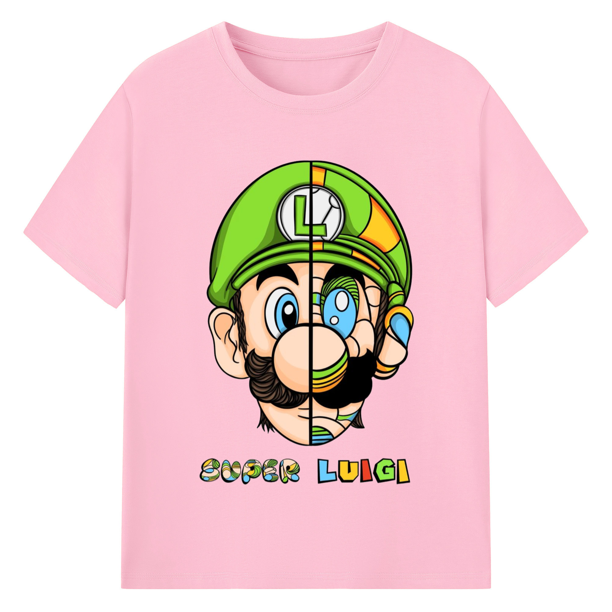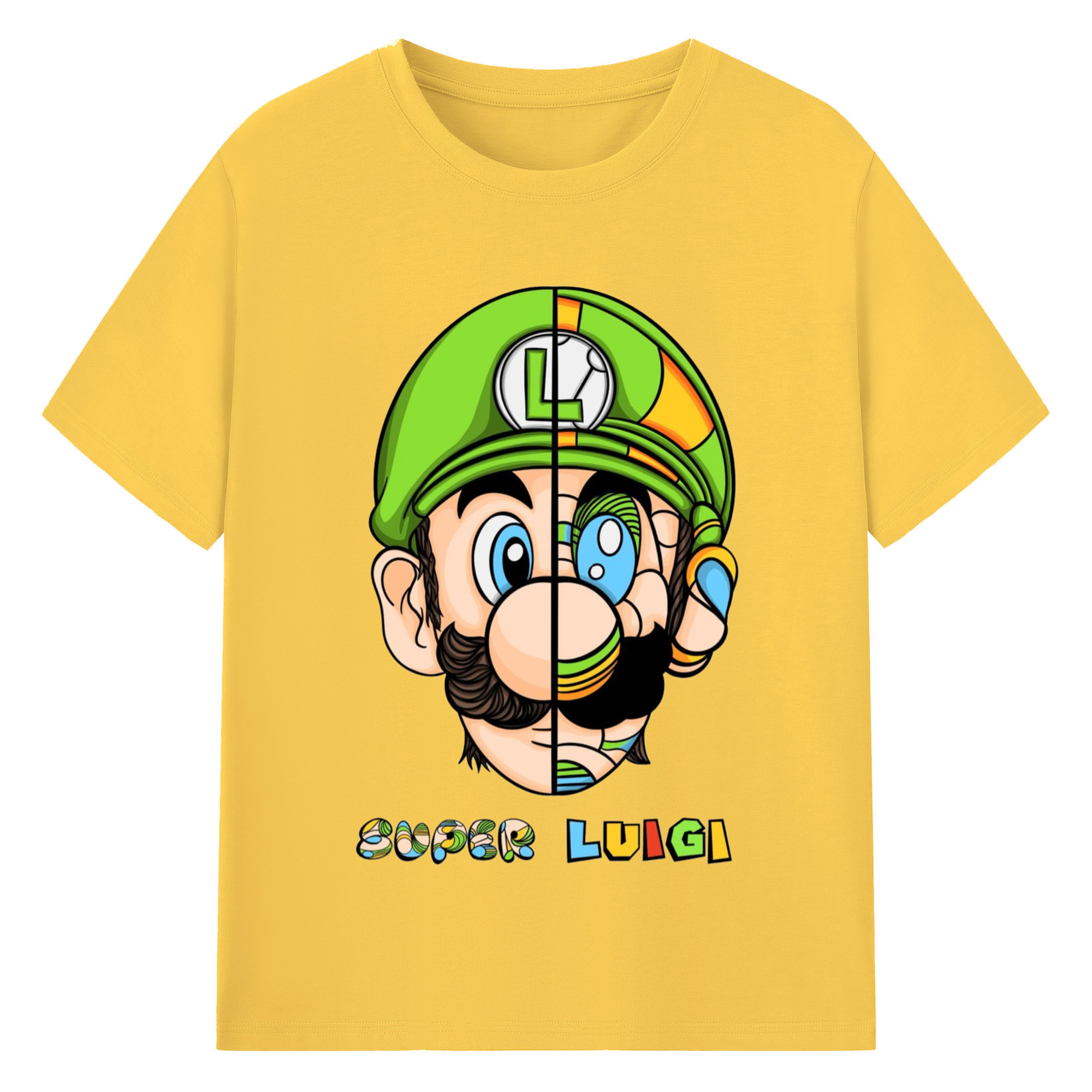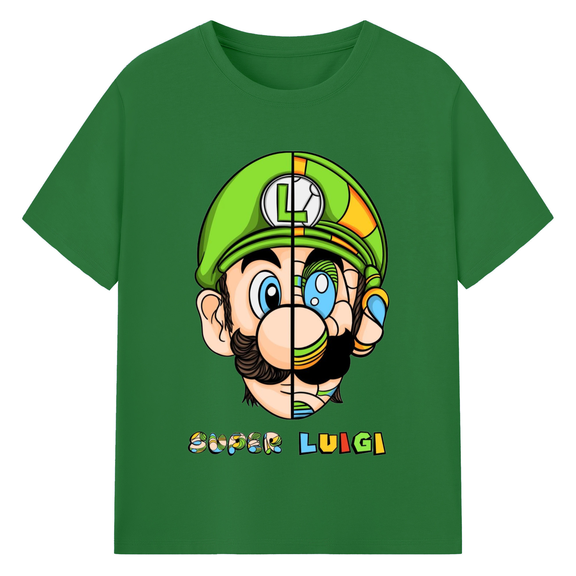 Nintendo Luigi Colored origami style t-shirt - 180g Cotton T-Shirt With Front Heat Transfer Print – Soft, Lightweight, Fitted Design – Comfortable Casual Wear For Sports & Everyday Use
