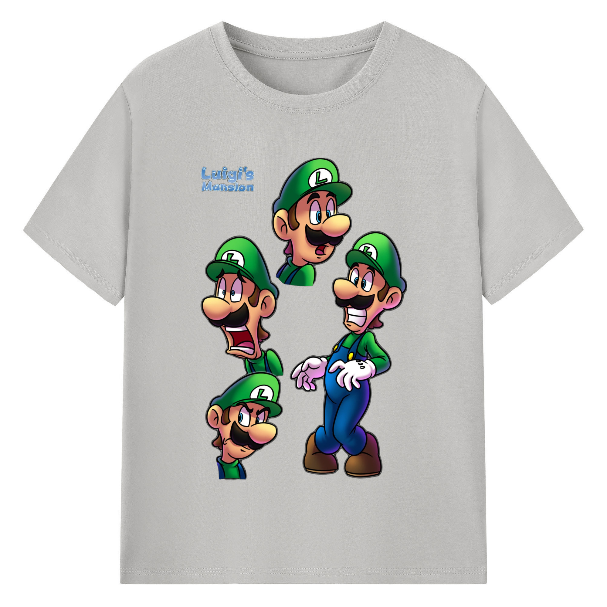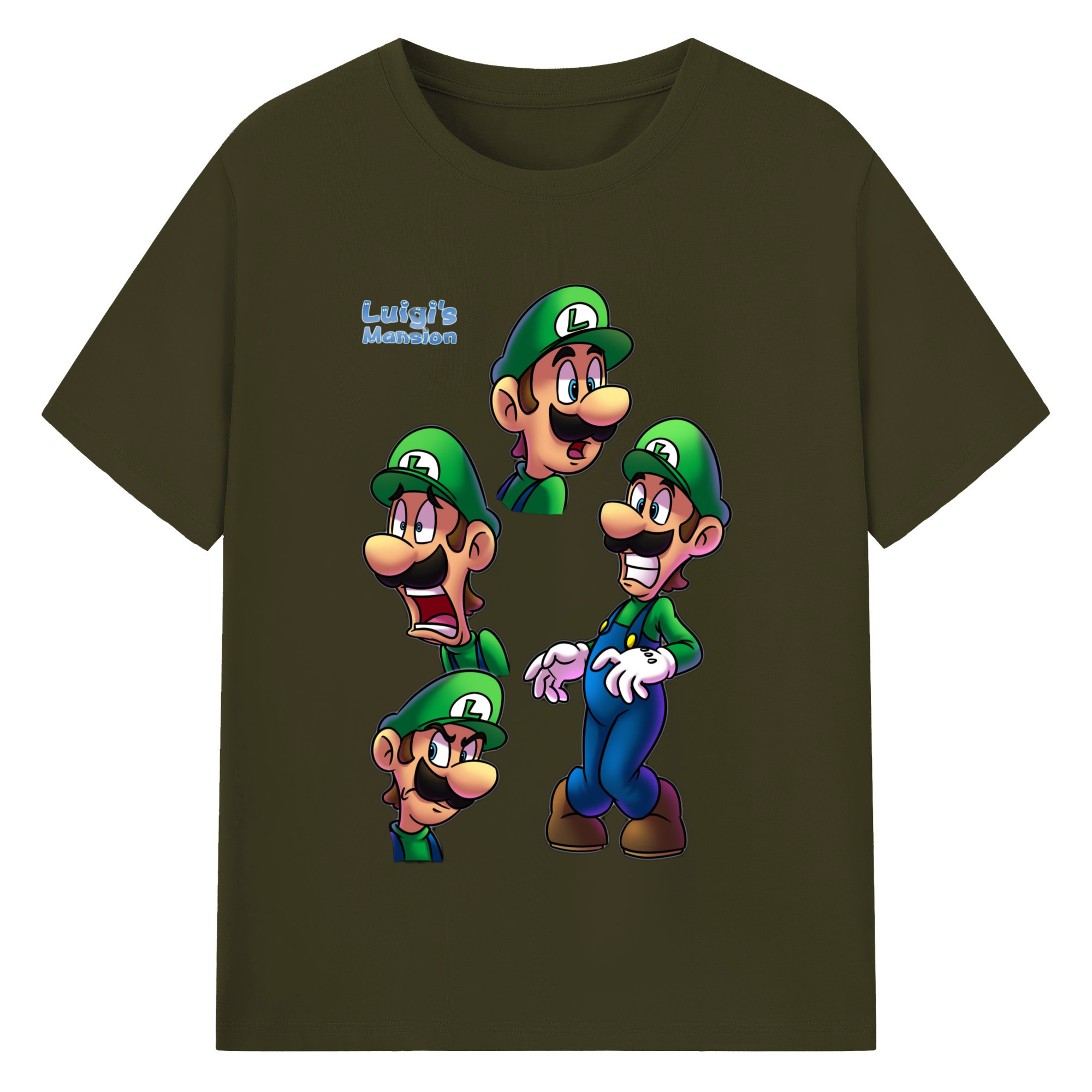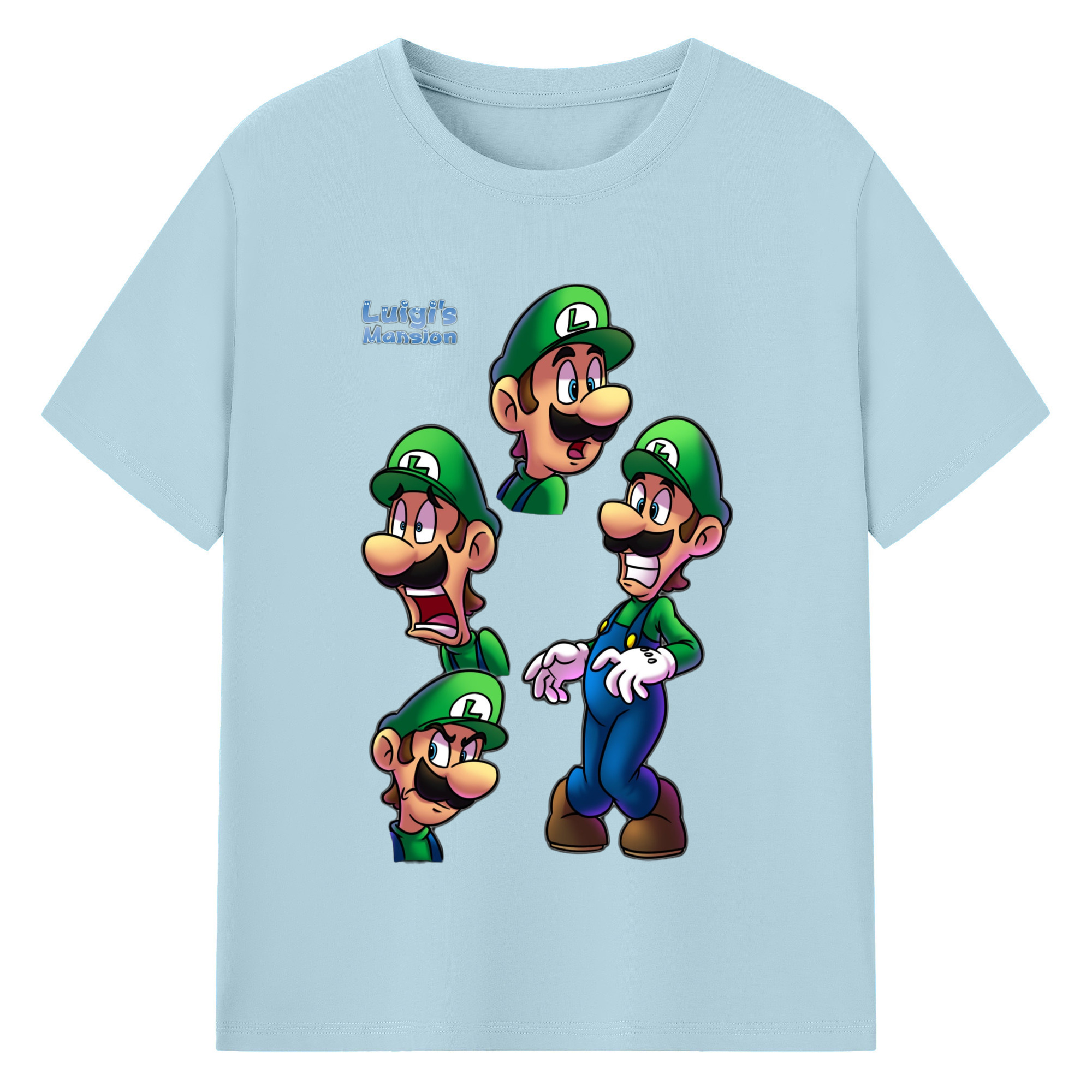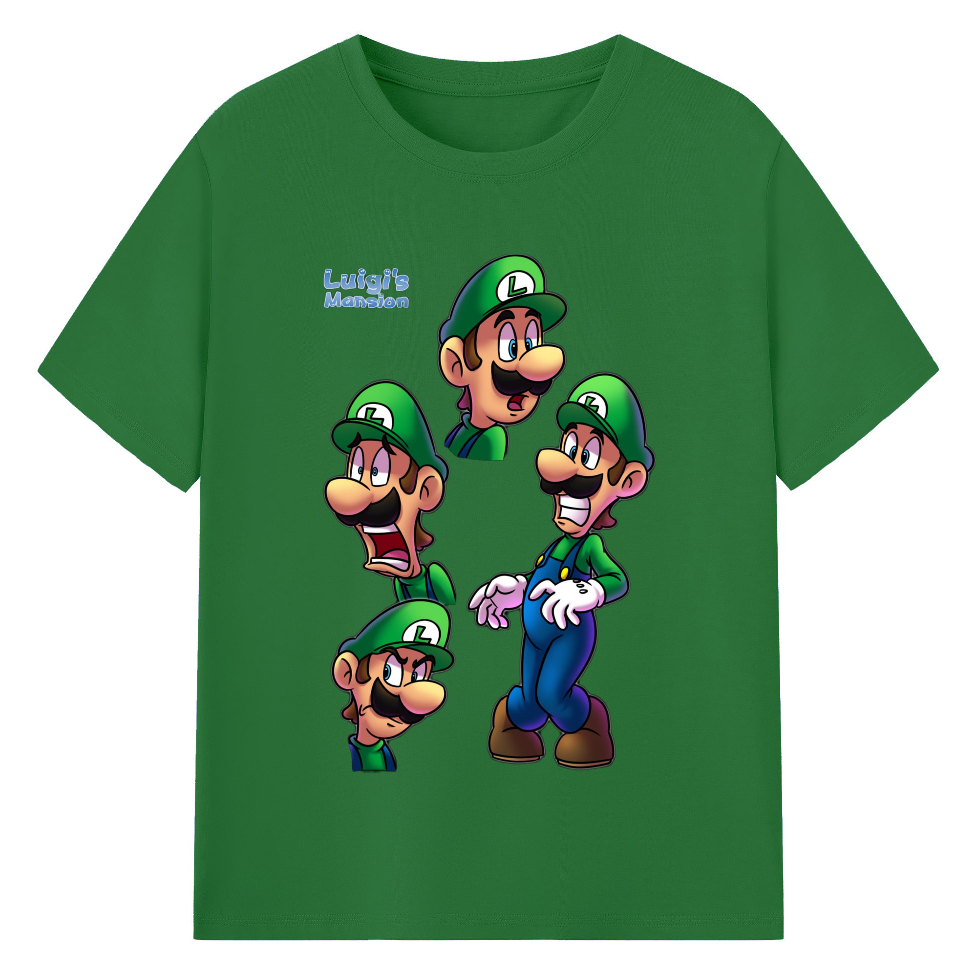 Nintendo Luigi fearful expression t-shirt - 180g Cotton T-Shirt With Front Heat Transfer Print – Soft, Lightweight, Fitted Design – Comfortable Casual Wear For Sports & Everyday Use