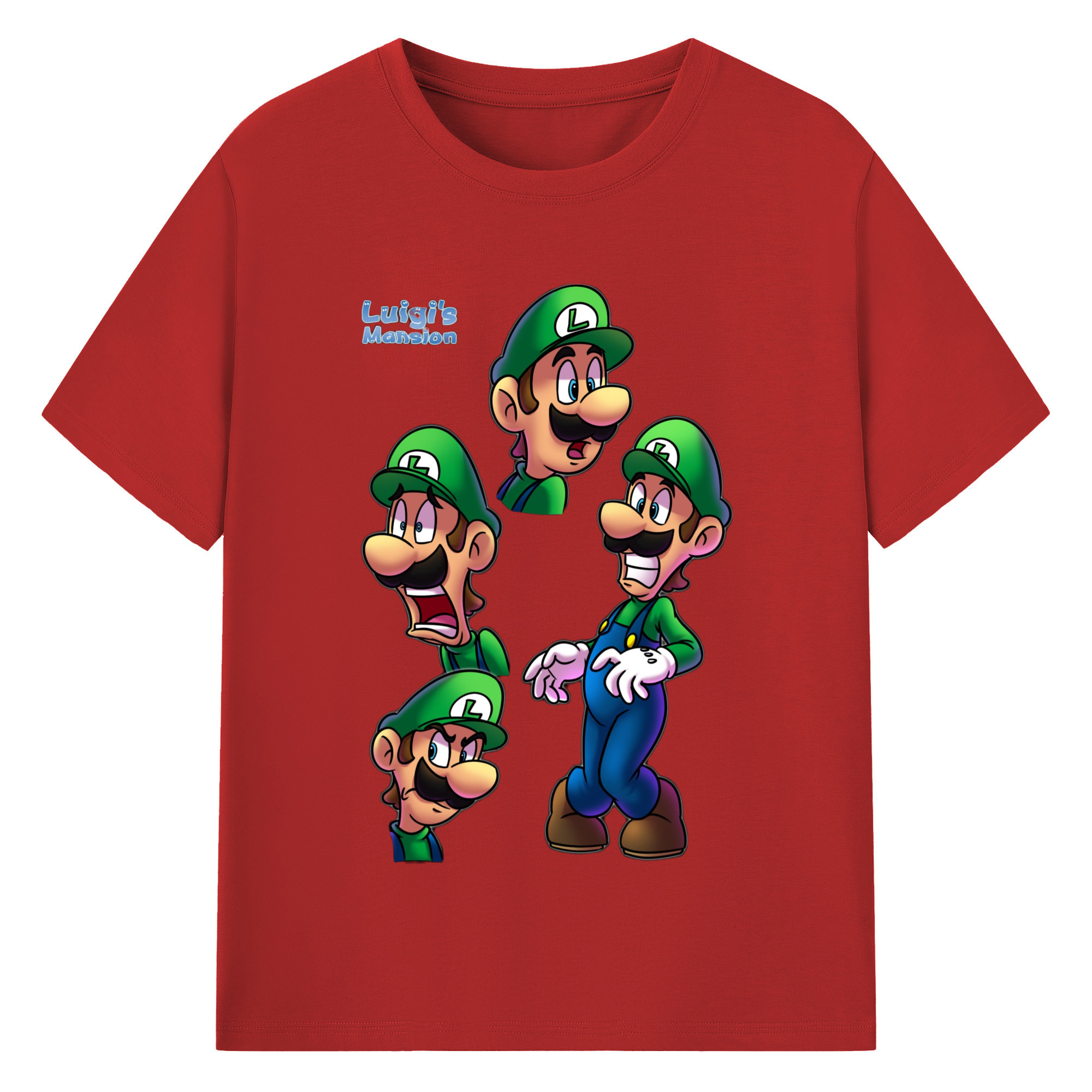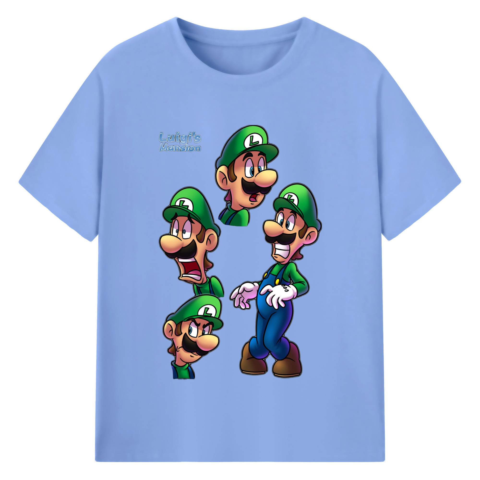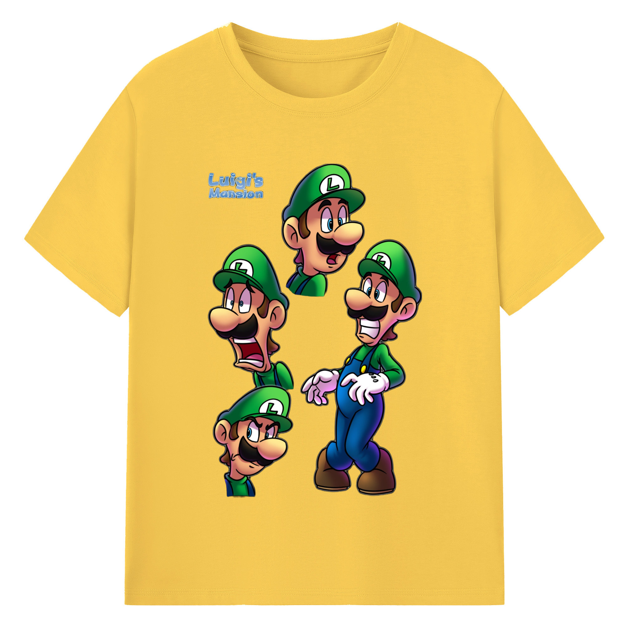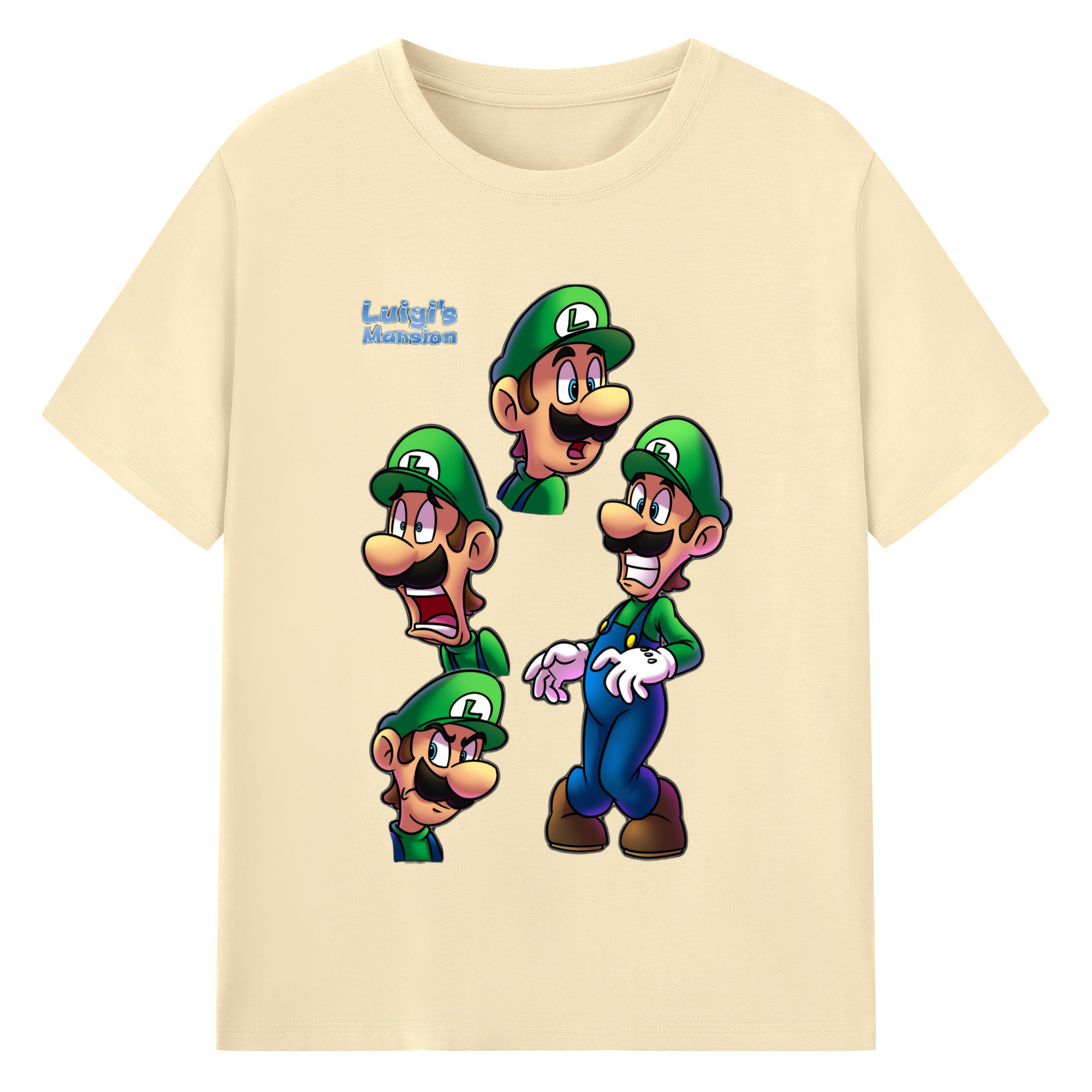 Nintendo Luigi fearful expression t-shirt - 180g Cotton T-Shirt With Front Heat Transfer Print – Soft, Lightweight, Fitted Design – Comfortable Casual Wear For Sports & Everyday Use