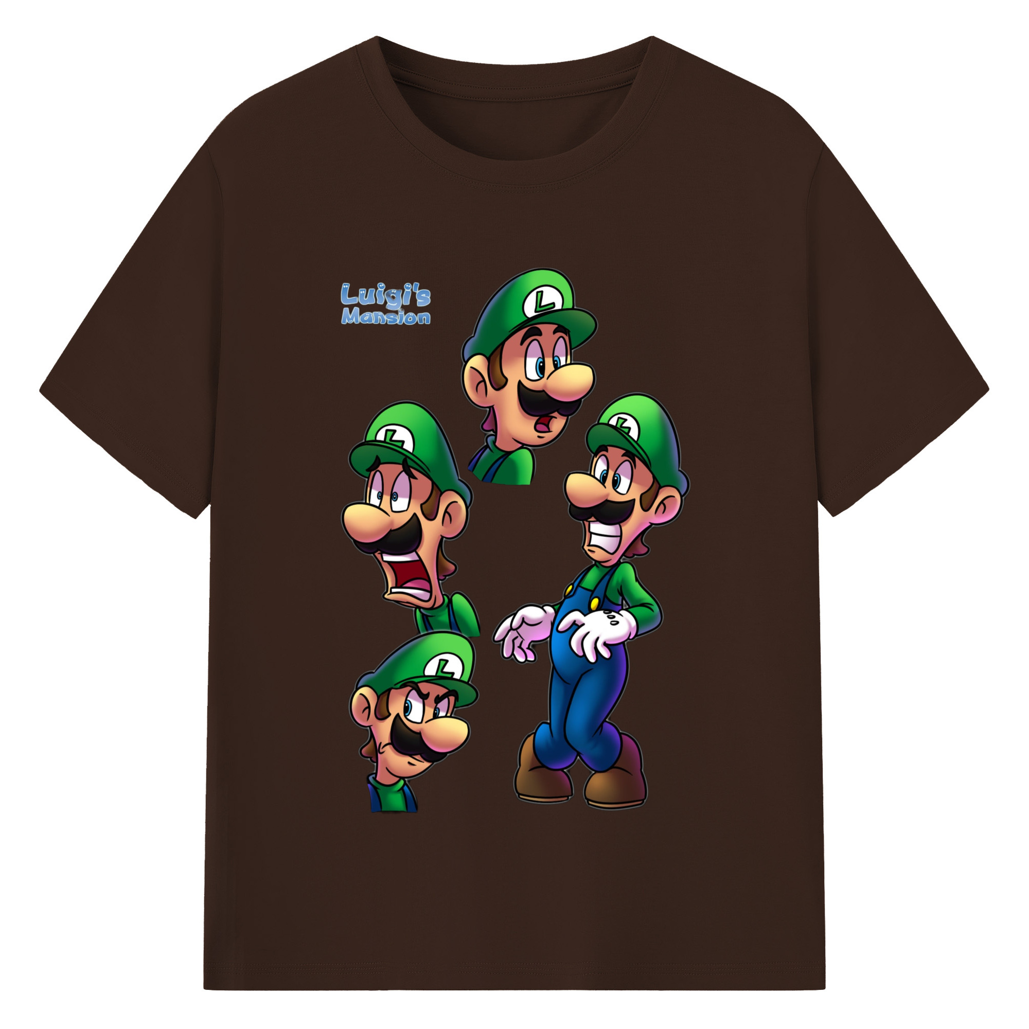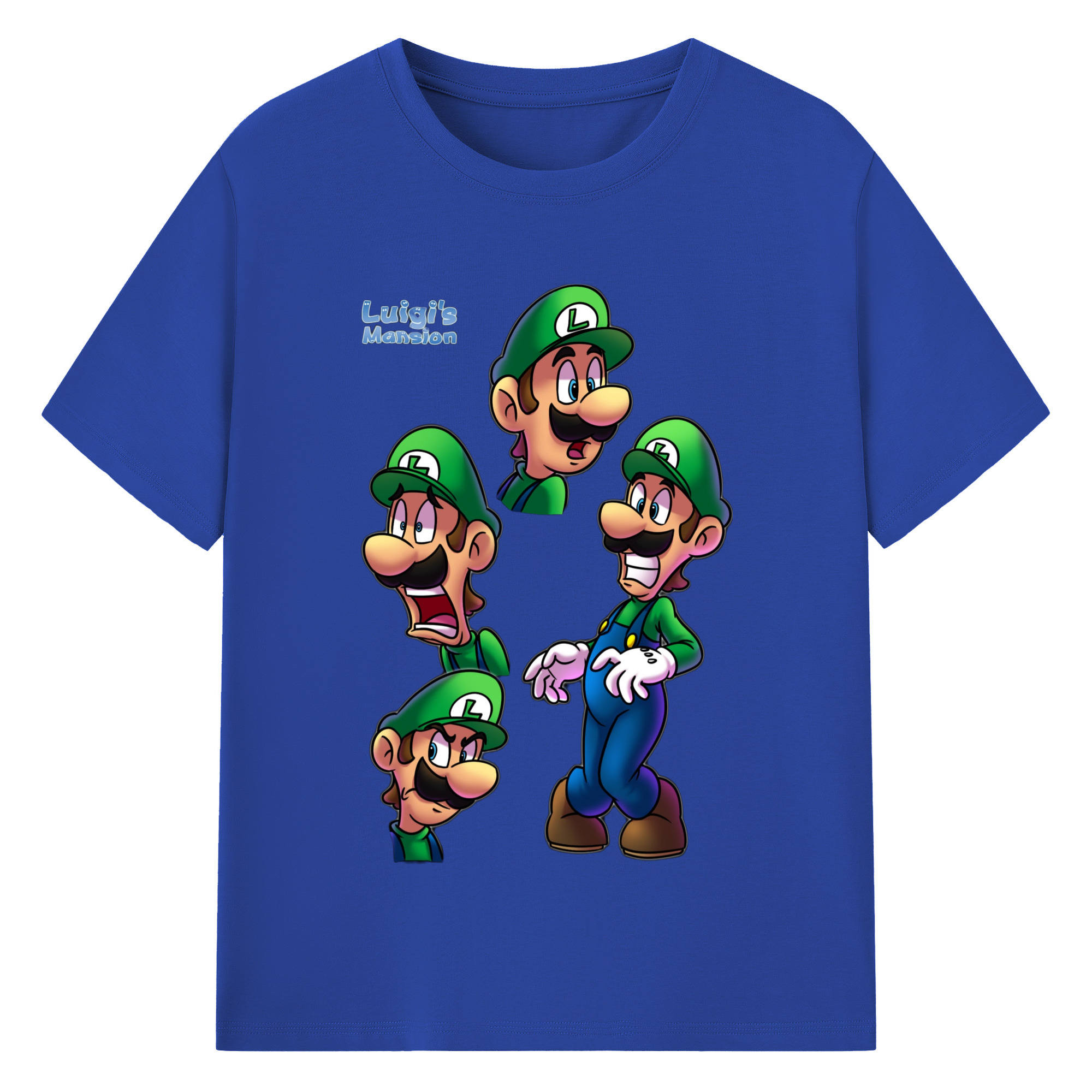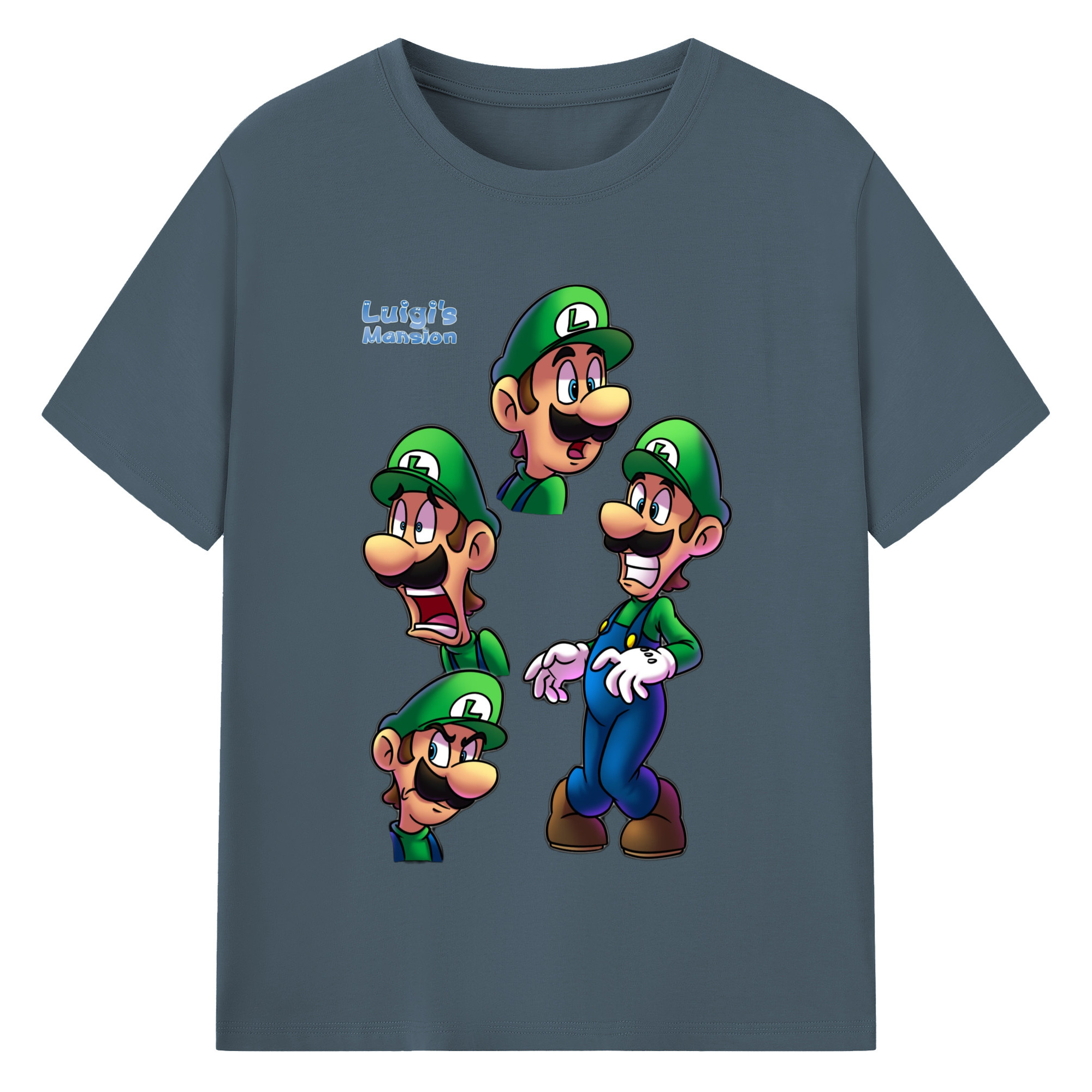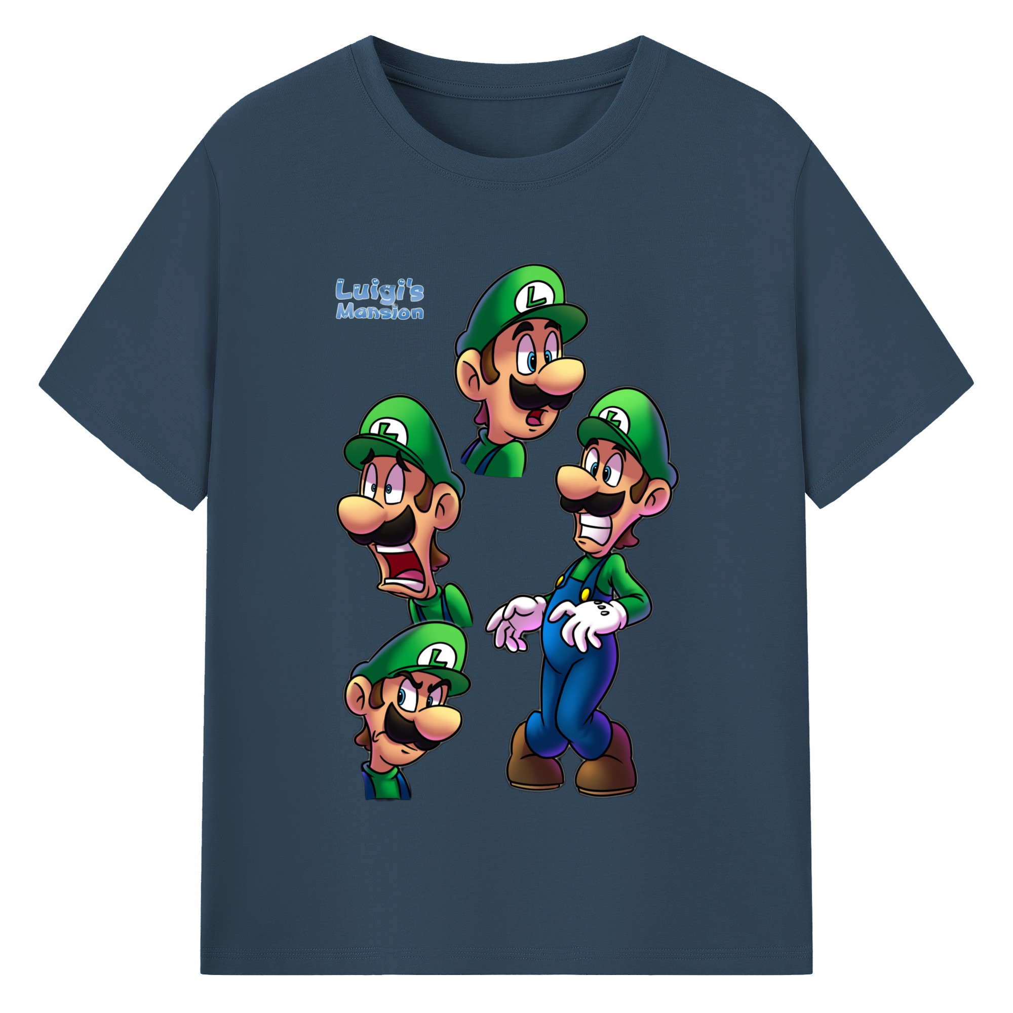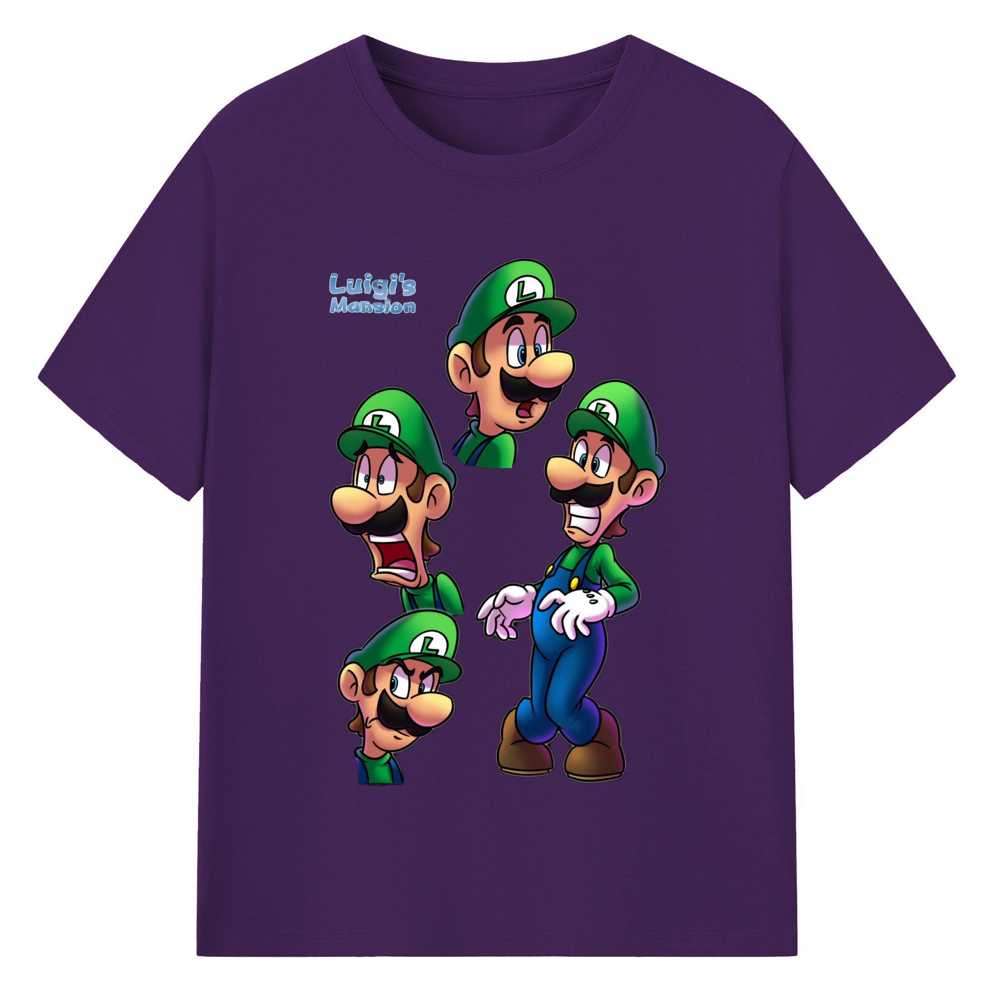 Nintendo Luigi fearful expression t-shirt - 180g Cotton T-Shirt With Front Heat Transfer Print – Soft, Lightweight, Fitted Design – Comfortable Casual Wear For Sports & Everyday Use