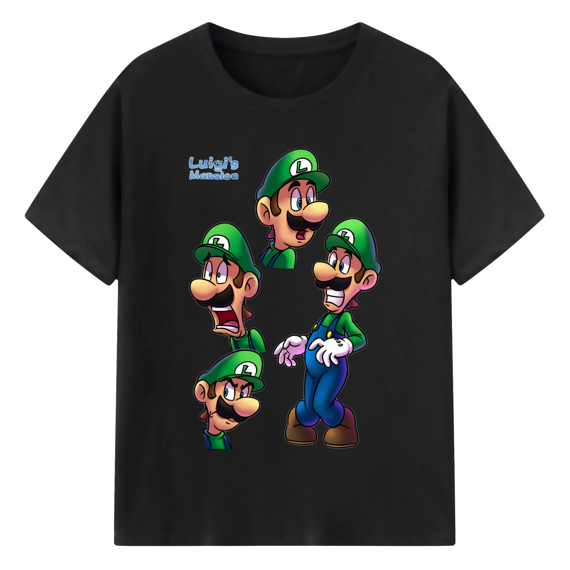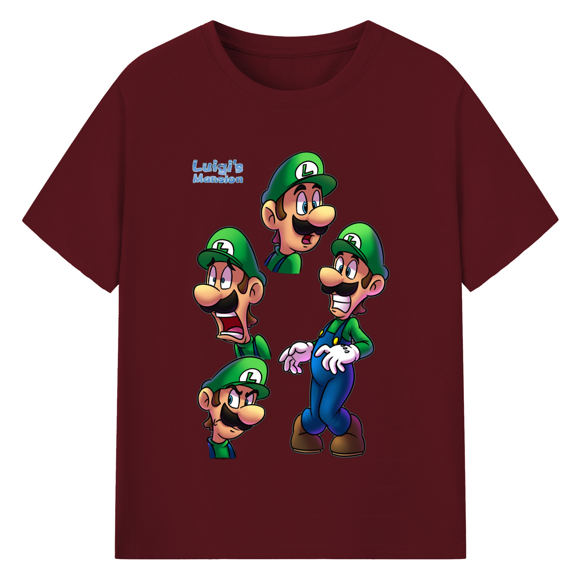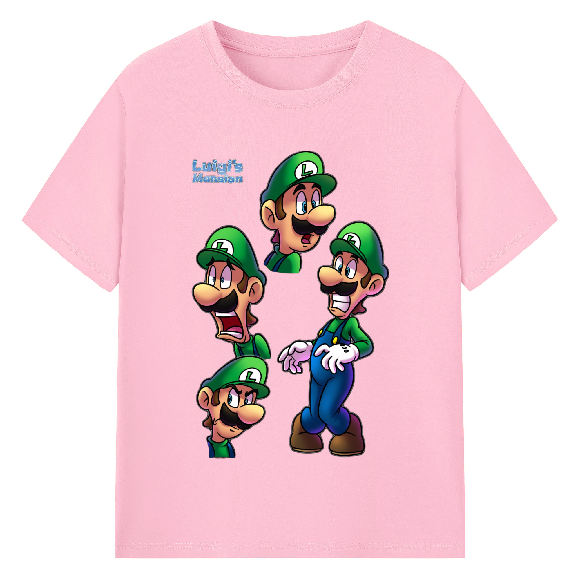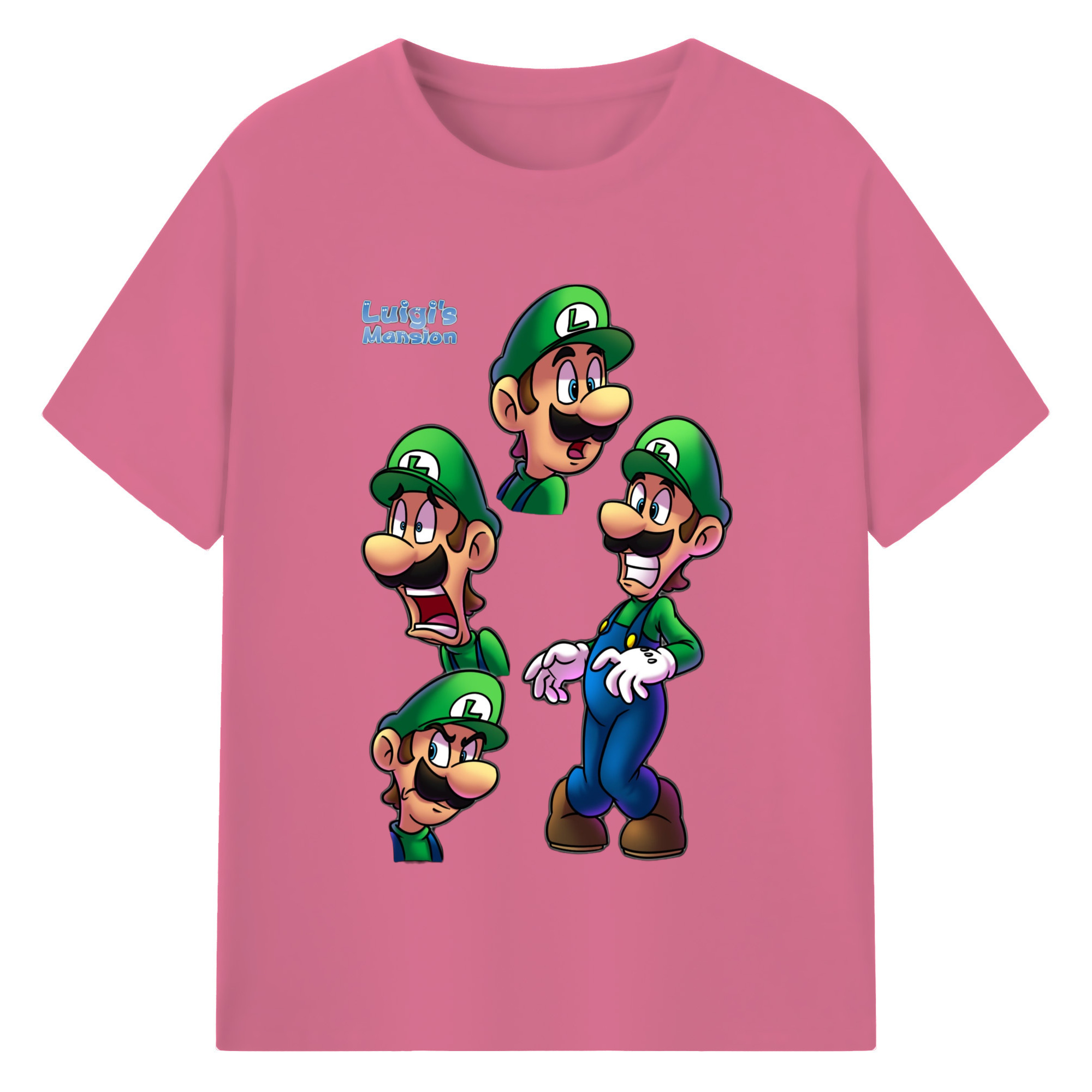 Nintendo Luigi fearful expression t-shirt - 180g Cotton T-Shirt With Front Heat Transfer Print – Soft, Lightweight, Fitted Design – Comfortable Casual Wear For Sports & Everyday Use