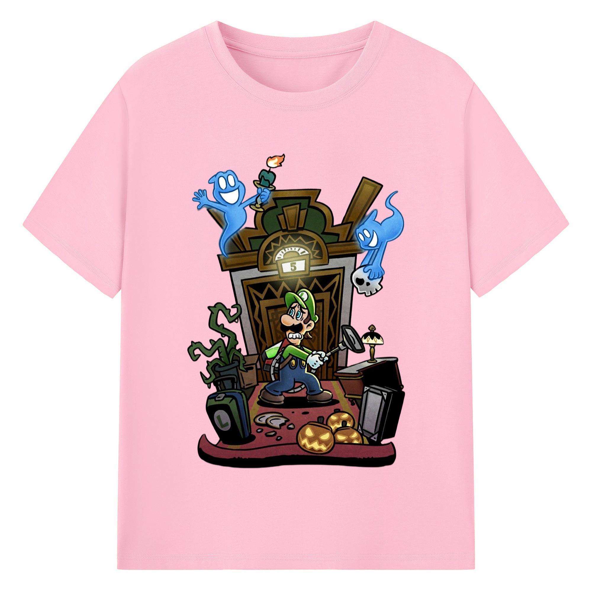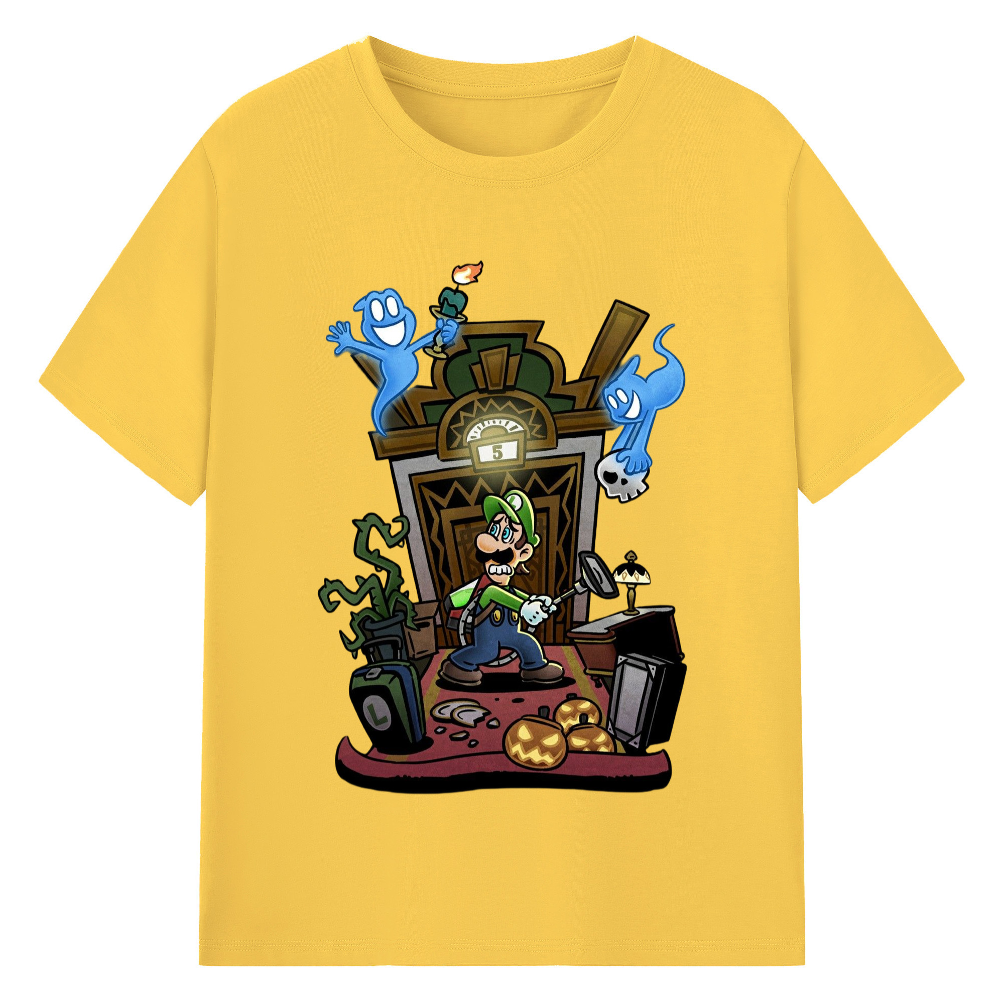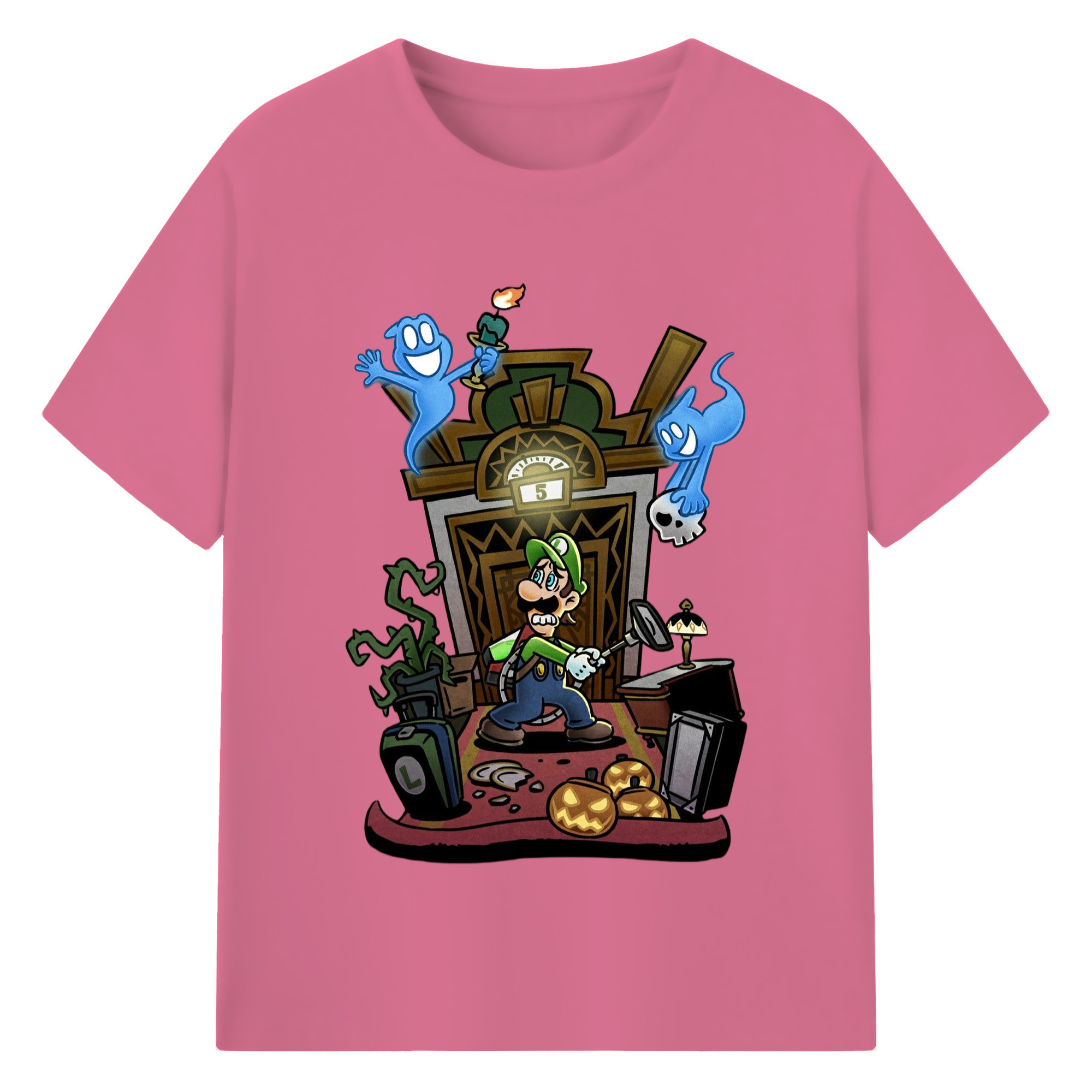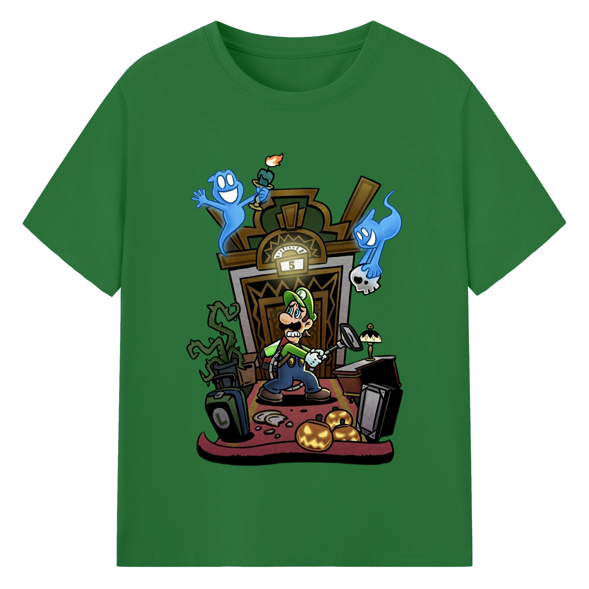 Nintendo Luigi Luigi's Mansion T-shirt - 180g Cotton T-Shirt With Front Heat Transfer Print – Soft, Lightweight, Fitted Design – Comfortable Casual Wear For Sports & Everyday Use