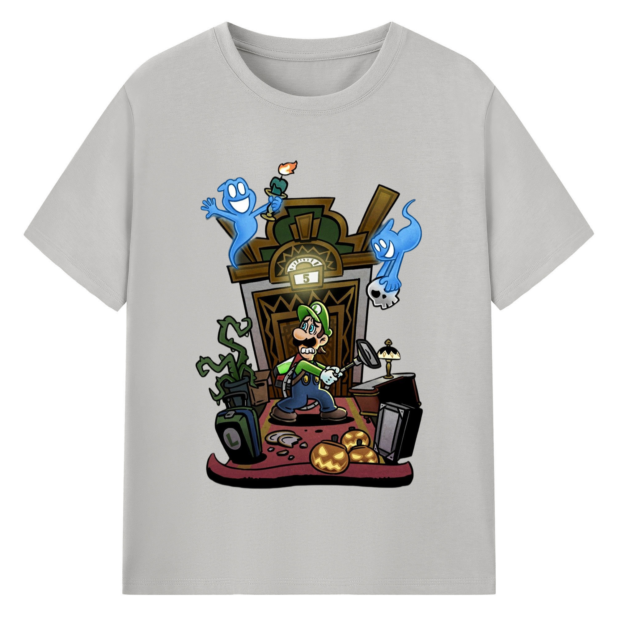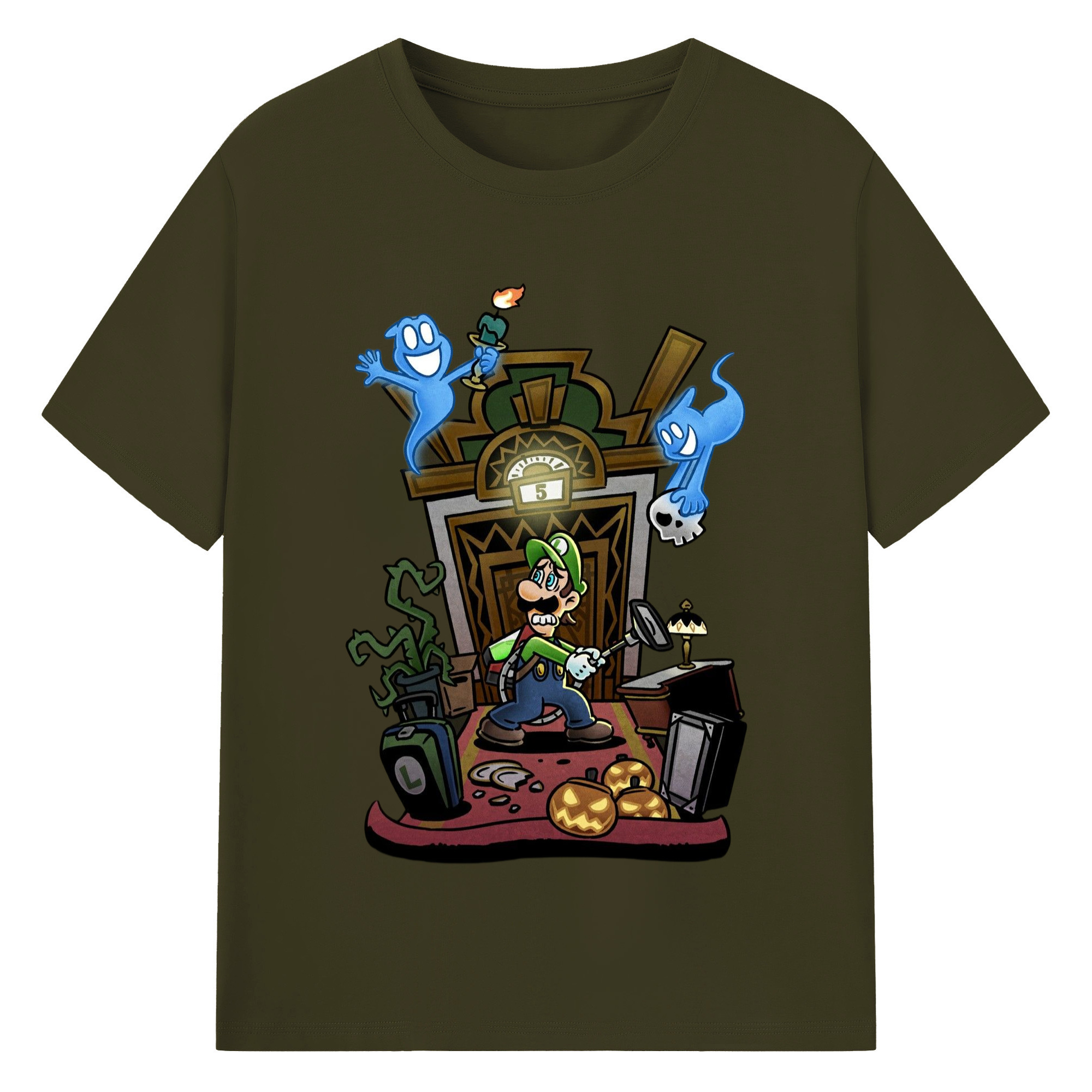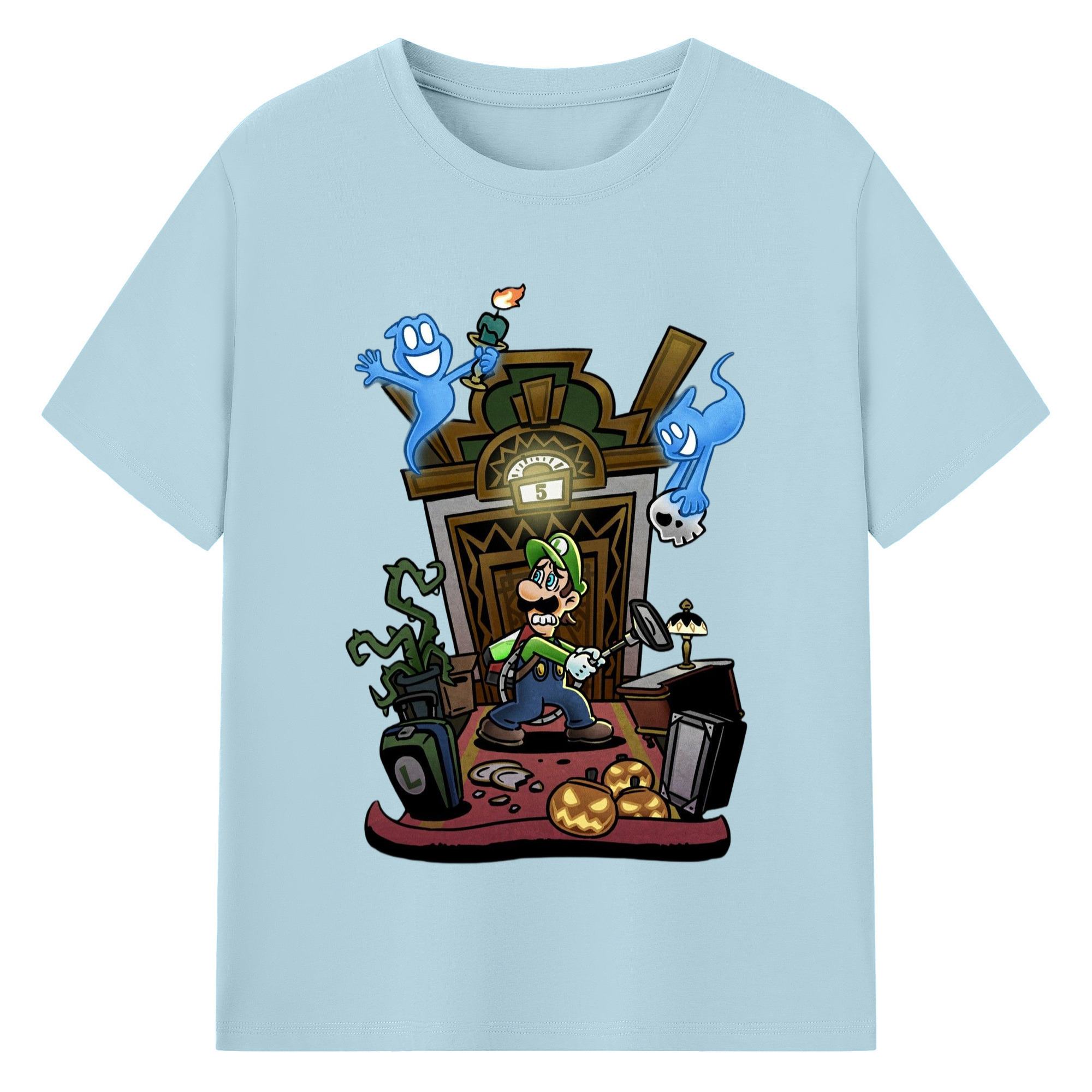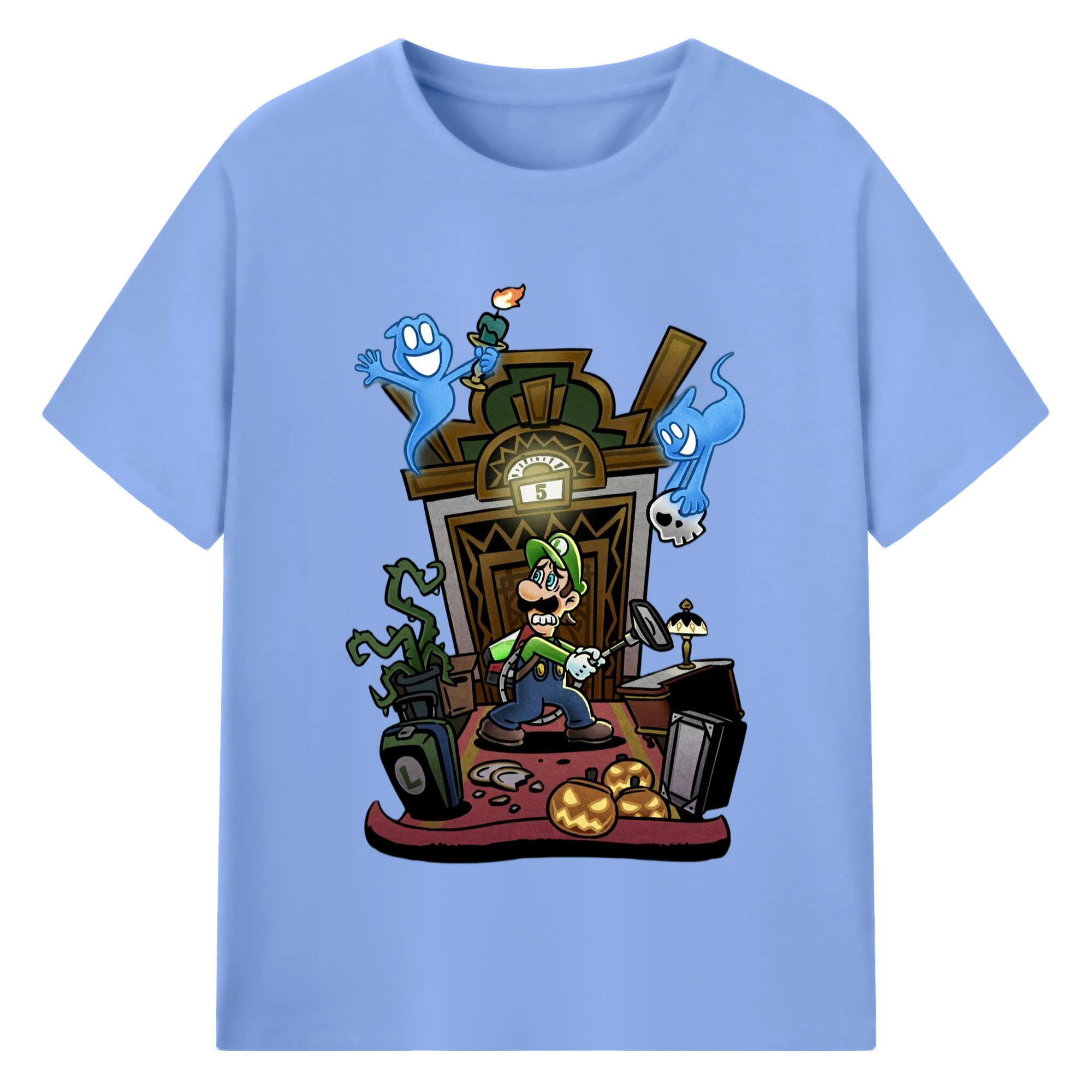 Nintendo Luigi Luigi's Mansion T-shirt - 180g Cotton T-Shirt With Front Heat Transfer Print – Soft, Lightweight, Fitted Design – Comfortable Casual Wear For Sports & Everyday Use