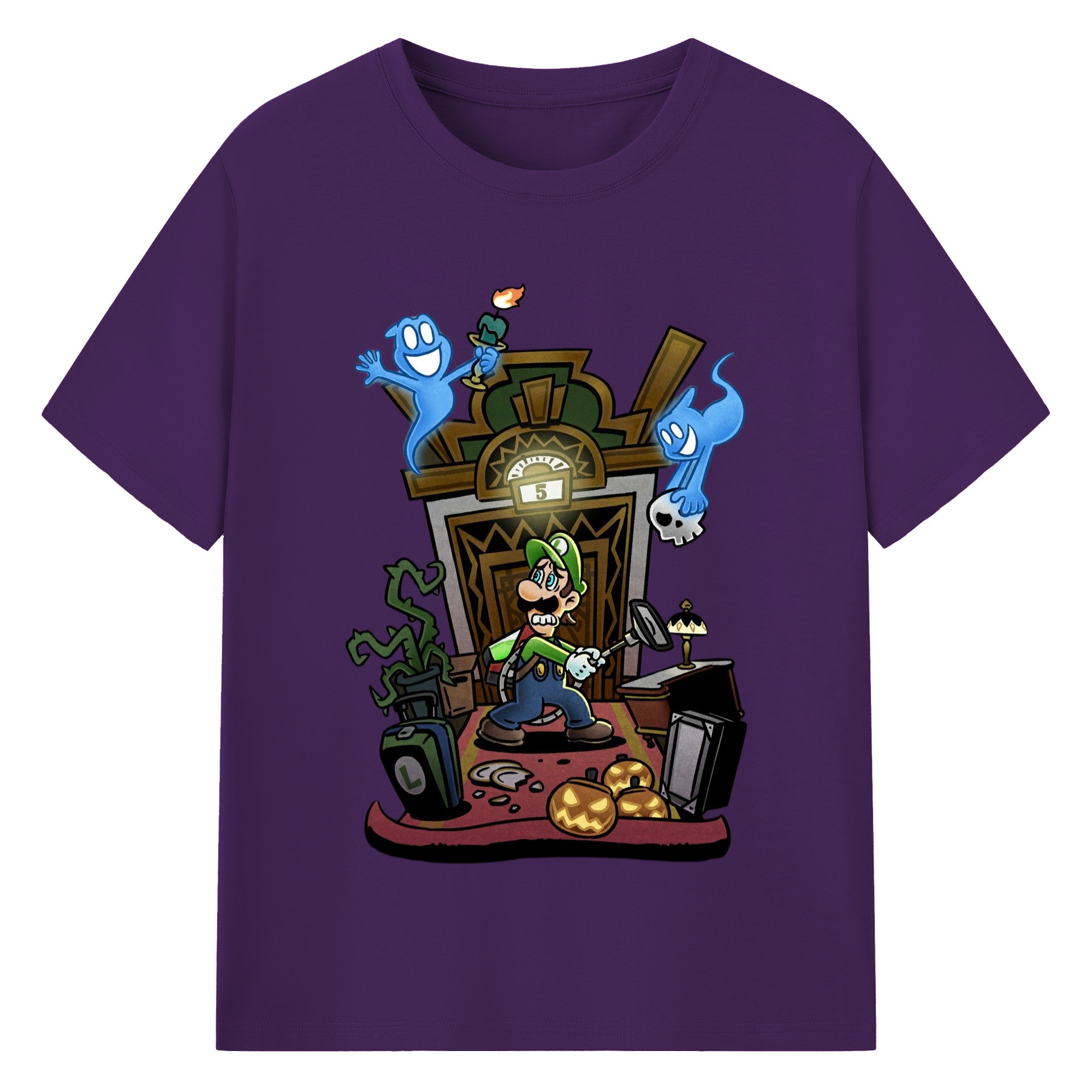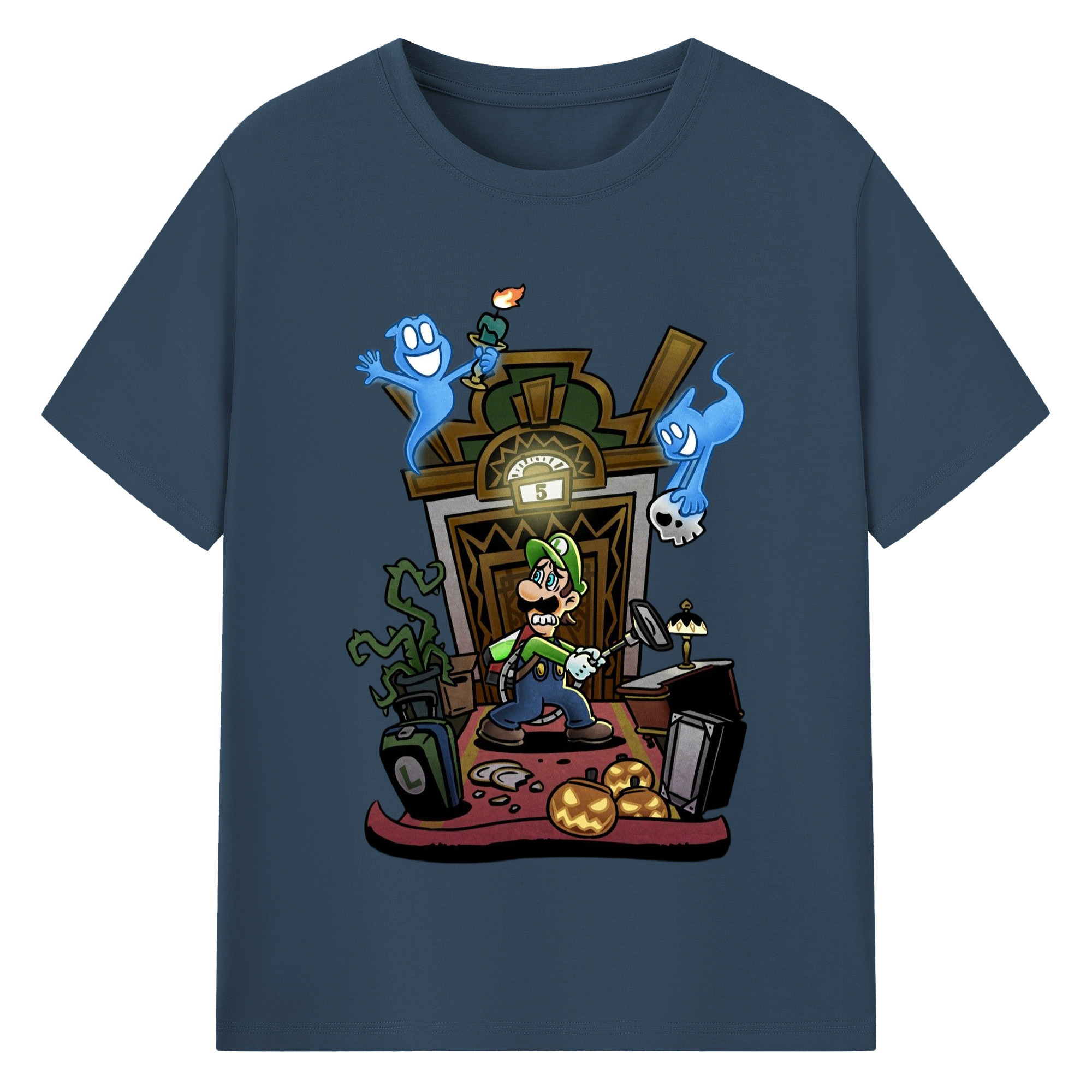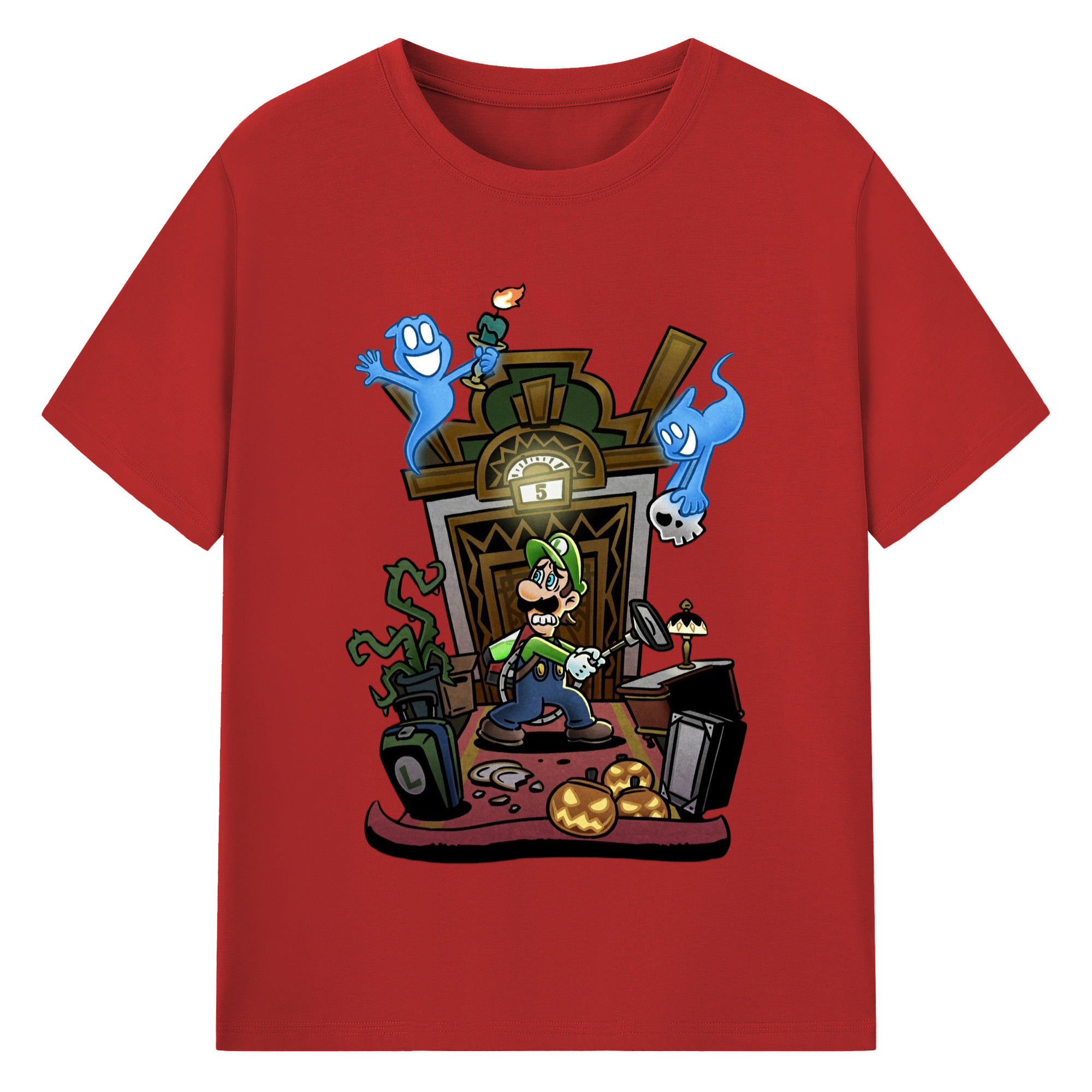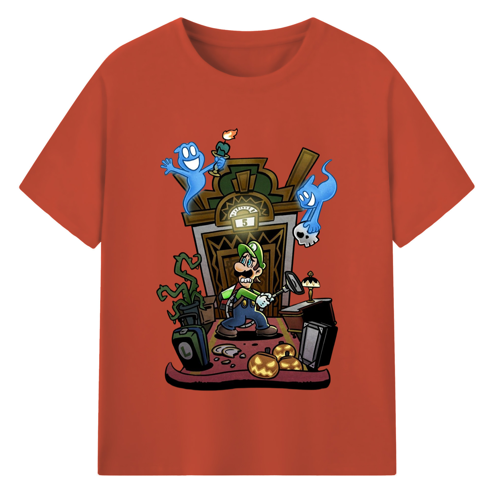 Nintendo Luigi Luigi's Mansion T-shirt - 180g Cotton T-Shirt With Front Heat Transfer Print – Soft, Lightweight, Fitted Design – Comfortable Casual Wear For Sports & Everyday Use