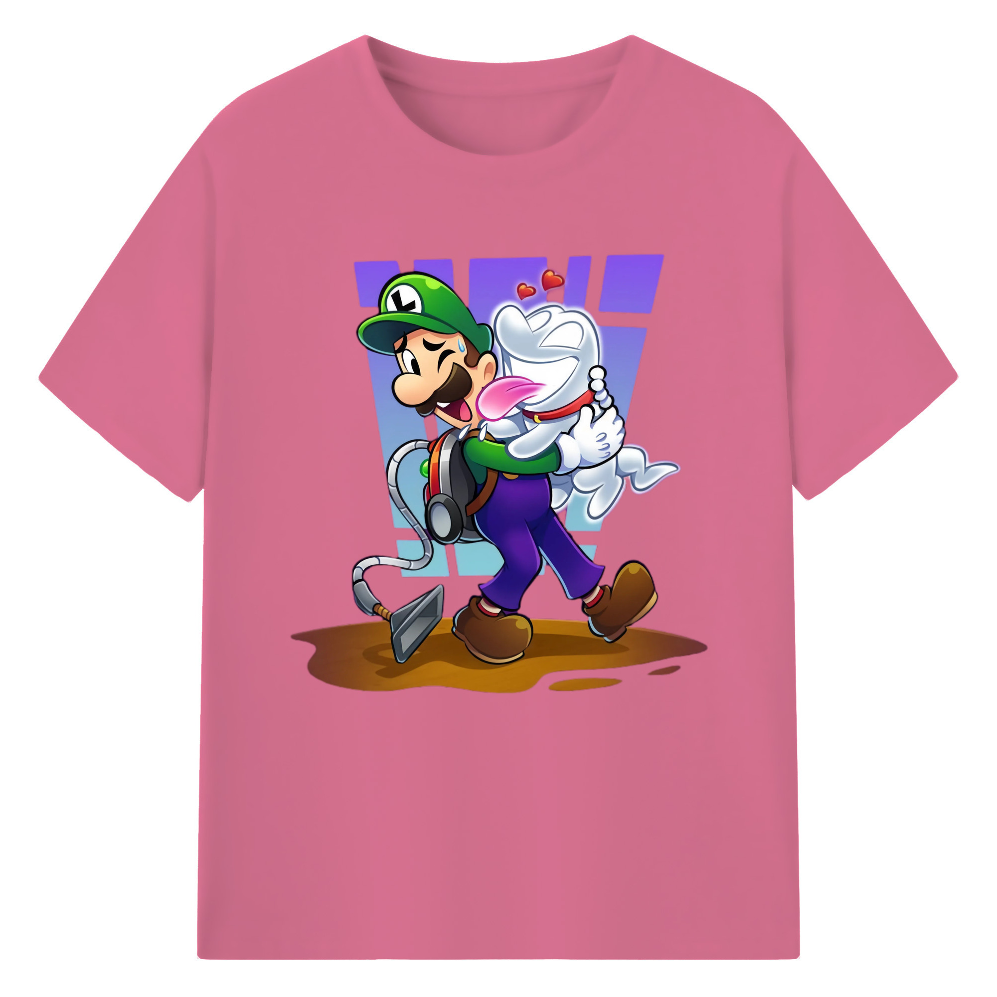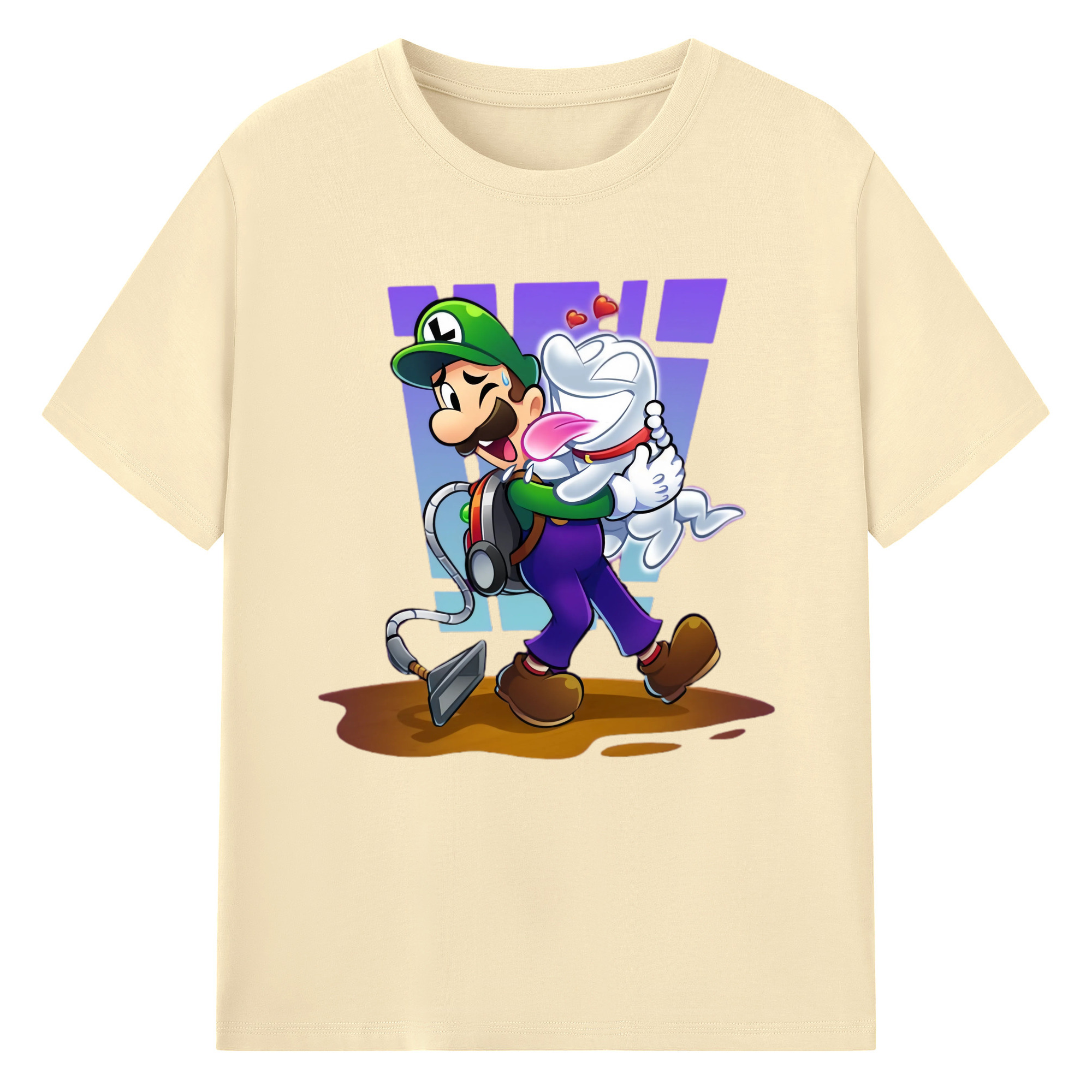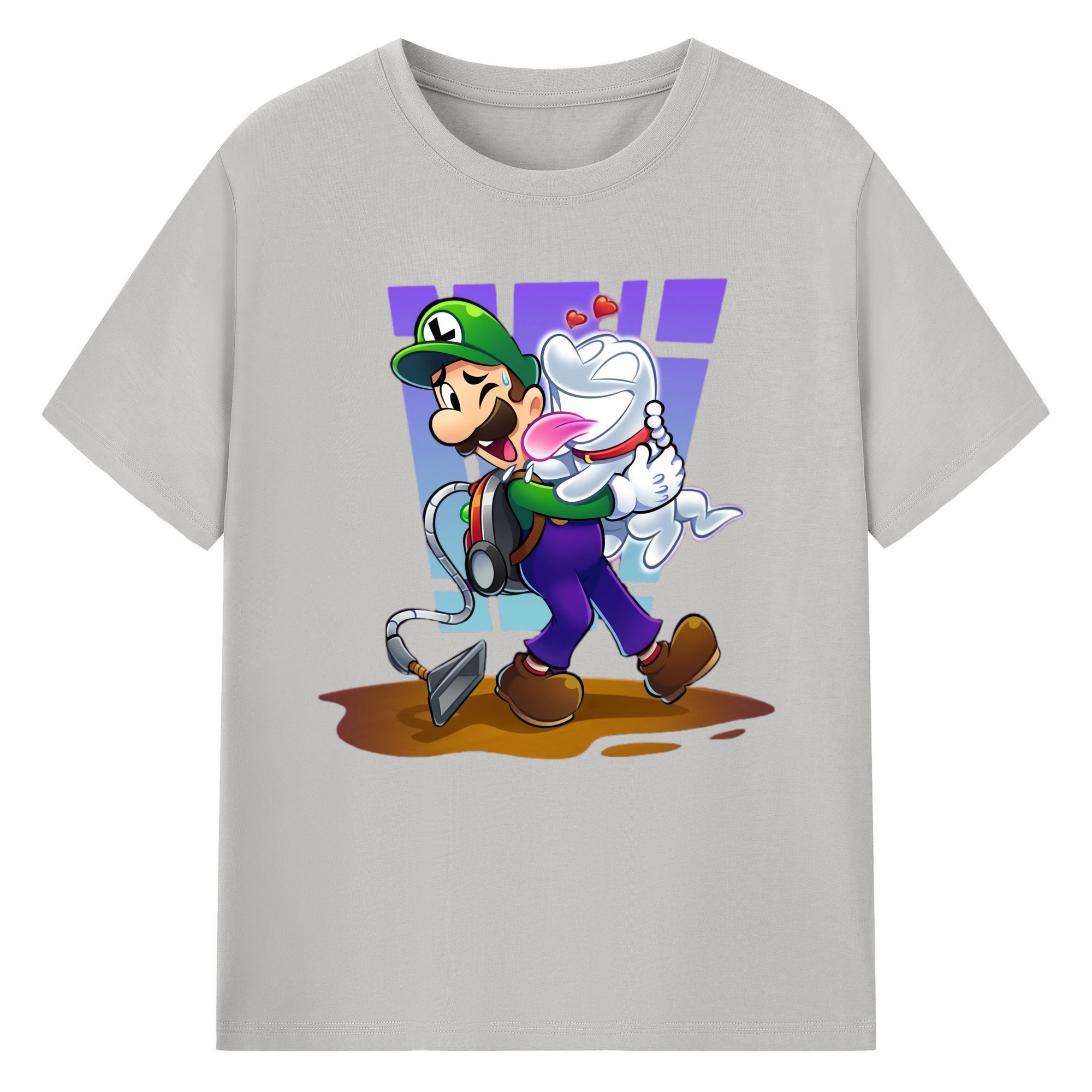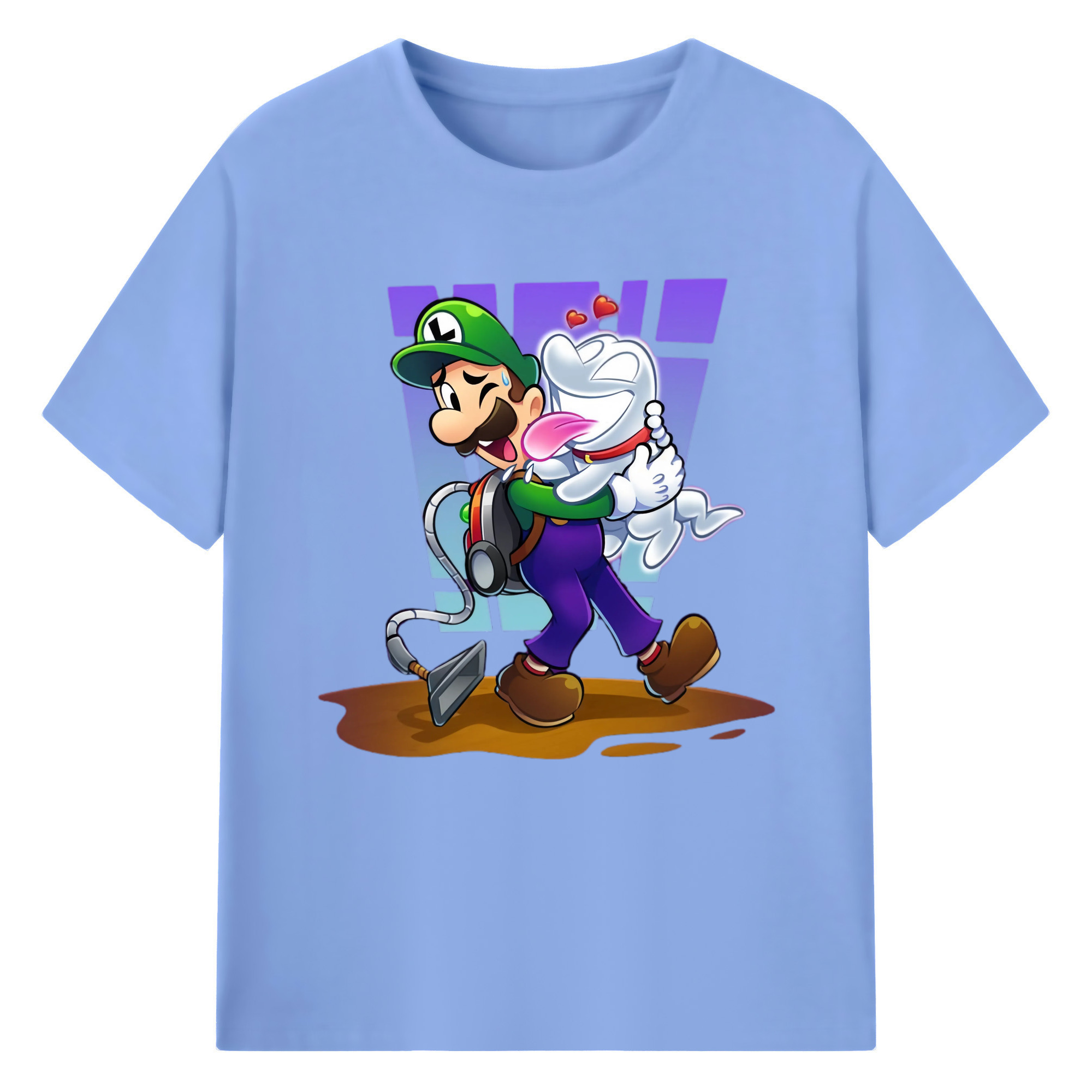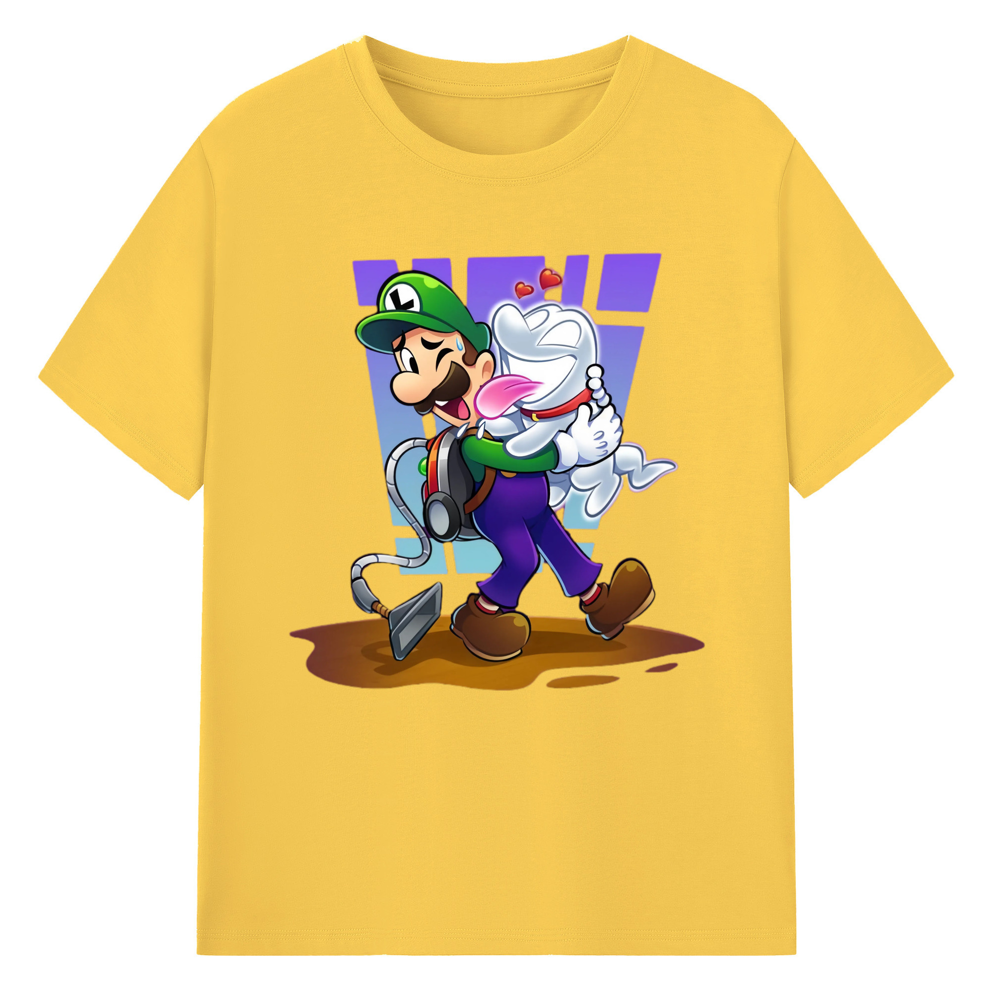 Nintendo Luigi Luigi's and Polterpup Mansion T-ee - 180g Cotton T-Shirt With Front Heat Transfer Print – Soft, Lightweight, Fitted Design – Comfortable Casual Wear For Sports & Everyday Use