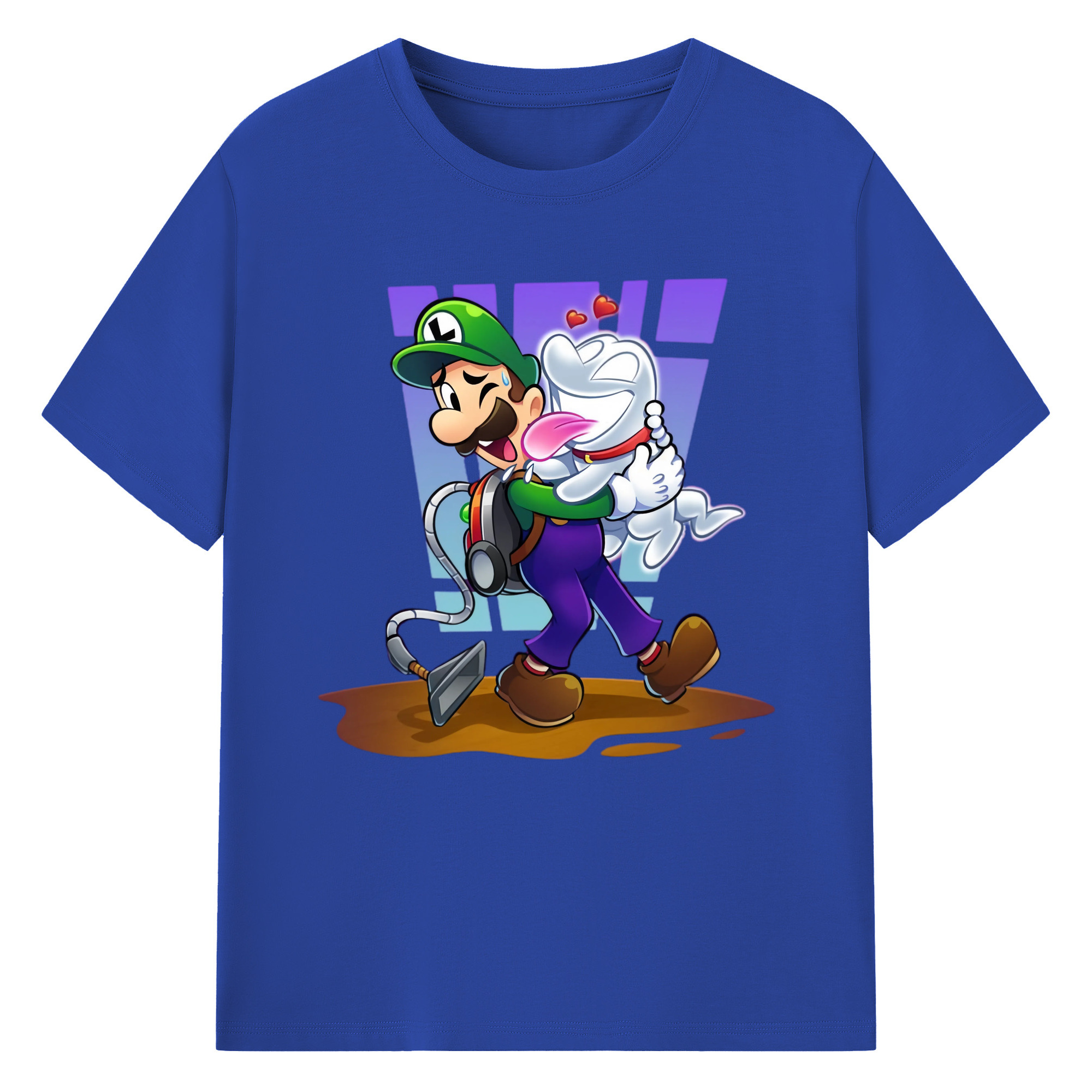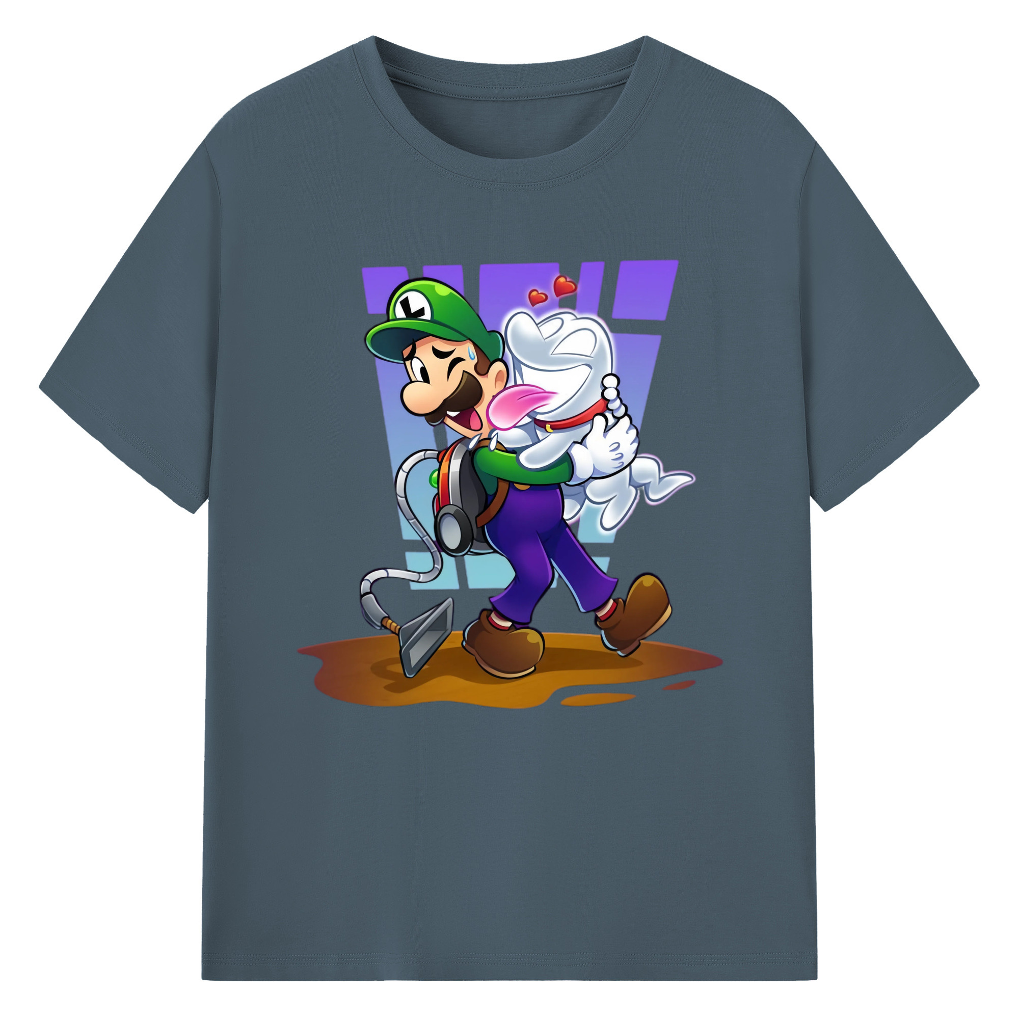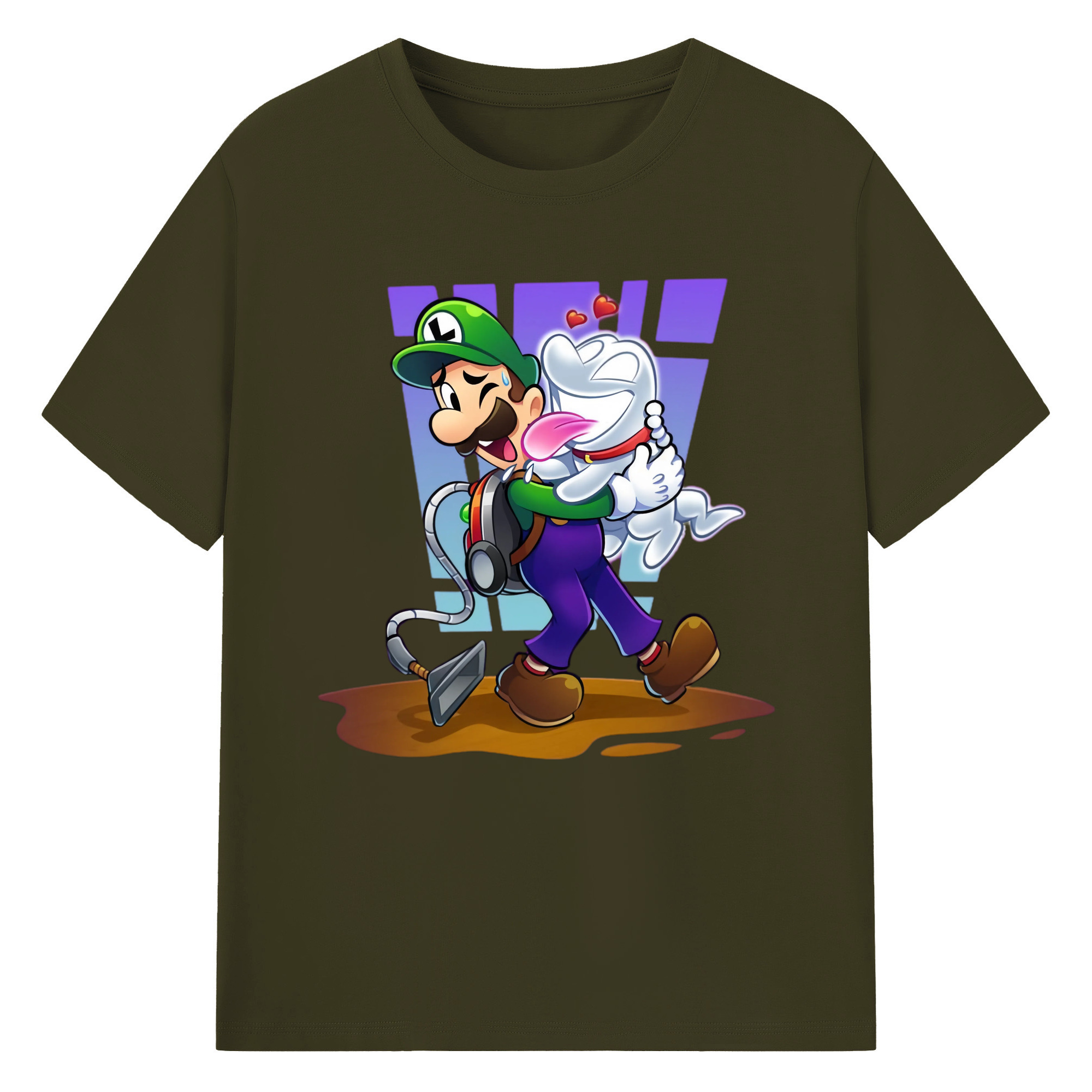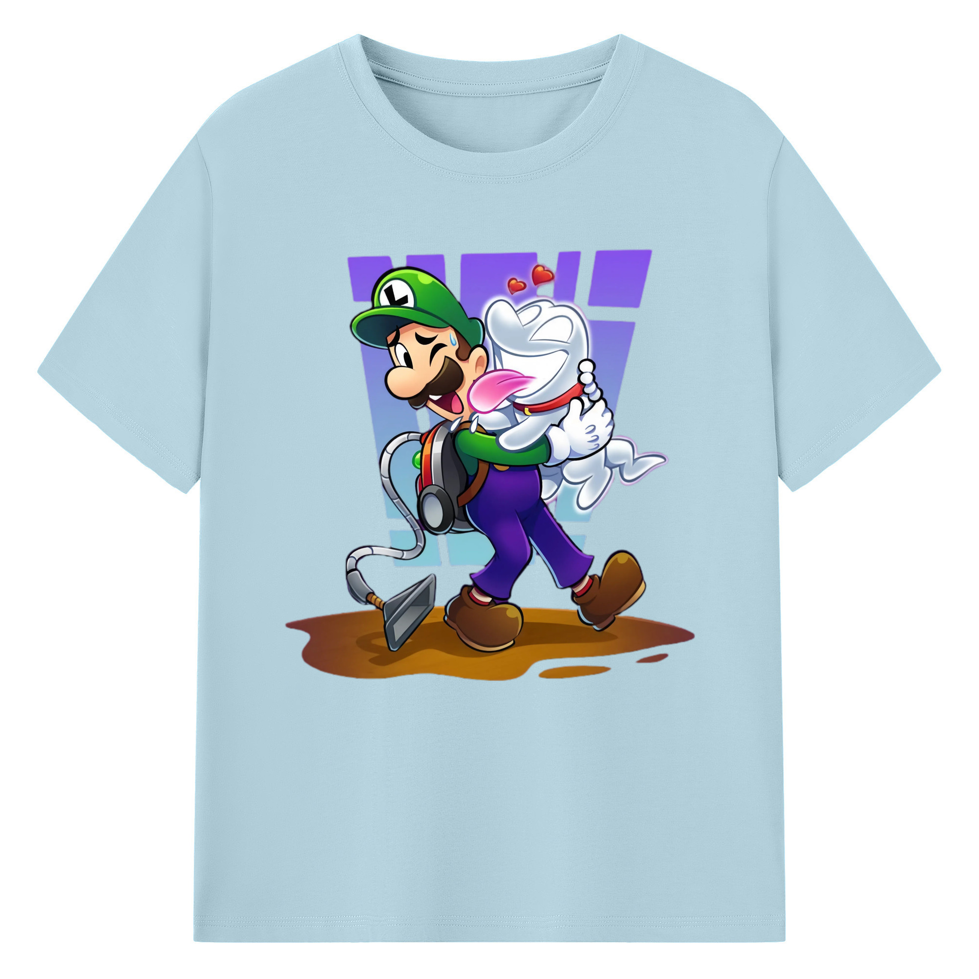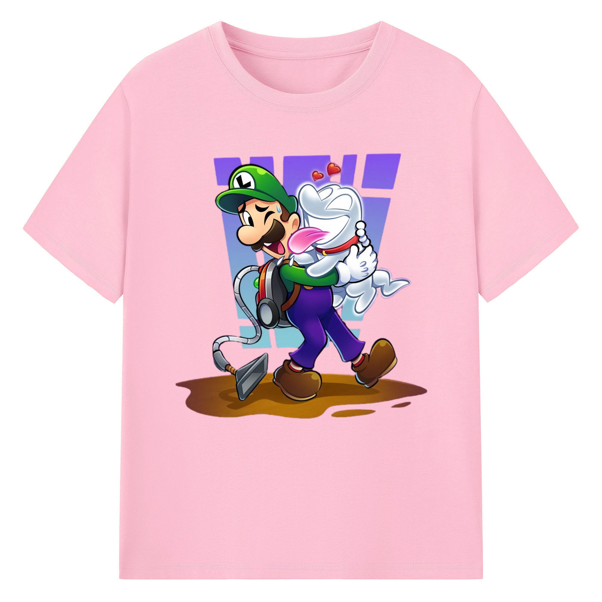 Nintendo Luigi Luigi's and Polterpup Mansion T-ee - 180g Cotton T-Shirt With Front Heat Transfer Print – Soft, Lightweight, Fitted Design – Comfortable Casual Wear For Sports & Everyday Use