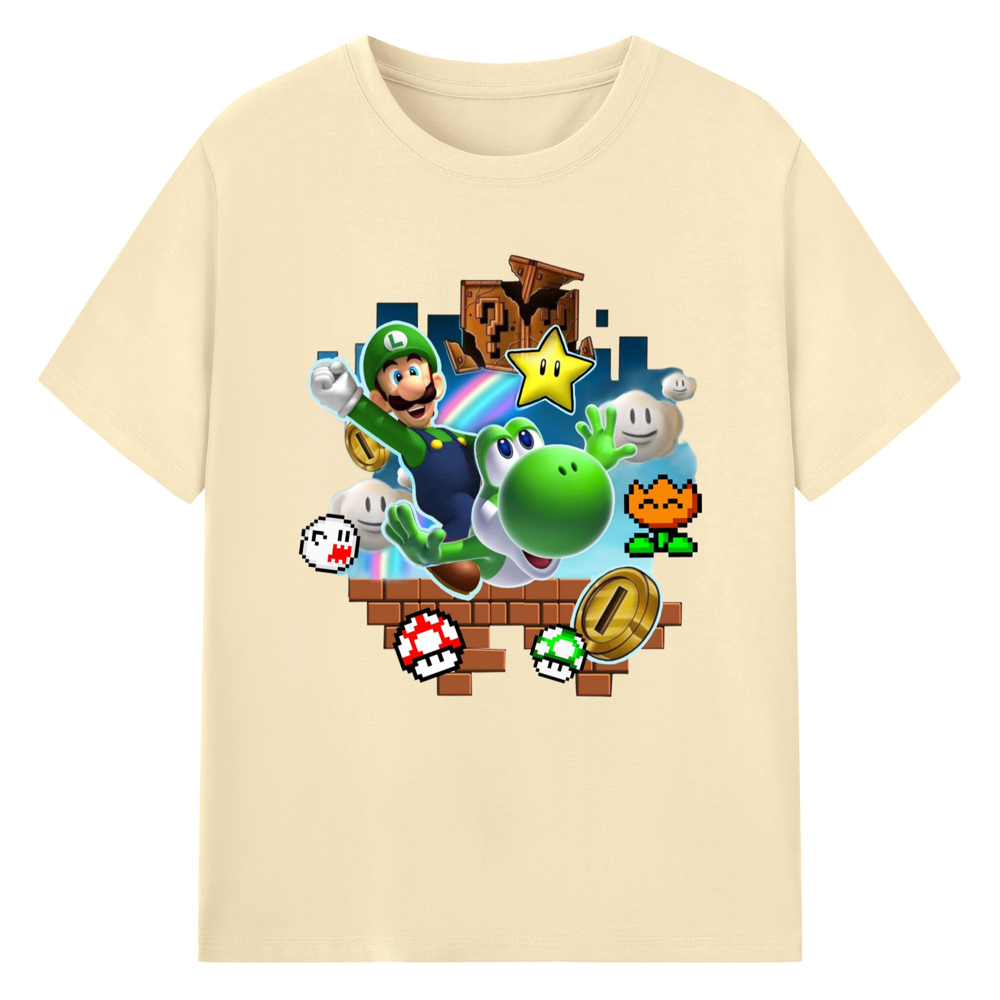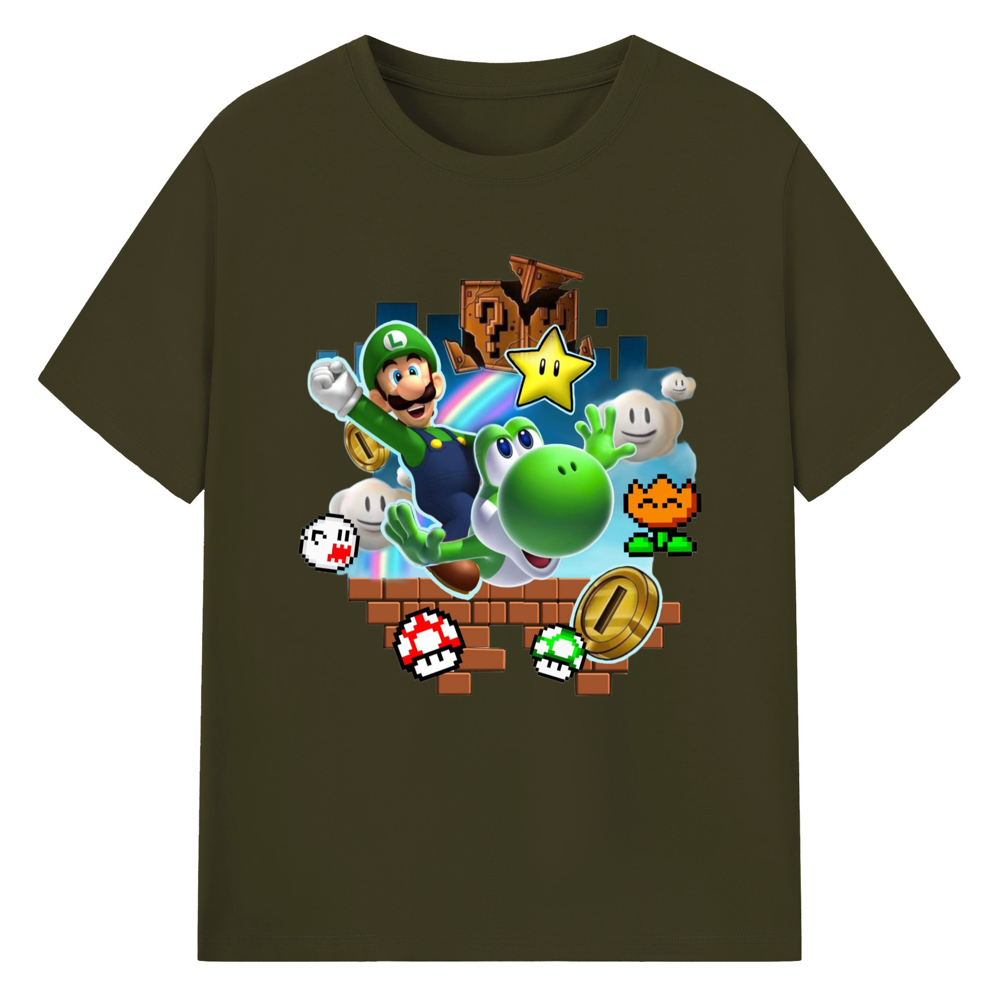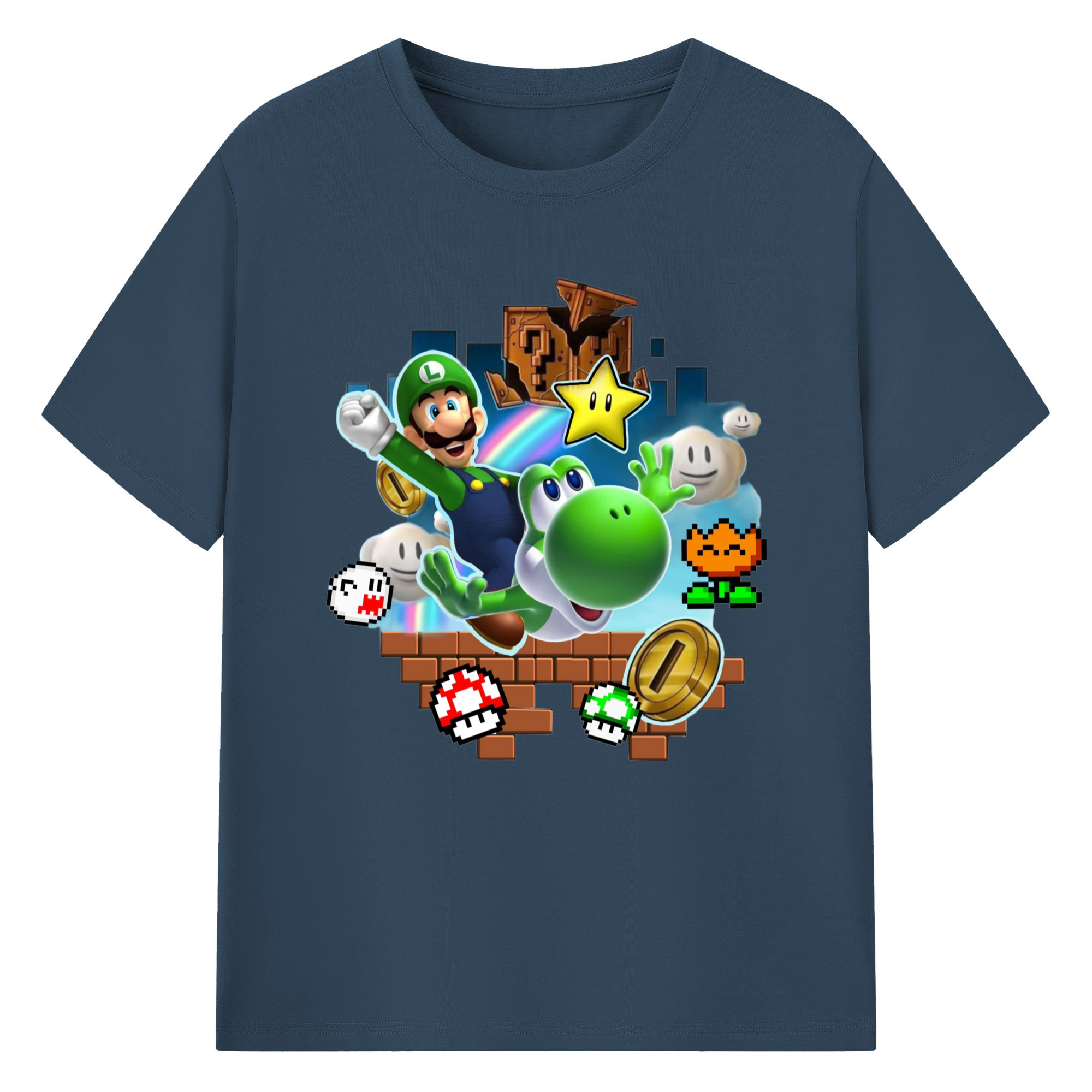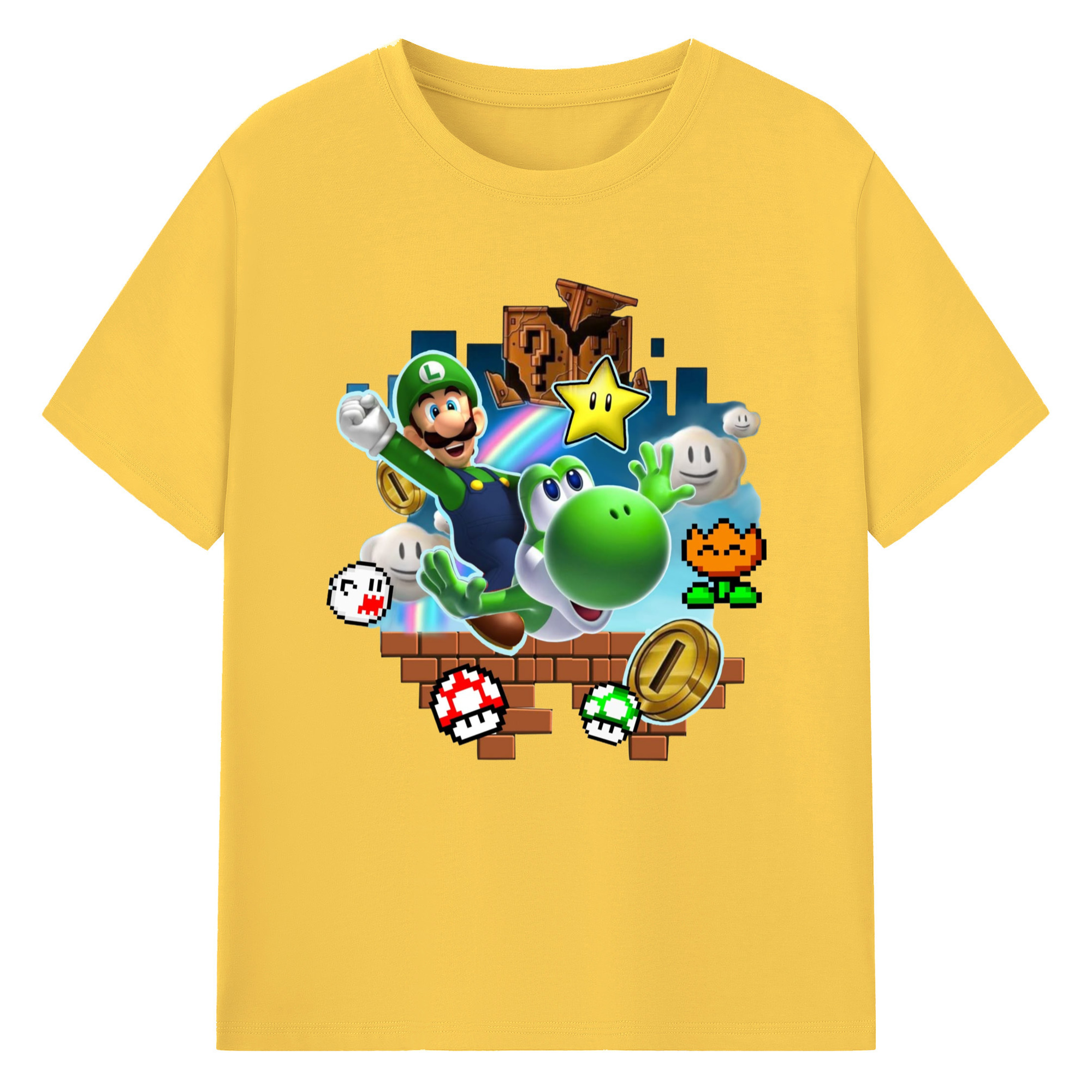 Nintendo mario and yoshi t shirts - 180g Cotton T-Shirt With Front Heat Transfer Print – Soft, Lightweight, Fitted Design – Comfortable Casual Wear For Sports & Everyday Use