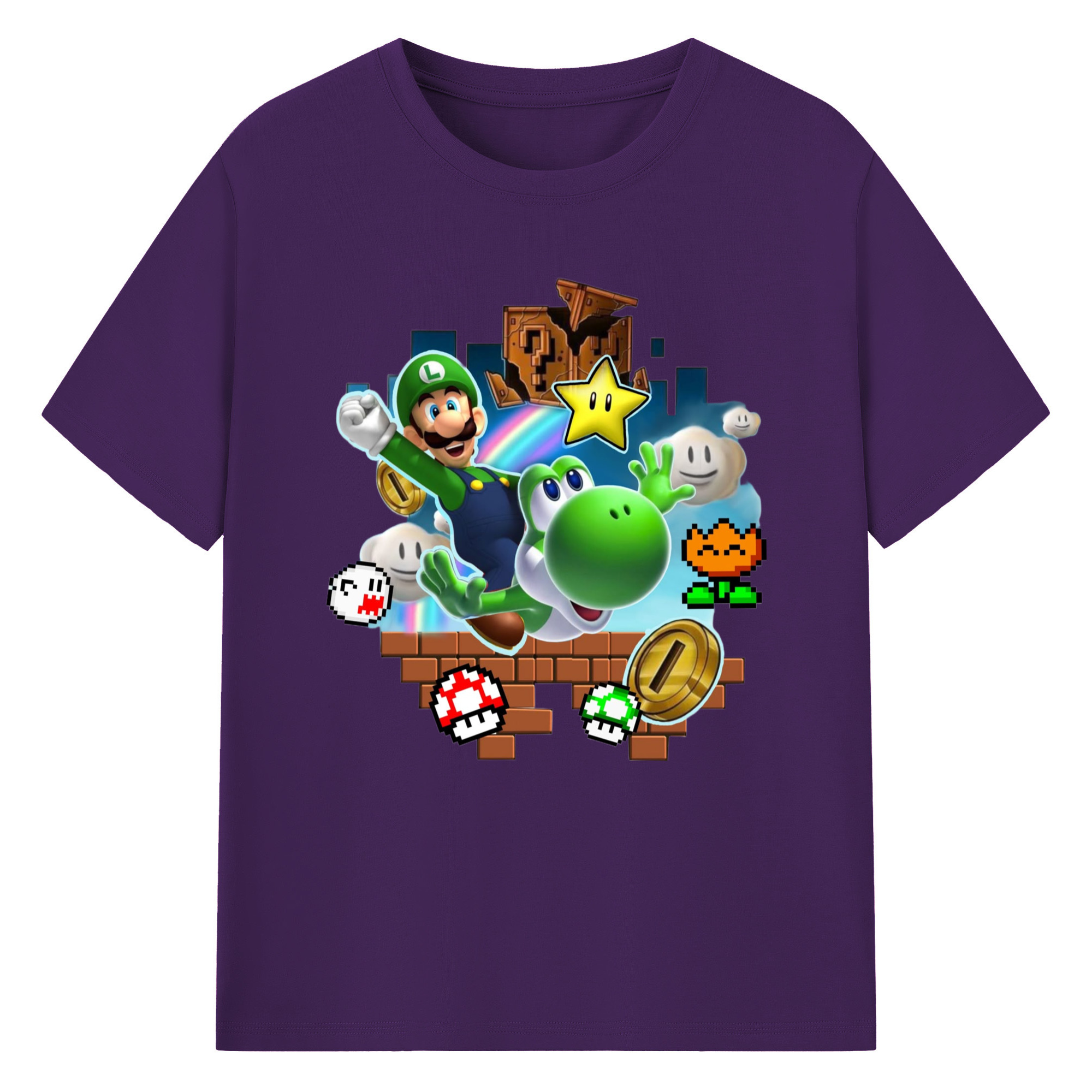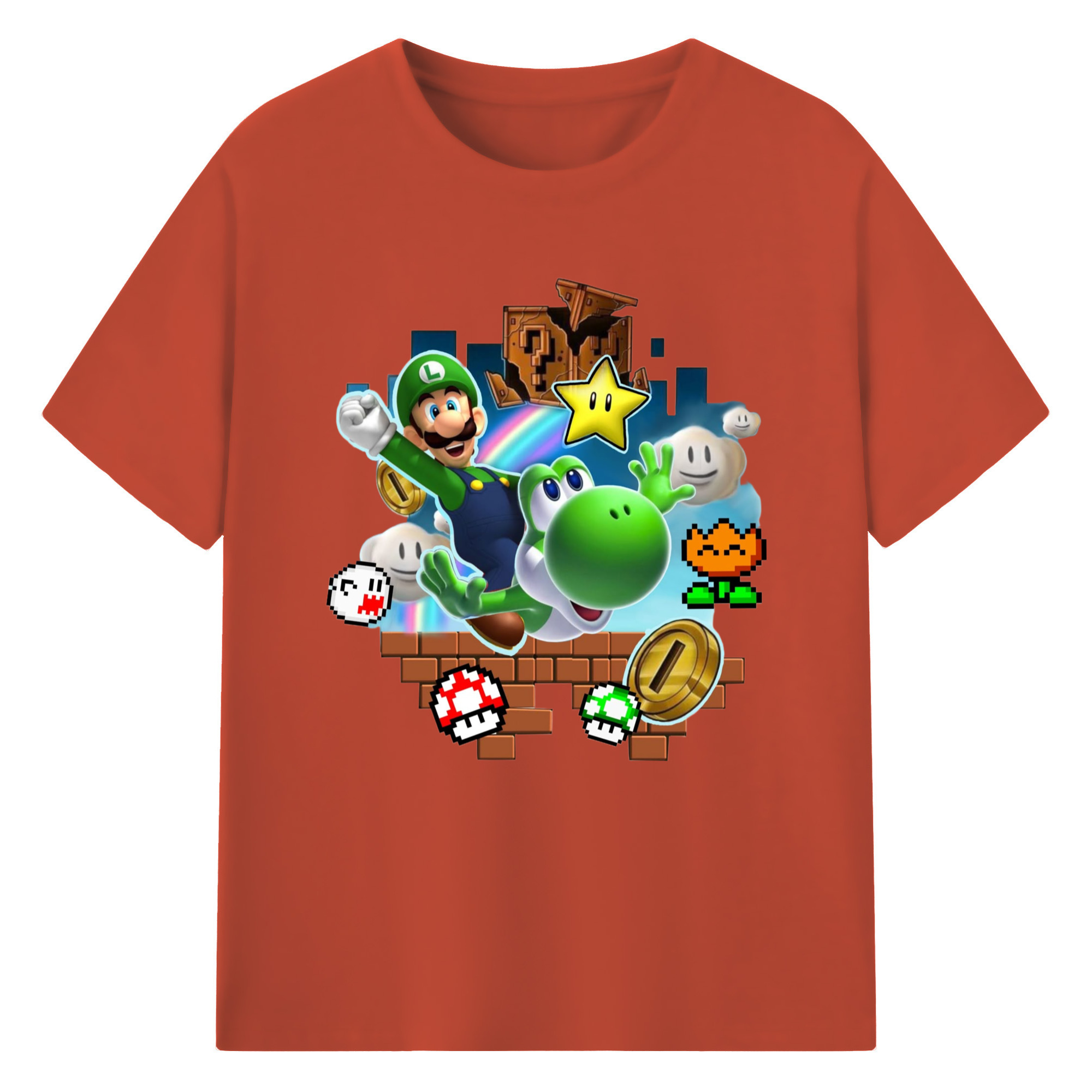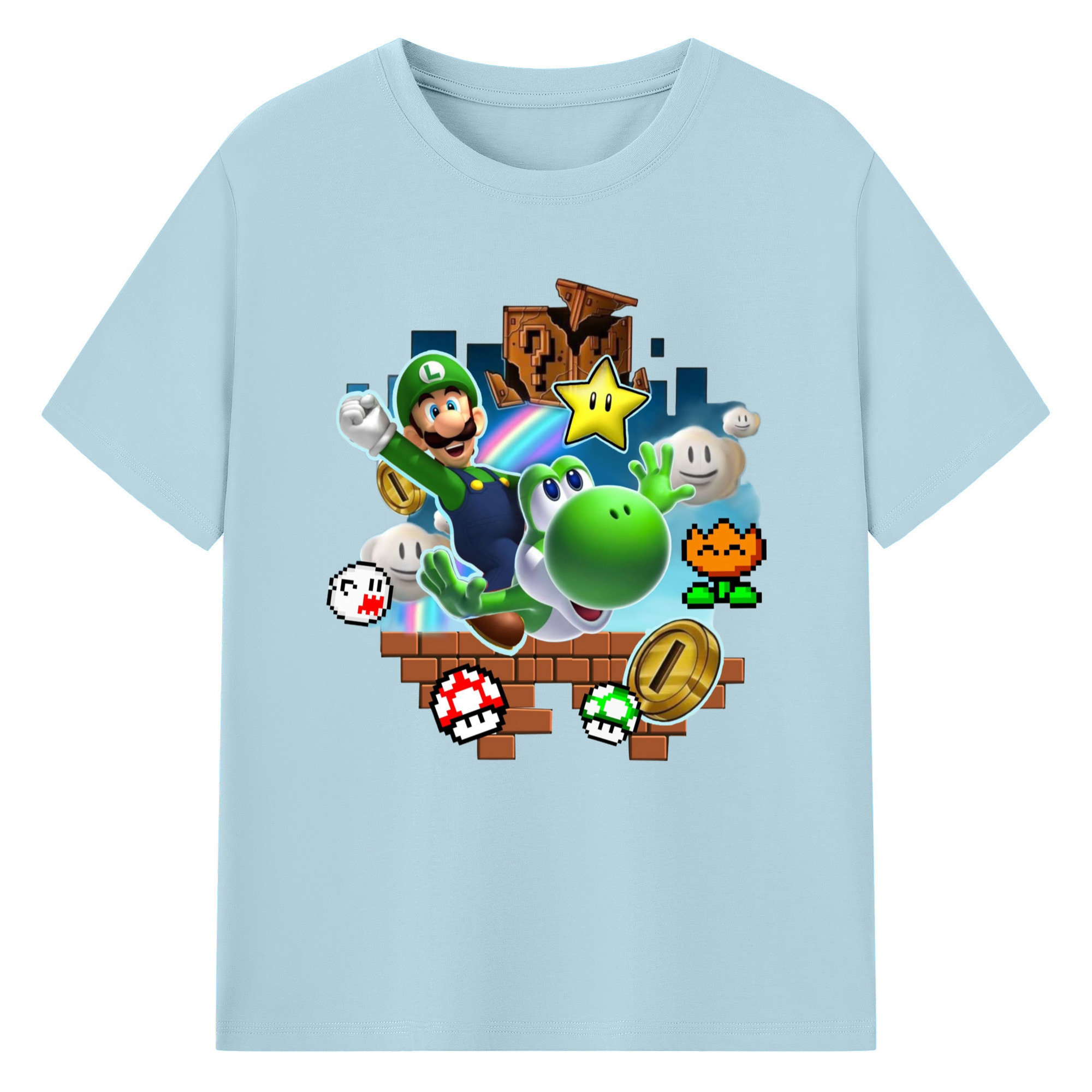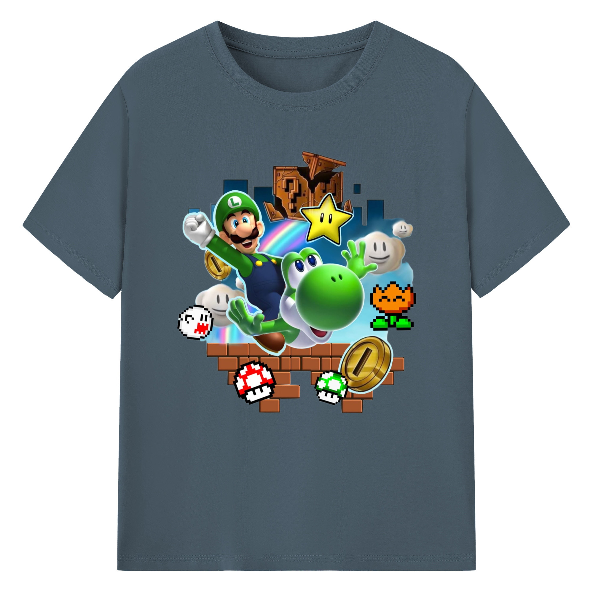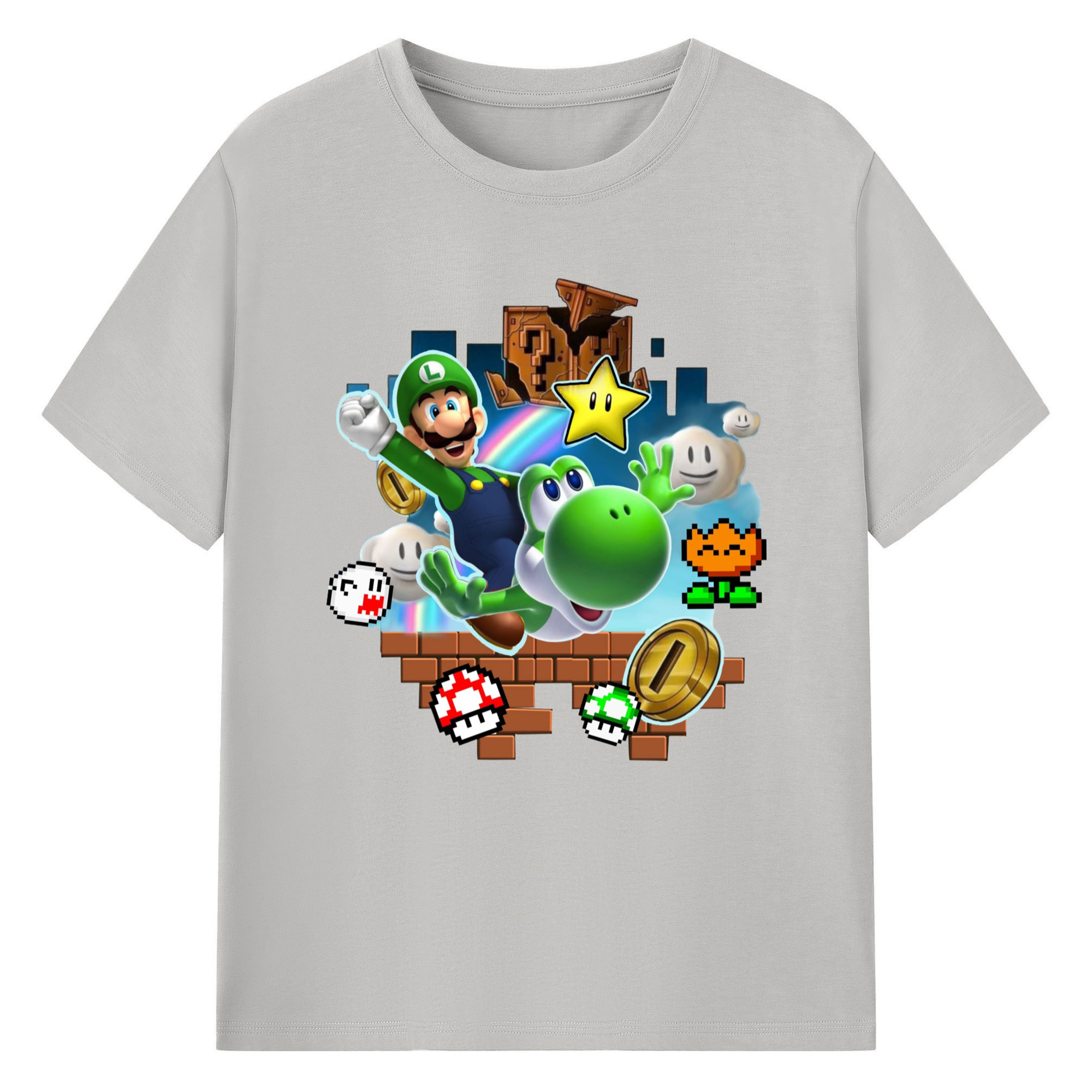 Nintendo mario and yoshi t shirts - 180g Cotton T-Shirt With Front Heat Transfer Print – Soft, Lightweight, Fitted Design – Comfortable Casual Wear For Sports & Everyday Use