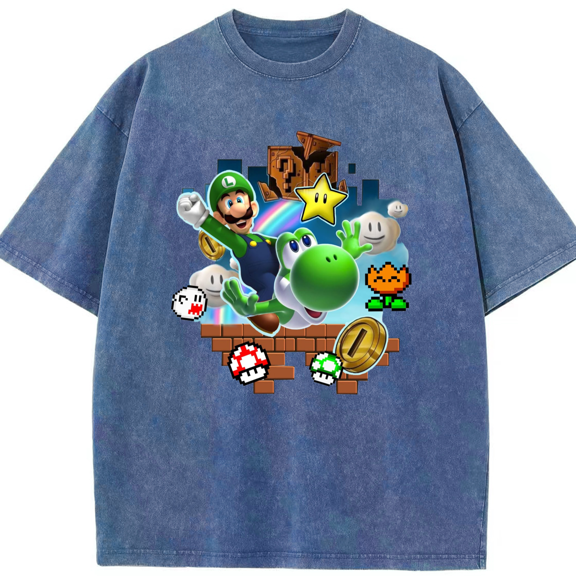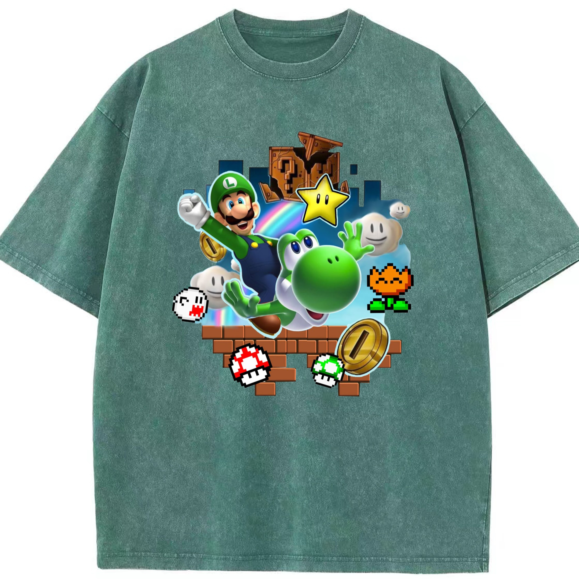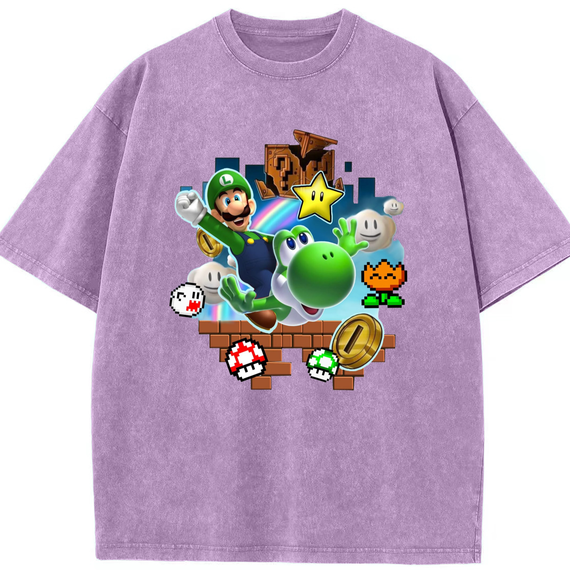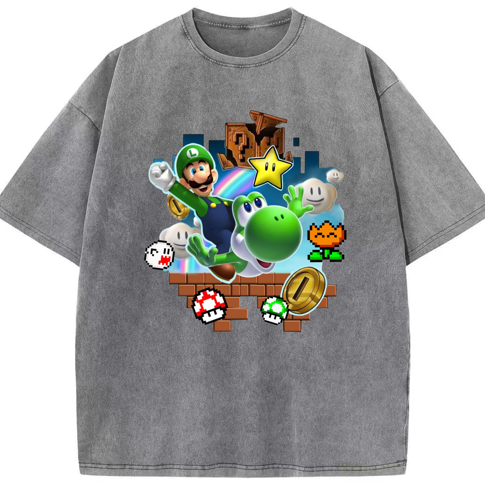 Nintendo mario and yoshi t shirts - Washed Vintage Look 230g Cotton Oversized T-Shirt With Front Heat Transfer Print – Soft, Lightweight, Stylish Fit – Comfortable Casual Wear For Sports & Everyday Use