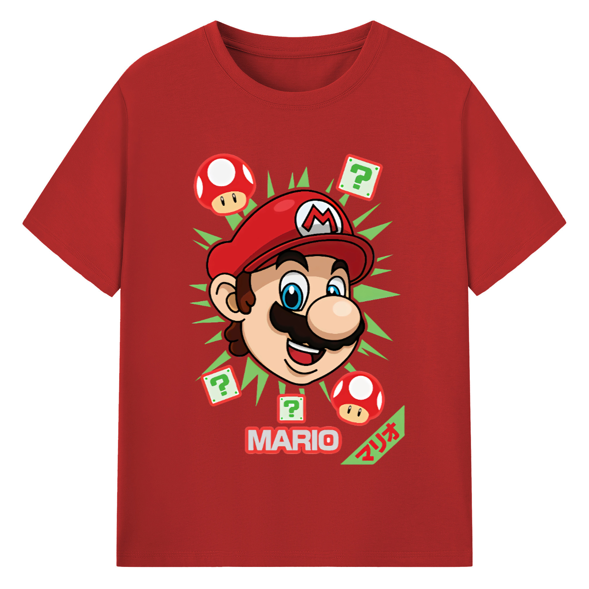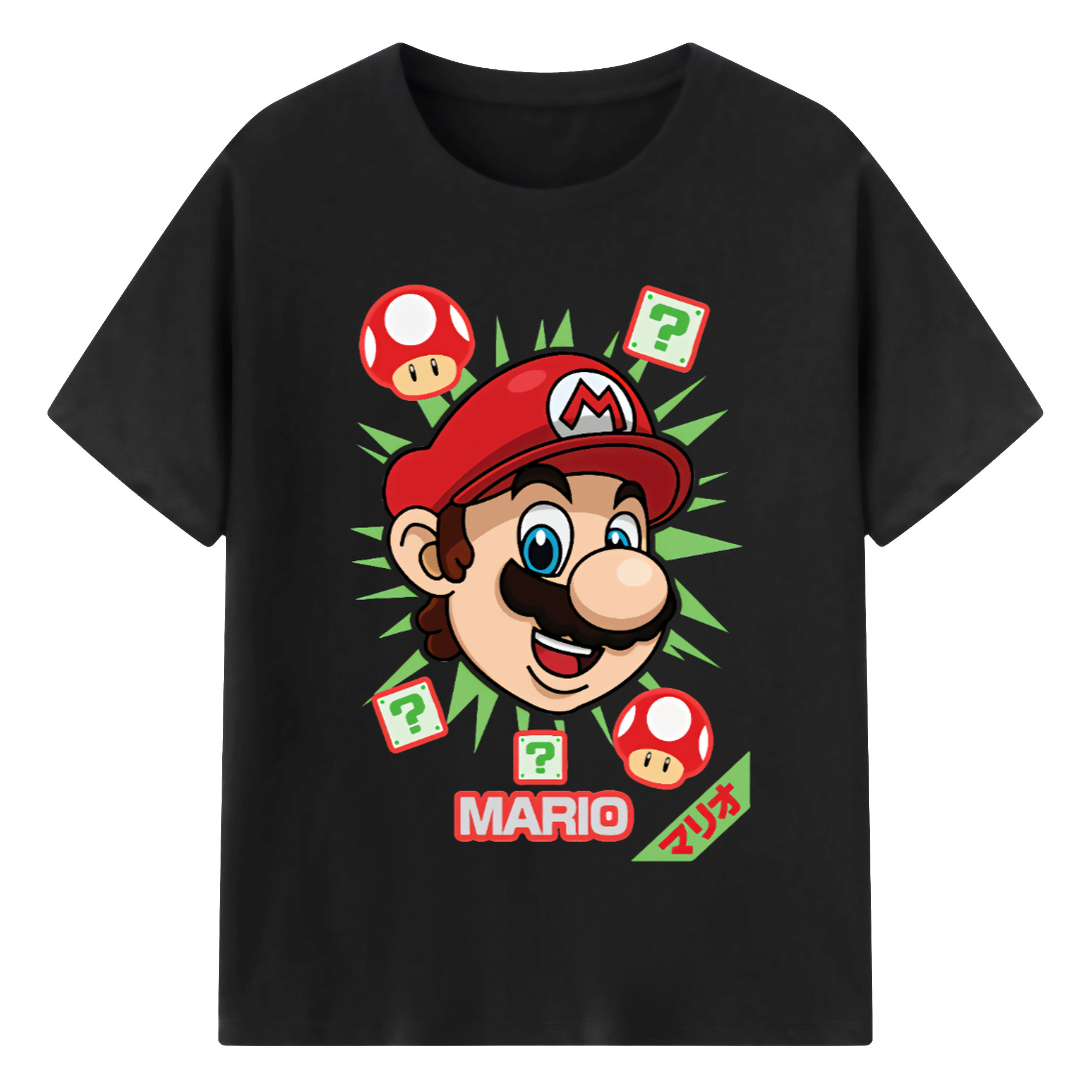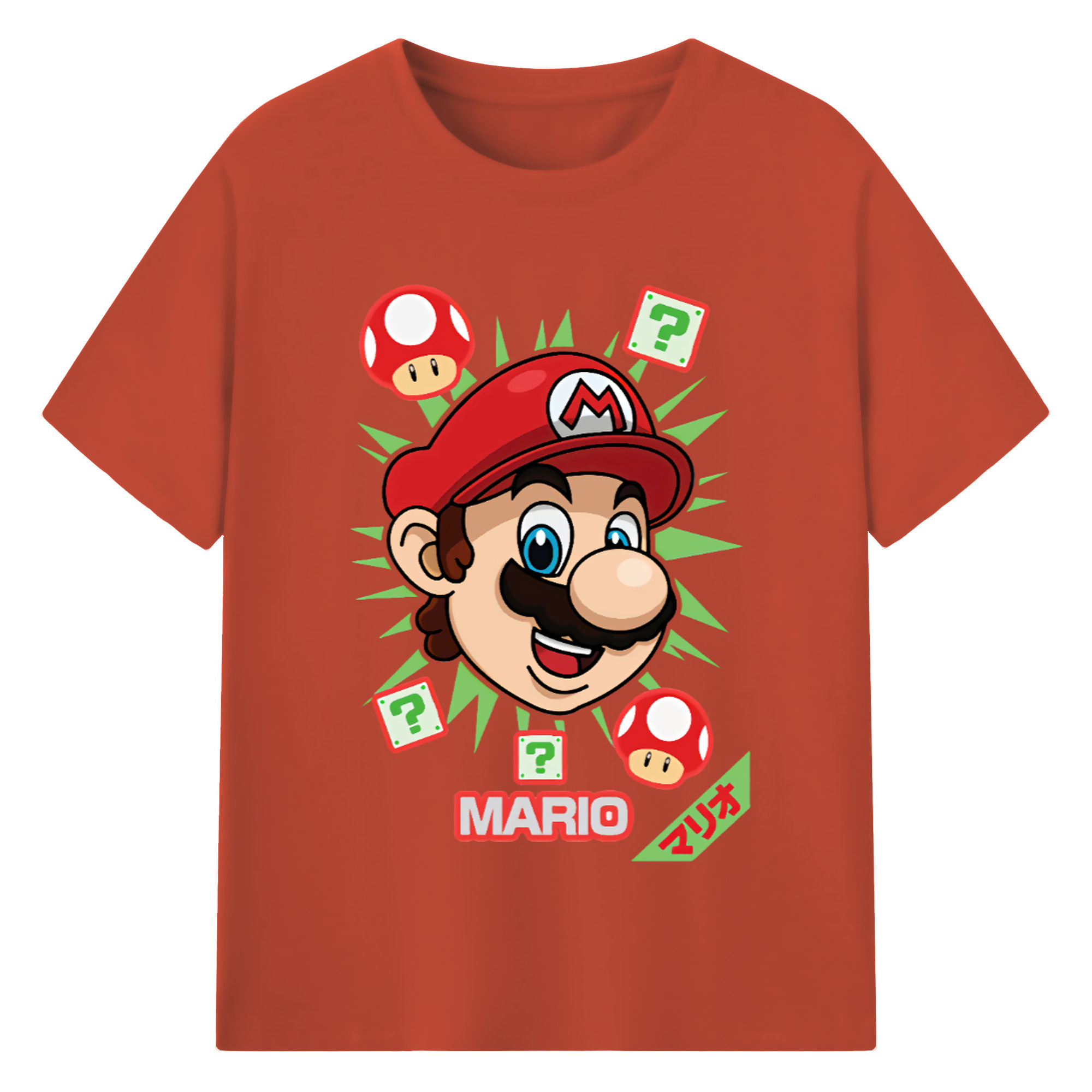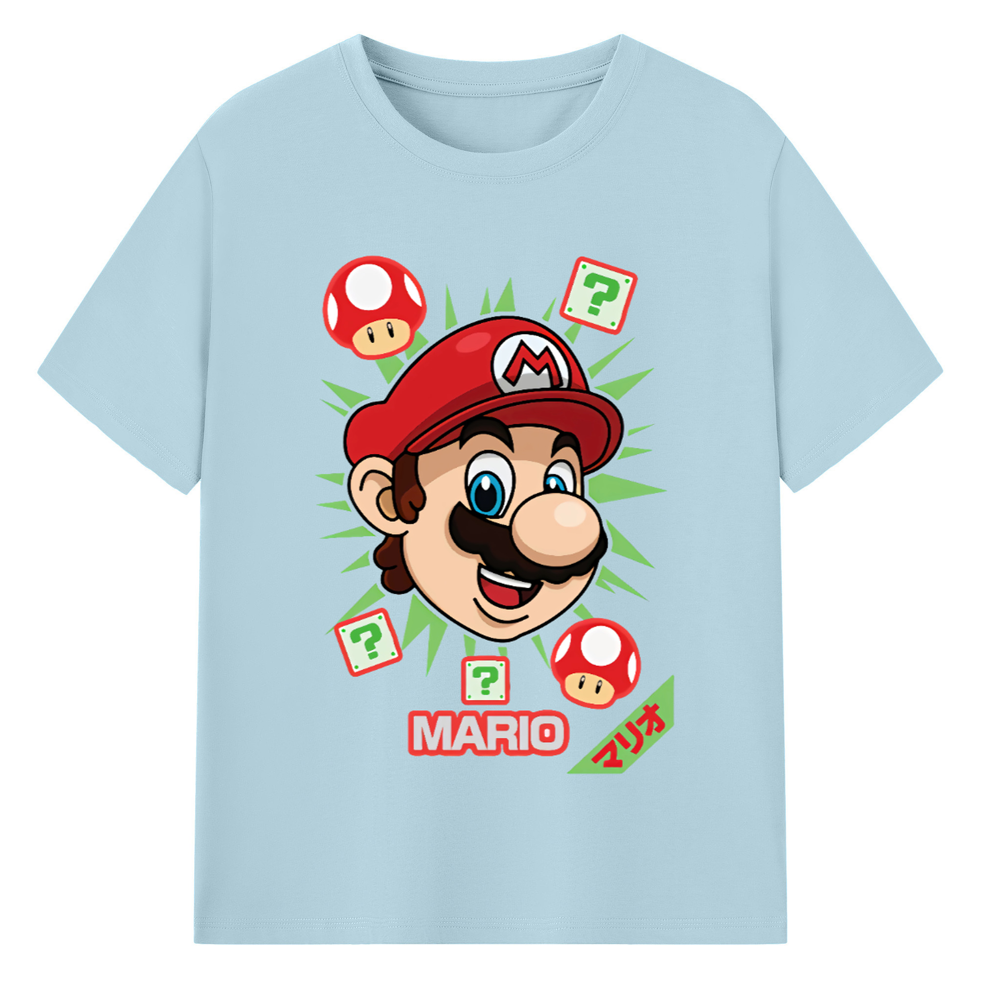 Nintendo mario cartoon profile t-shirt - 180g Cotton T-Shirt With Front Heat Transfer Print – Soft, Lightweight, Fitted Design – Comfortable Casual Wear For Sports & Everyday Use