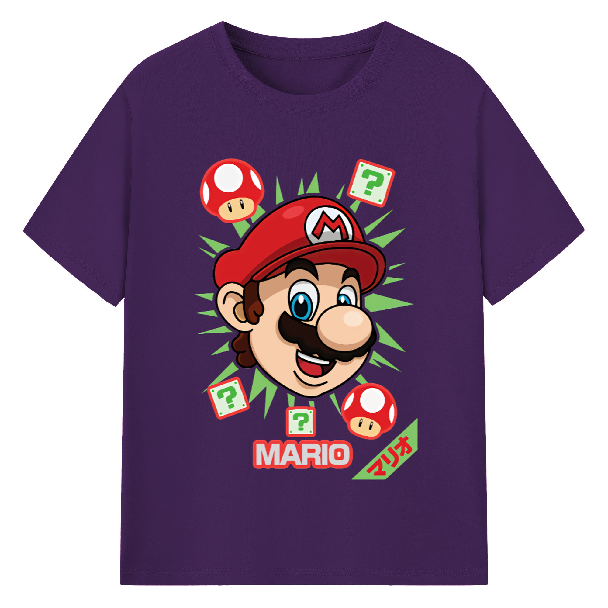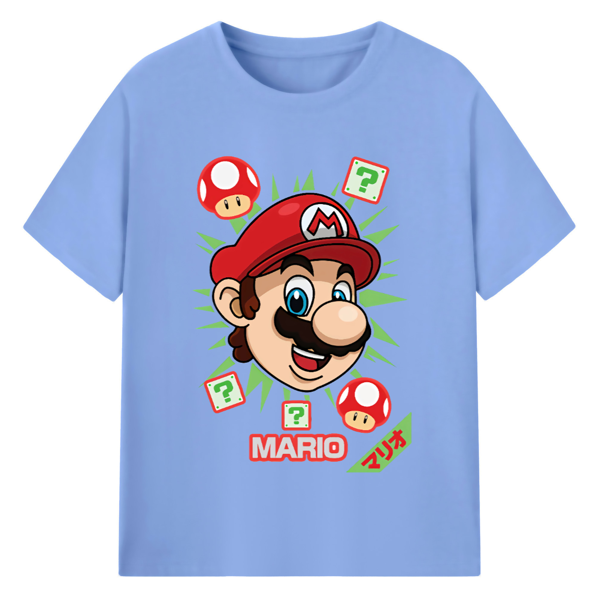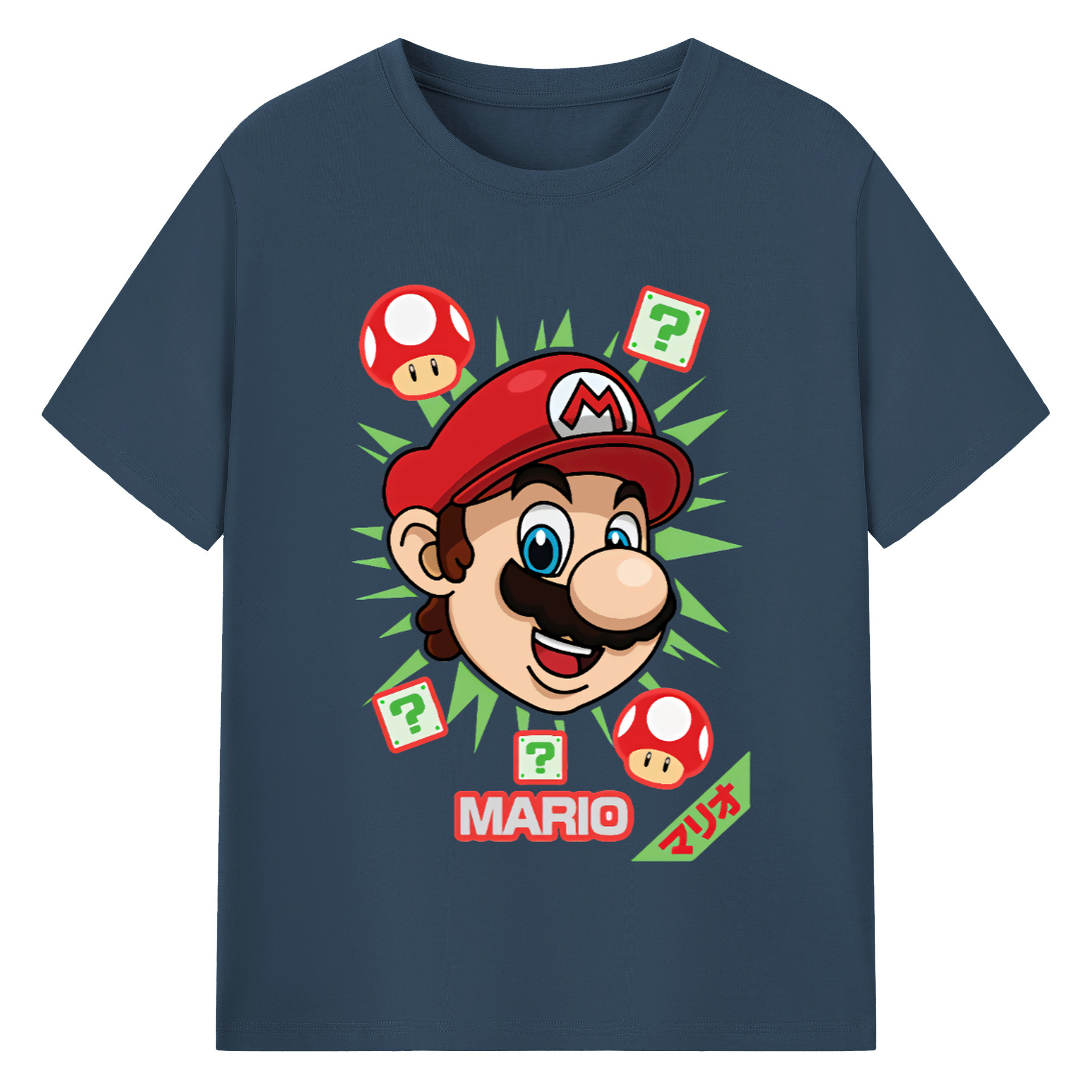 Nintendo mario cartoon profile t-shirt - 180g Cotton T-Shirt With Front Heat Transfer Print – Soft, Lightweight, Fitted Design – Comfortable Casual Wear For Sports & Everyday Use