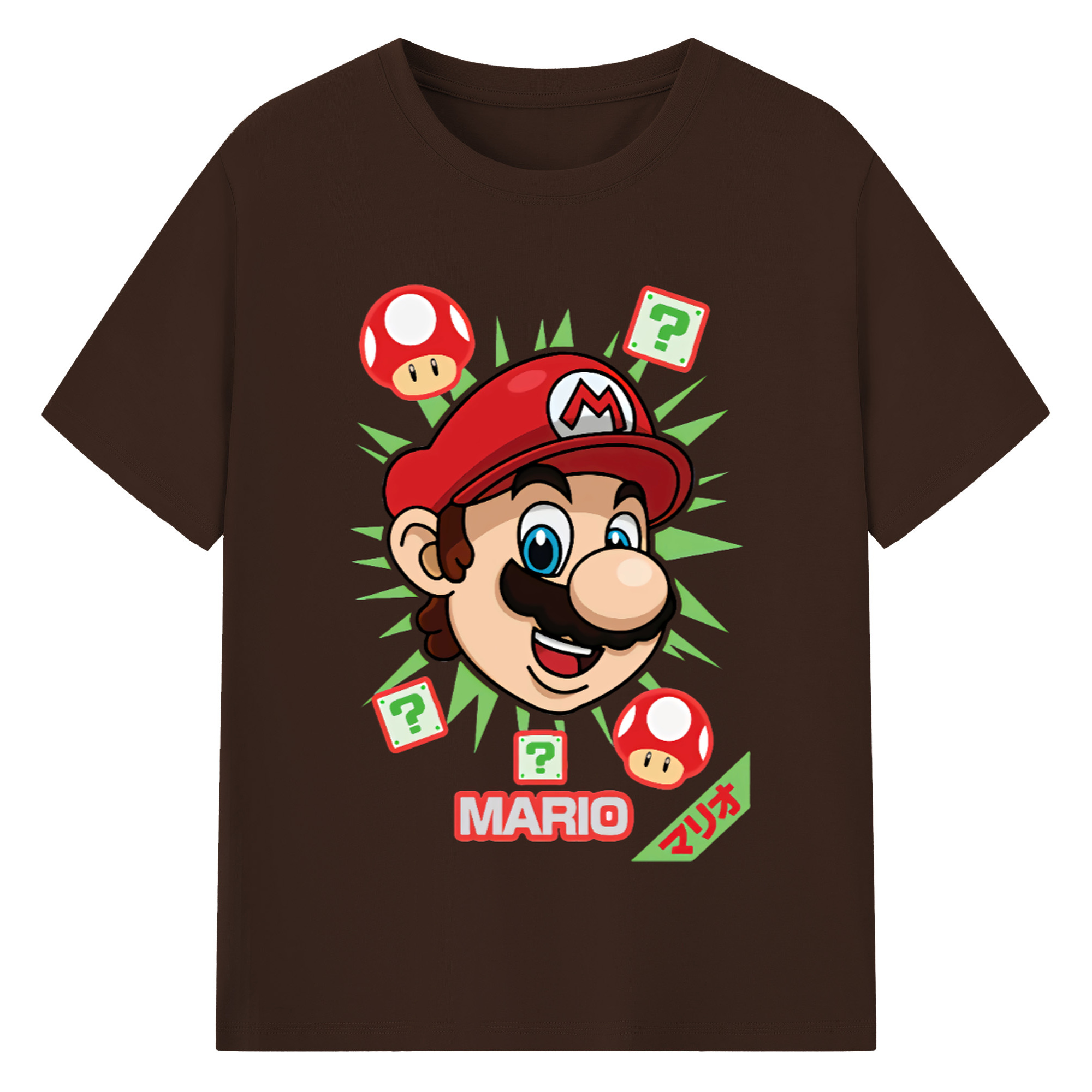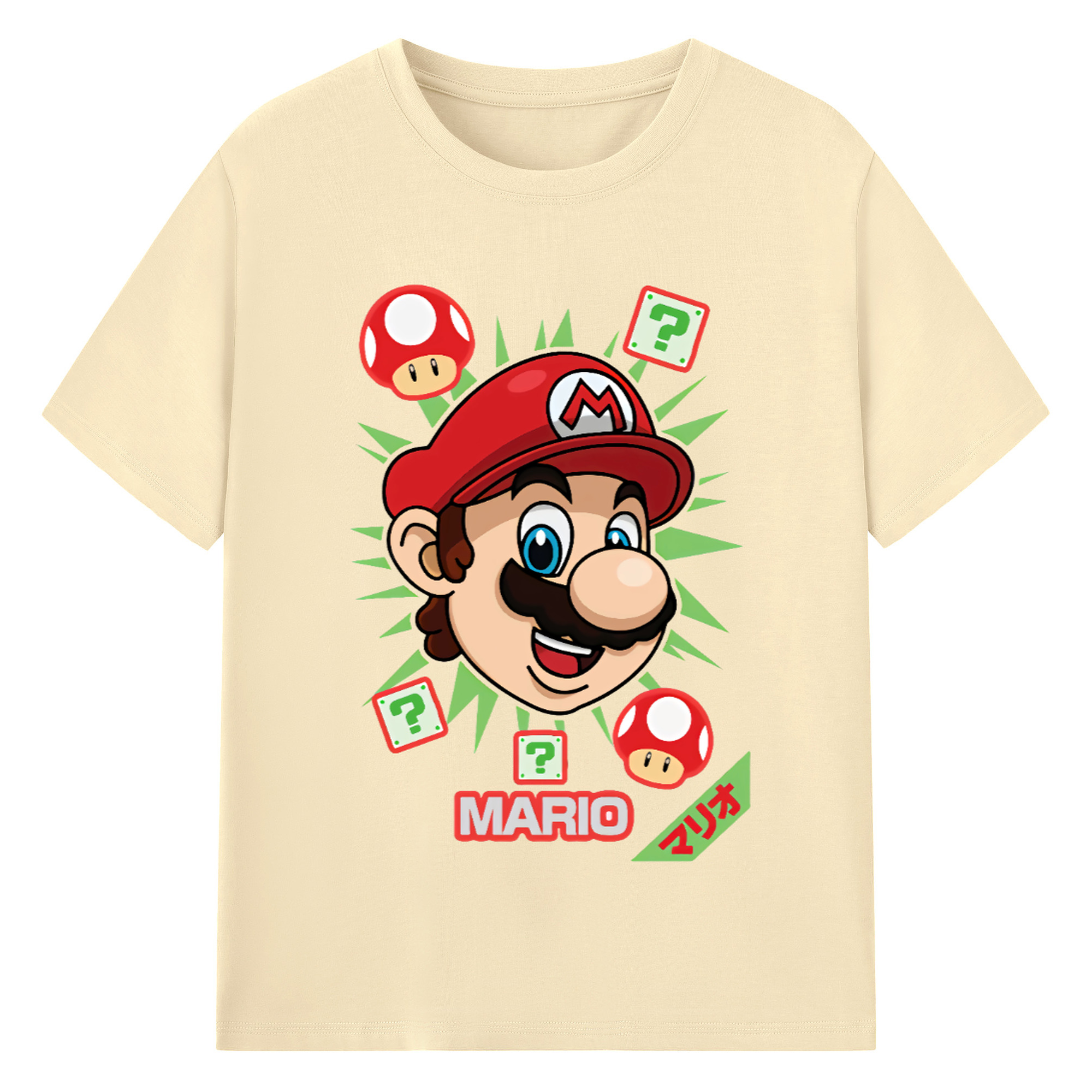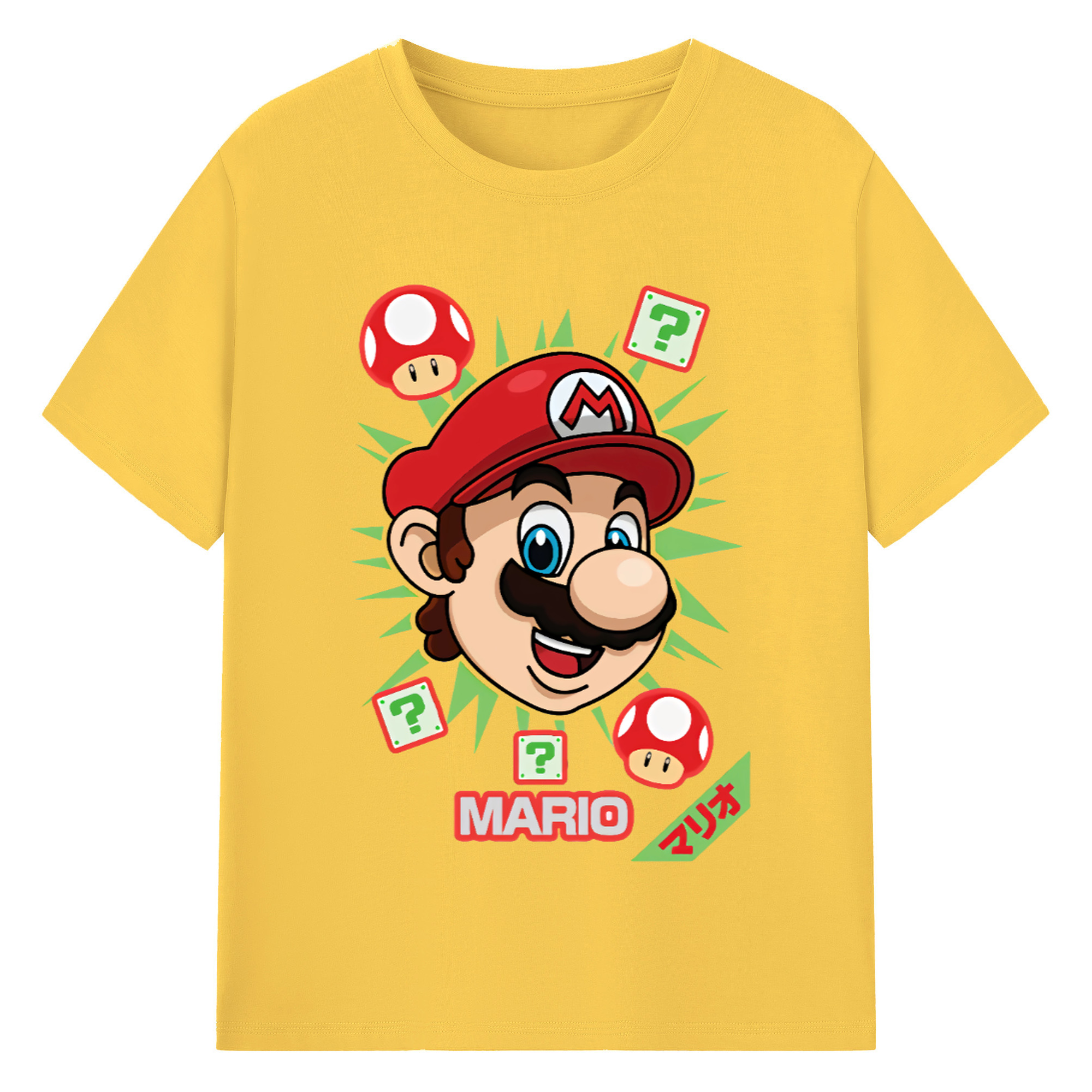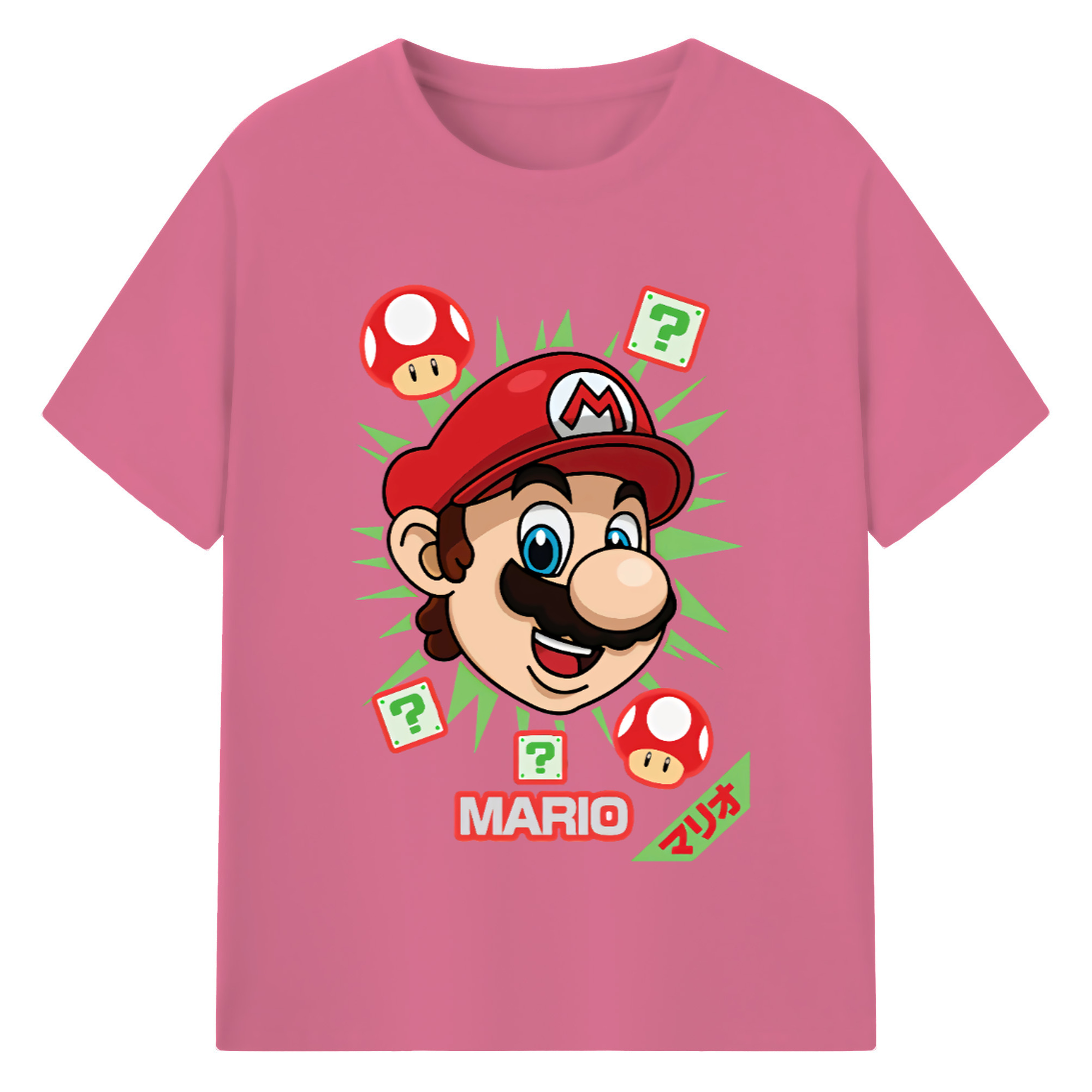 Nintendo mario cartoon profile t-shirt - 180g Cotton T-Shirt With Front Heat Transfer Print – Soft, Lightweight, Fitted Design – Comfortable Casual Wear For Sports & Everyday Use