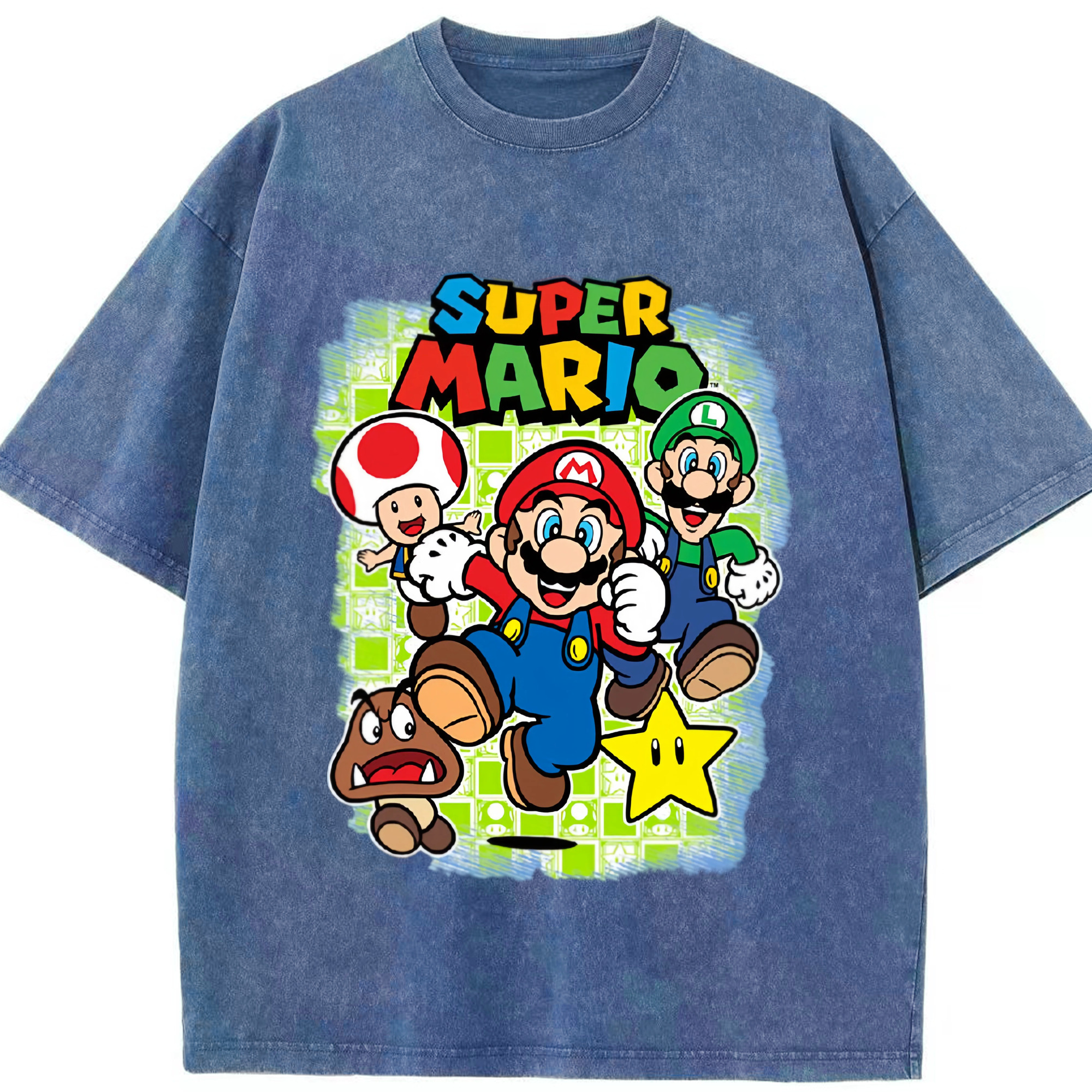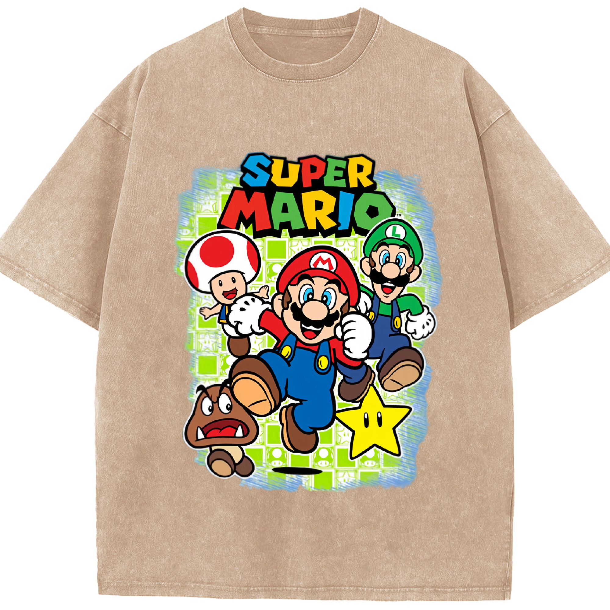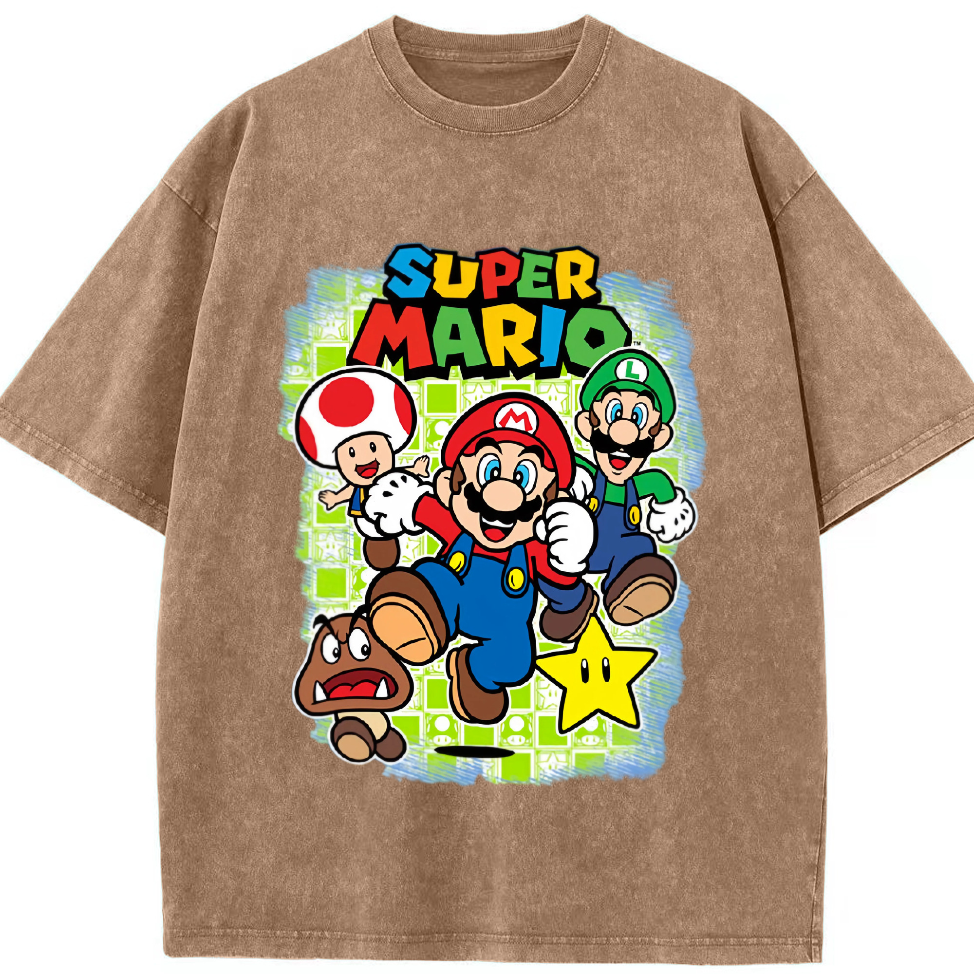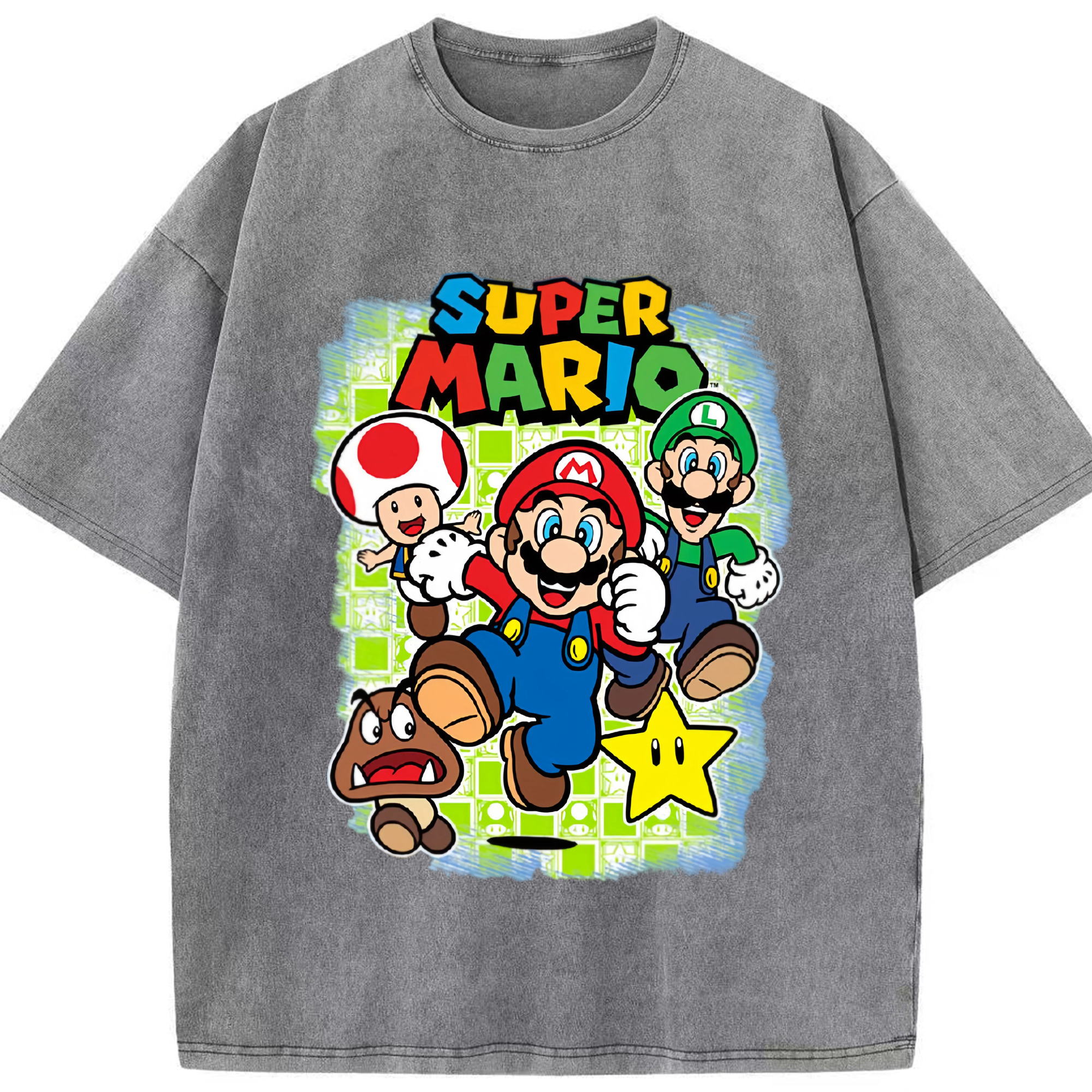 Nintendo mario cartoon tee - Washed Vintage Look 230g Cotton Oversized T-Shirt With Front Heat Transfer Print – Soft, Lightweight, Stylish Fit – Comfortable Casual Wear For Sports & Everyday Use