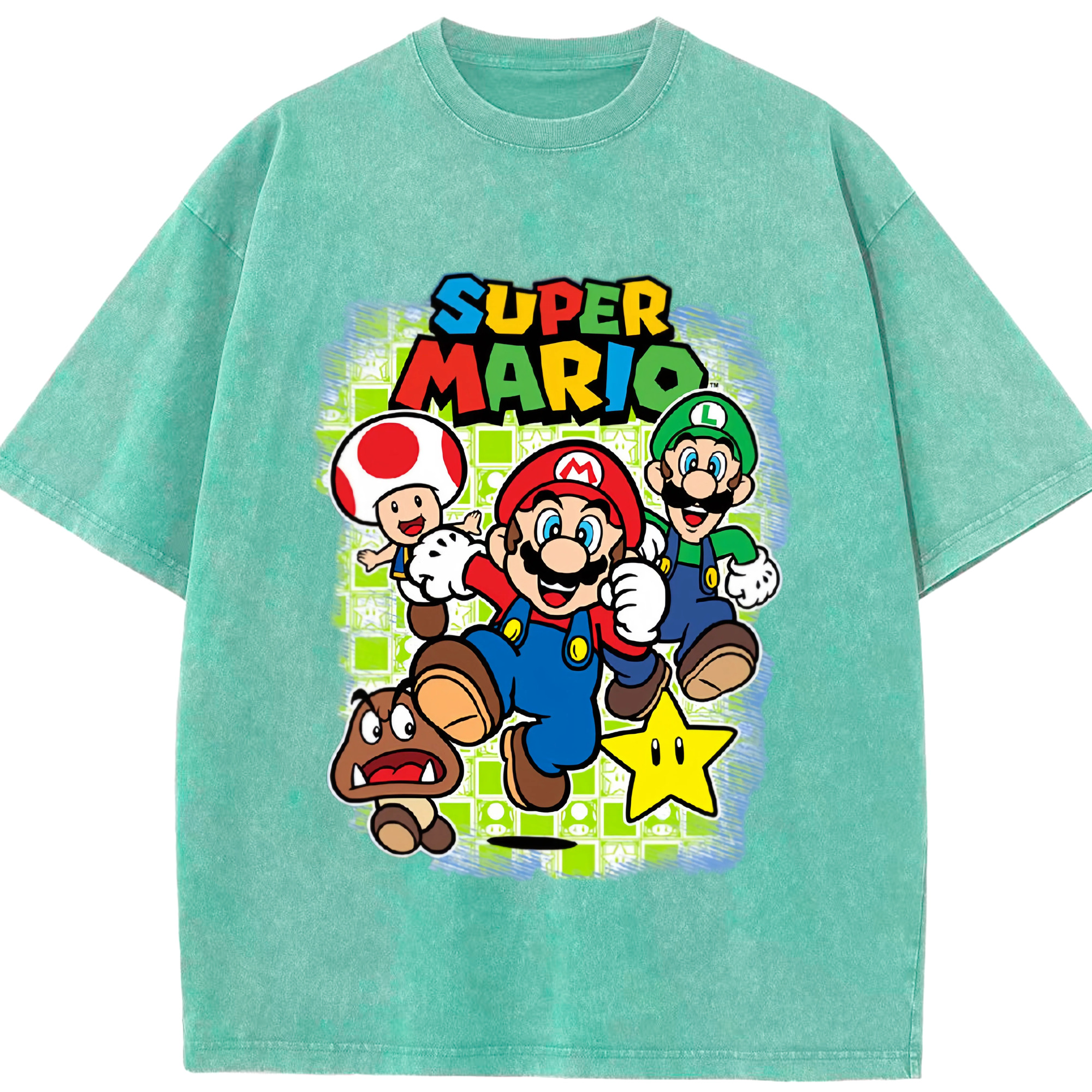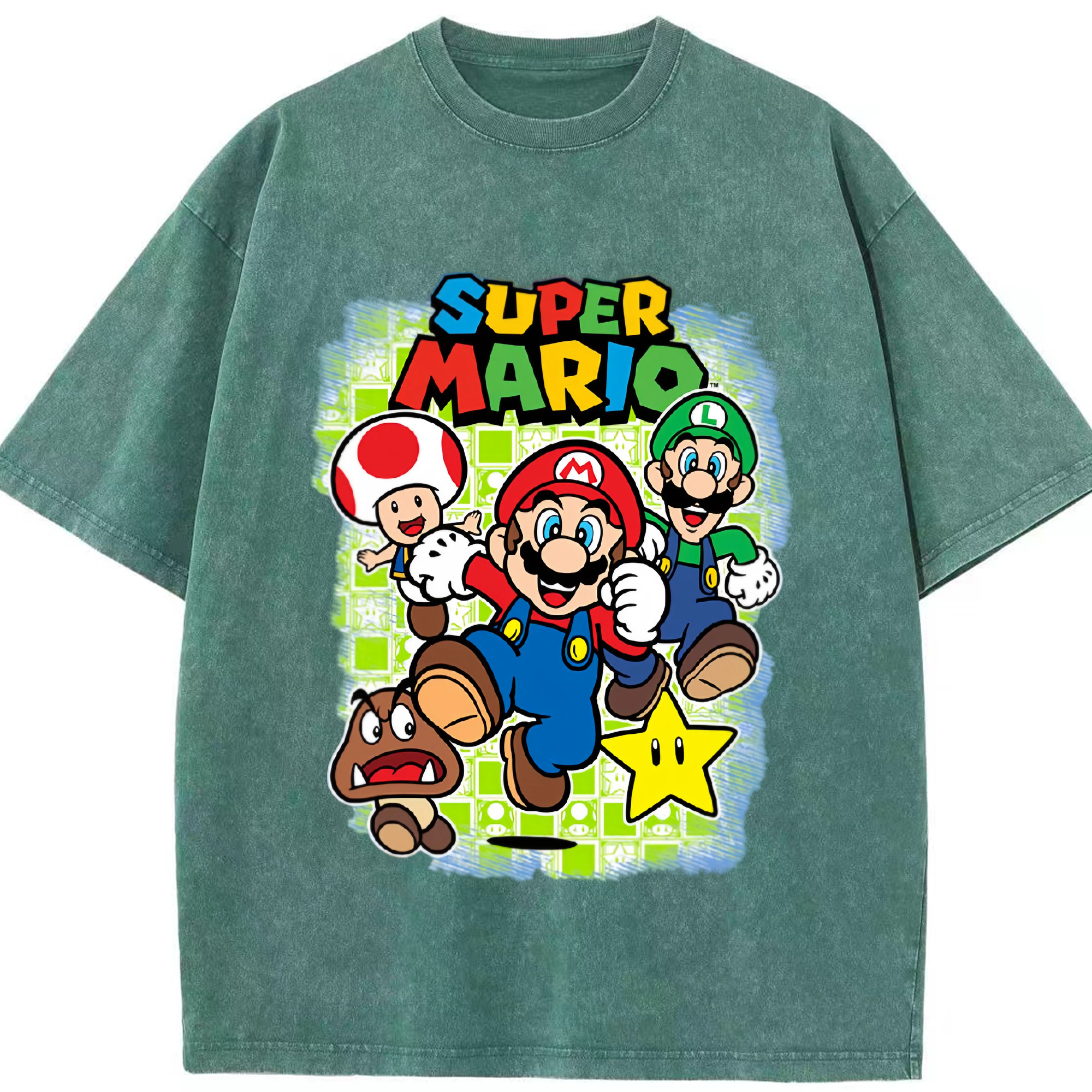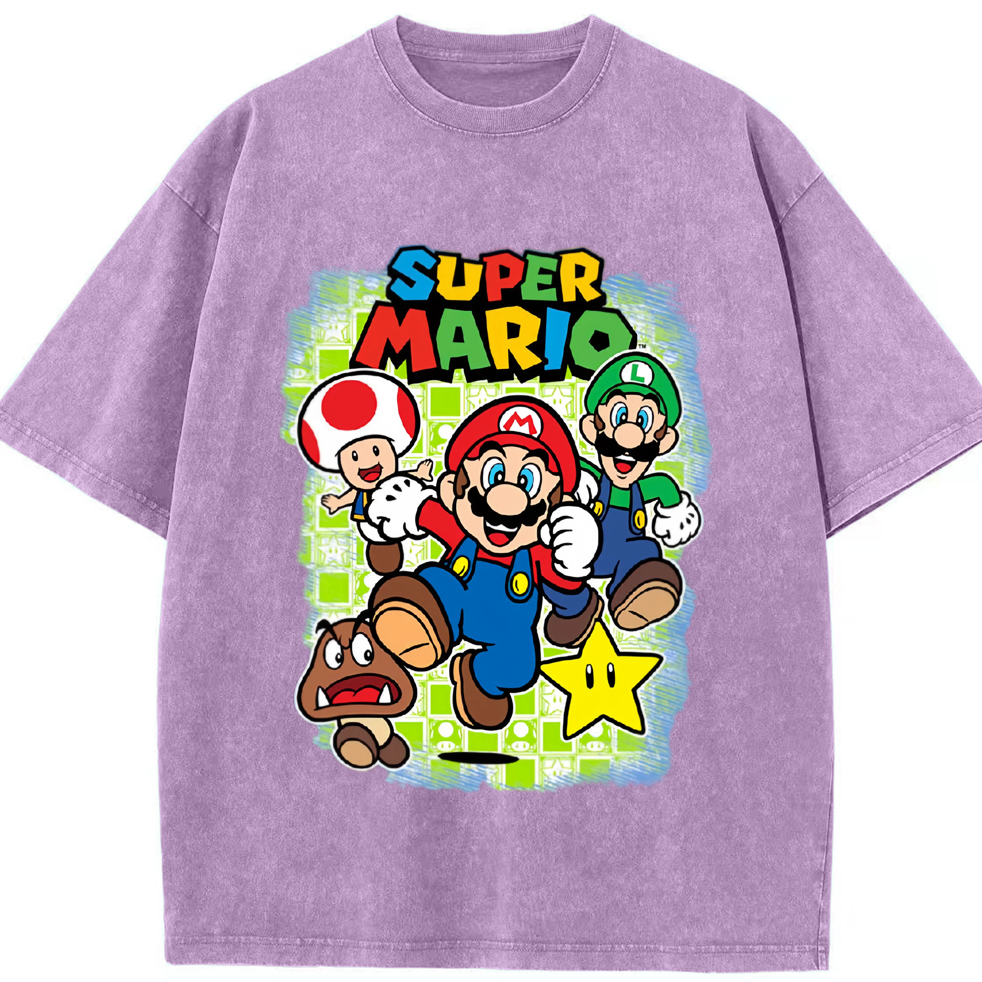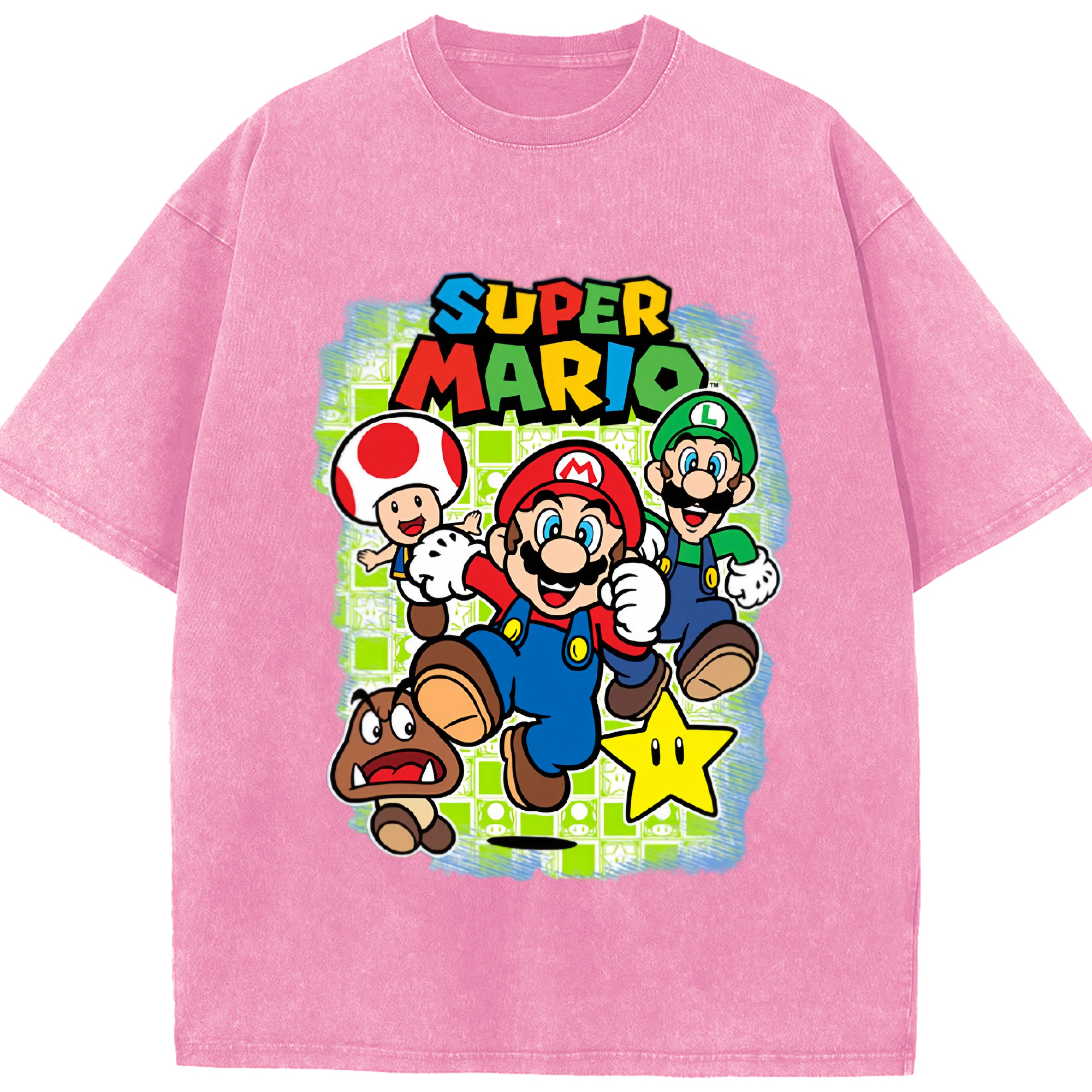 Nintendo mario cartoon tee - Washed Vintage Look 230g Cotton Oversized T-Shirt With Front Heat Transfer Print – Soft, Lightweight, Stylish Fit – Comfortable Casual Wear For Sports & Everyday Use