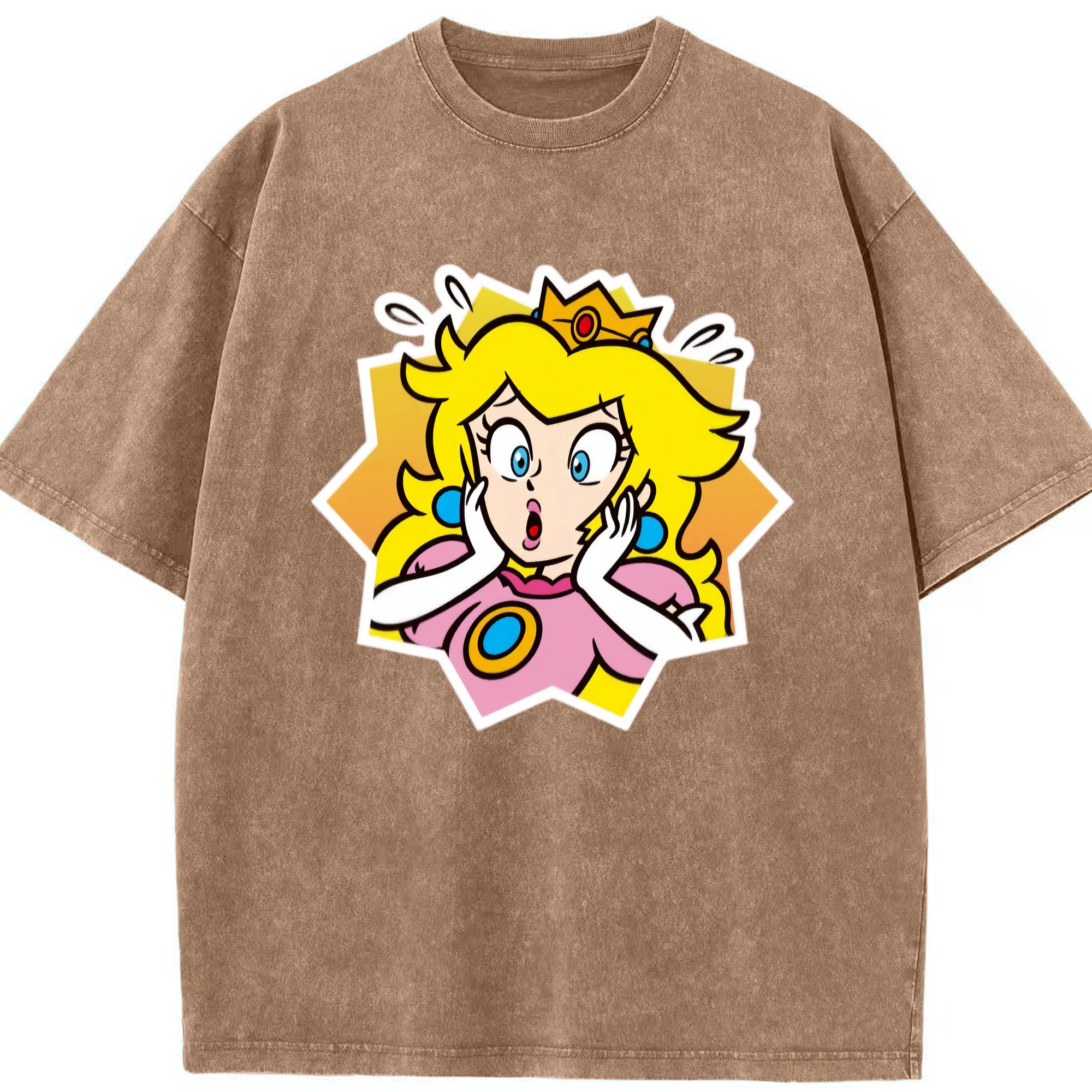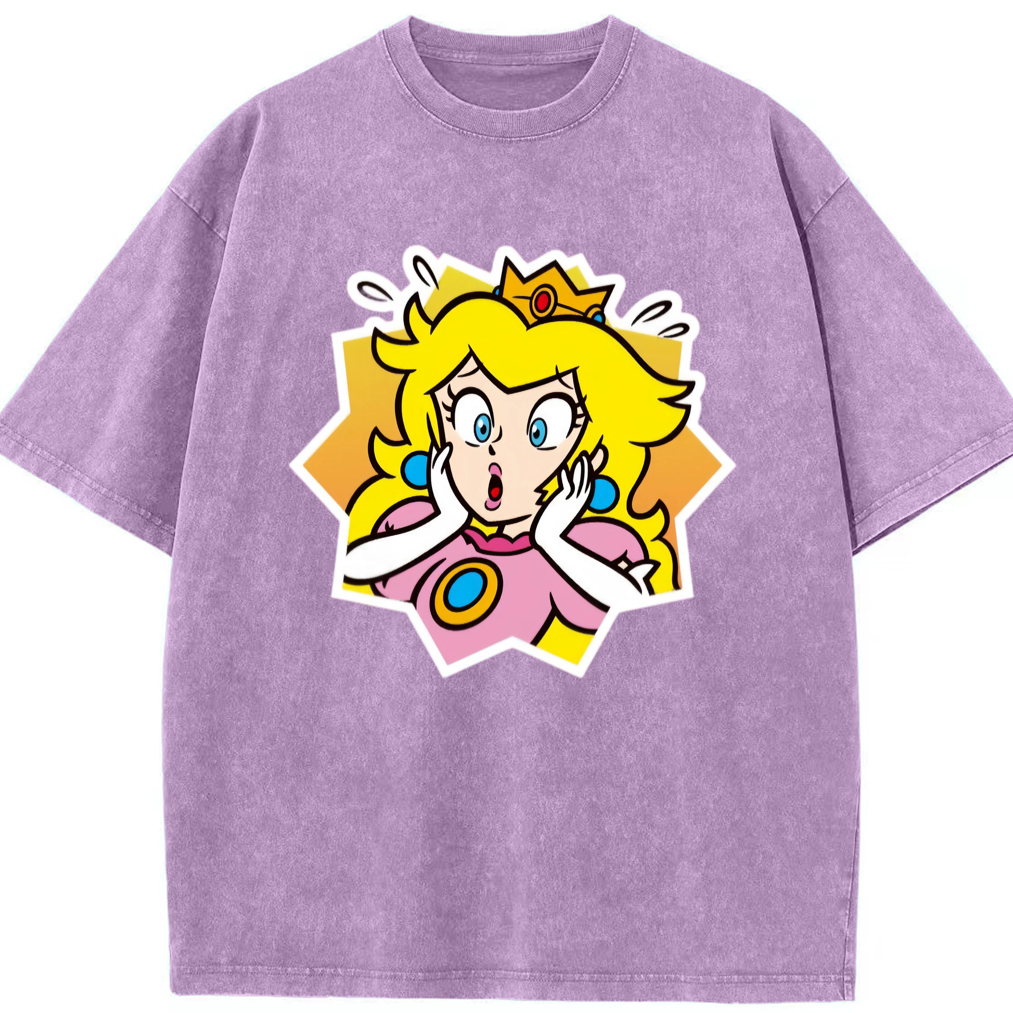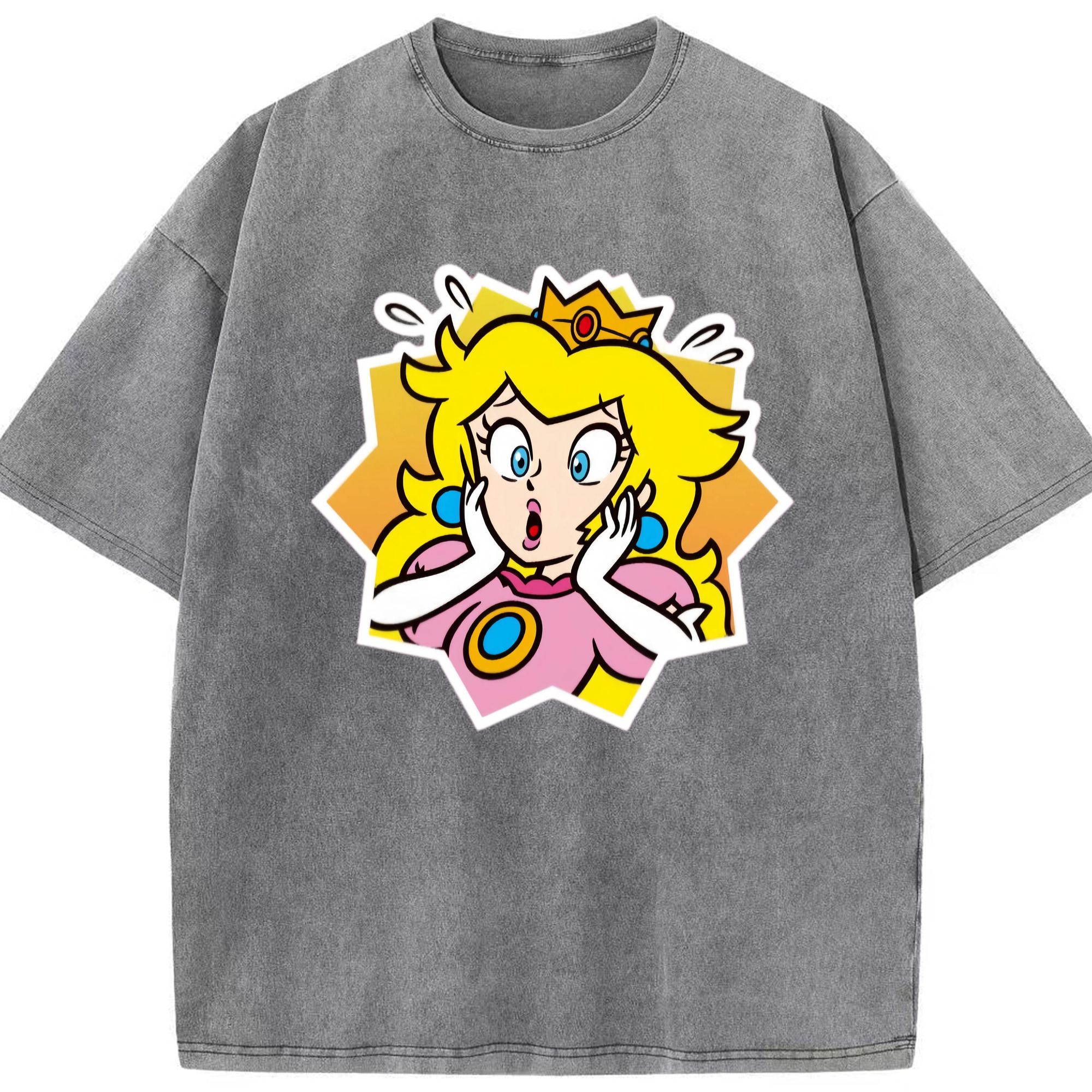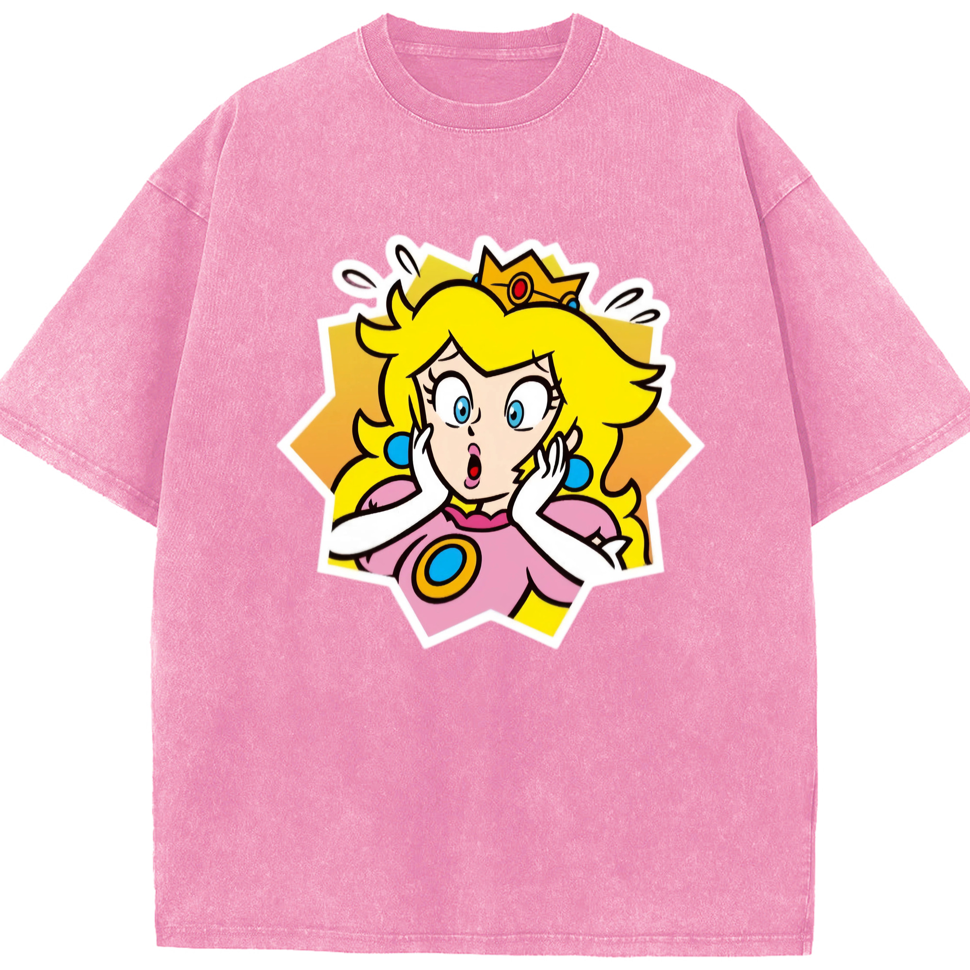 Nintendo princess peach 'surprised' t-shirt - Washed Vintage Look 230g Cotton Oversized T-Shirt With Front Heat Transfer Print – Soft, Lightweight, Stylish Fit – Comfortable Casual Wear For Sports & Everyday Use