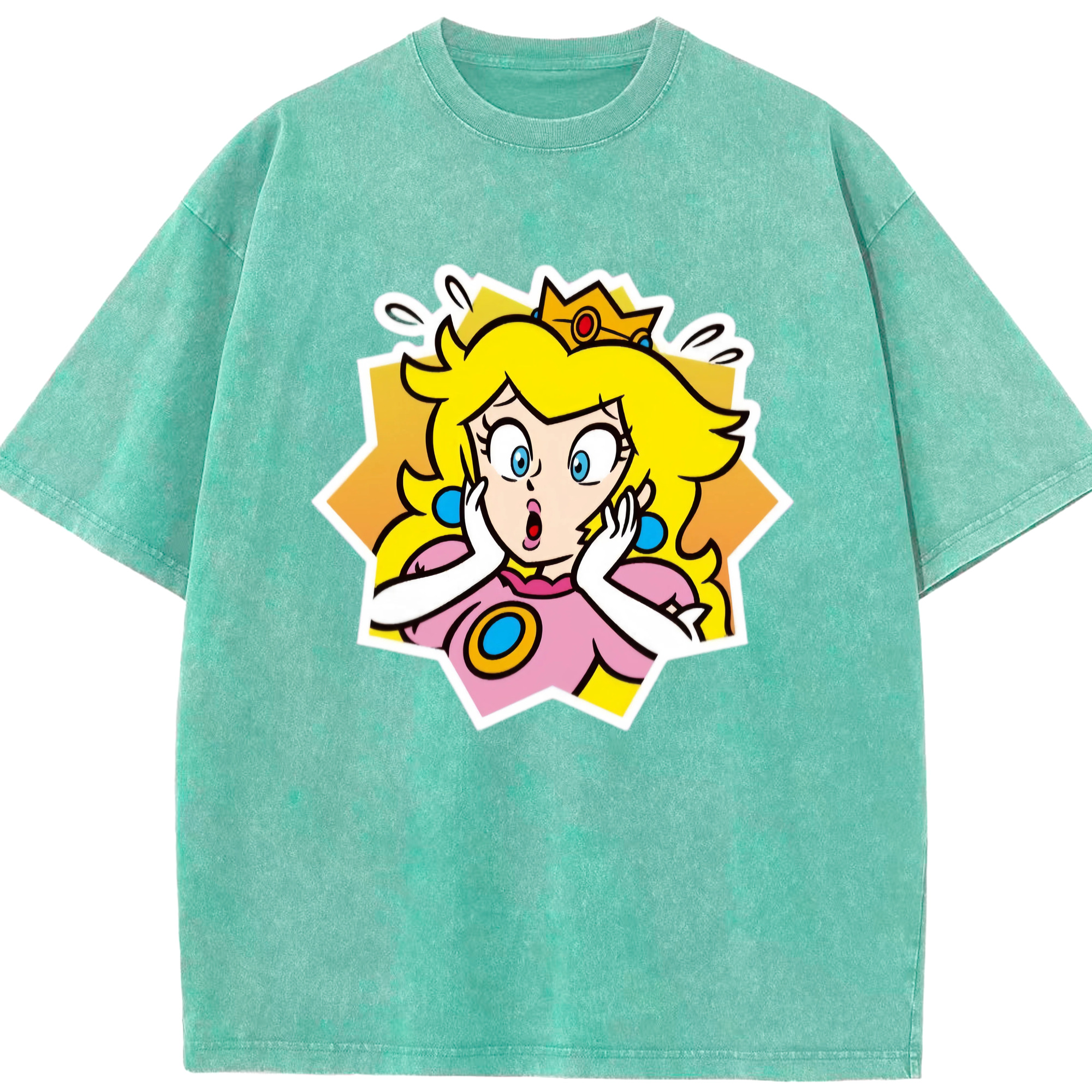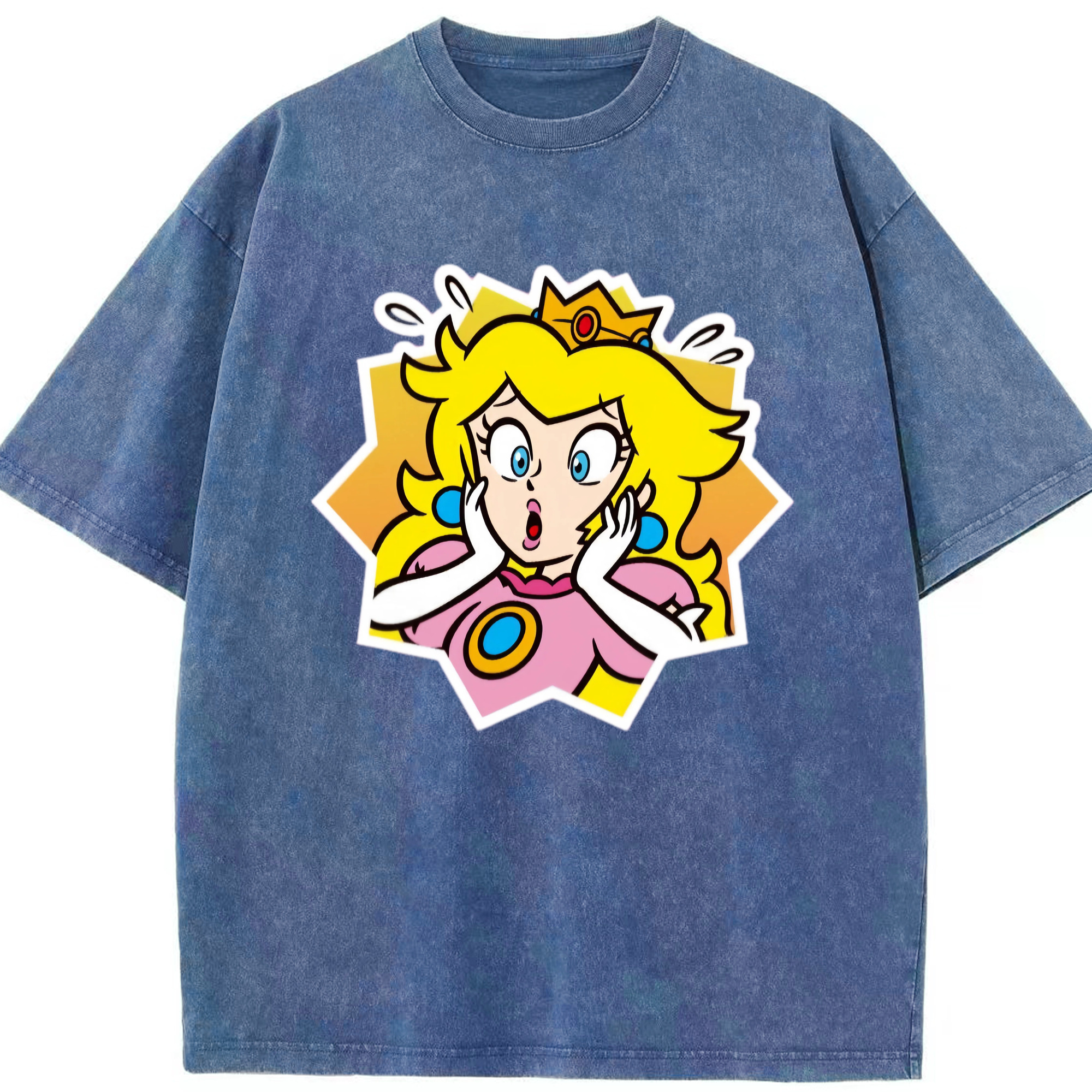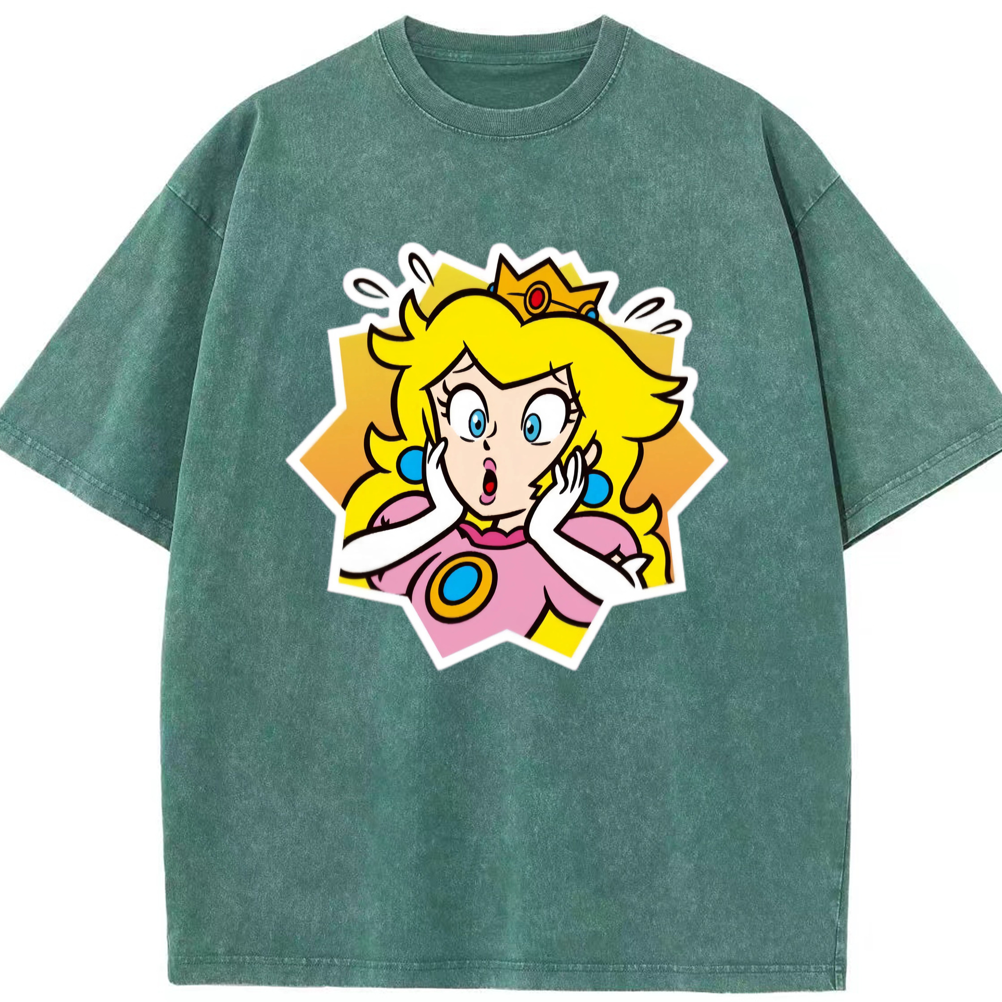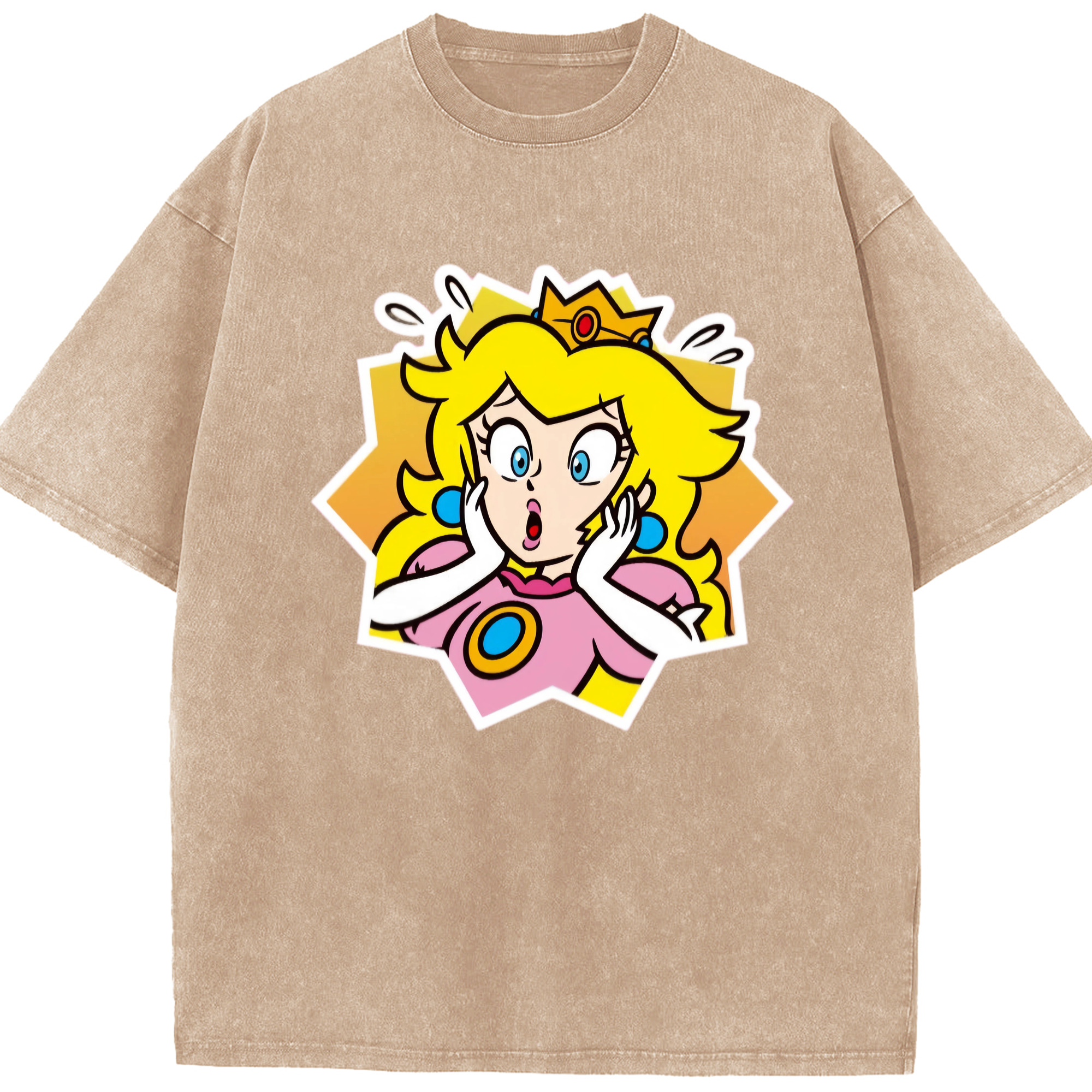 Nintendo princess peach 'surprised' t-shirt - Washed Vintage Look 230g Cotton Oversized T-Shirt With Front Heat Transfer Print – Soft, Lightweight, Stylish Fit – Comfortable Casual Wear For Sports & Everyday Use