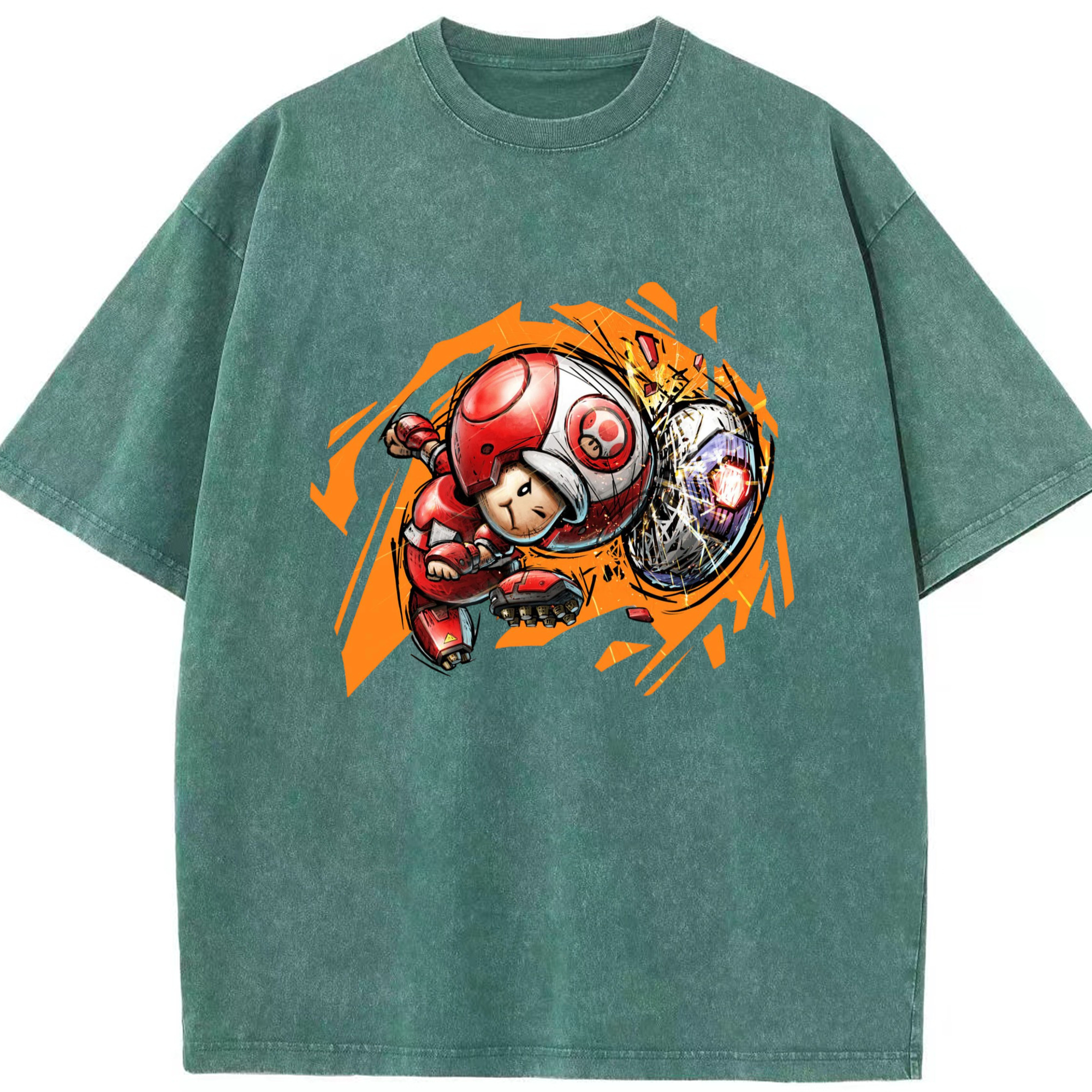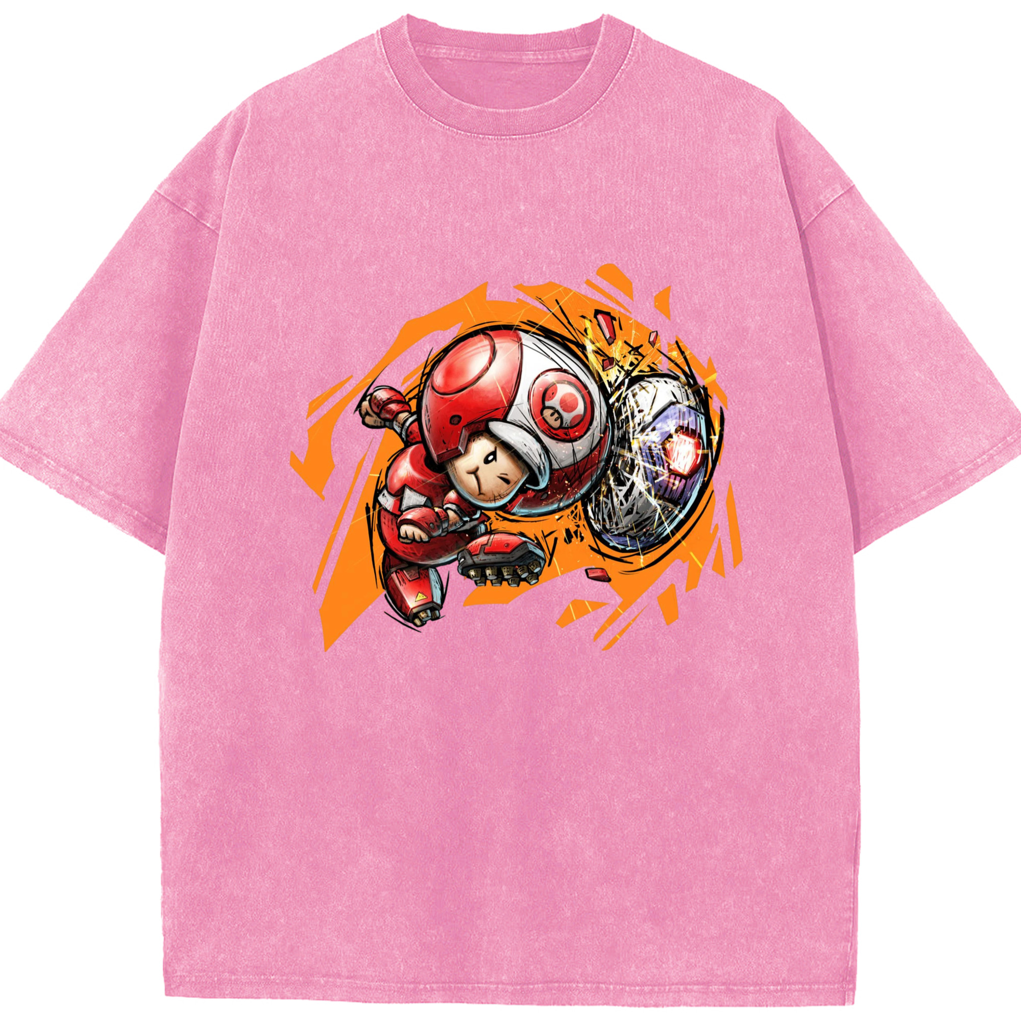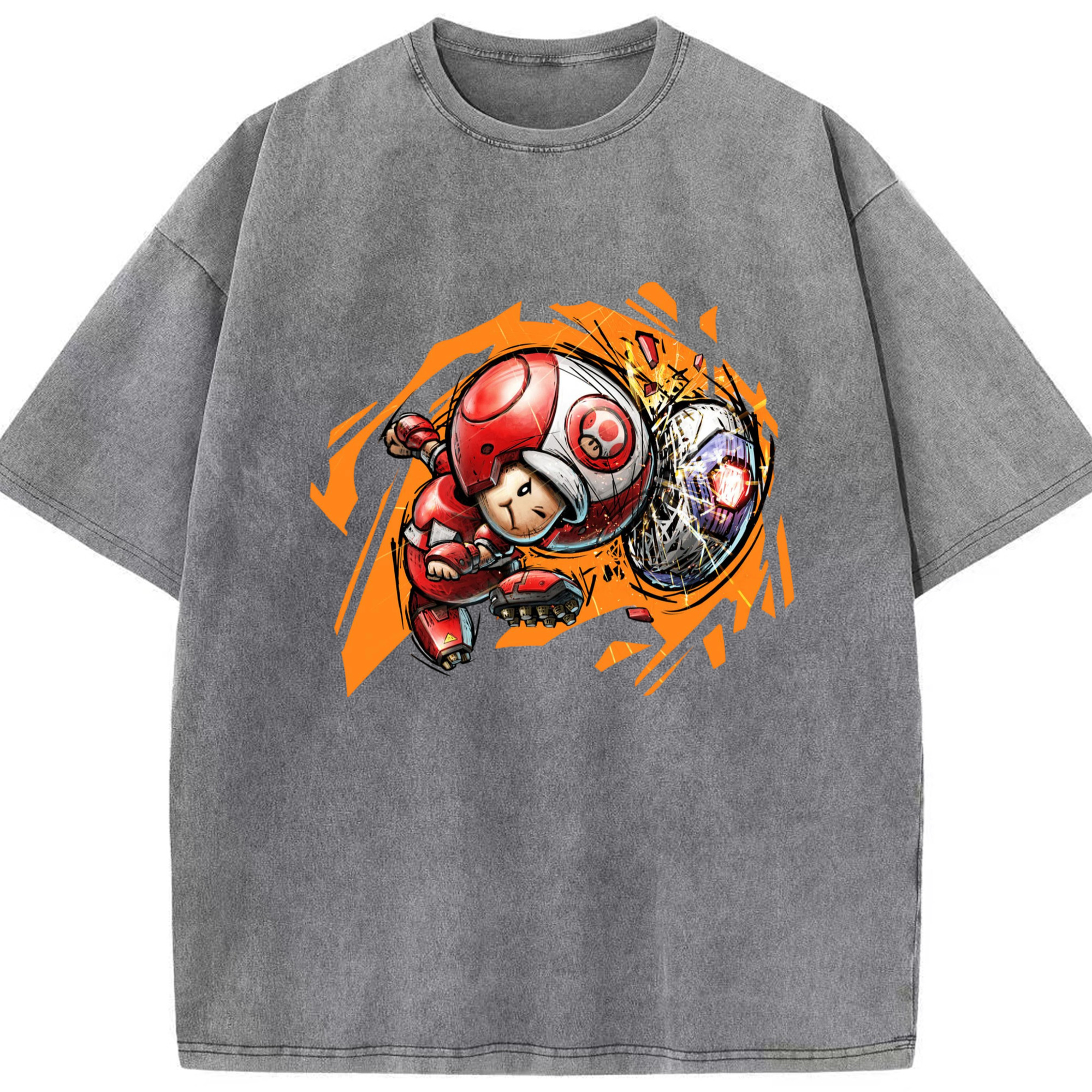Nintendo Red 'diving header ' Toad Shirt - Washed Vintage Look 230g Cotton Oversized T-Shirt With Front Heat Transfer Print – Soft, Lightweight, Stylish Fit – Comfortable Casual Wear For Sports & Everyday Use