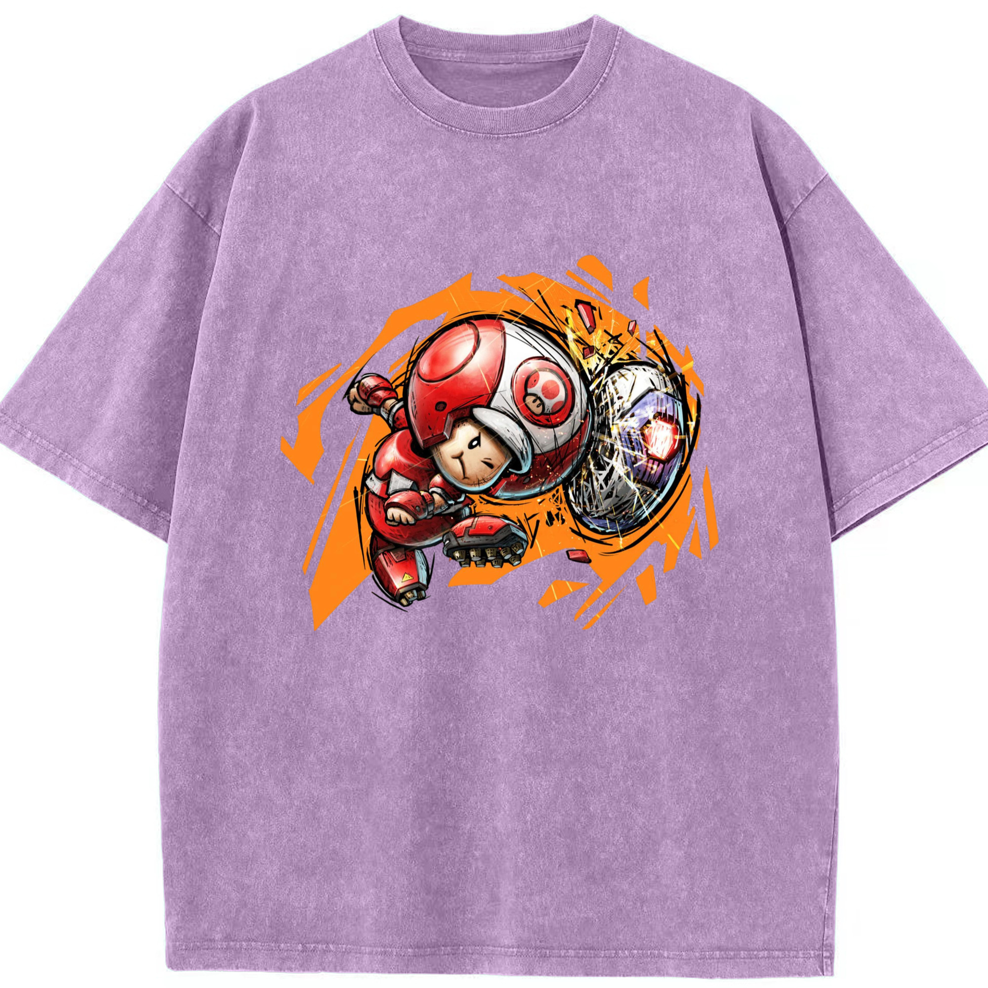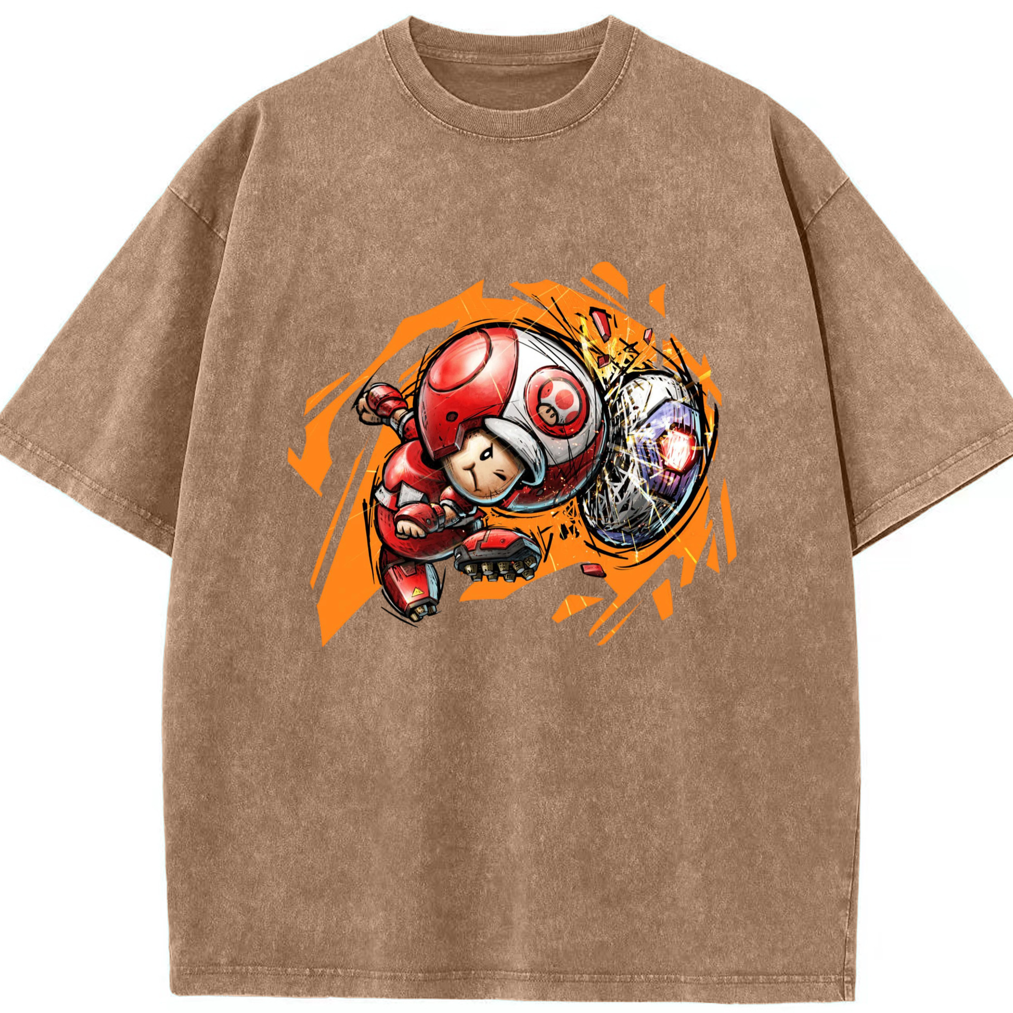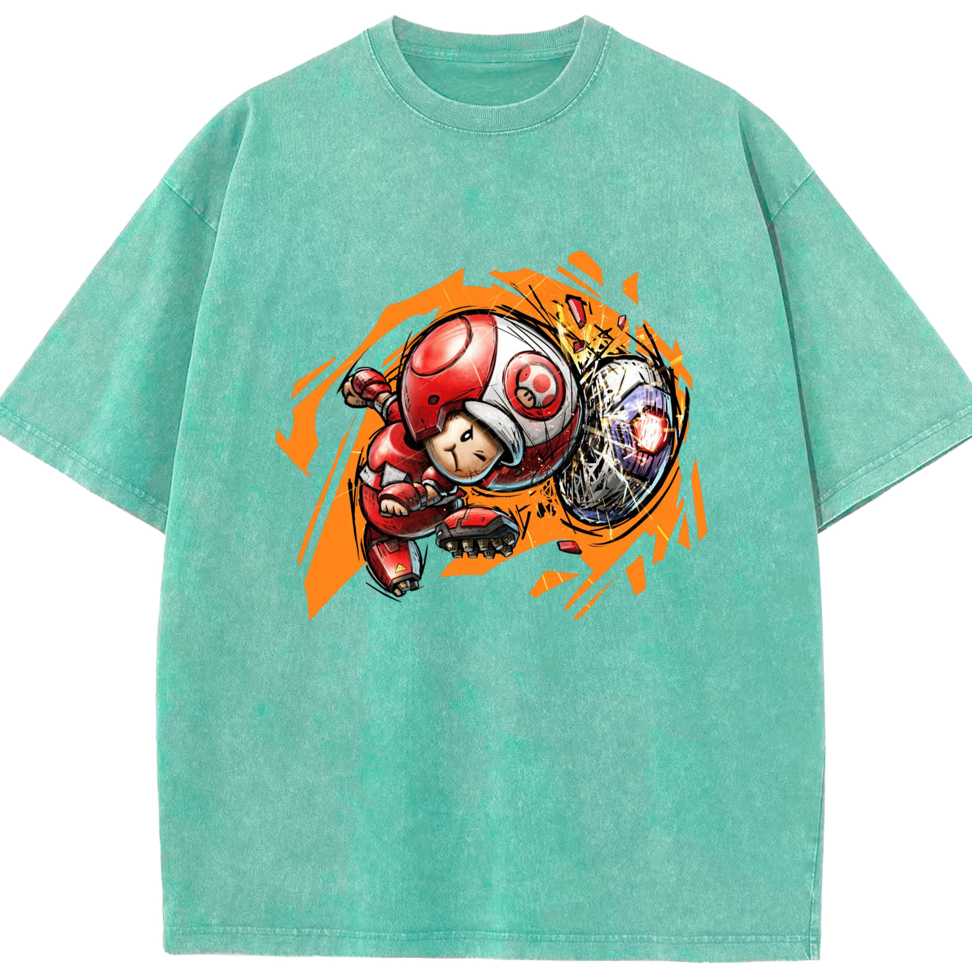 Nintendo Red 'diving header ' Toad Shirt - Washed Vintage Look 230g Cotton Oversized T-Shirt With Front Heat Transfer Print – Soft, Lightweight, Stylish Fit – Comfortable Casual Wear For Sports & Everyday Use