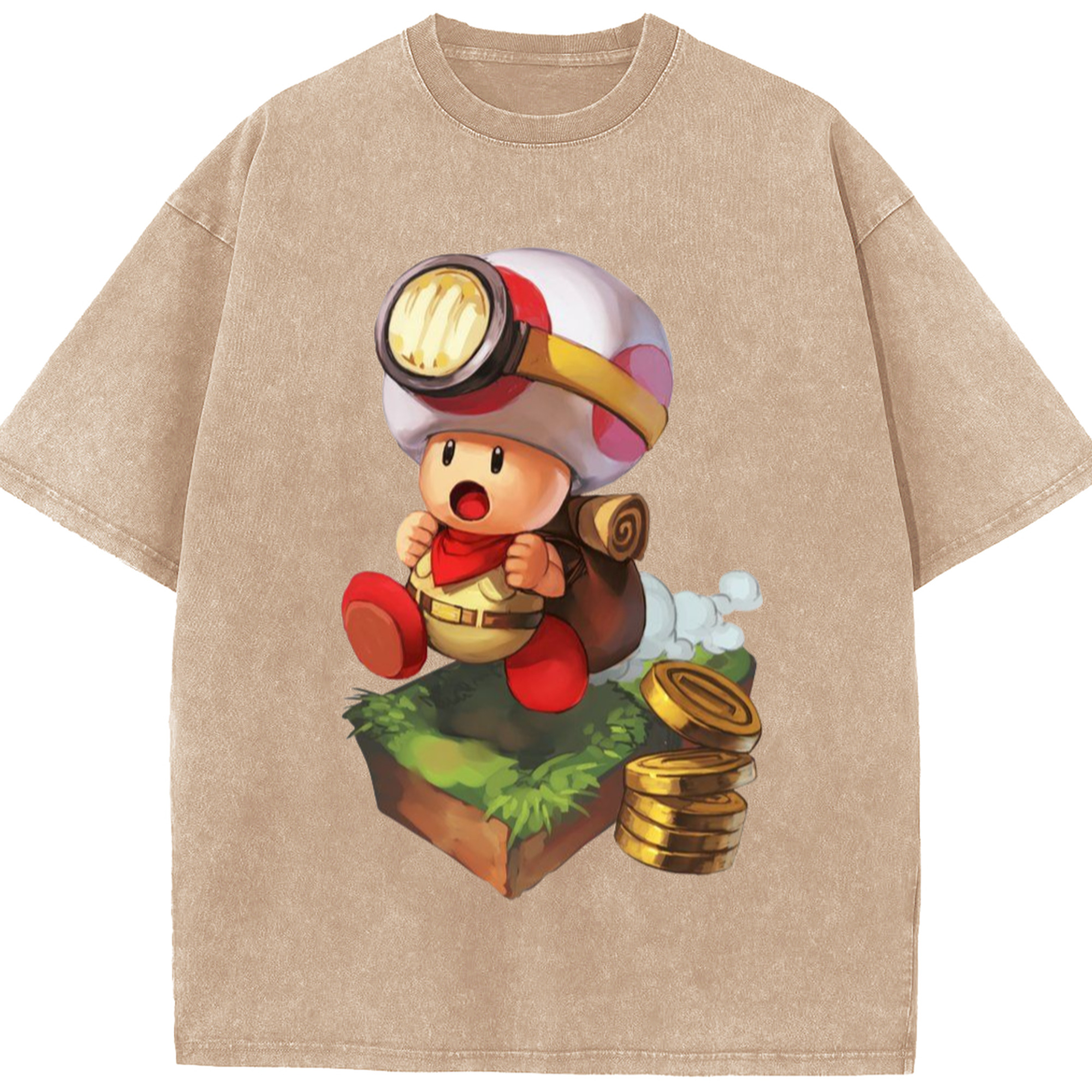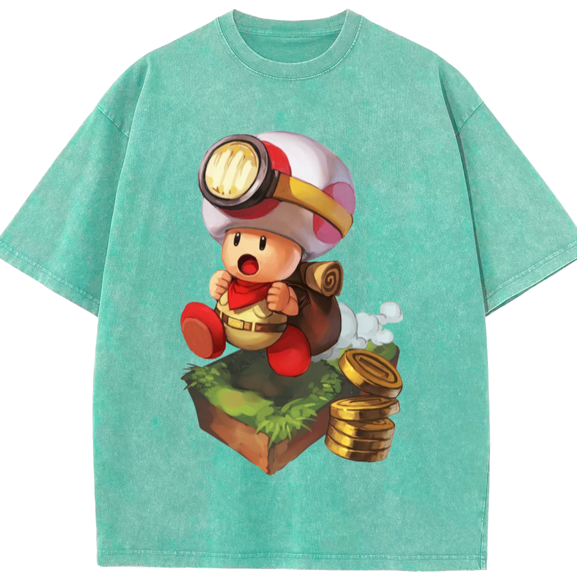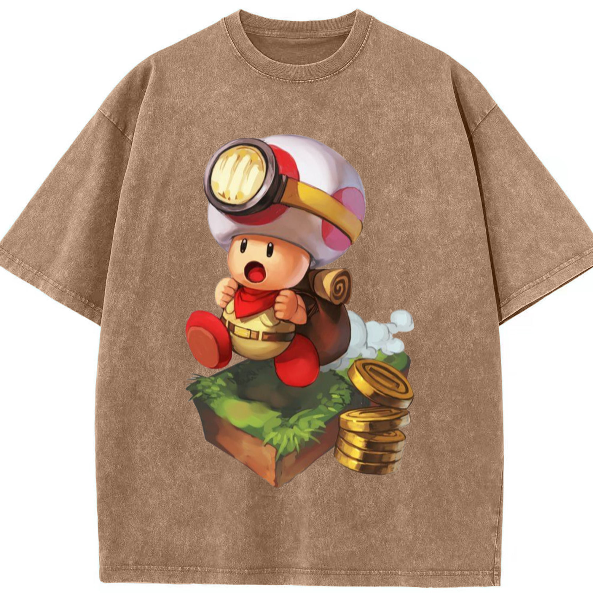 Nintendo Red 'find cion' Toad Shirt - Washed Vintage Look 230g Cotton Oversized T-Shirt With Front Heat Transfer Print – Soft, Lightweight, Stylish Fit – Comfortable Casual Wear For Sports & Everyday Use