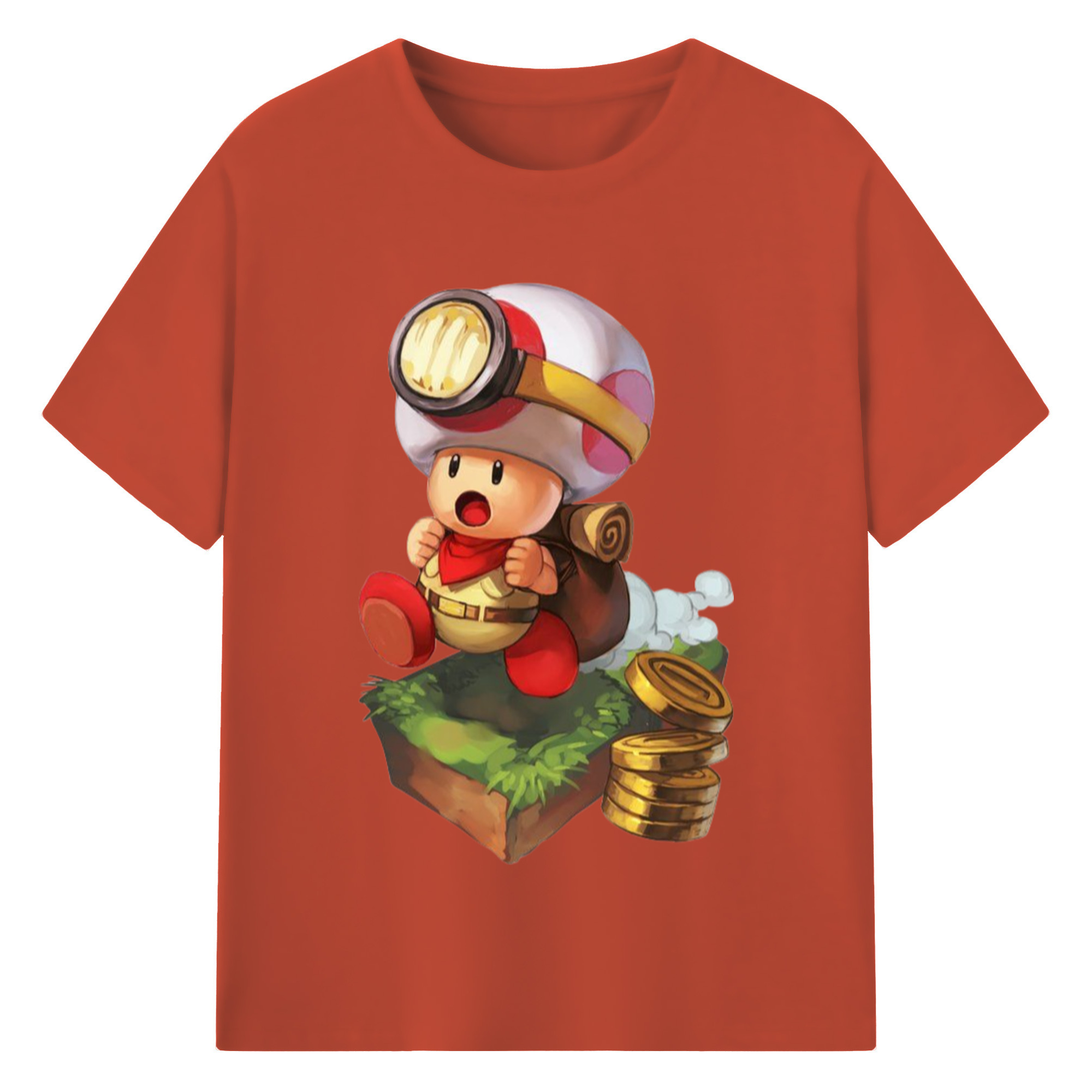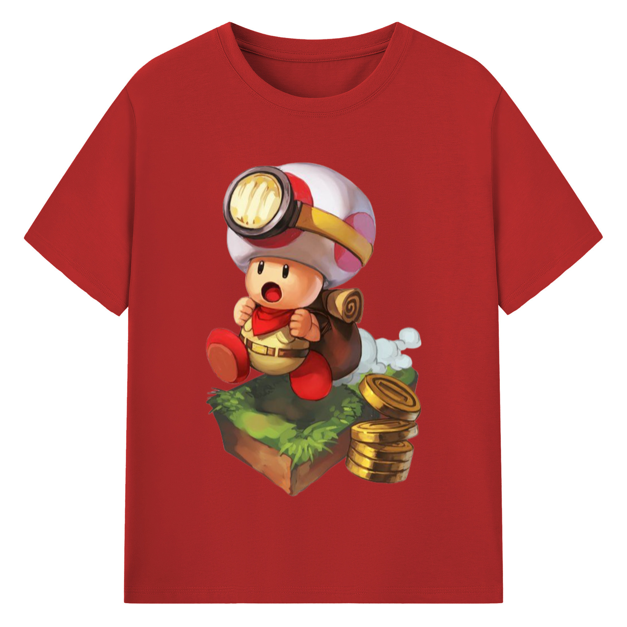 Nintendo Red 'find cion' Toad Shirt - 180g Cotton T-Shirt With Front Heat Transfer Print – Soft, Lightweight, Fitted Design – Comfortable Casual Wear For Sports & Everyday Use