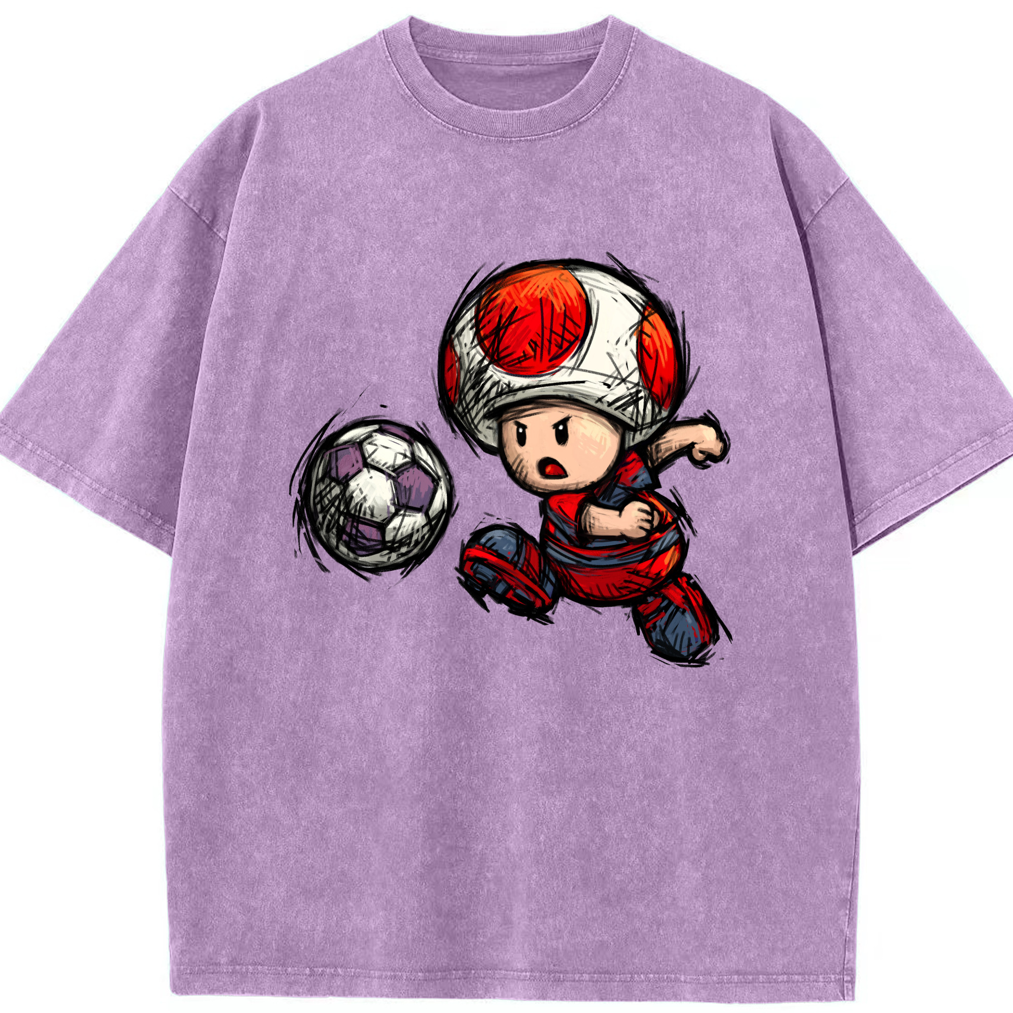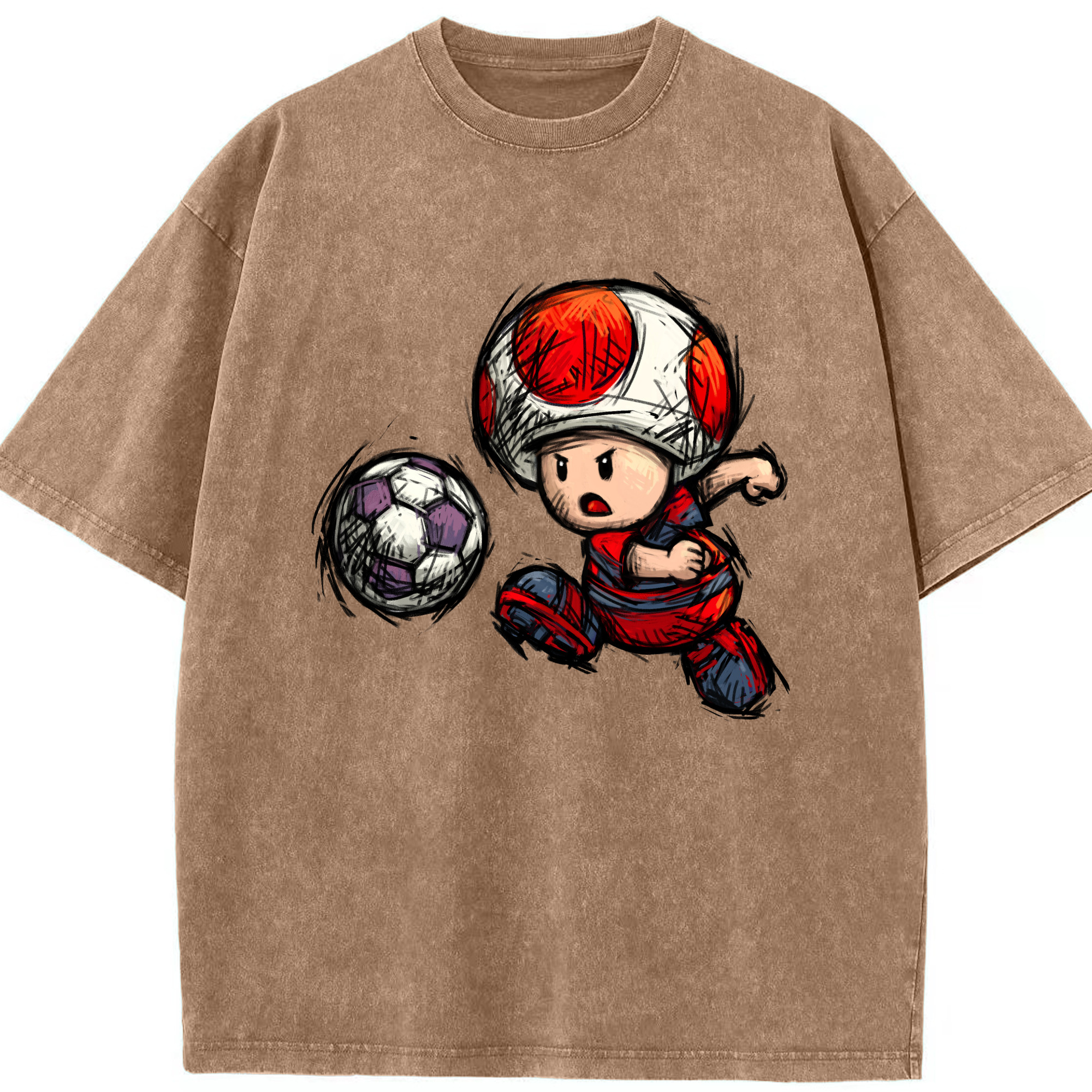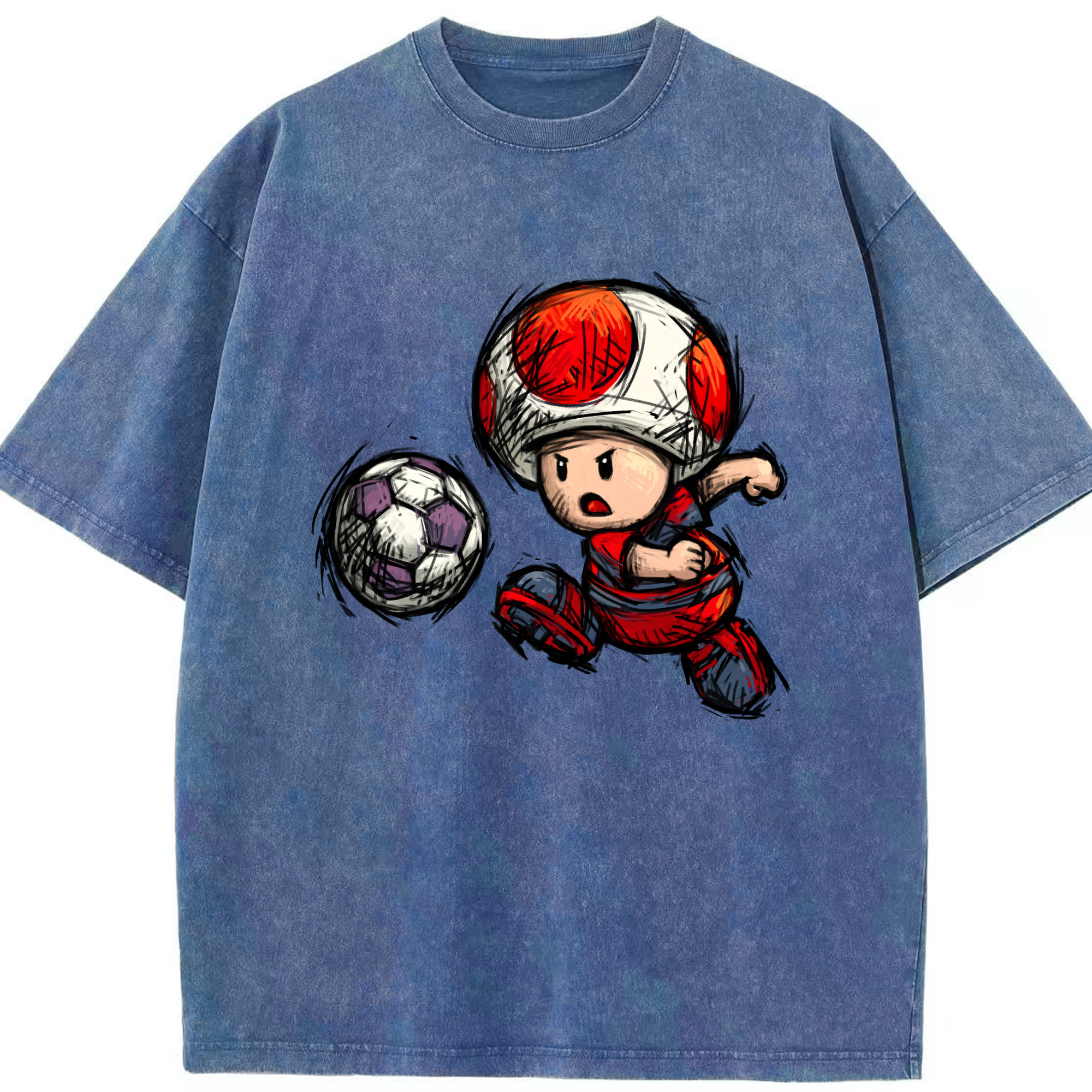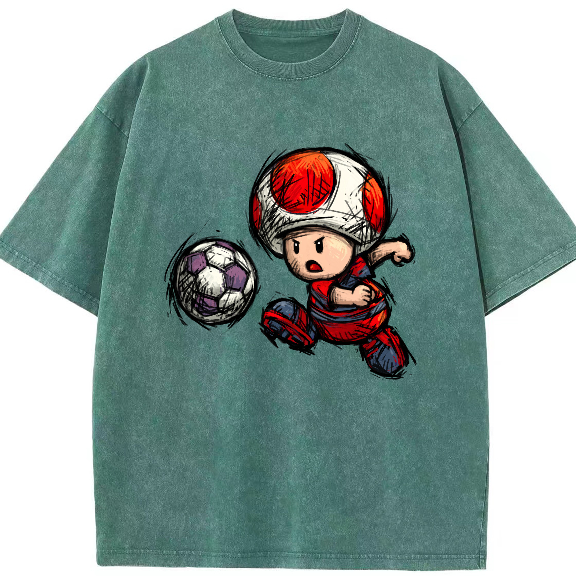 Nintendo Red 'pass football' Toad Shirt - Washed Vintage Look 230g Cotton Oversized T-Shirt With Front Heat Transfer Print – Soft, Lightweight, Stylish Fit – Comfortable Casual Wear For Sports & Everyday Use