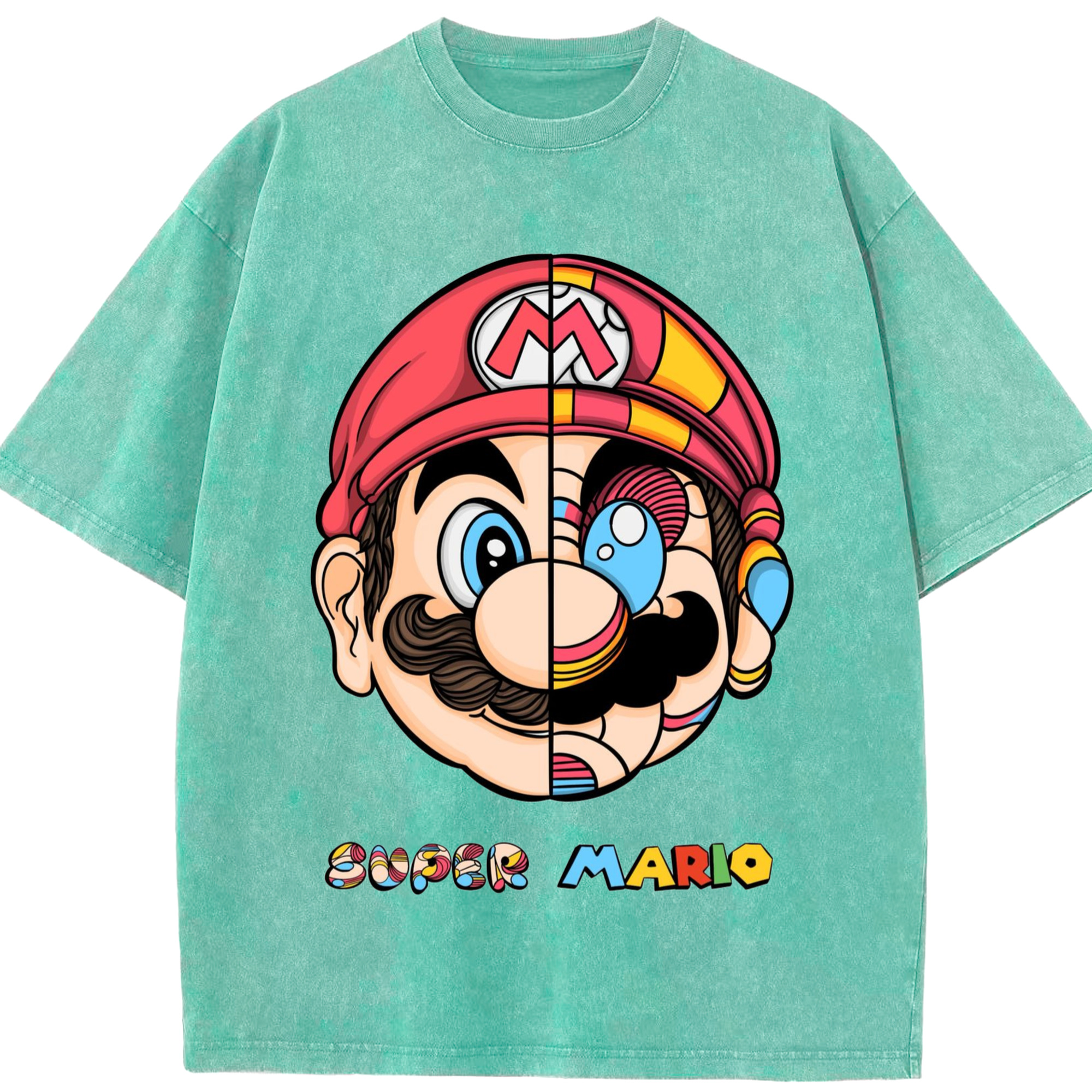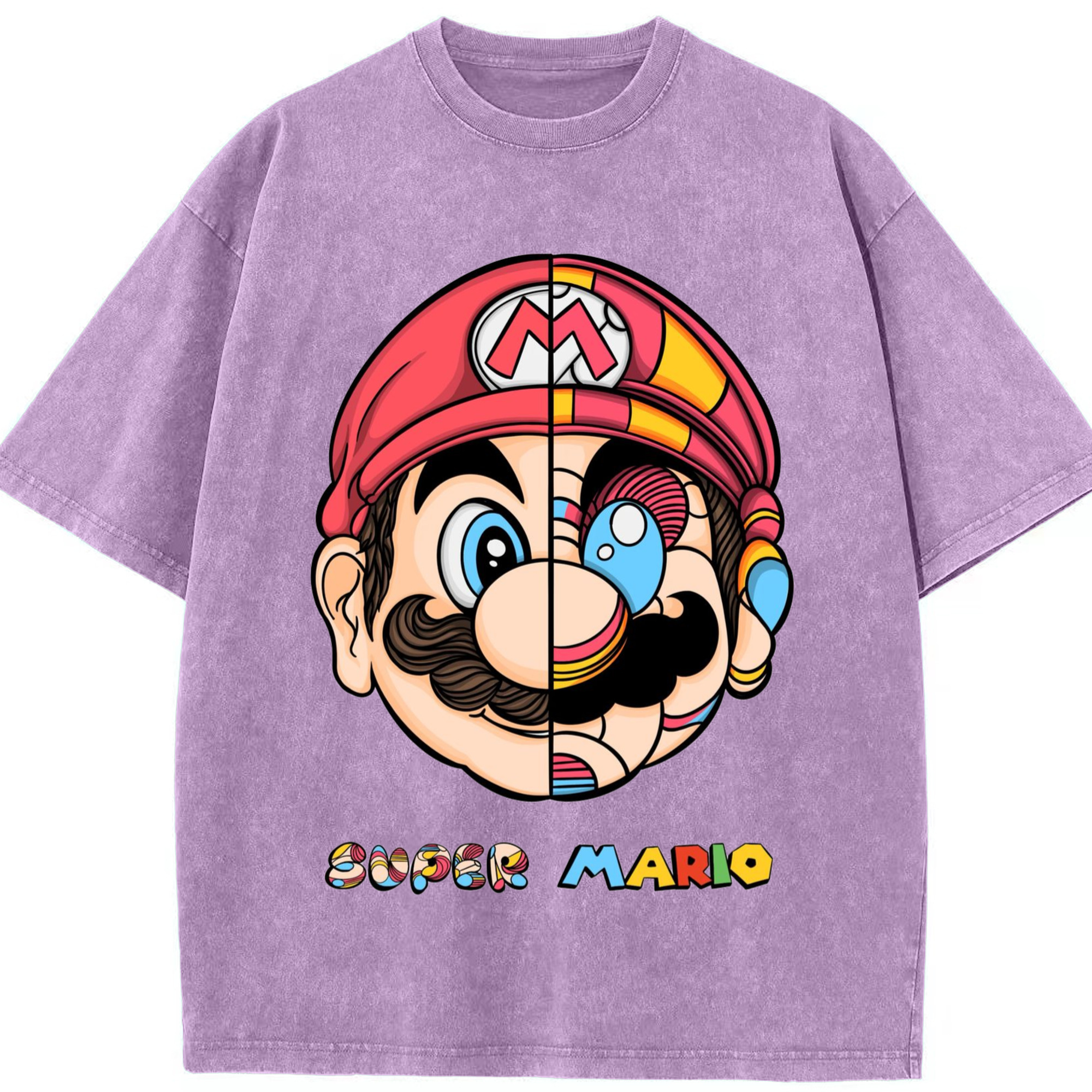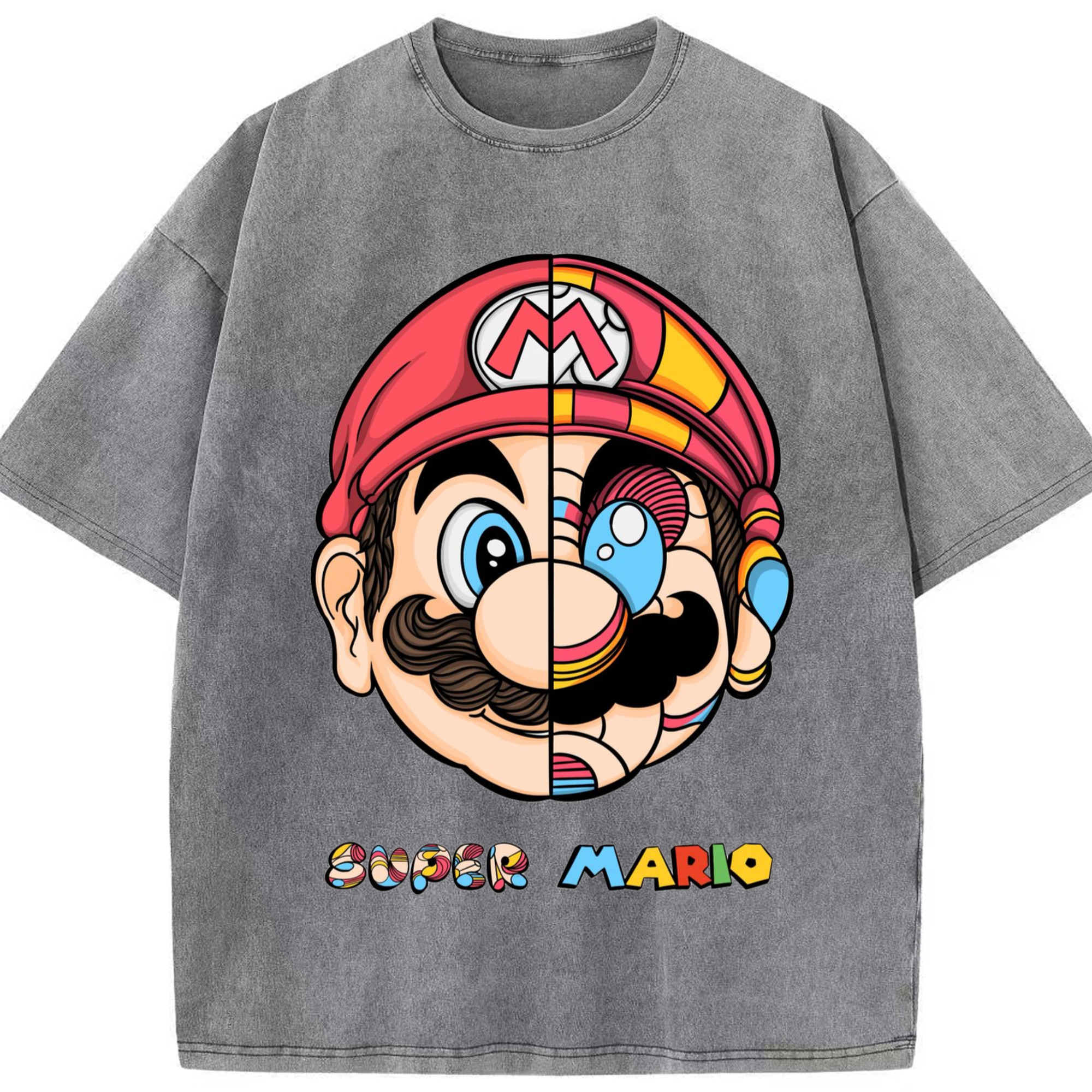 Nintendo Super Colored origami style t-shirt - Washed Vintage Look 230g Cotton Oversized T-Shirt With Front Heat Transfer Print – Soft, Lightweight, Stylish Fit – Comfortable Casual Wear For Sports & Everyday Use