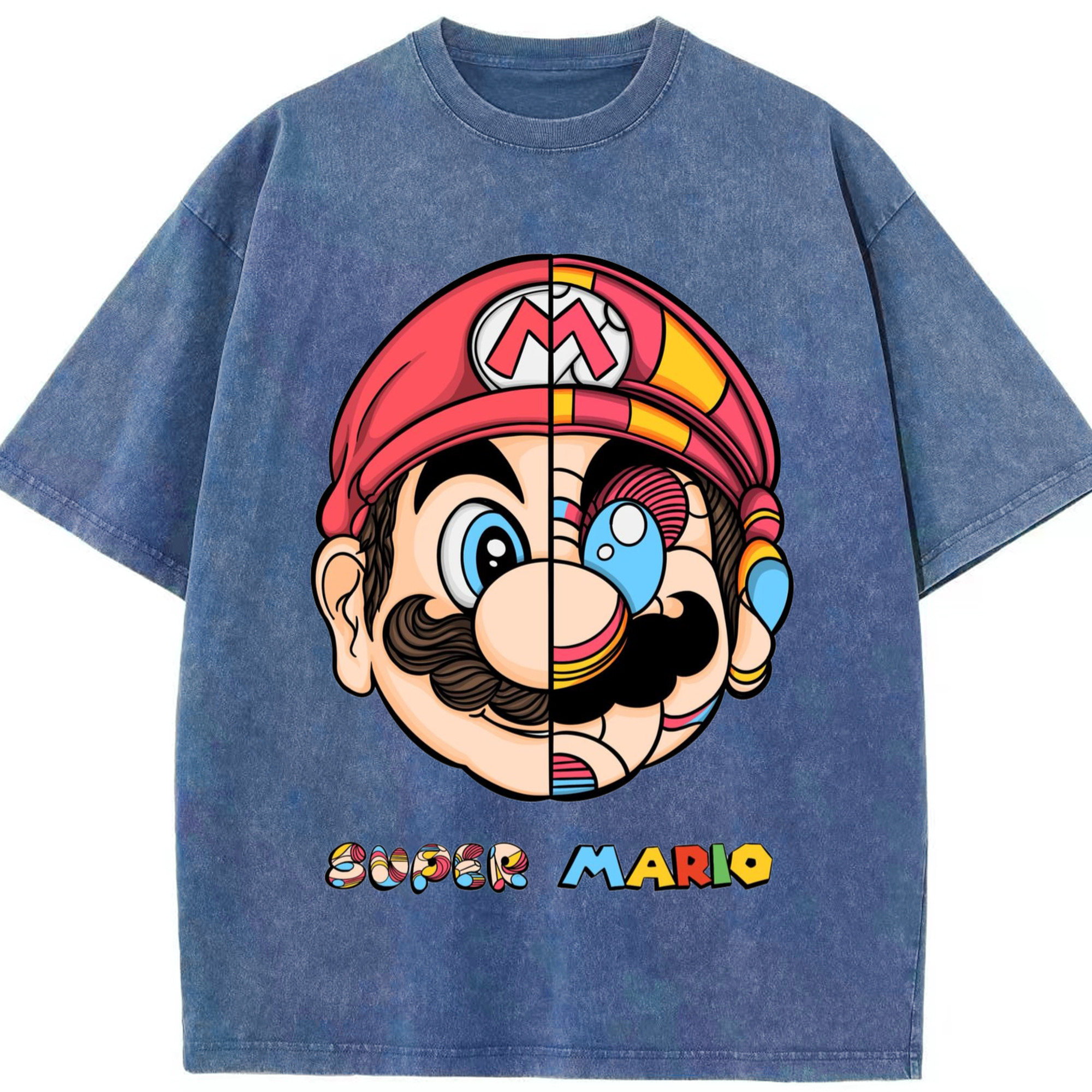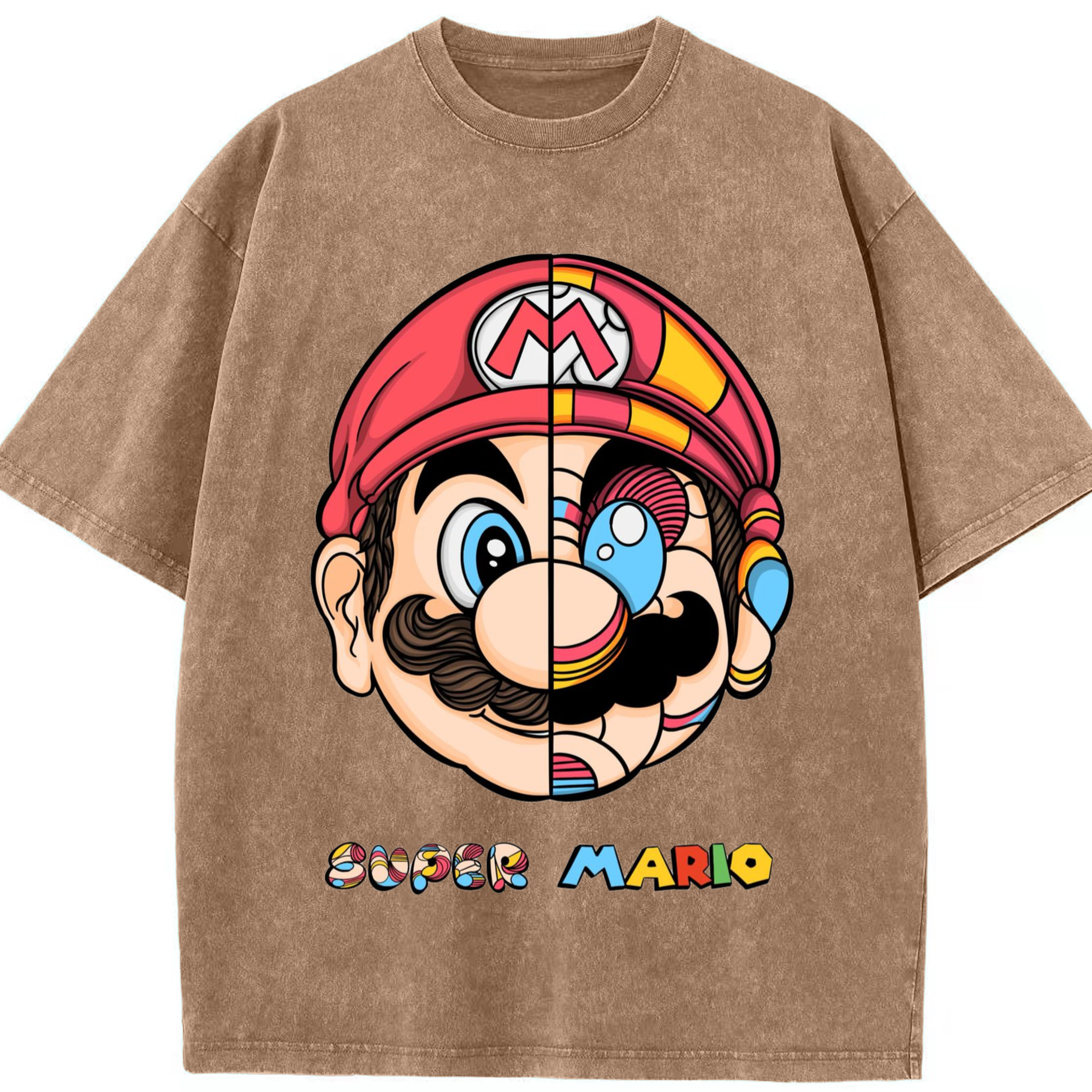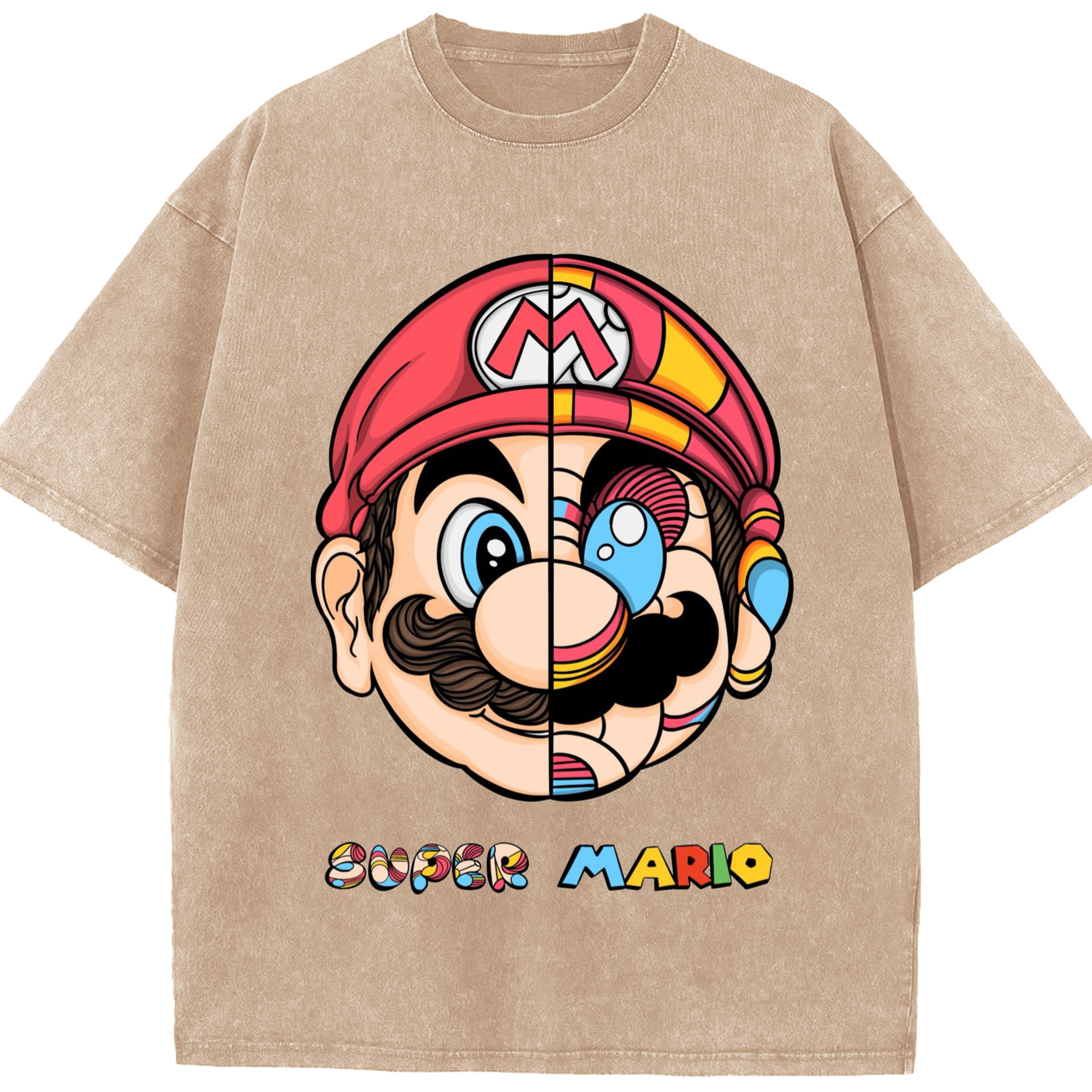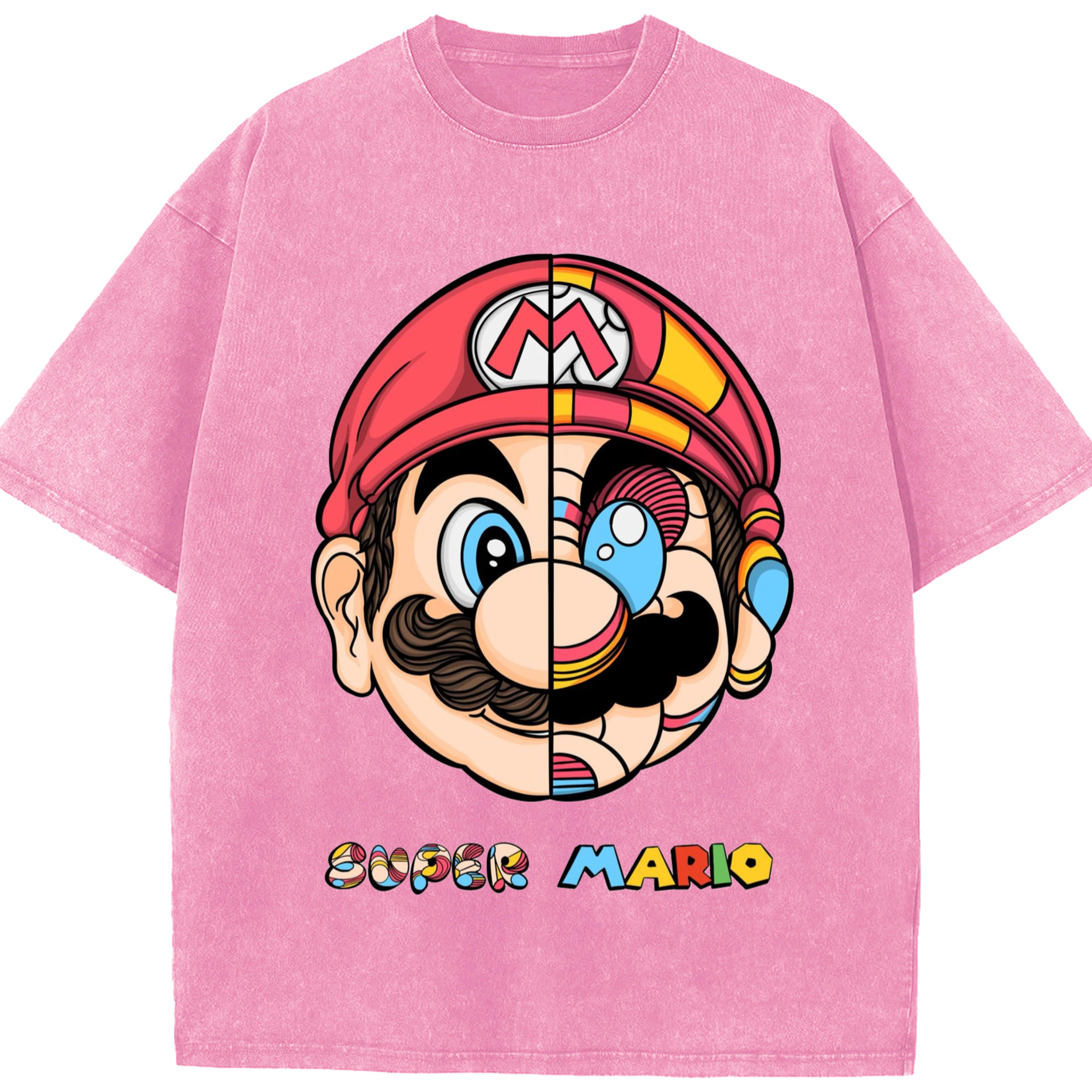 Nintendo Super Colored origami style t-shirt - Washed Vintage Look 230g Cotton Oversized T-Shirt With Front Heat Transfer Print – Soft, Lightweight, Stylish Fit – Comfortable Casual Wear For Sports & Everyday Use