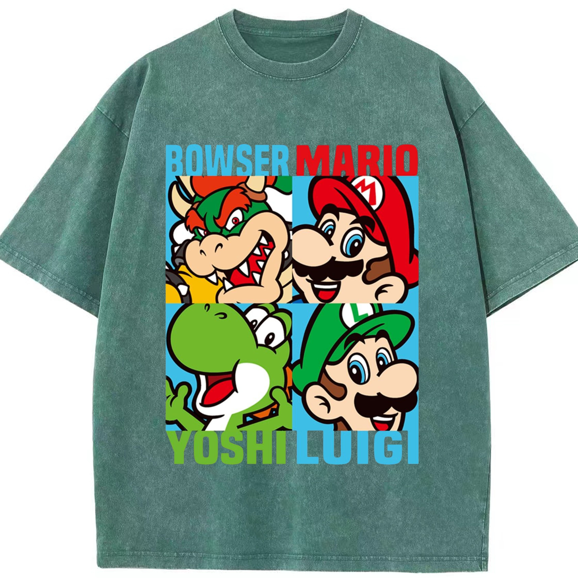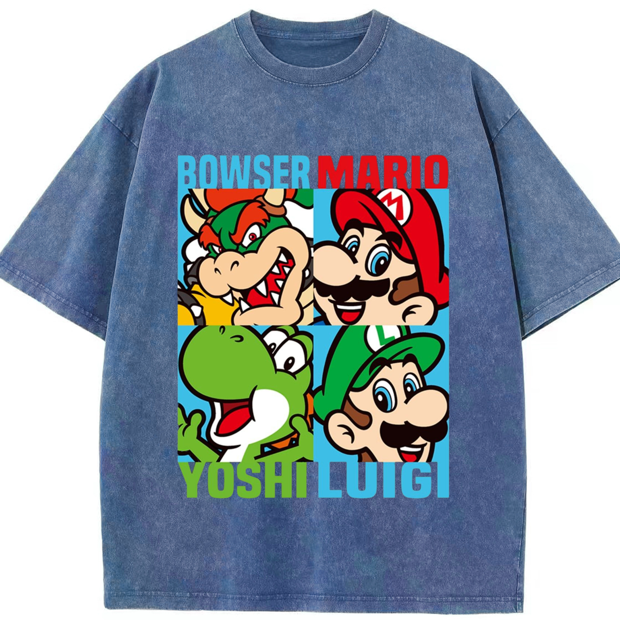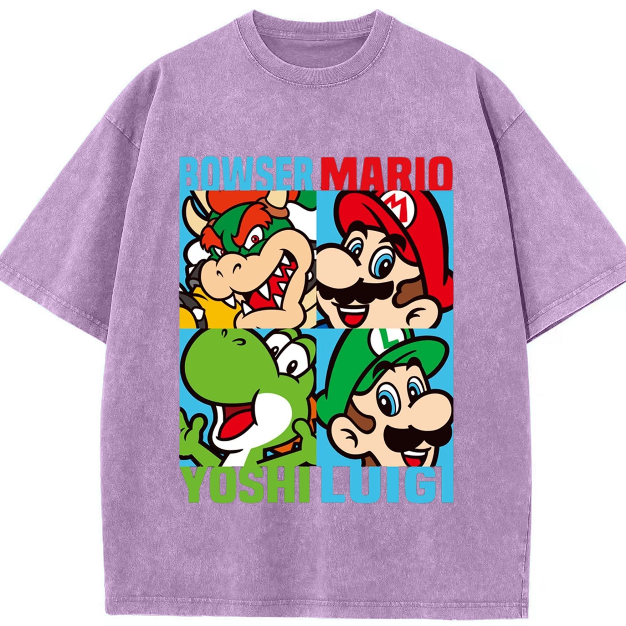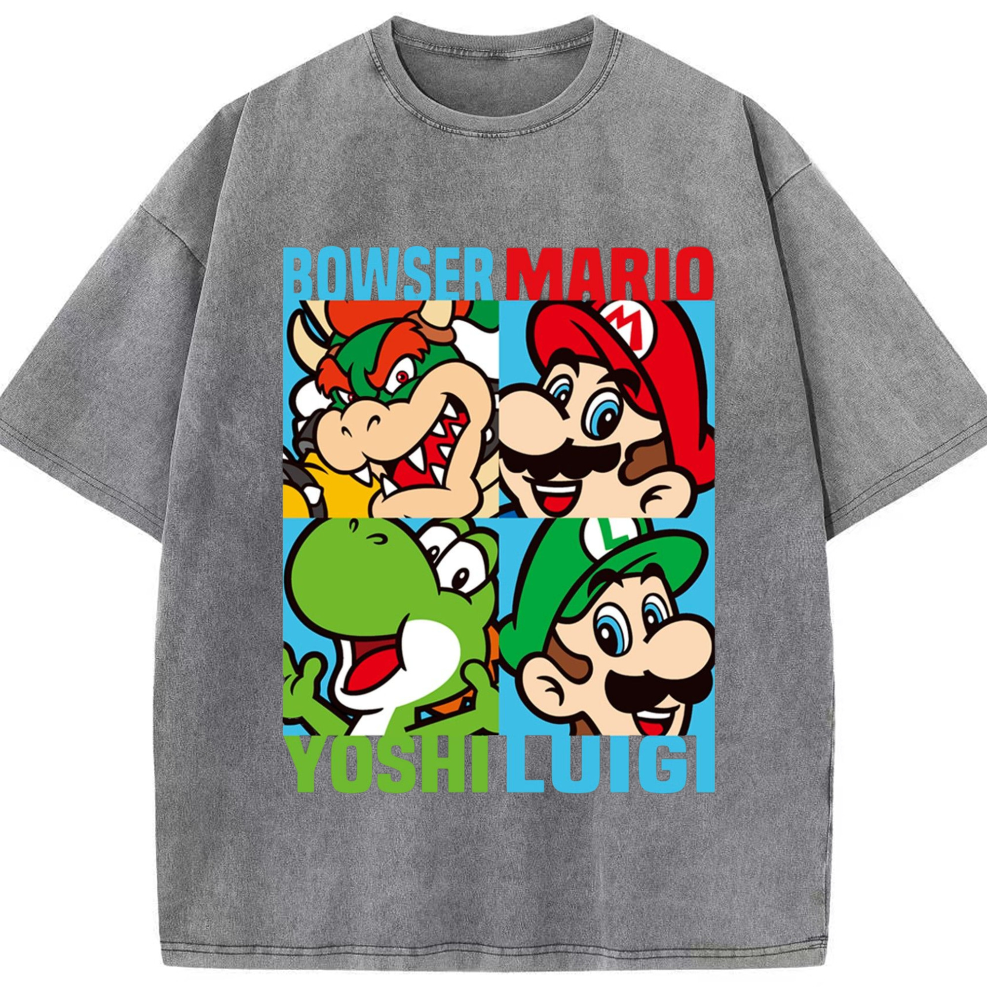 Nintendo Super Mario and firend's Shirts - Washed Vintage Look 230g Cotton Oversized T-Shirt With Front Heat Transfer Print – Soft, Lightweight, Stylish Fit – Comfortable Casual Wear For Sports & Everyday Use