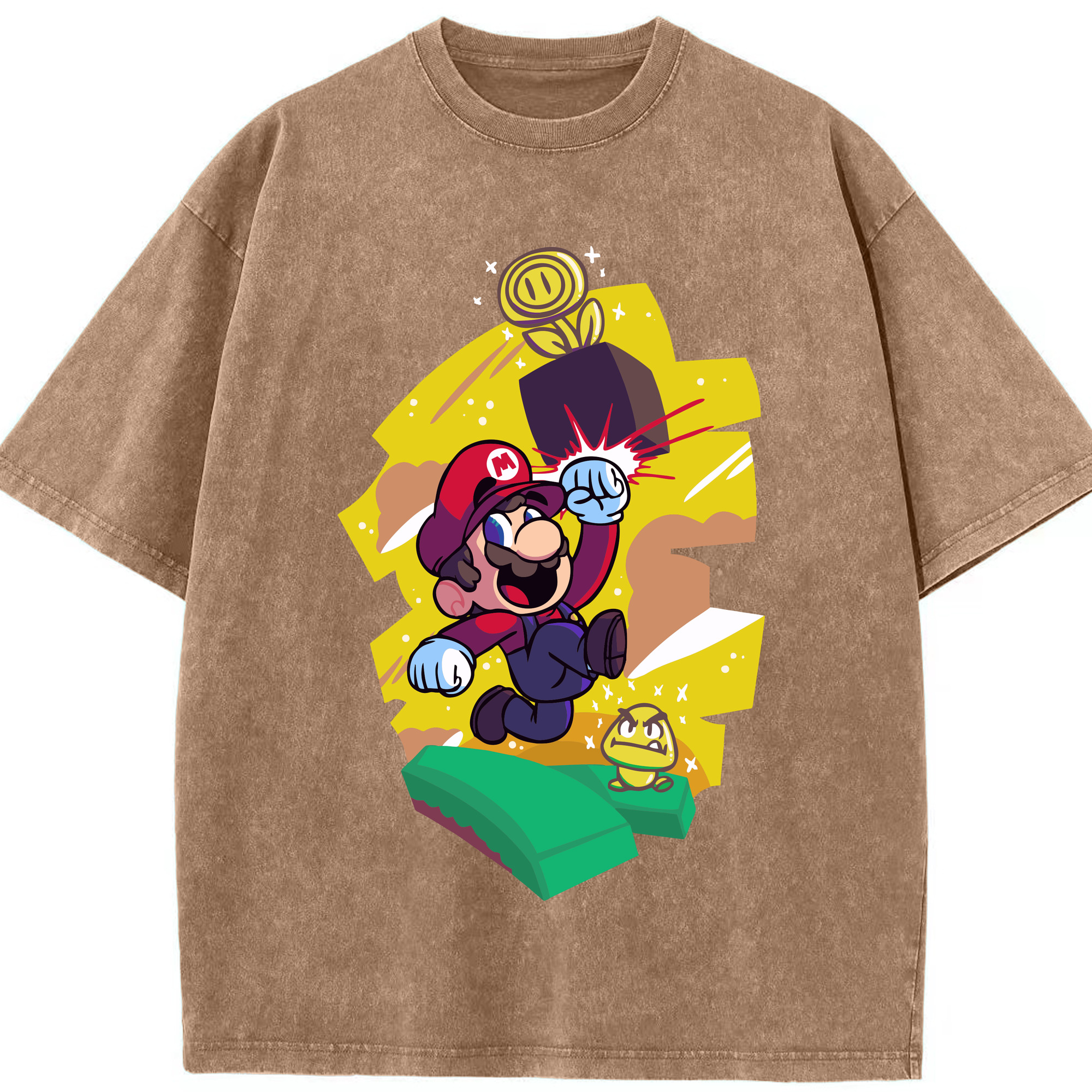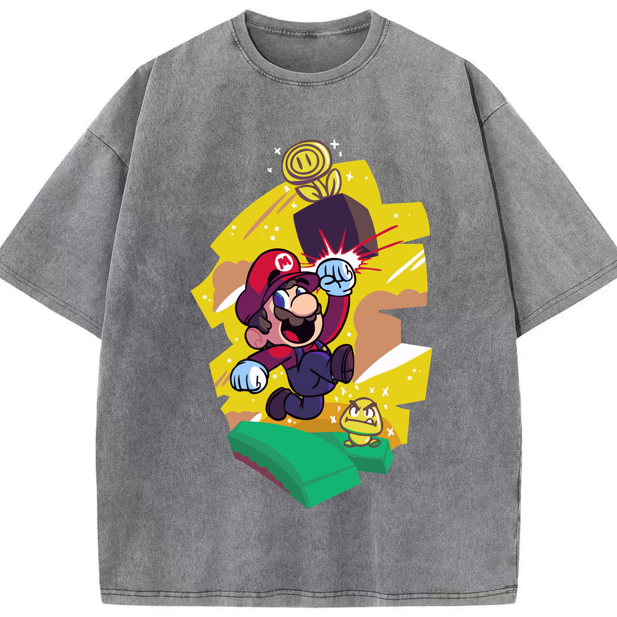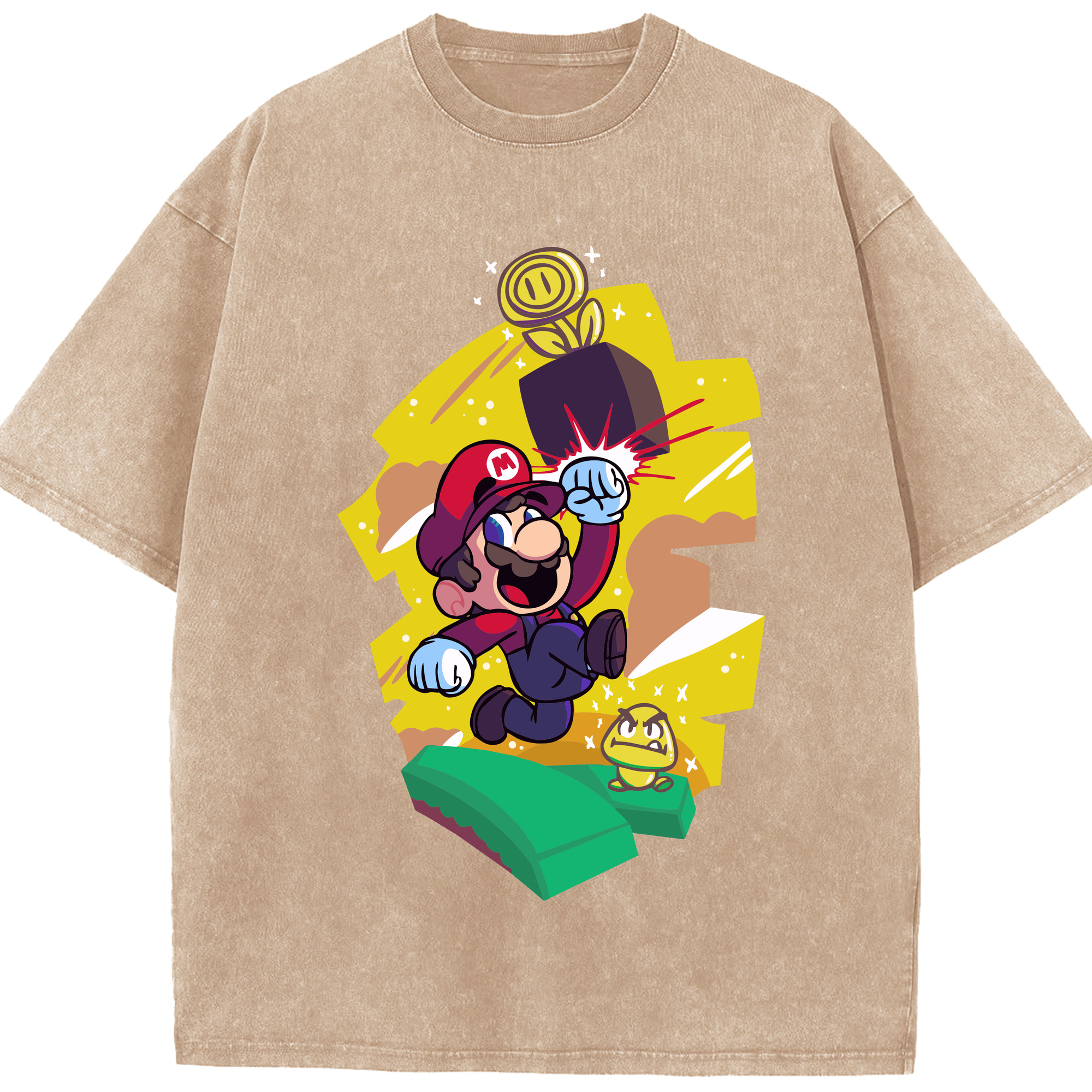 Nintendo Super Mario Blessing of the trophy t-shirt - Washed Vintage Look 230g Cotton Oversized T-Shirt With Front Heat Transfer Print – Soft, Lightweight, Stylish Fit – Comfortable Casual Wear For Sports & Everyday Use