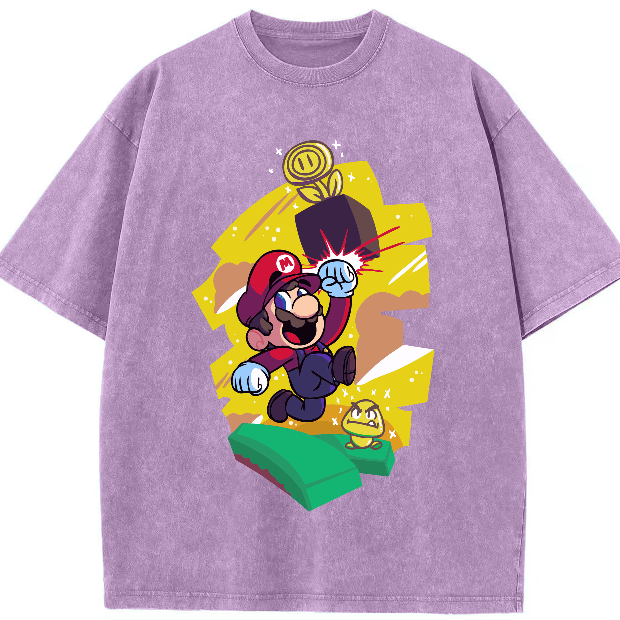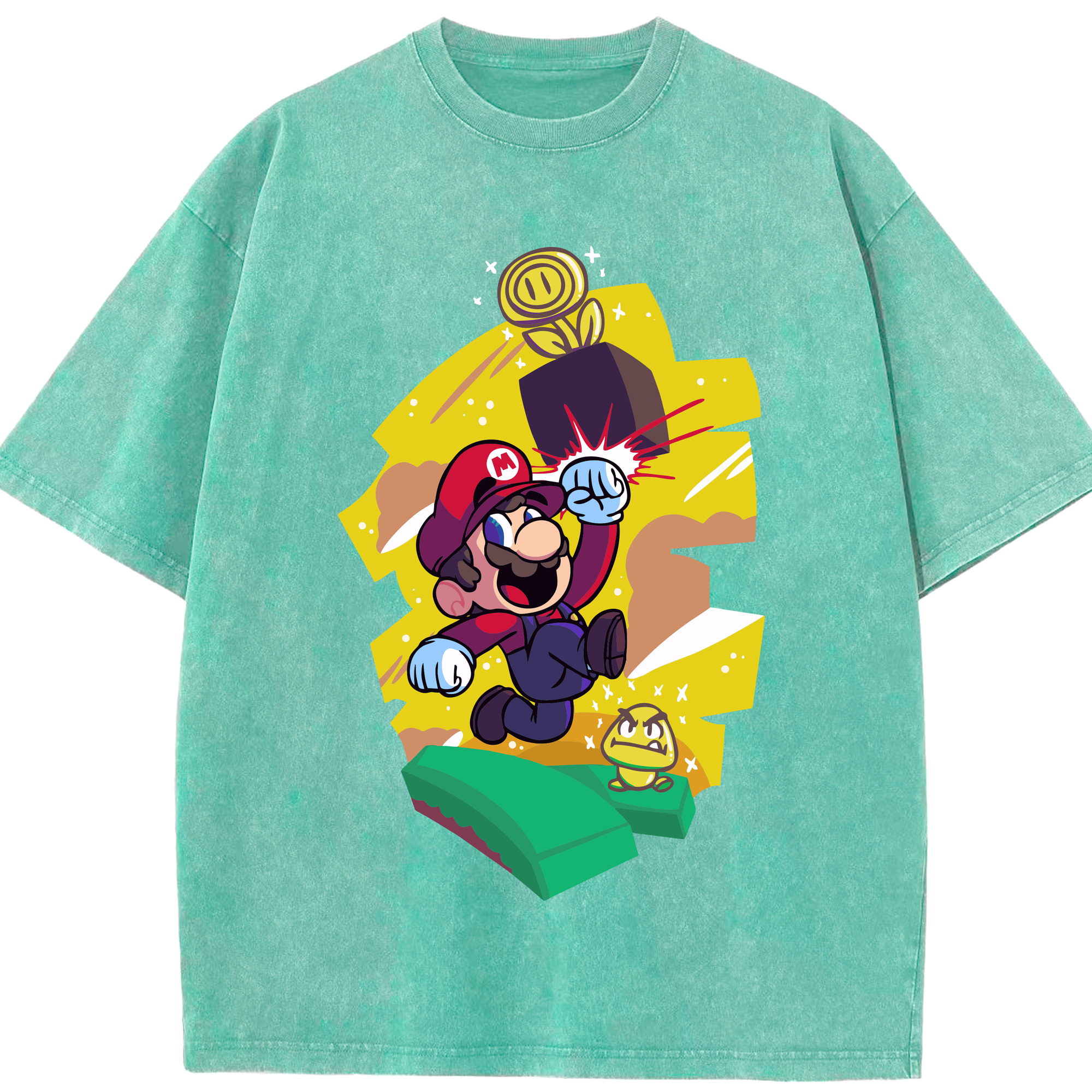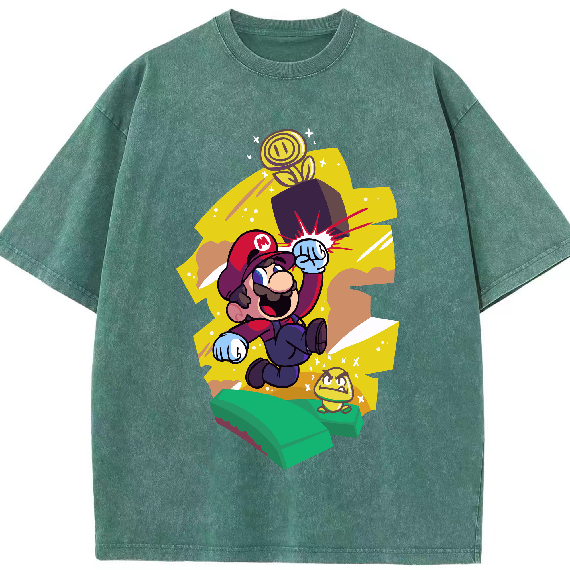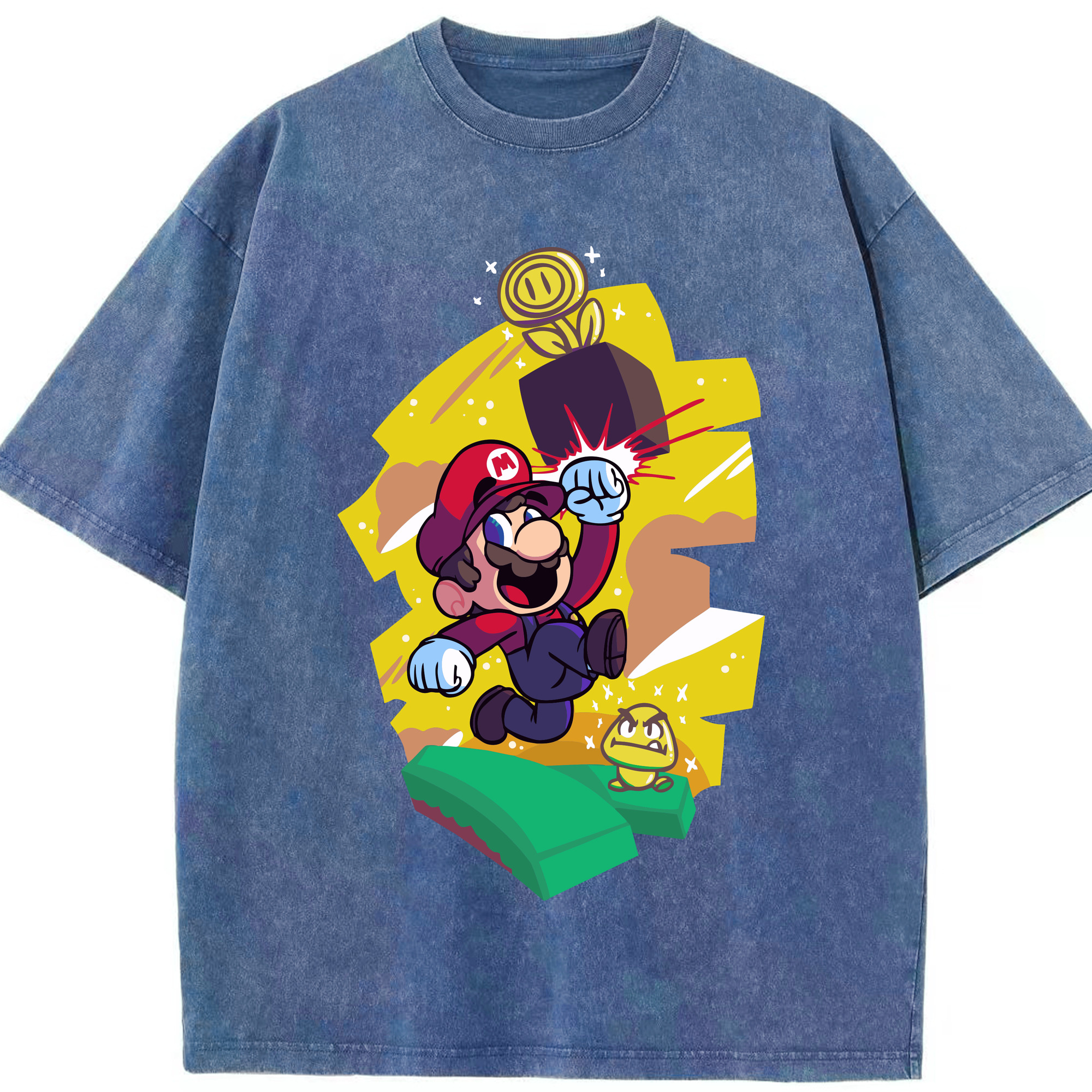 Nintendo Super Mario Blessing of the trophy t-shirt - Washed Vintage Look 230g Cotton Oversized T-Shirt With Front Heat Transfer Print – Soft, Lightweight, Stylish Fit – Comfortable Casual Wear For Sports & Everyday Use