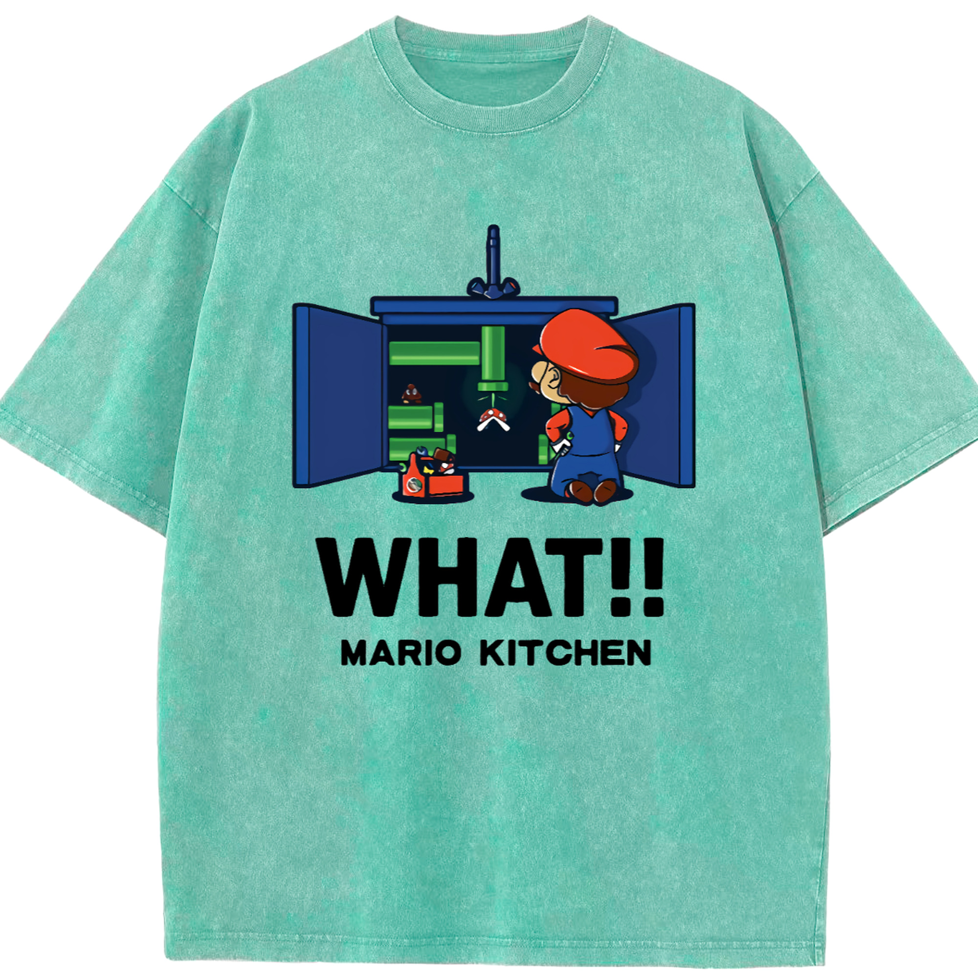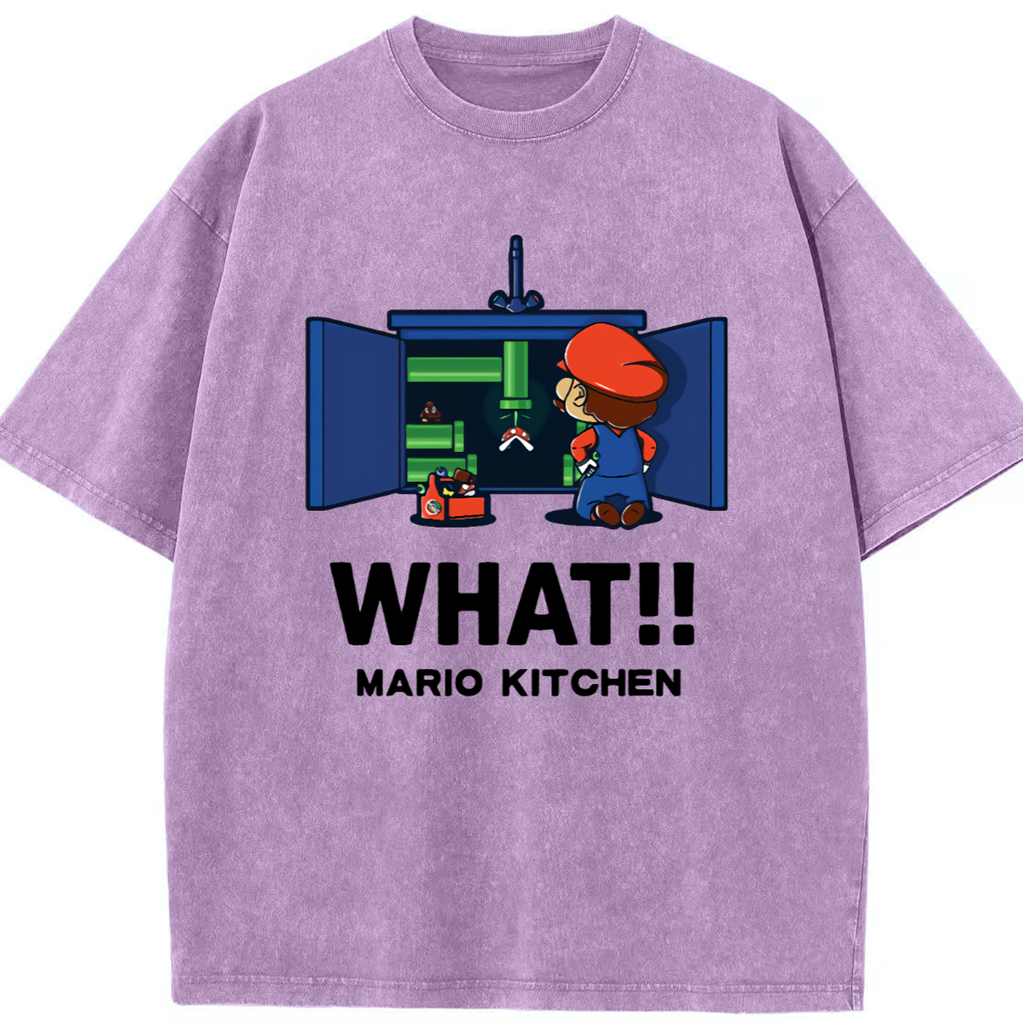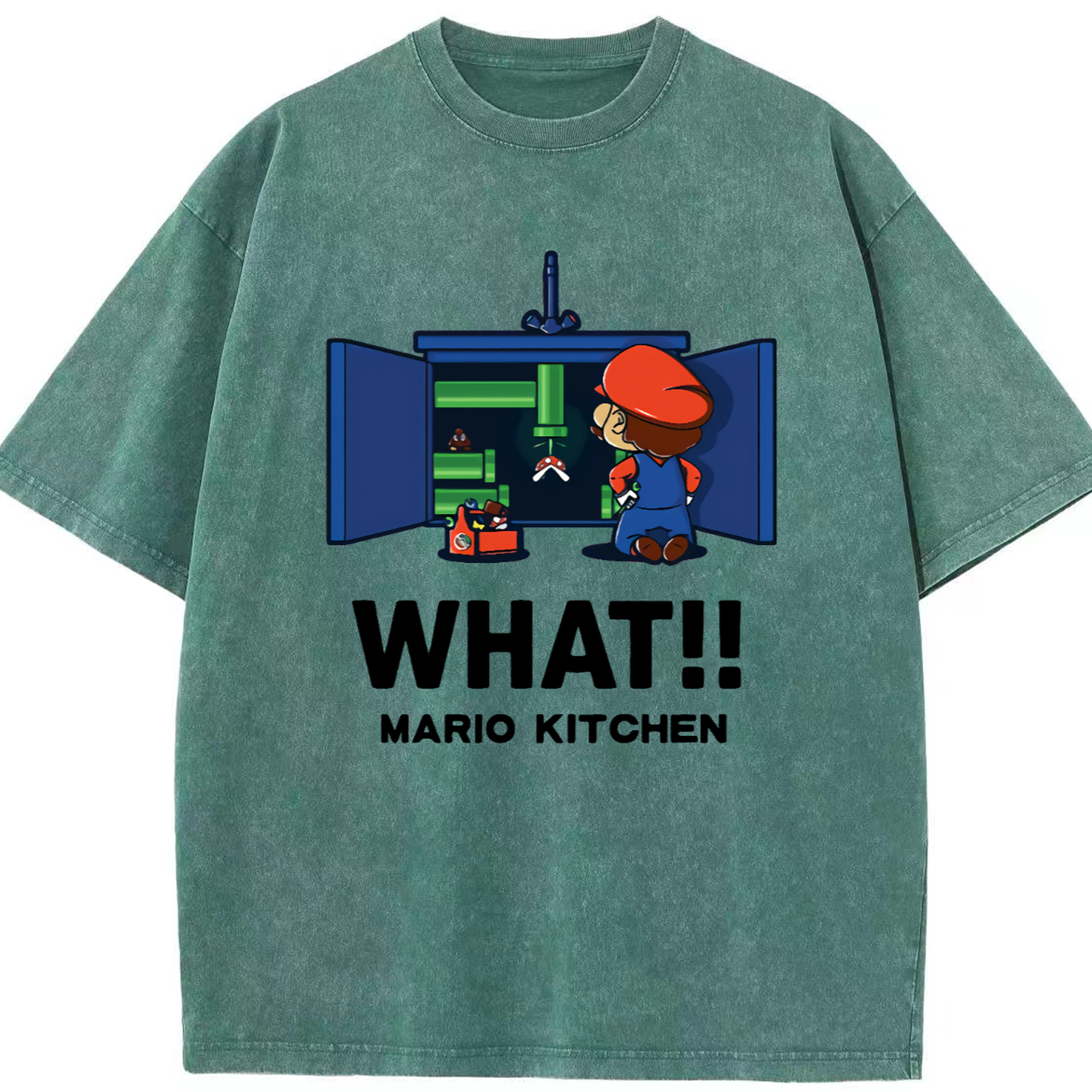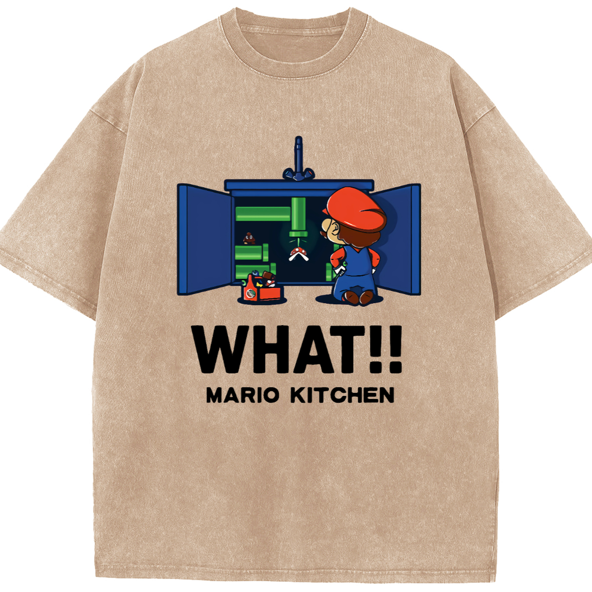 Nintendo Super Mario kitchen 'what' t-shirt - Washed Vintage Look 230g Cotton Oversized T-Shirt With Front Heat Transfer Print – Soft, Lightweight, Stylish Fit – Comfortable Casual Wear For Sports & Everyday Use