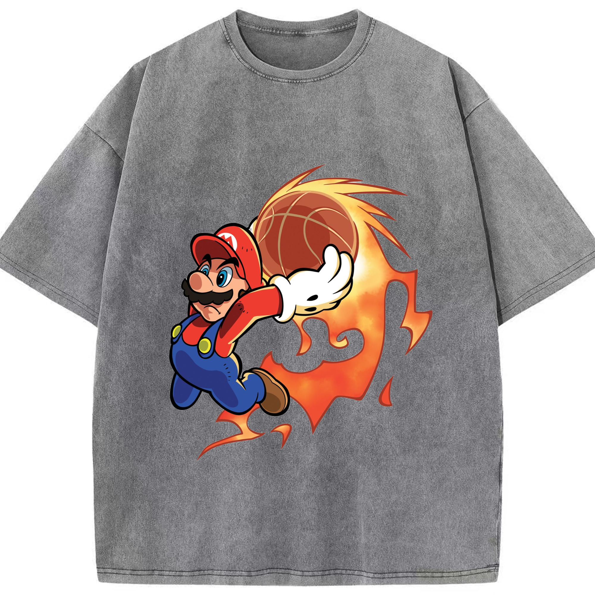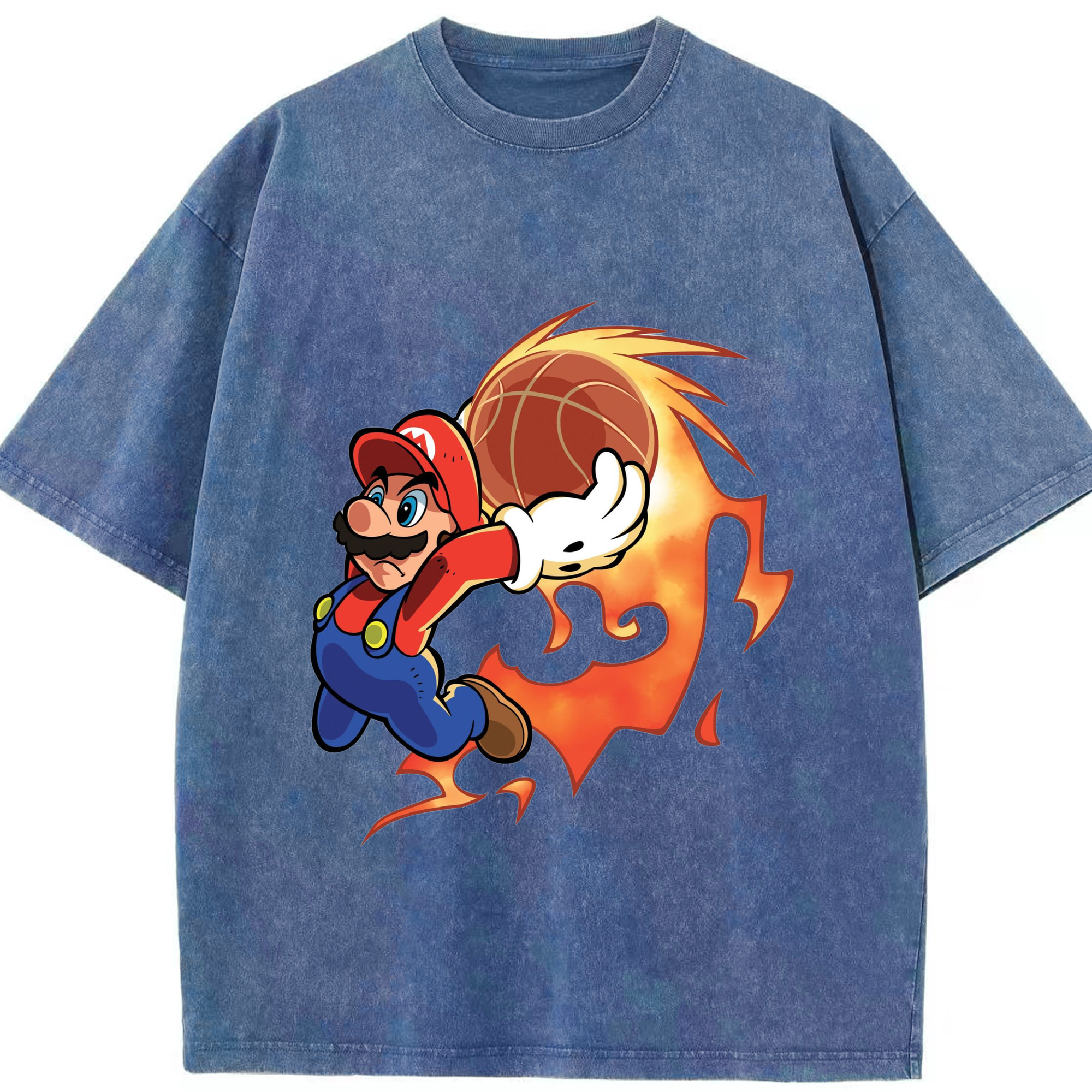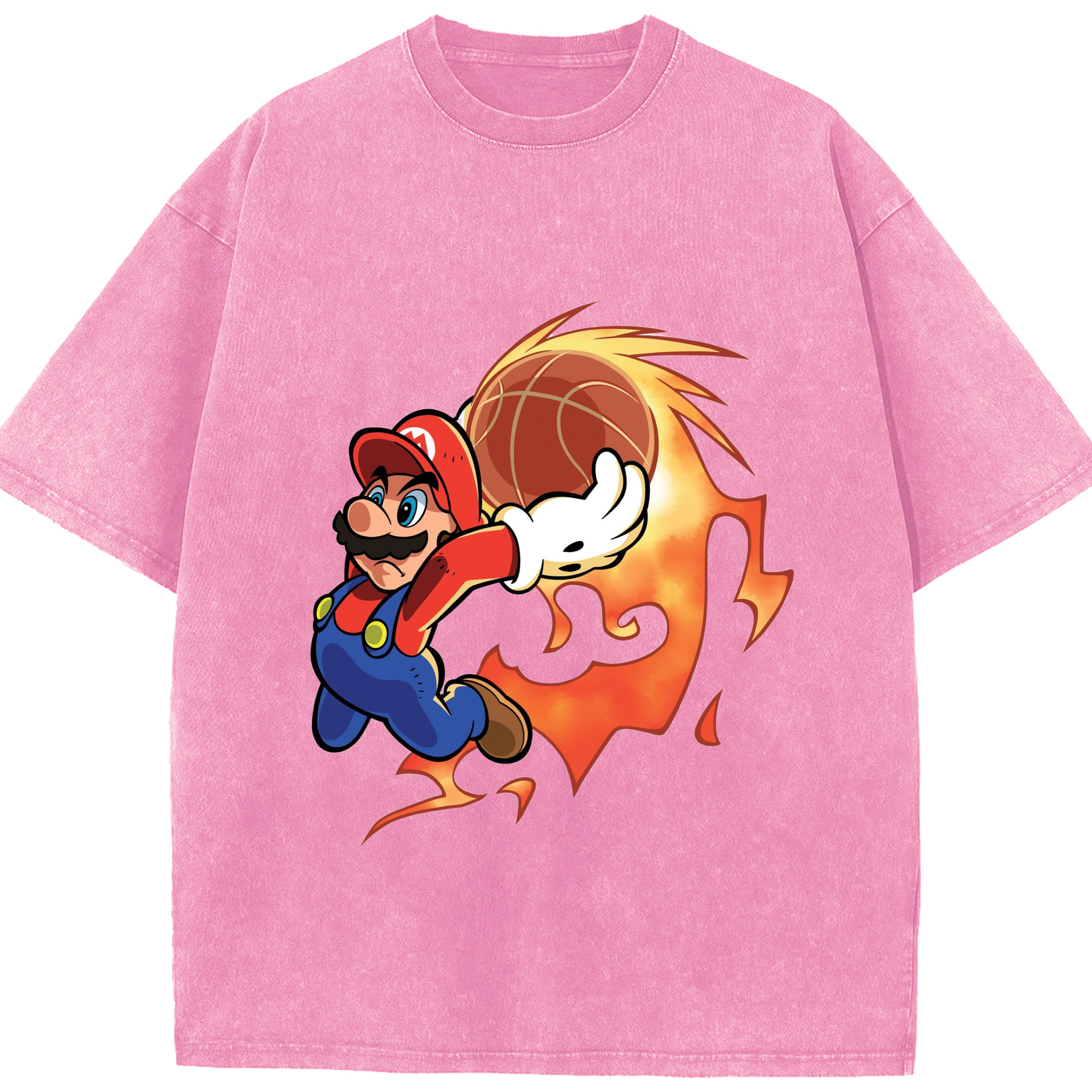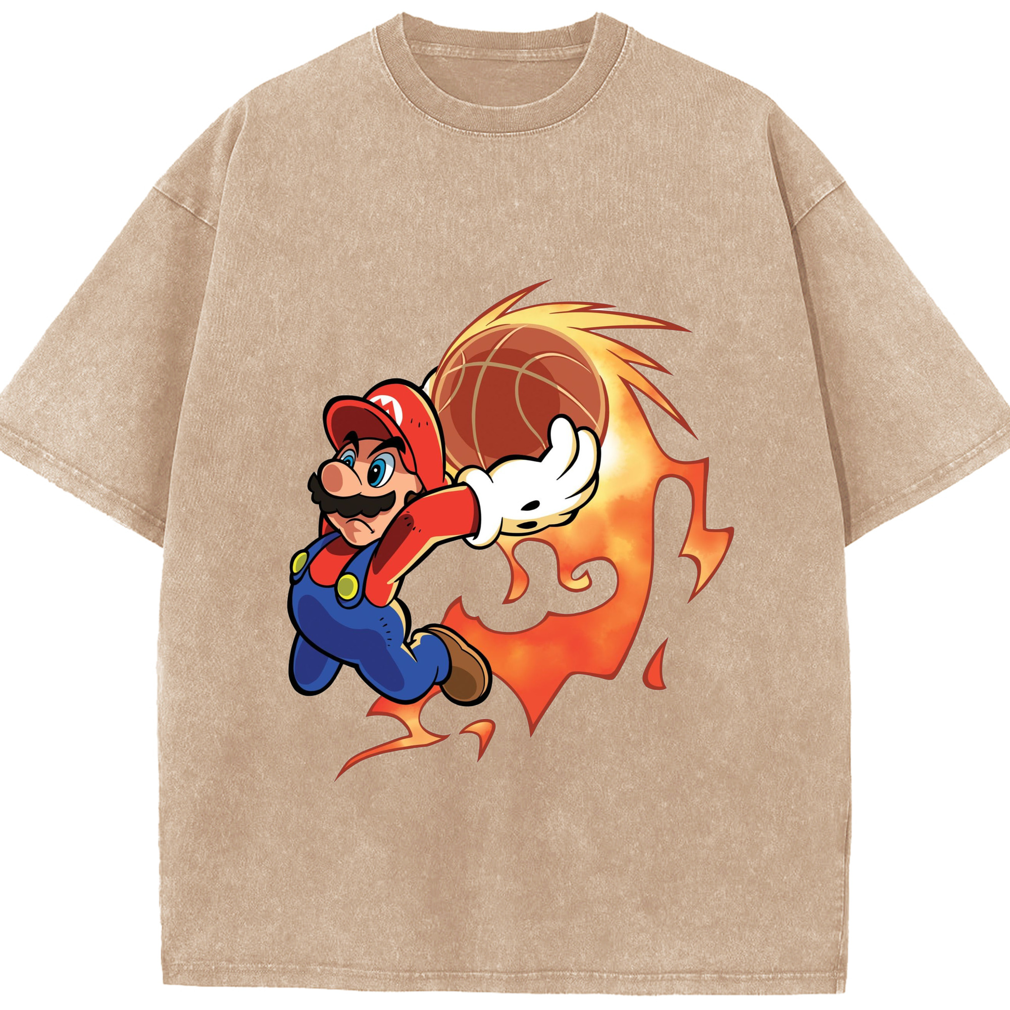 Nintendo Super Slam Dunk t-shirt - Washed Vintage Look 230g Cotton Oversized T-Shirt With Front Heat Transfer Print – Soft, Lightweight, Stylish Fit – Comfortable Casual Wear For Sports & Everyday Use