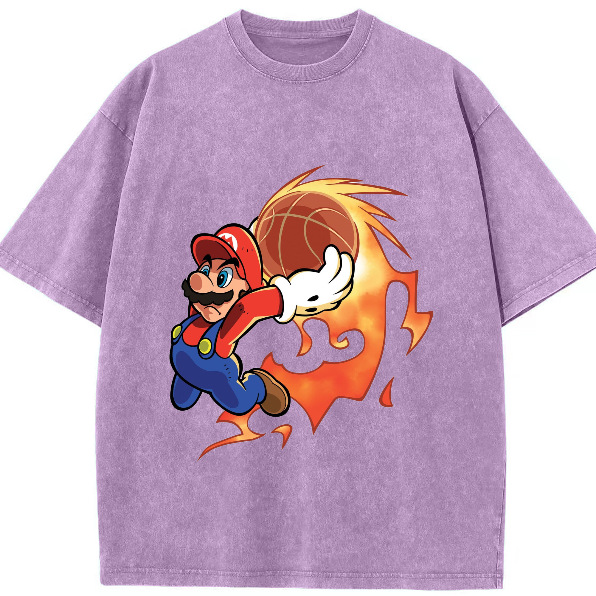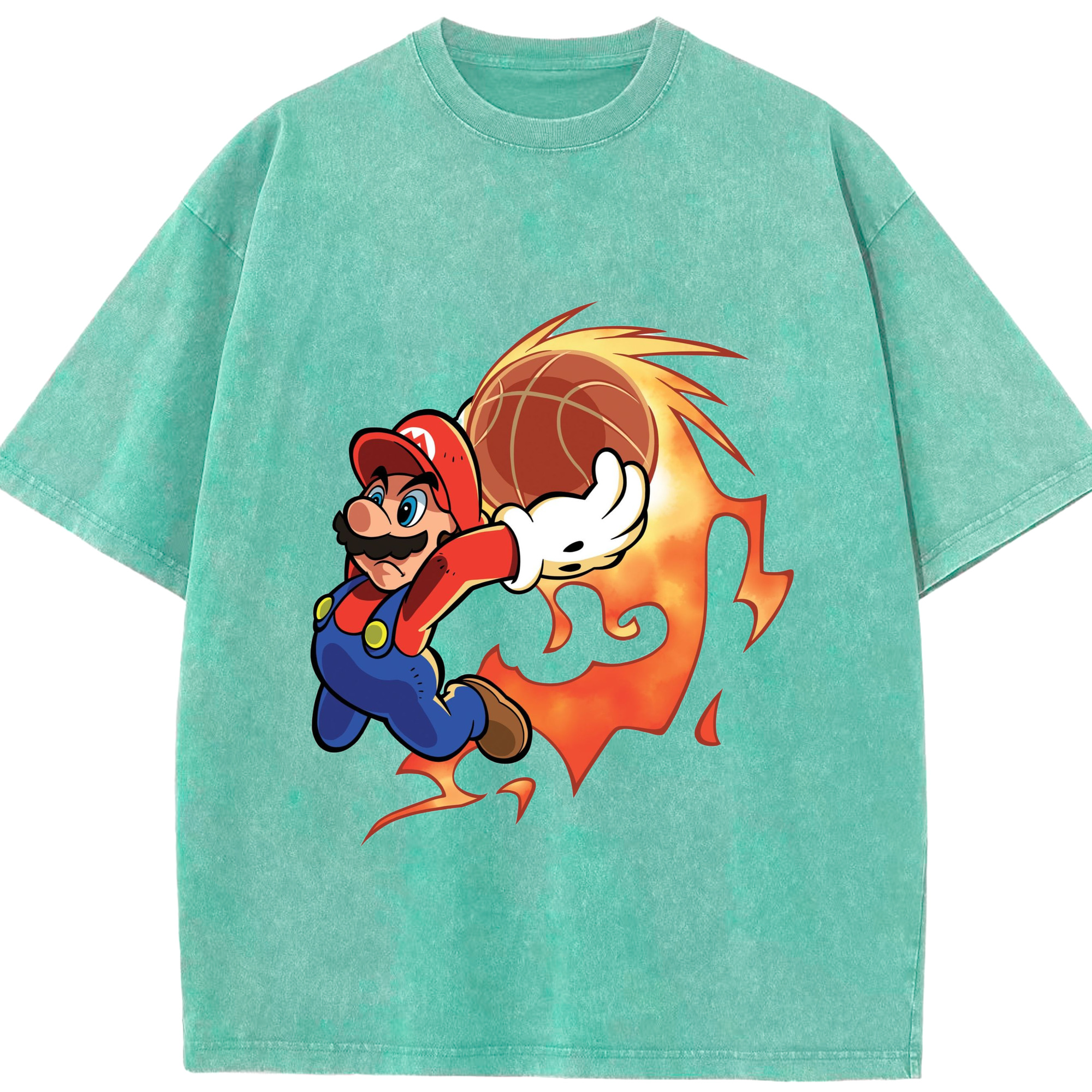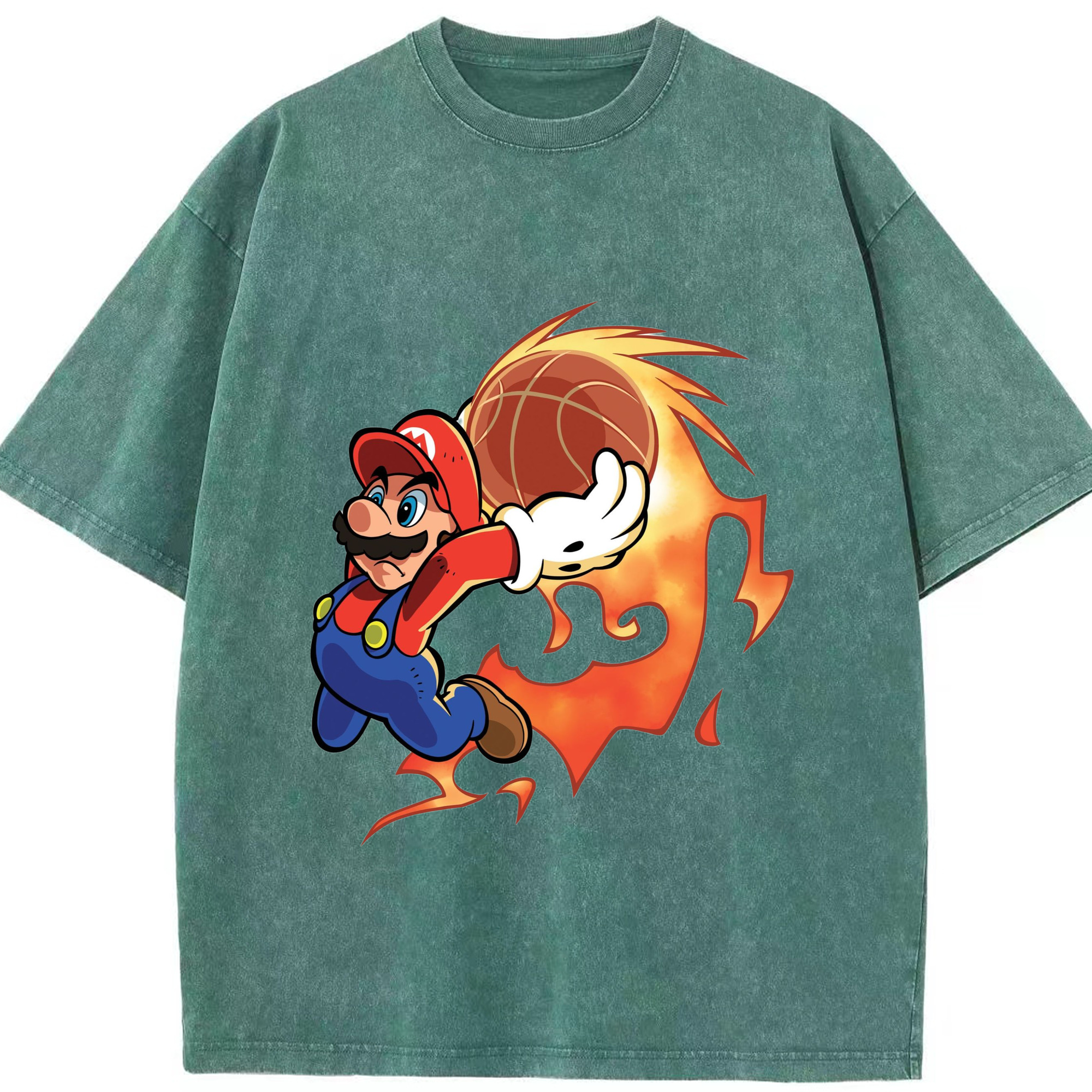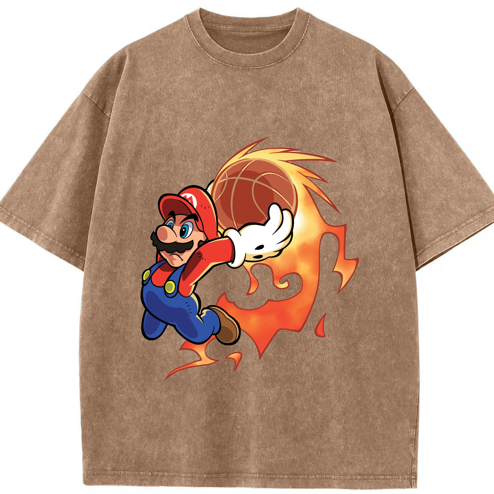 Nintendo Super Slam Dunk t-shirt - Washed Vintage Look 230g Cotton Oversized T-Shirt With Front Heat Transfer Print – Soft, Lightweight, Stylish Fit – Comfortable Casual Wear For Sports & Everyday Use