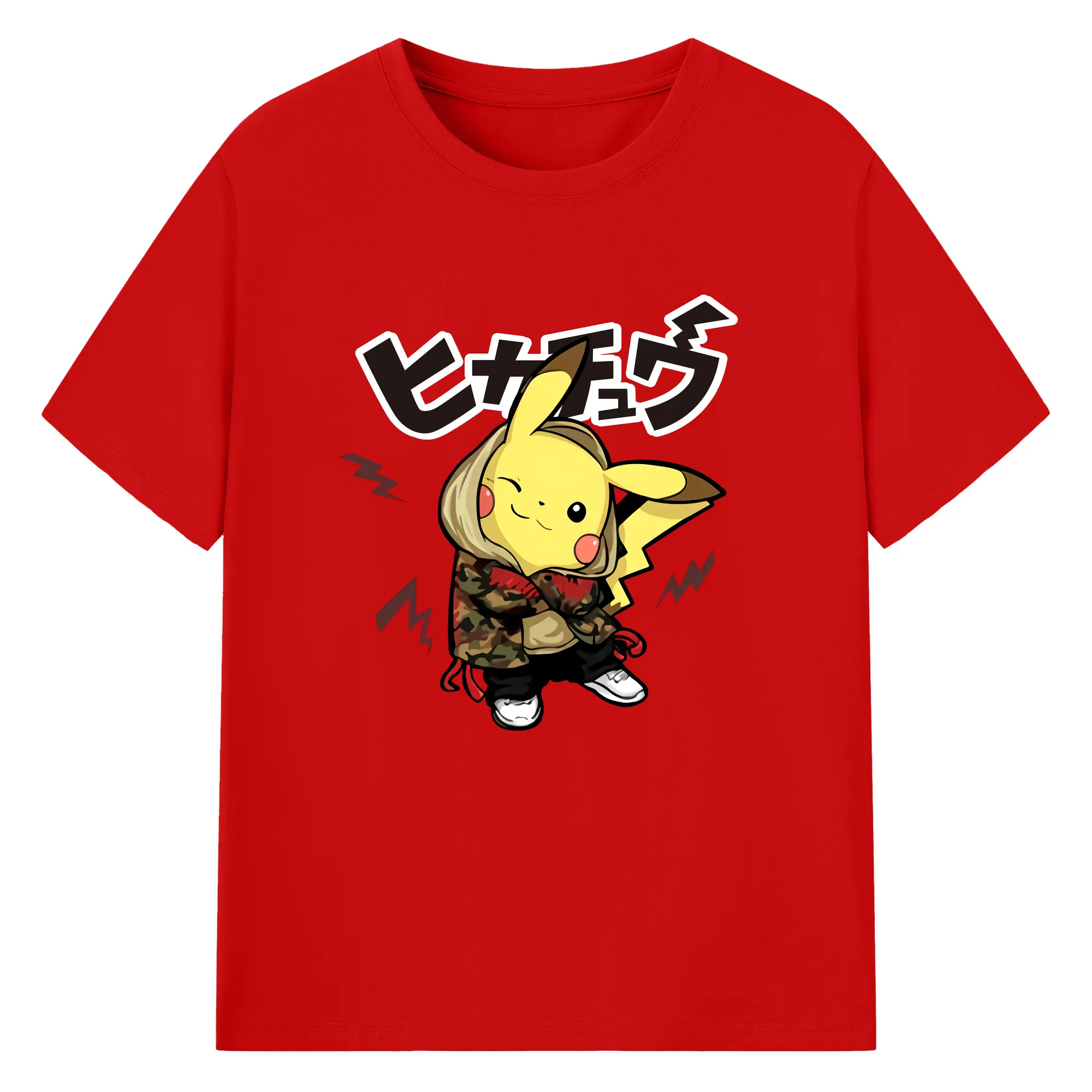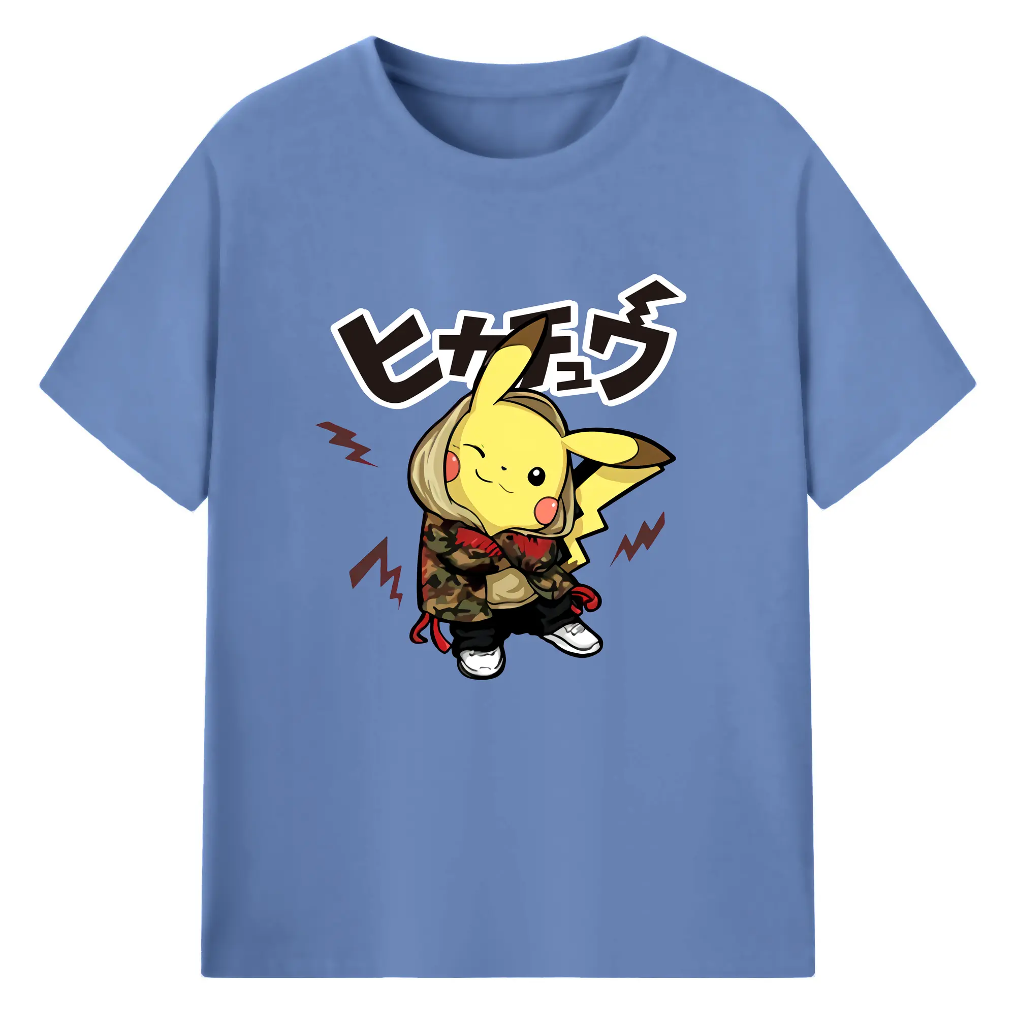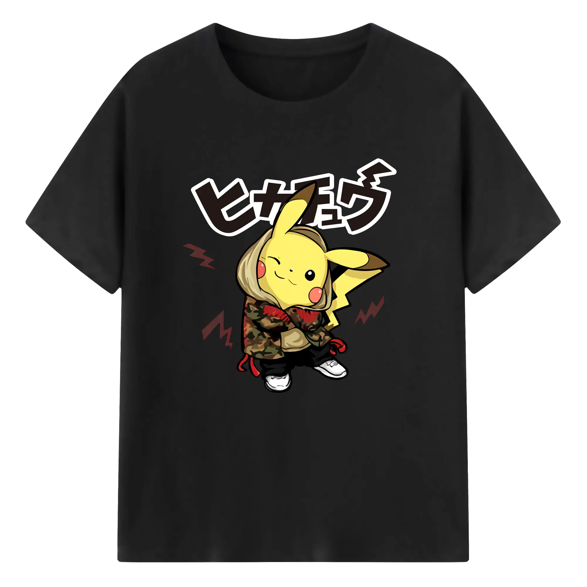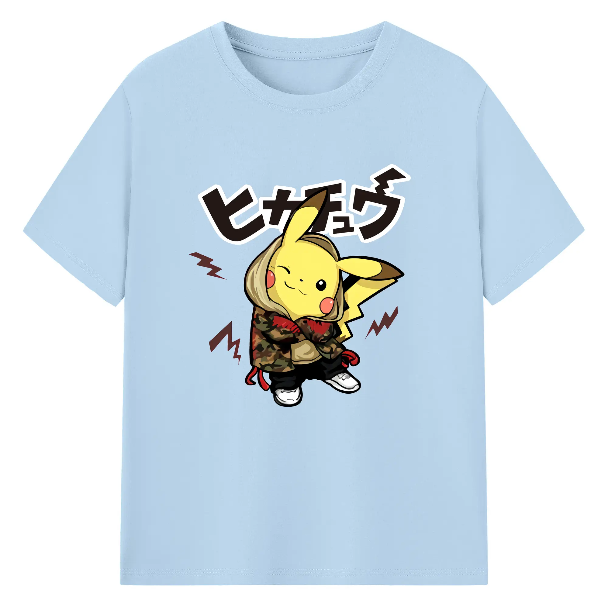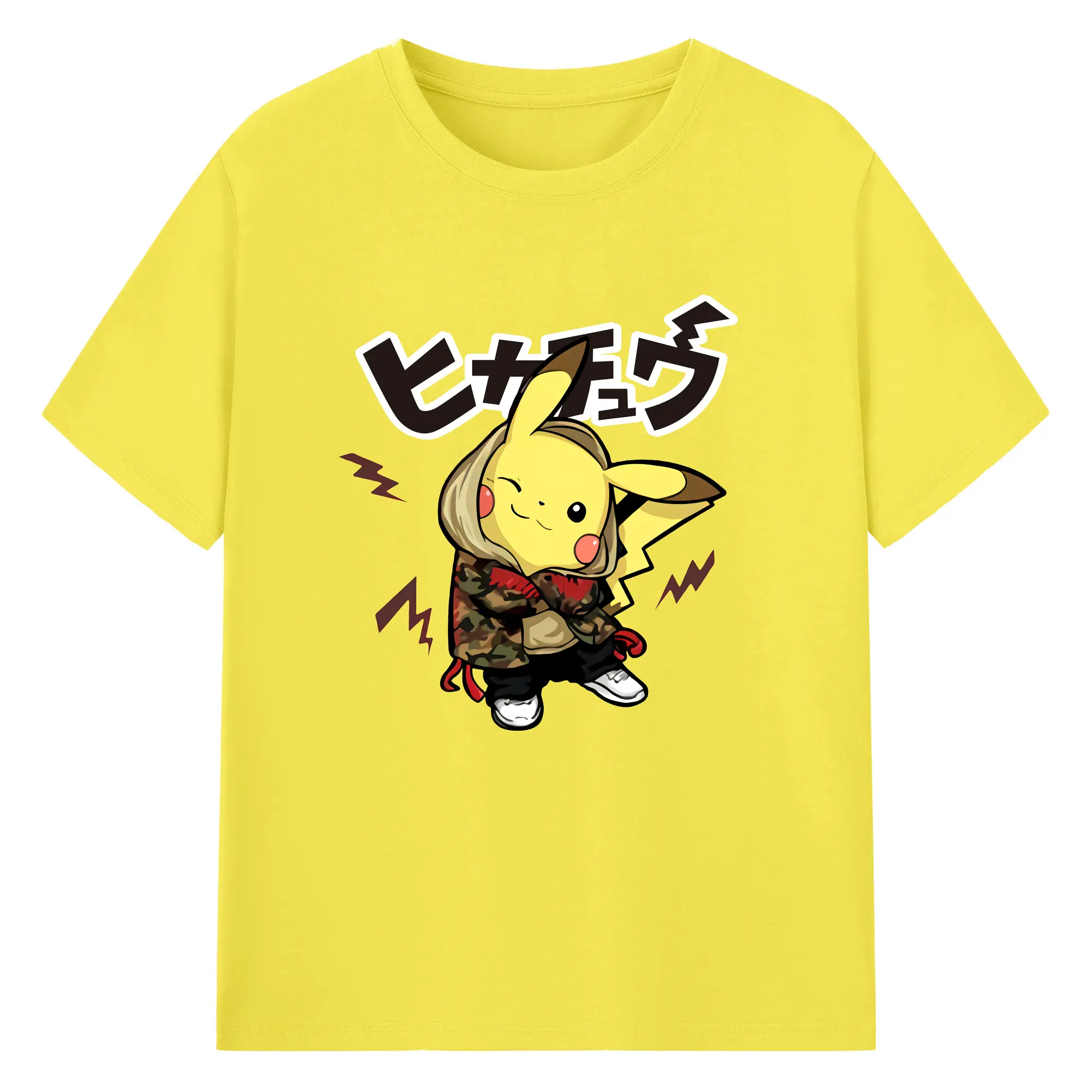 Pikachu graphic tide t shirt​ - 180g Cotton T-Shirt With Front Heat Transfer Print – Soft, Lightweight, Fitted Design – Comfortable Casual Wear For Sports & Everyday Use