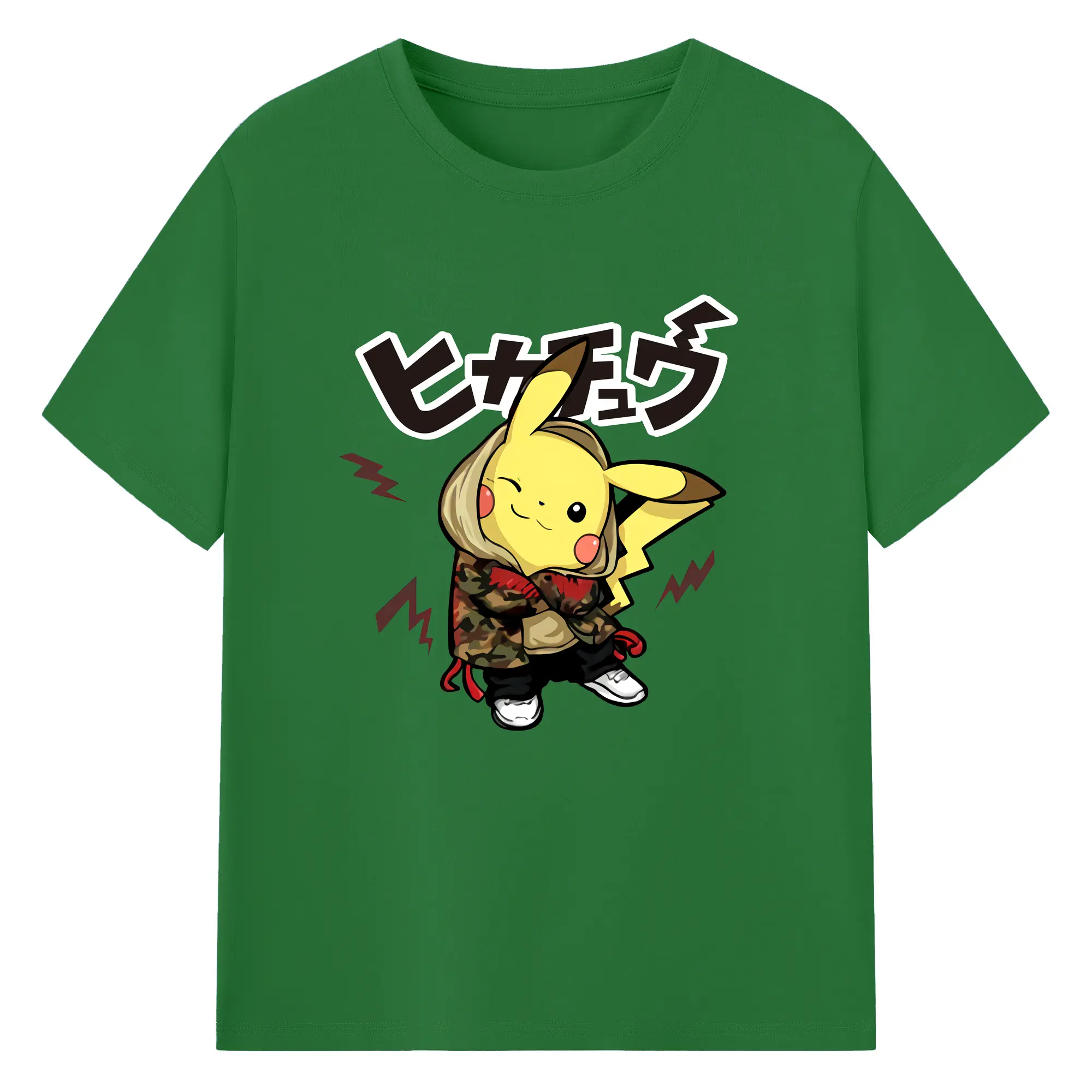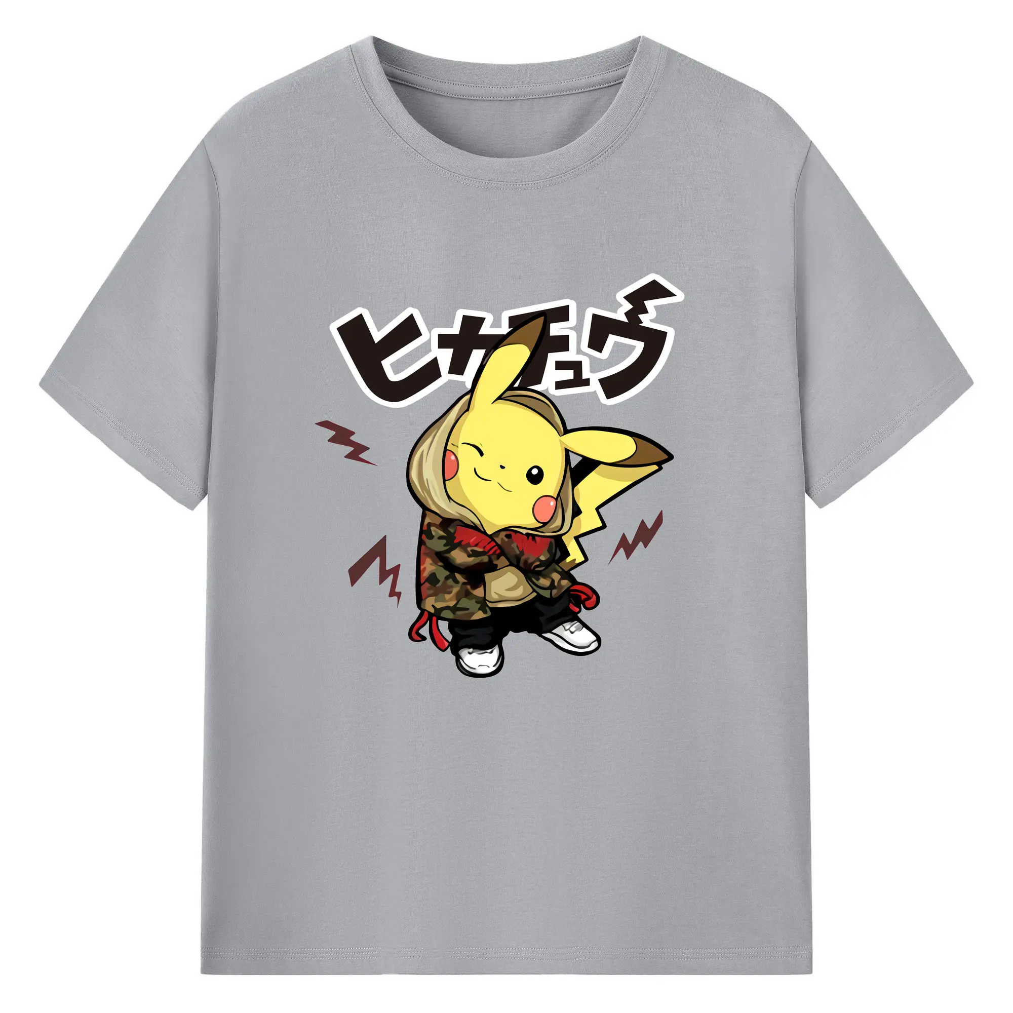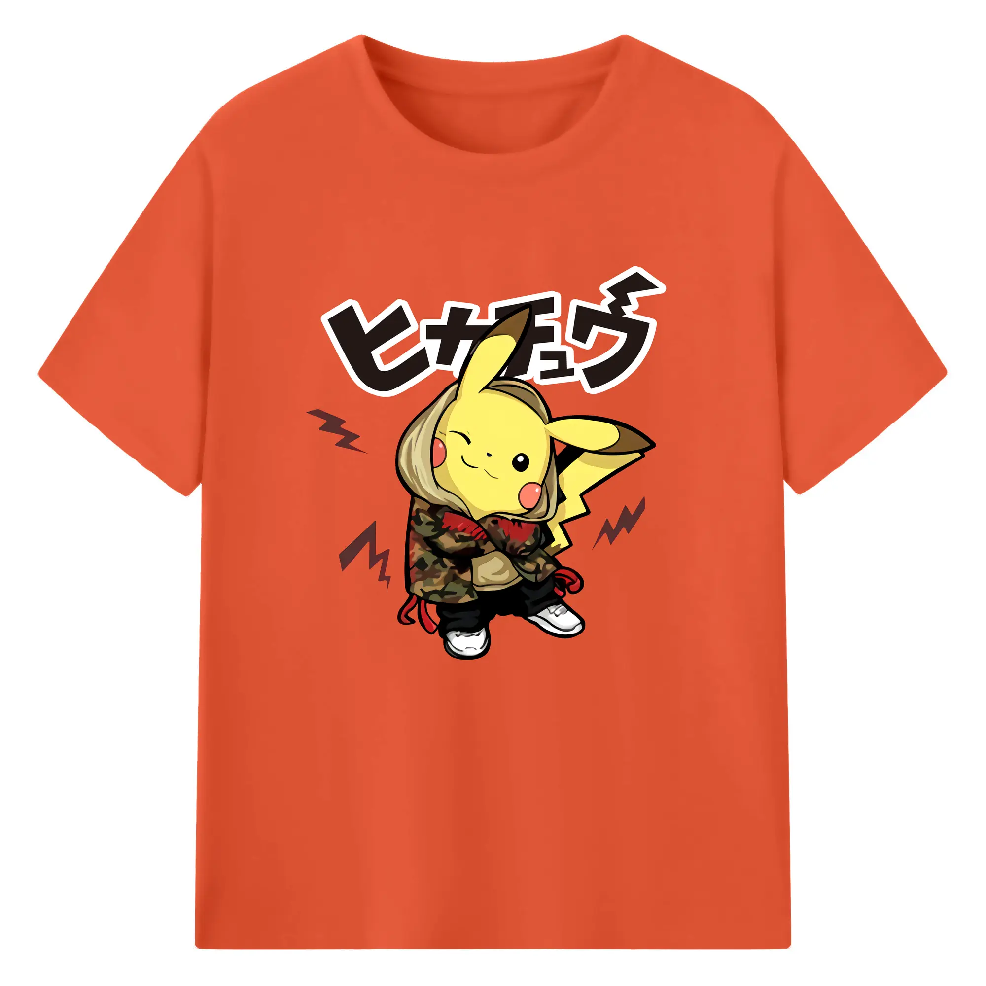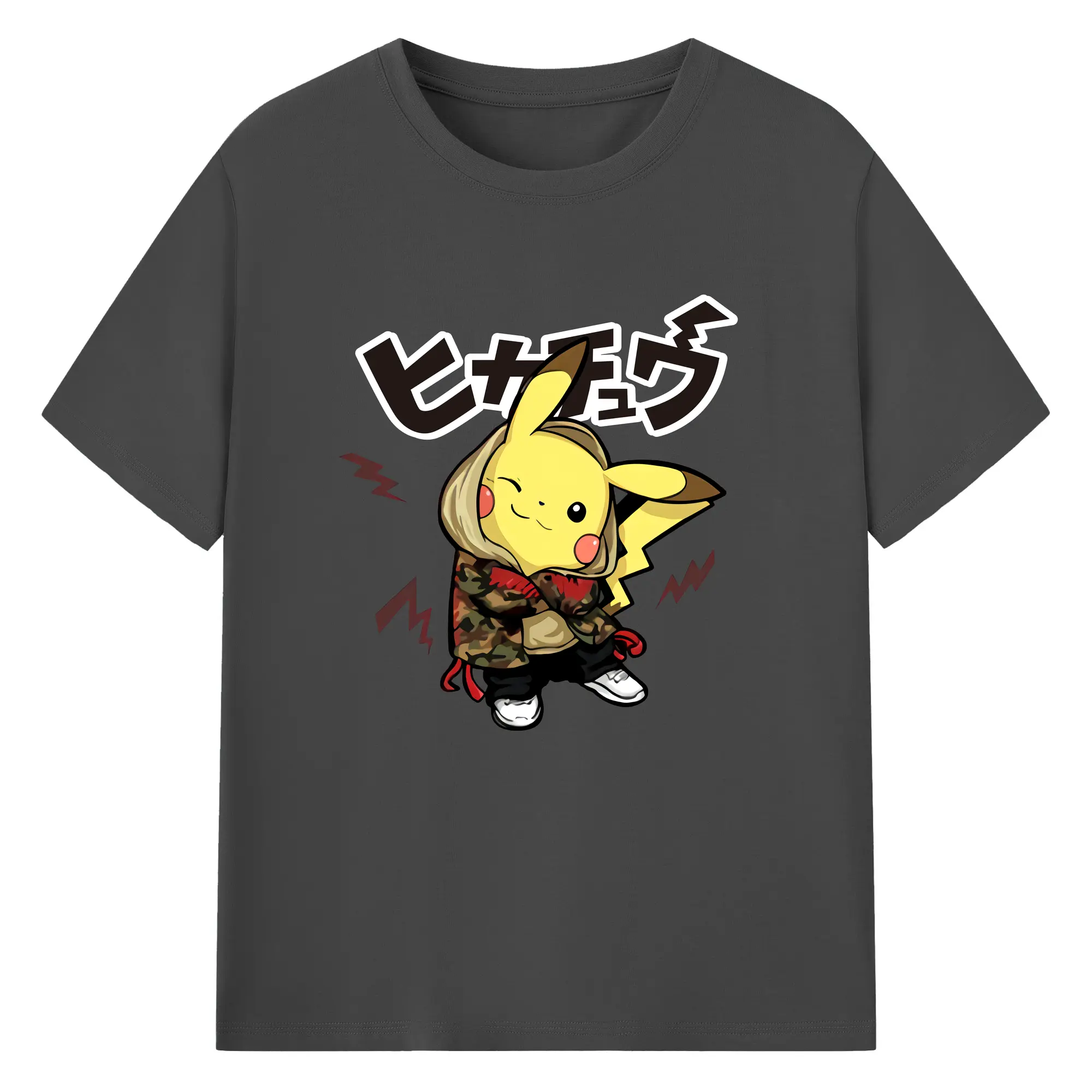 Pikachu graphic tide t shirt​ - 180g Cotton T-Shirt With Front Heat Transfer Print – Soft, Lightweight, Fitted Design – Comfortable Casual Wear For Sports & Everyday Use