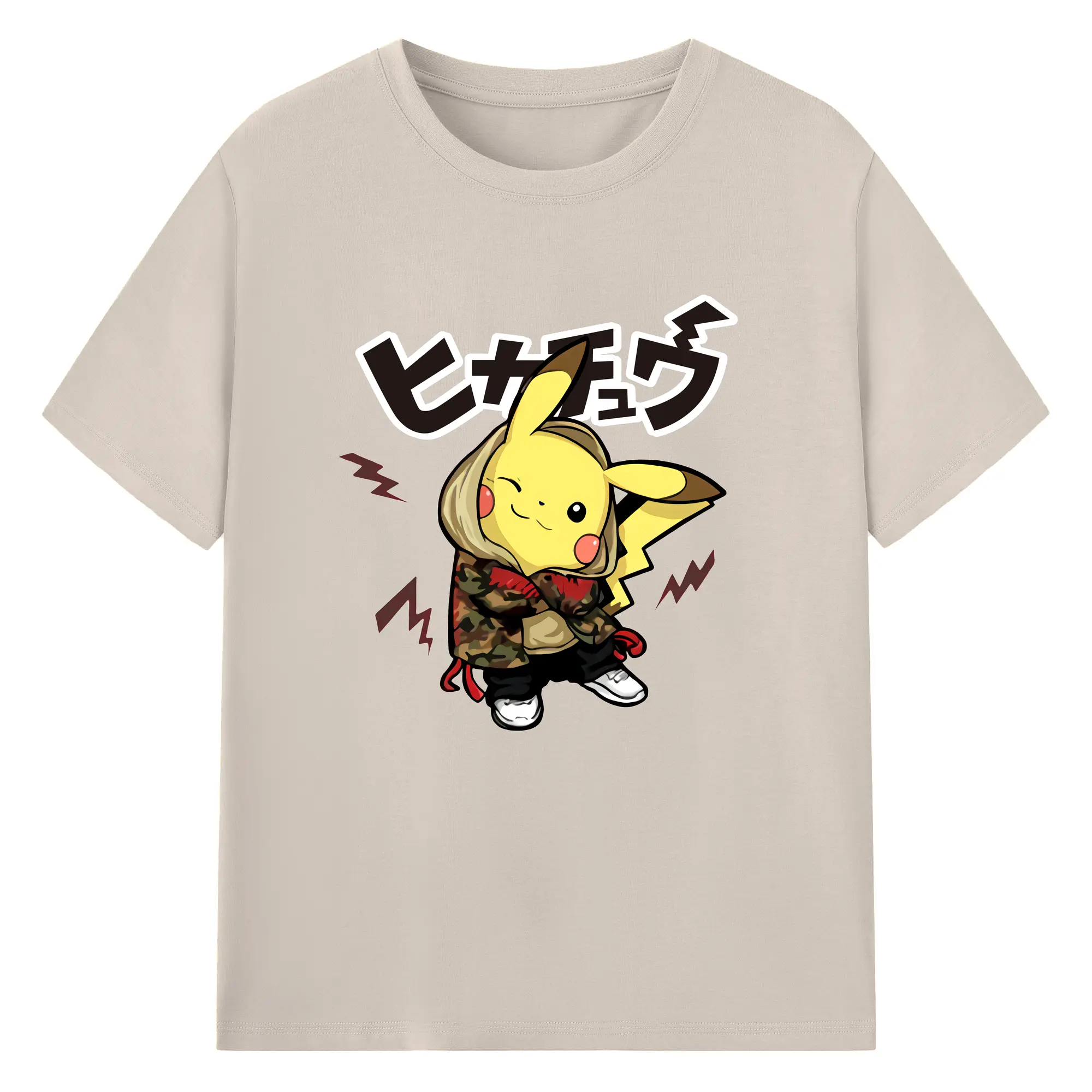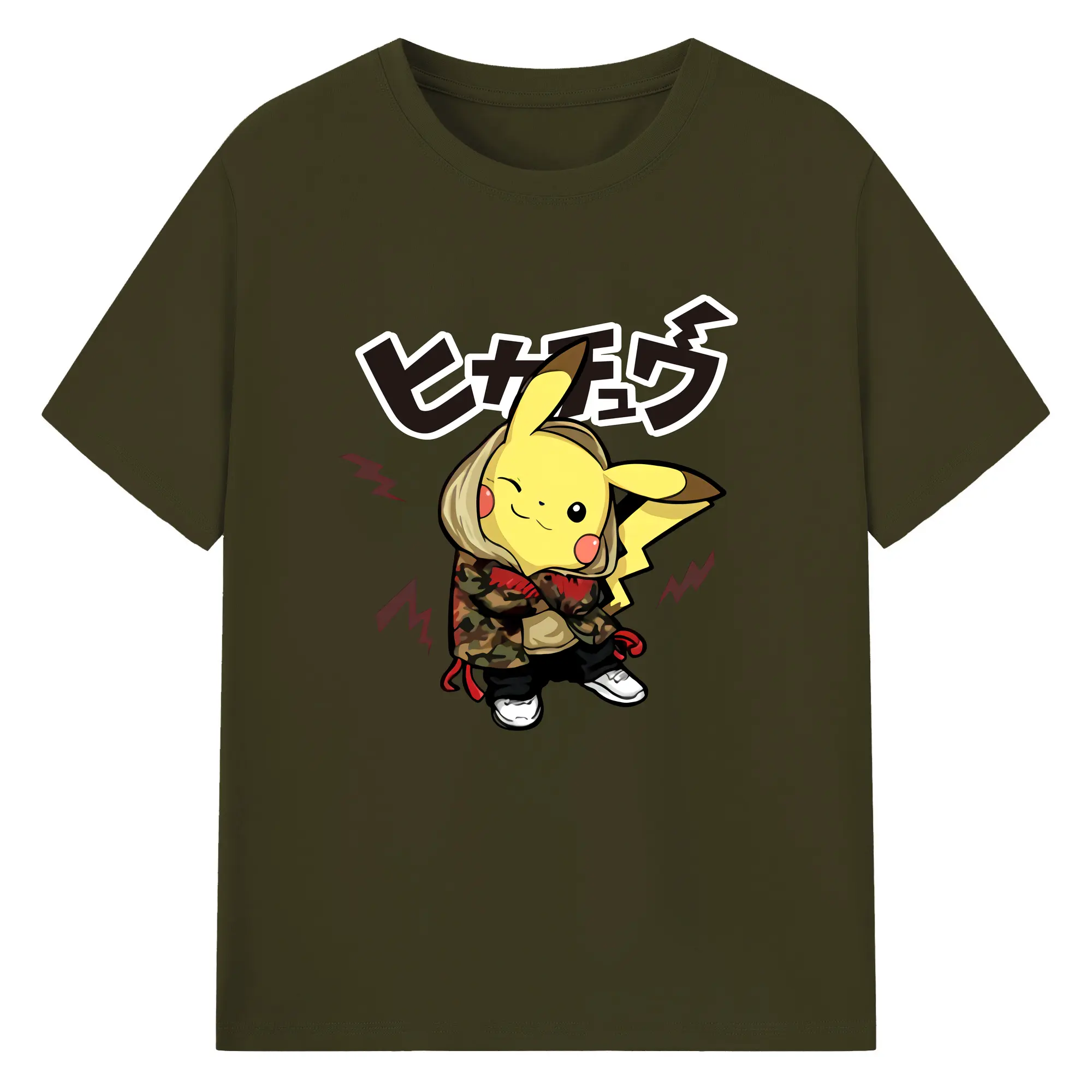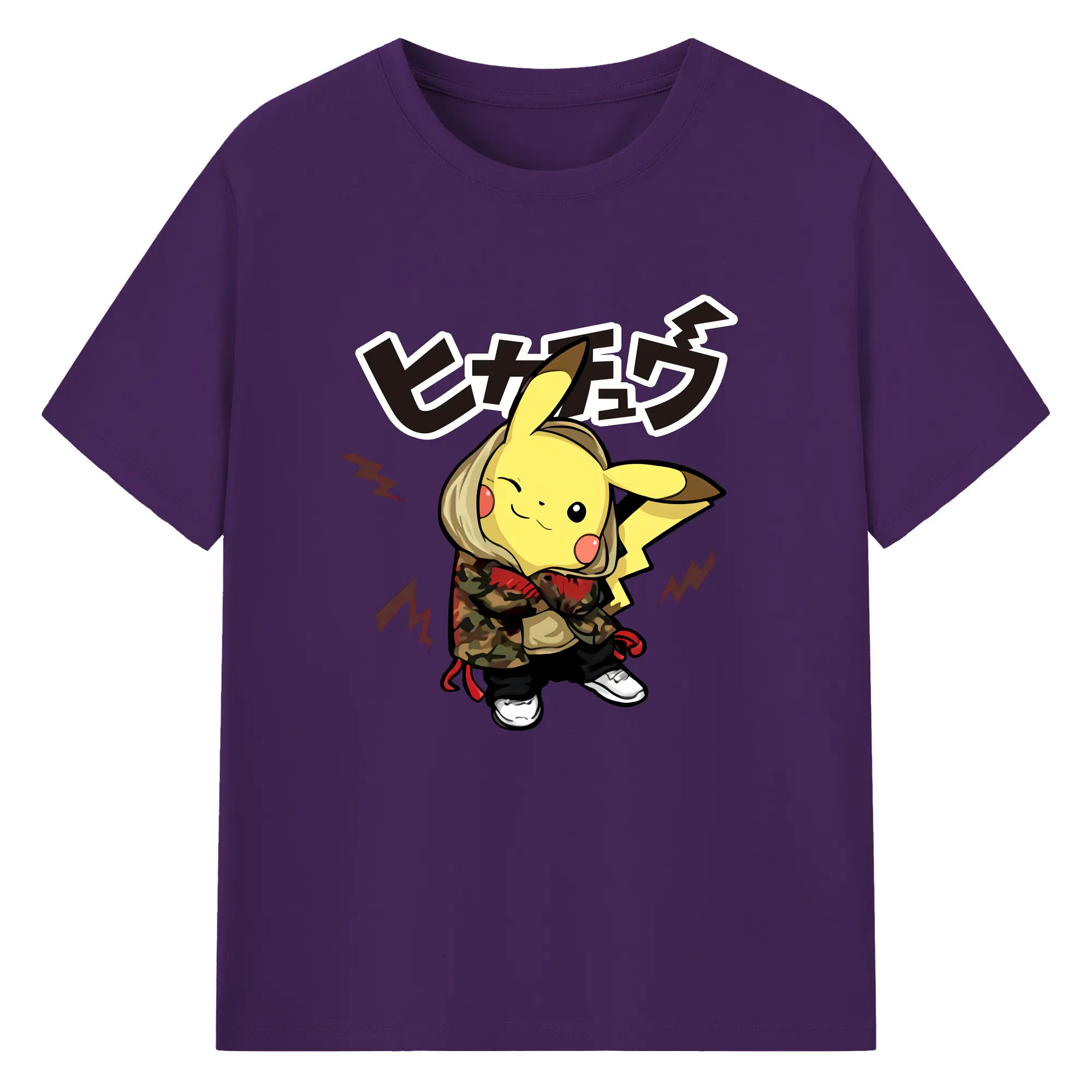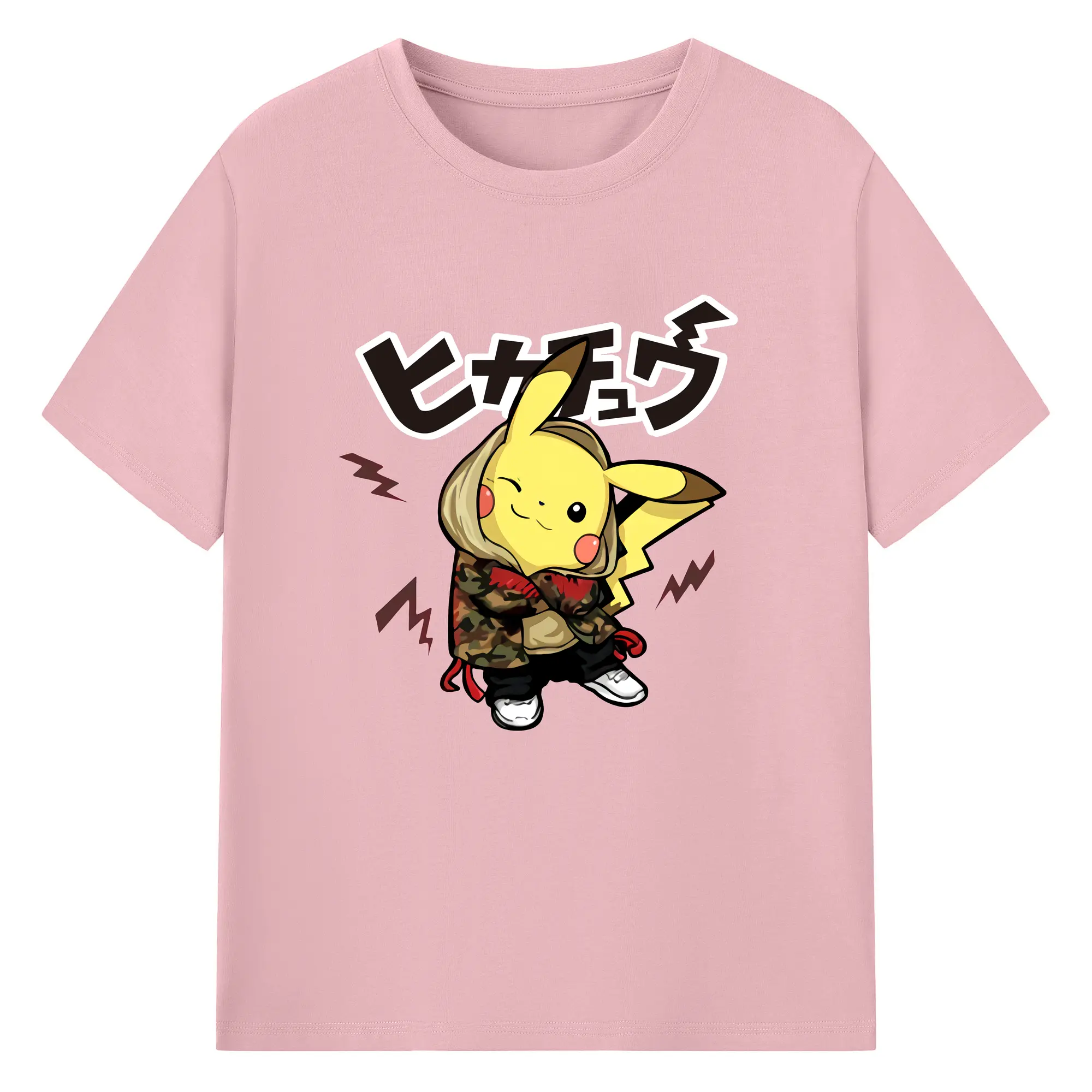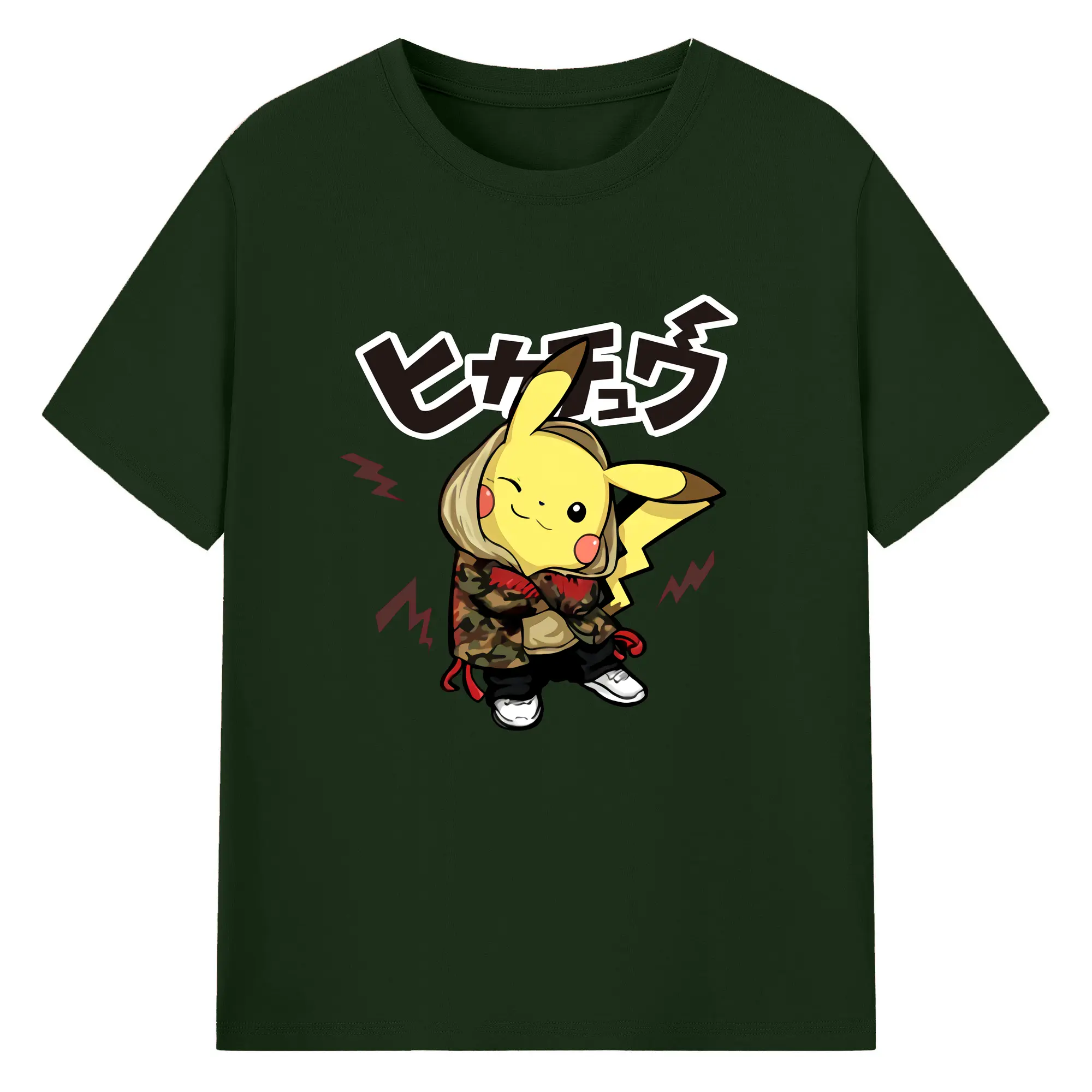 Pikachu graphic tide t shirt​ - 180g Cotton T-Shirt With Front Heat Transfer Print – Soft, Lightweight, Fitted Design – Comfortable Casual Wear For Sports & Everyday Use