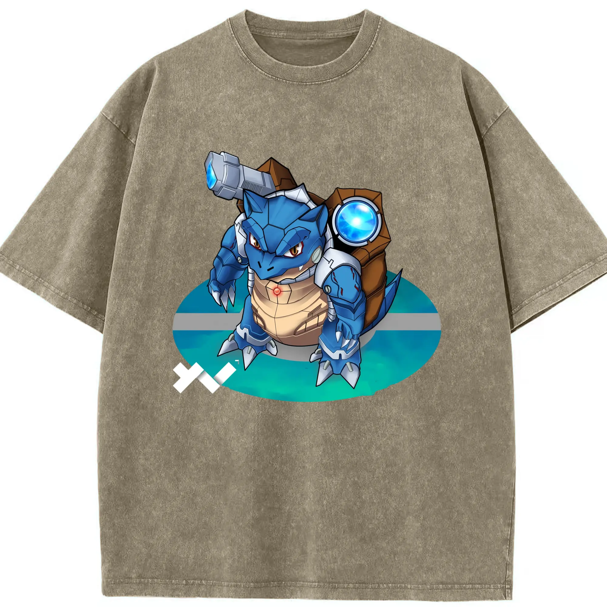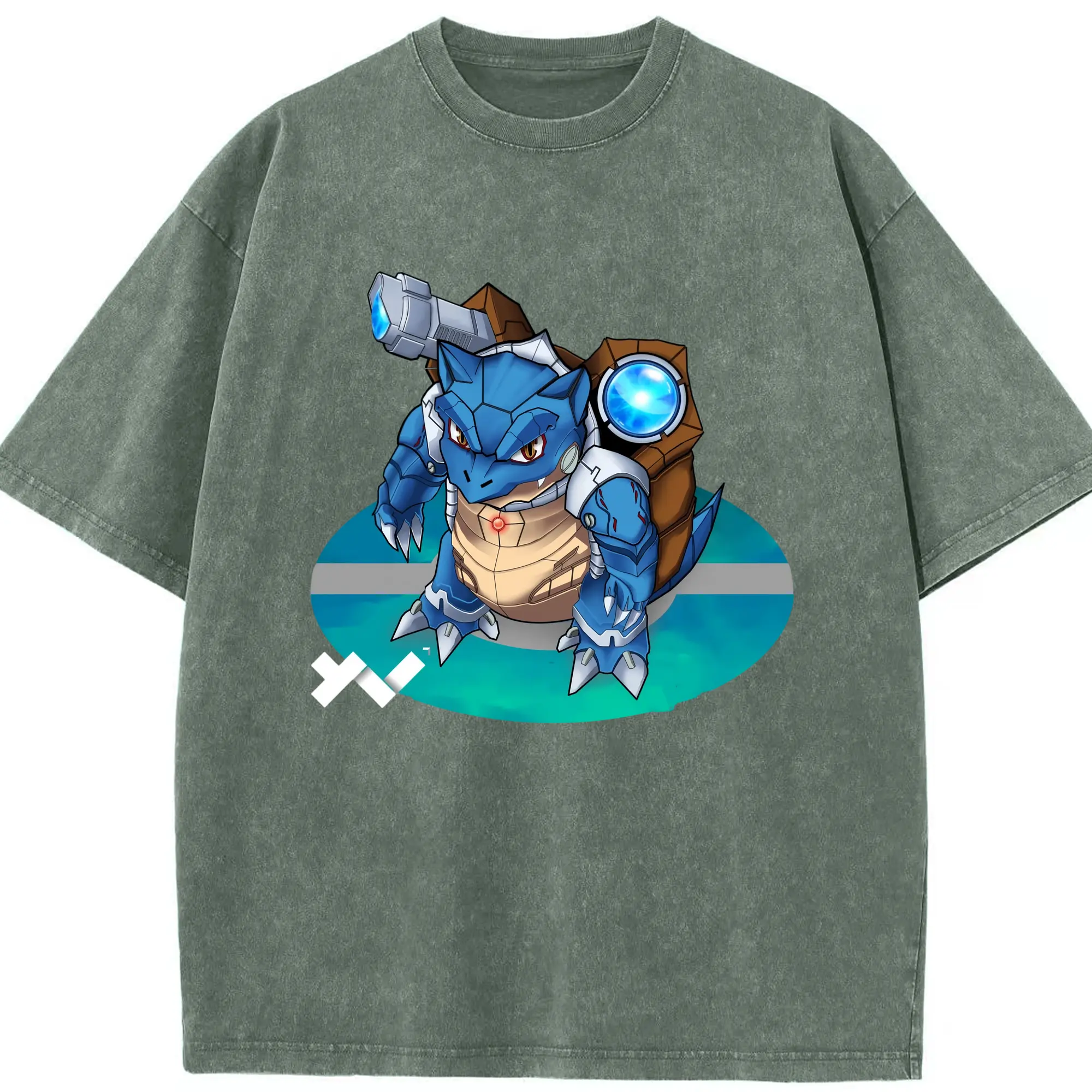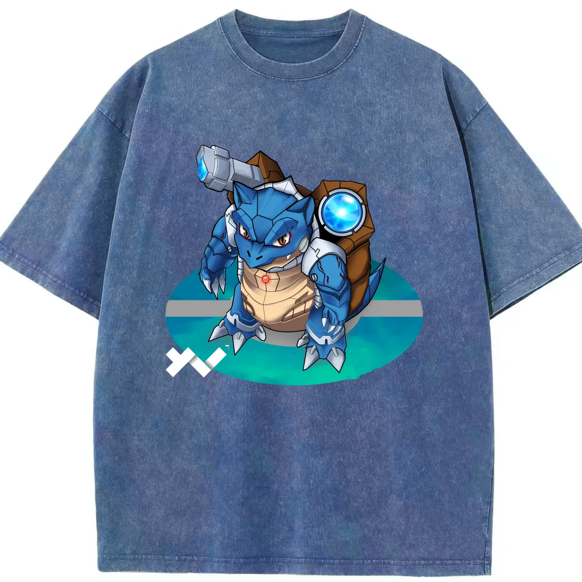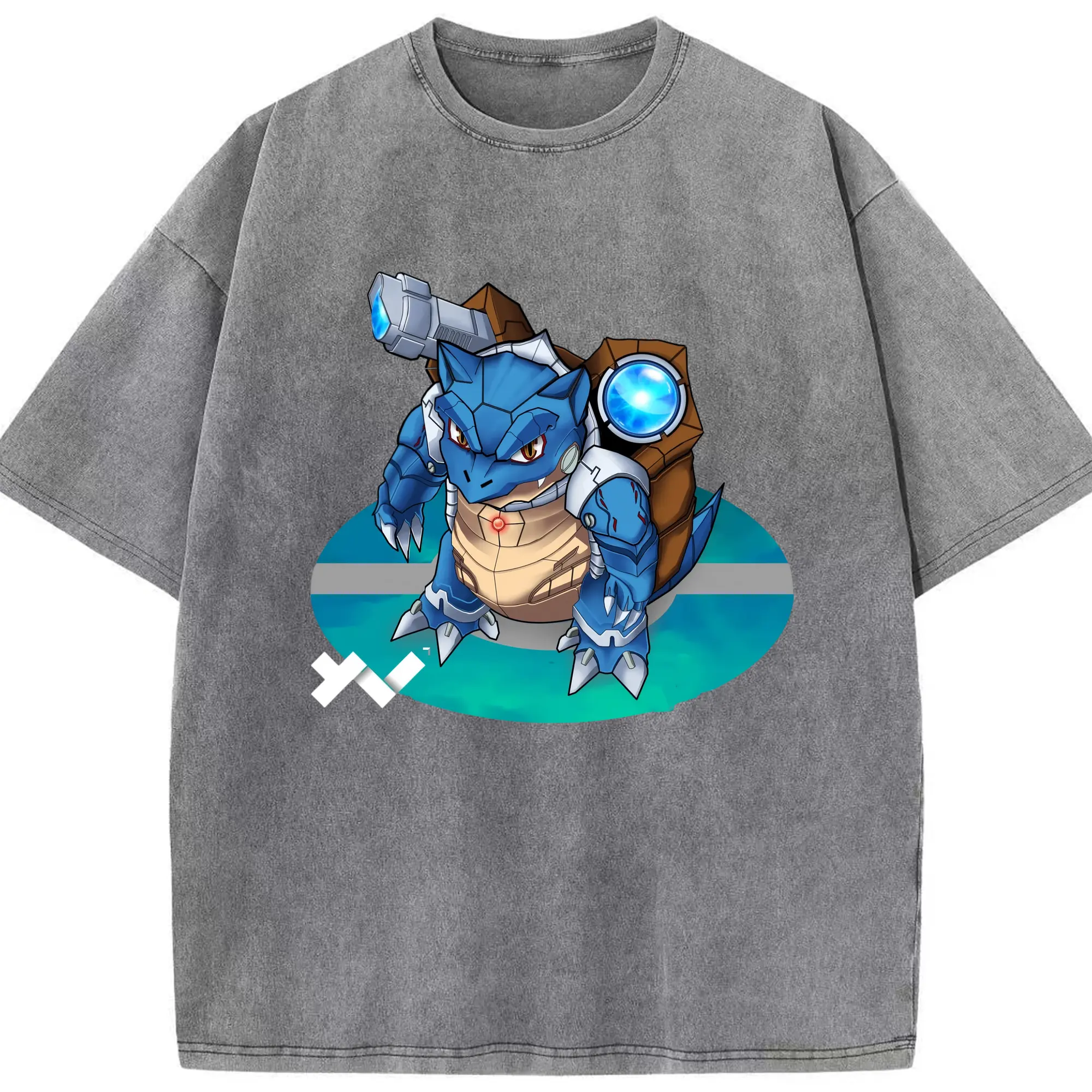 Pokemen blastoise tee - Washed Vintage Look 230g Cotton Oversized T-Shirt With Front Heat Transfer Print – Soft, Lightweight, Stylish Fit – Comfortable Casual Wear For Sports & Everyday Use
