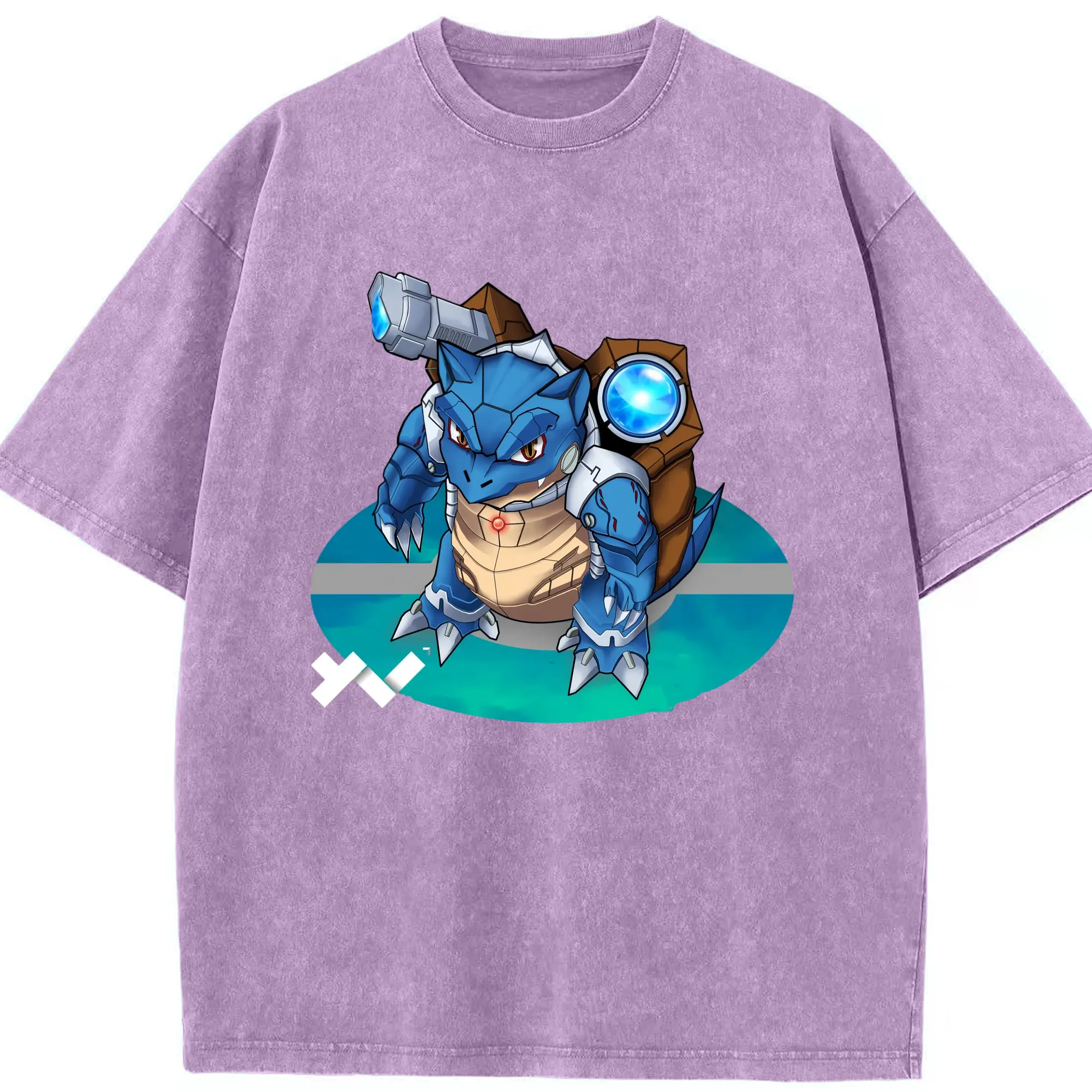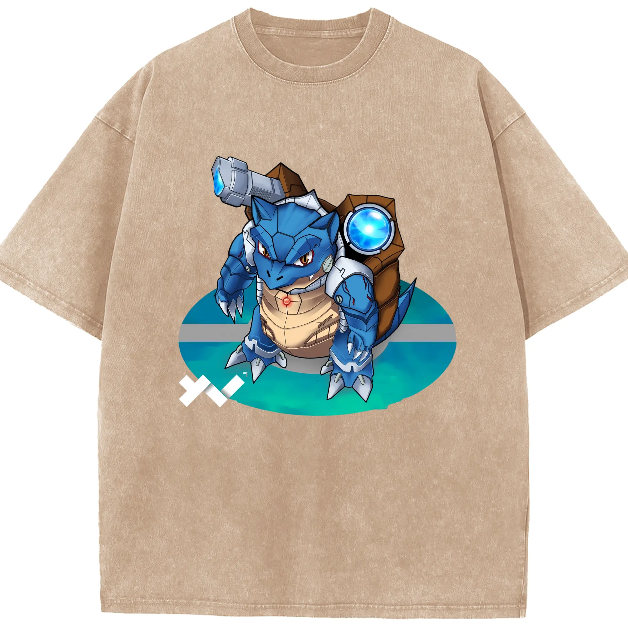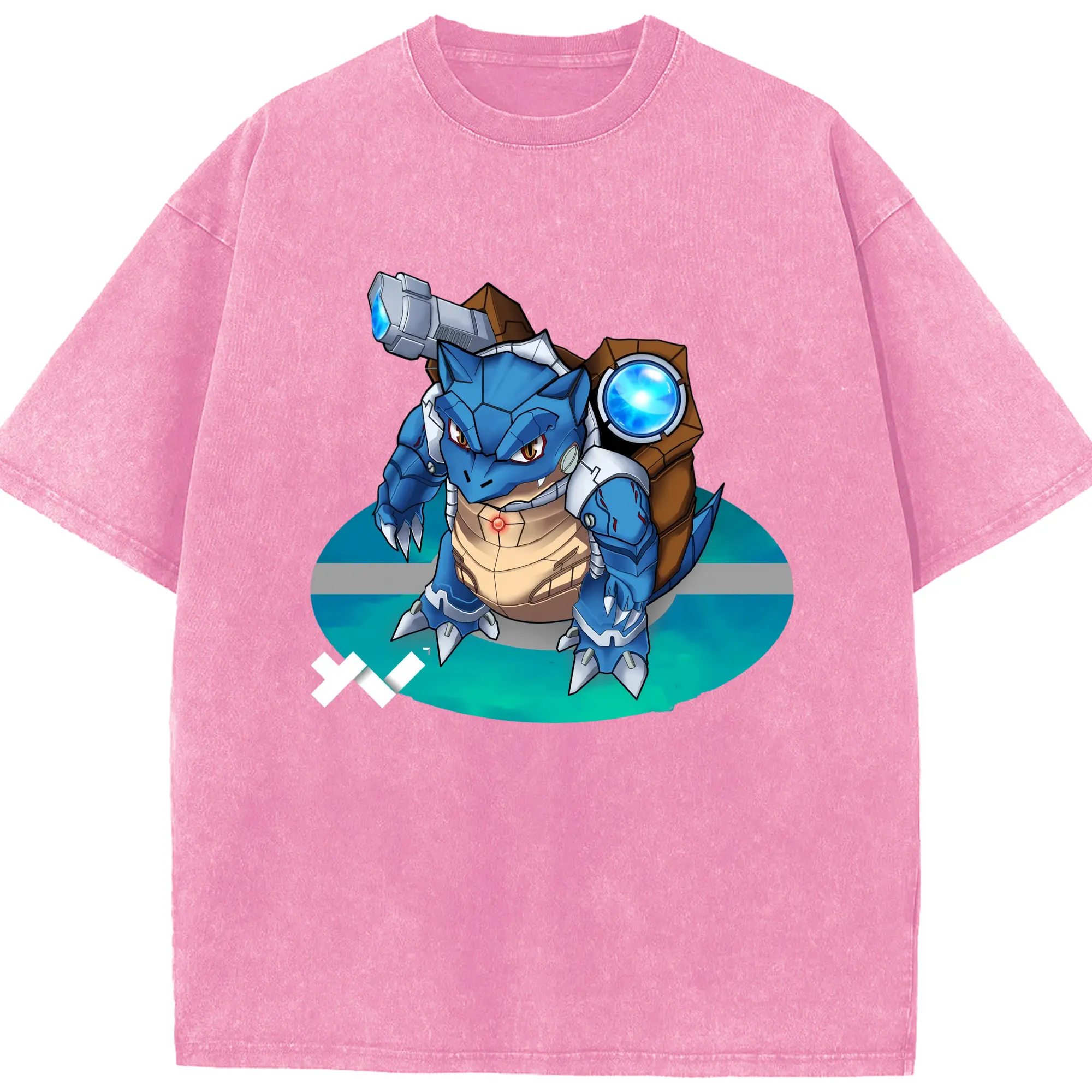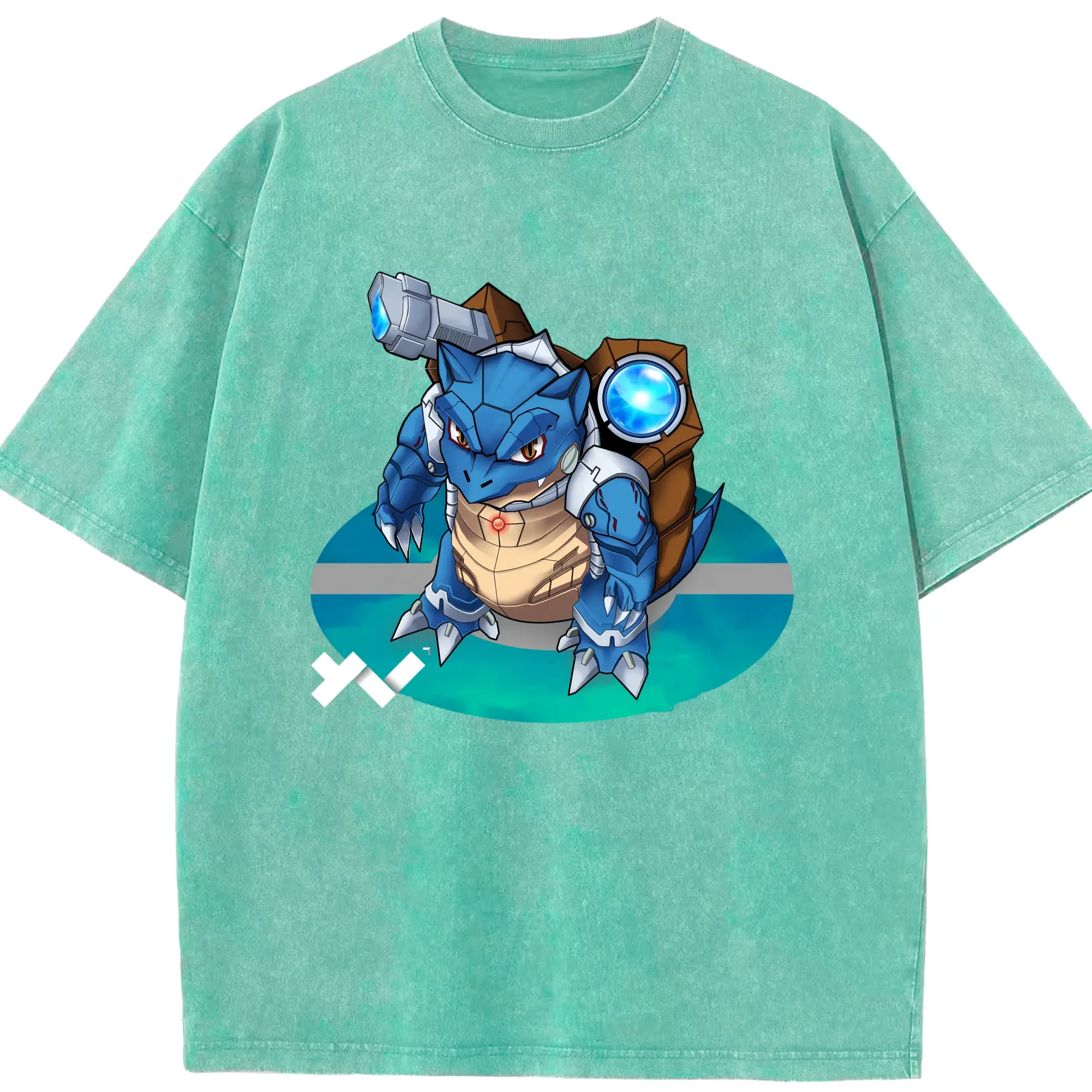 Pokemen blastoise tee - Washed Vintage Look 230g Cotton Oversized T-Shirt With Front Heat Transfer Print – Soft, Lightweight, Stylish Fit – Comfortable Casual Wear For Sports & Everyday Use
